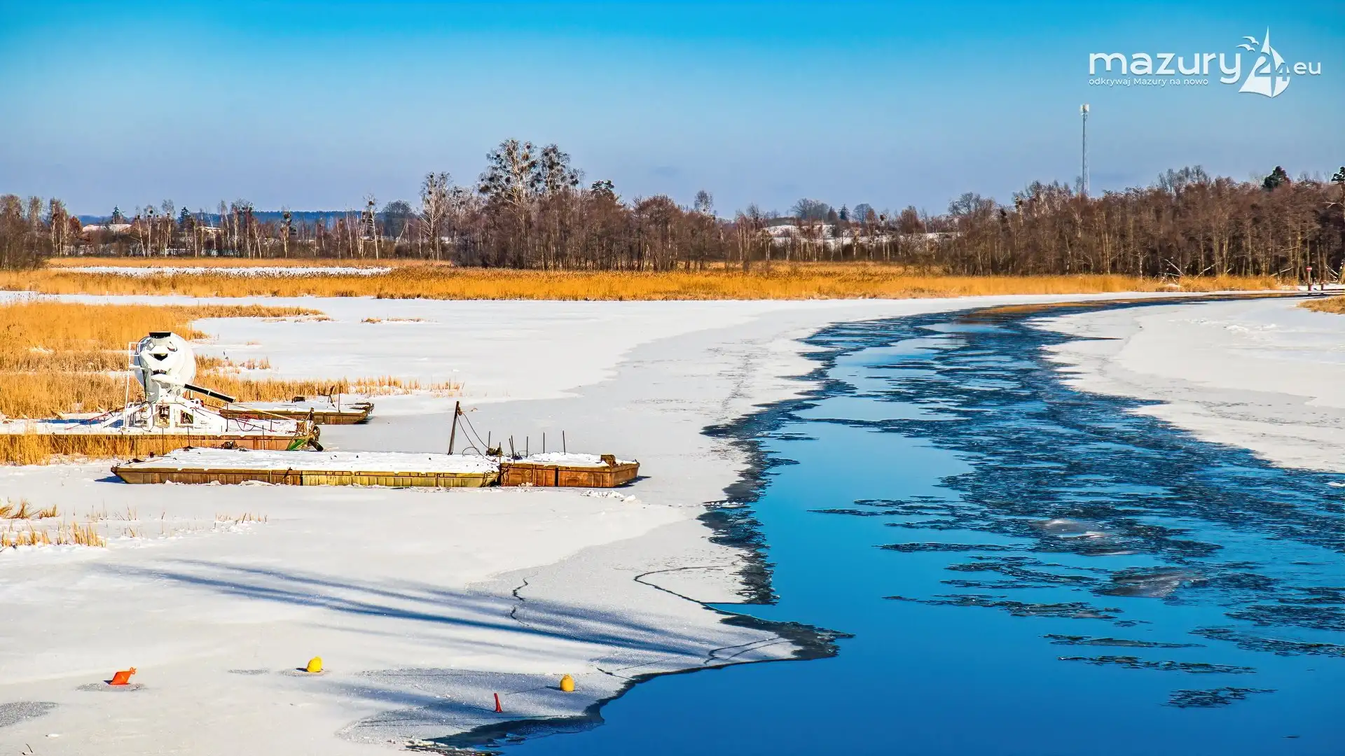 Śluza w Leśniewie Górnym w zimowej szacie, luty 2021
