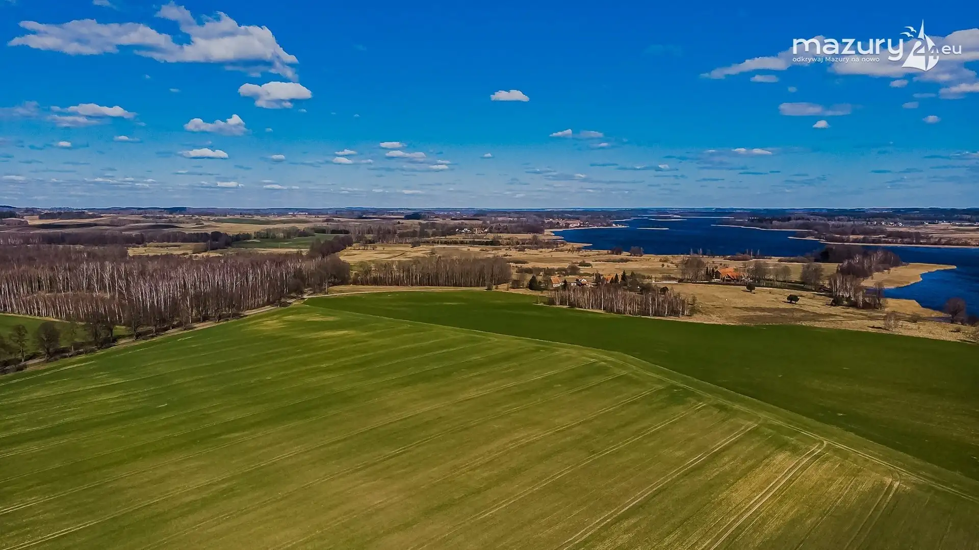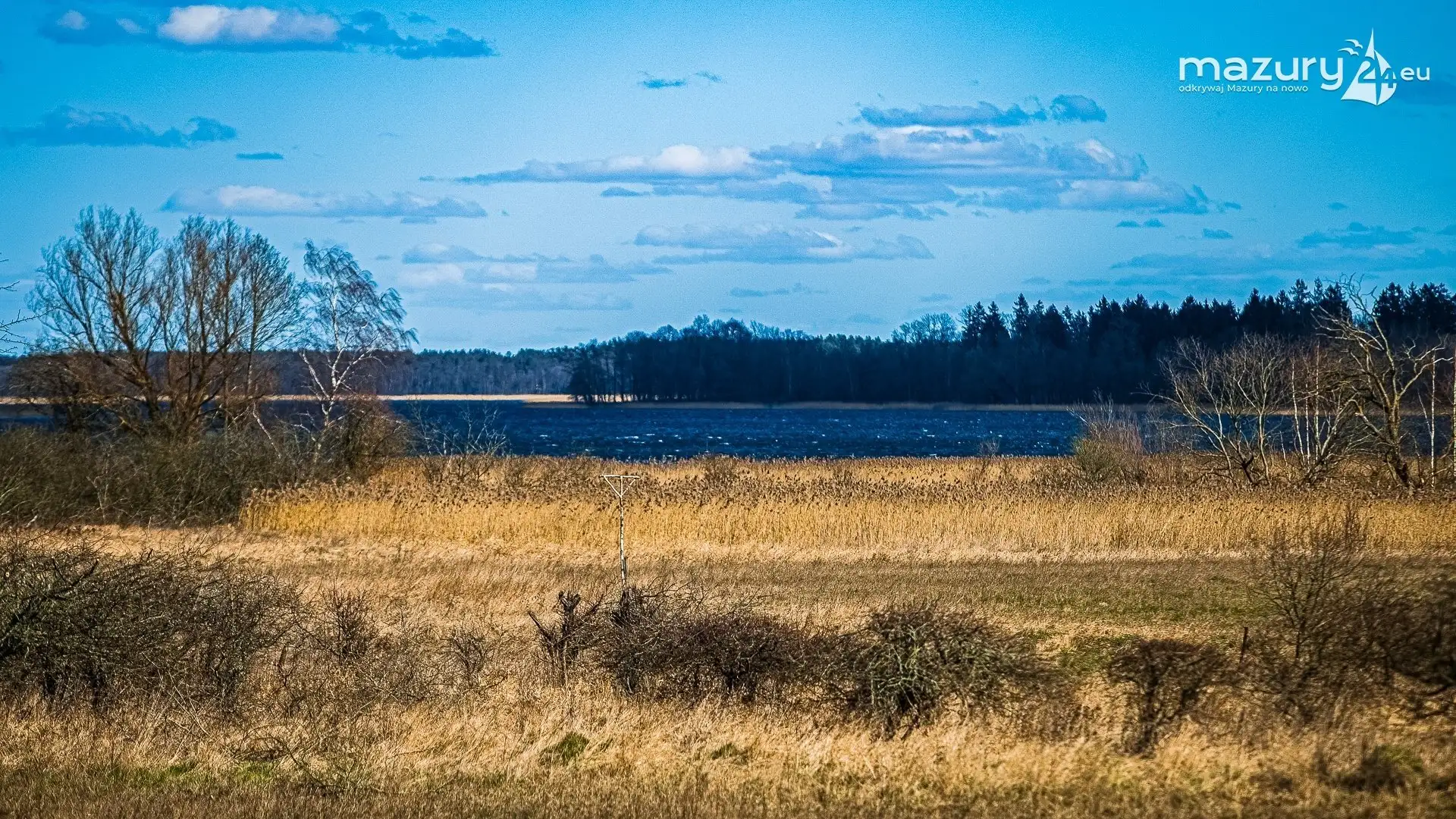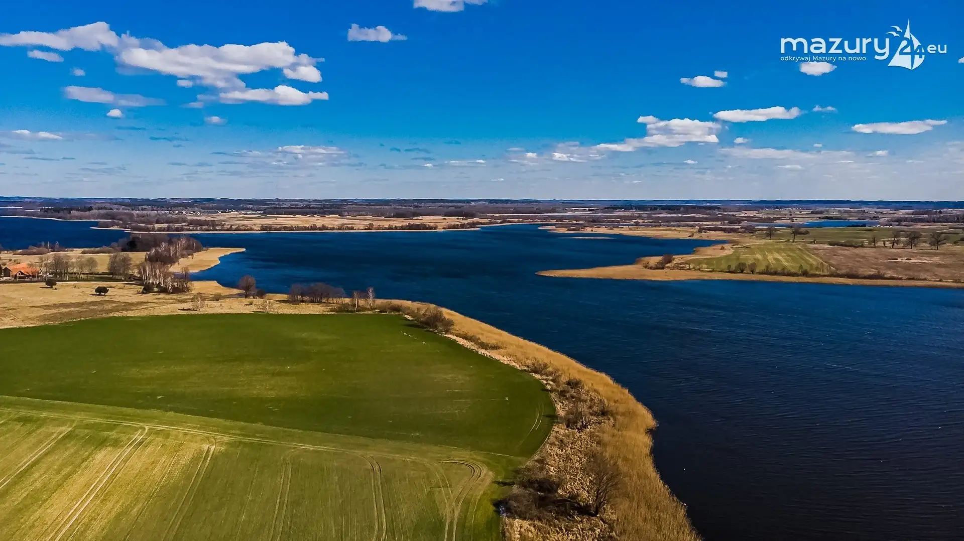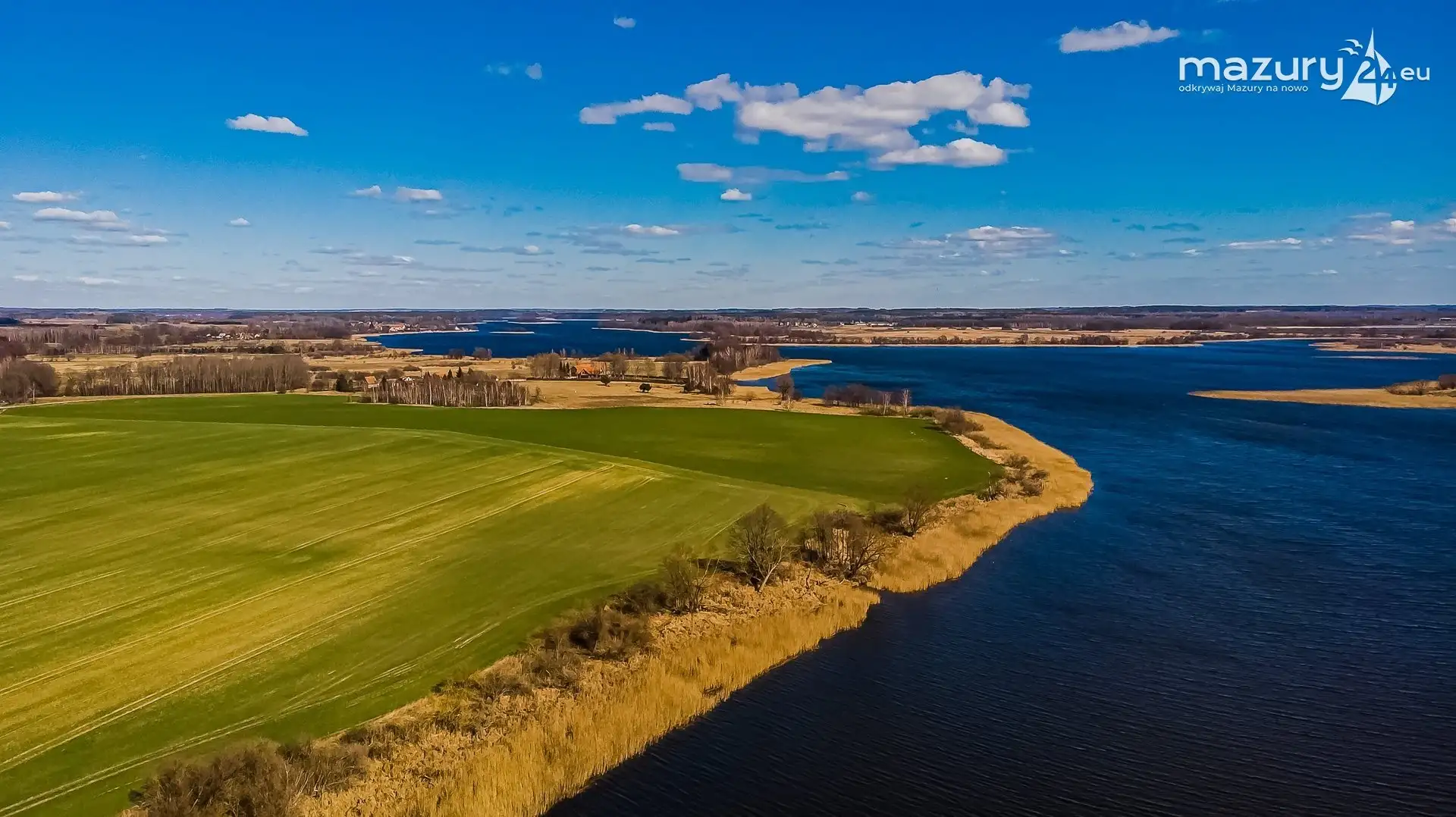 Pierkunowo i jezioro Kisajno w kwietniowym słońcu