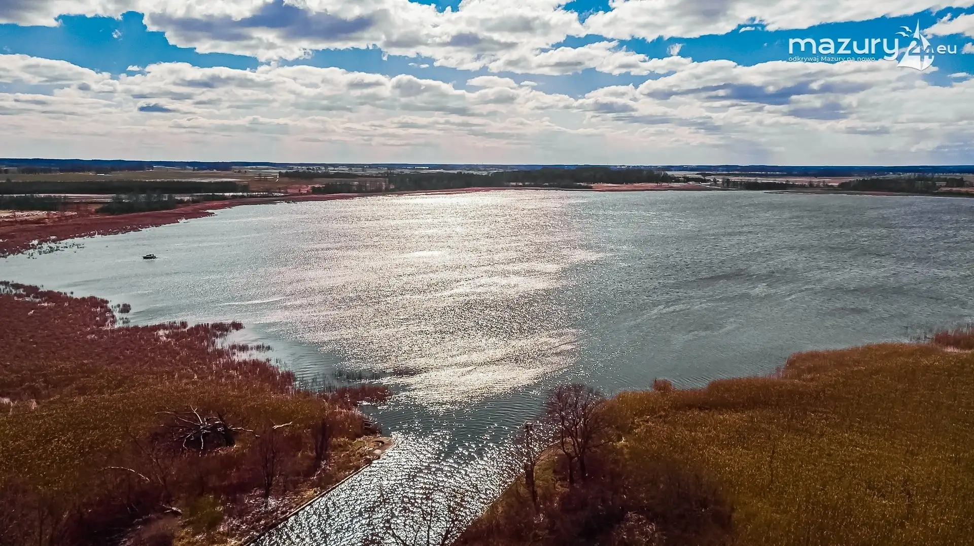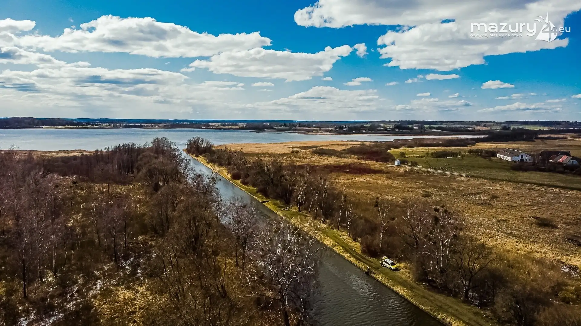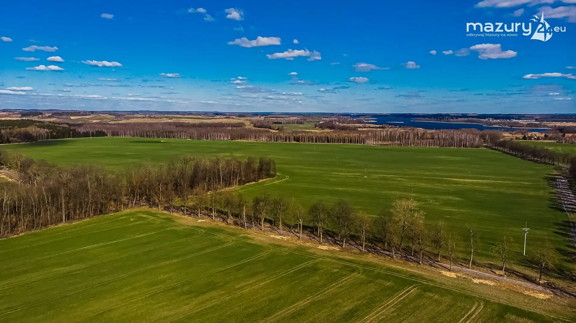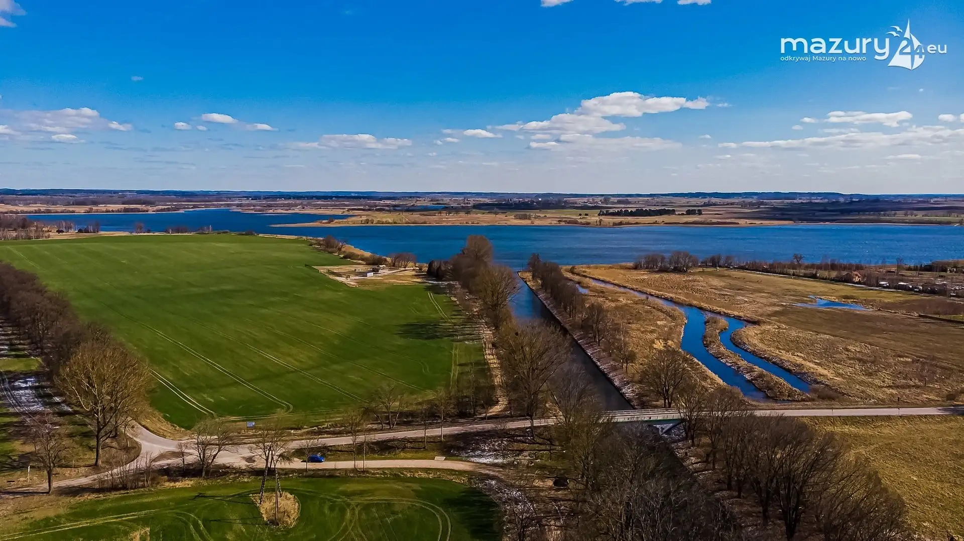 Pierkunowo i jezioro Kisajno w kwietniowym słońcu