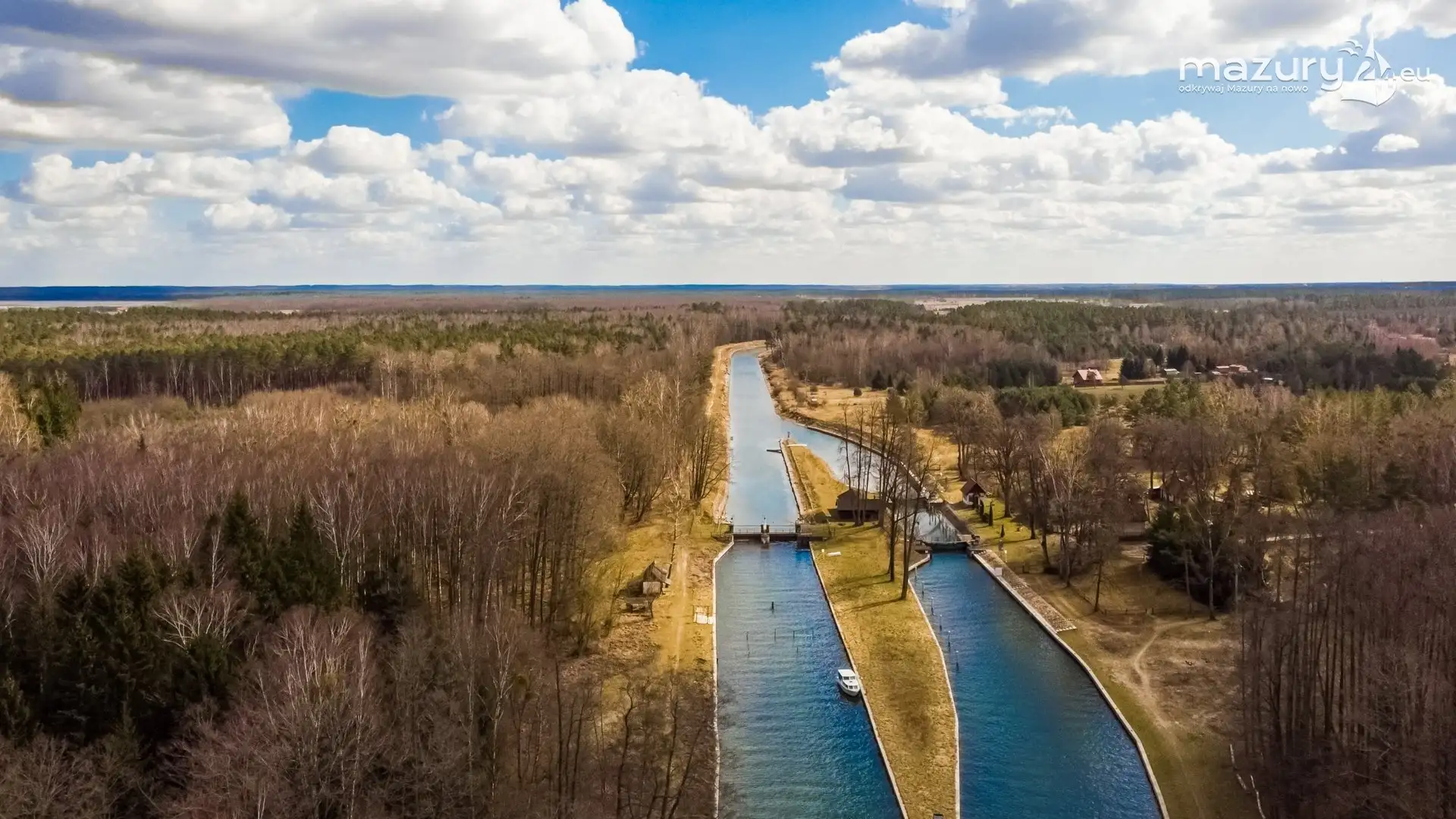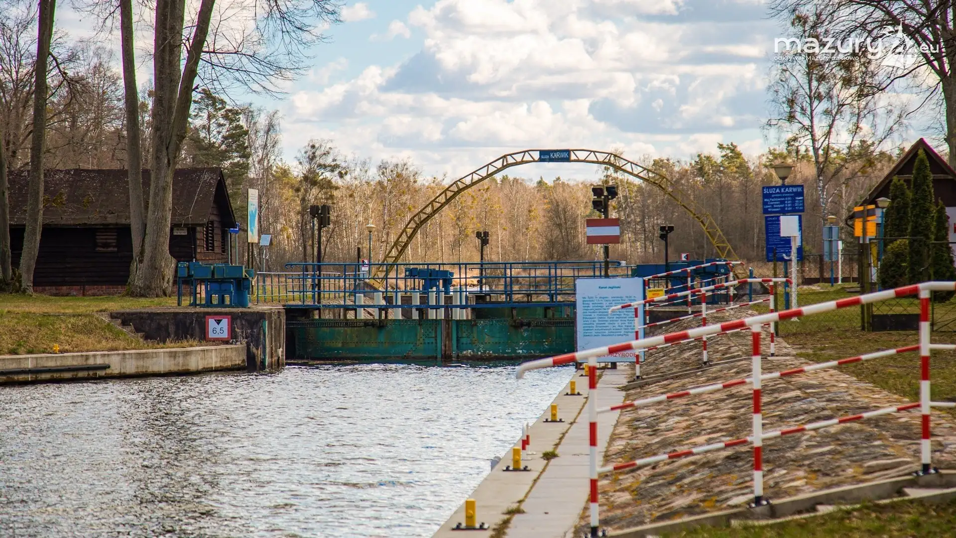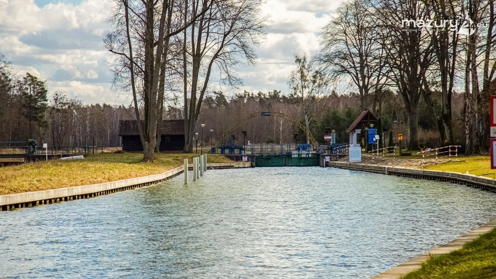 Jak wyglądają czekające na nas Mazury? Tak jak na zdjęciach - cisza, pustka i stan oczekiwania. Śluza Karwik jest ostatnią przeszkodą wodną (oprócz mostów) na drodze do jeziora Roś i Pisza podczas płynięcia kanałem Jeglińskim (najdłuższy na Mazurach).