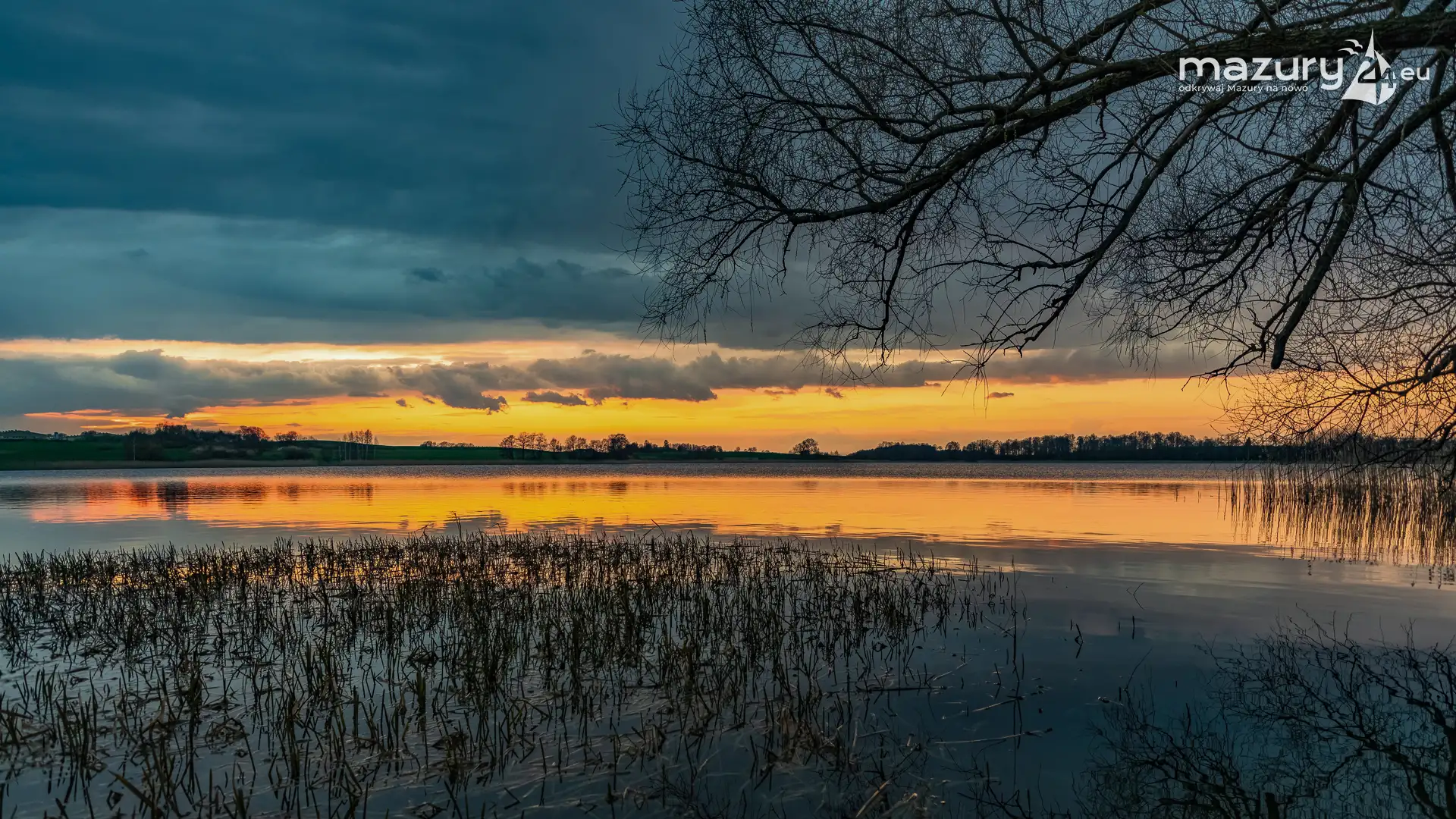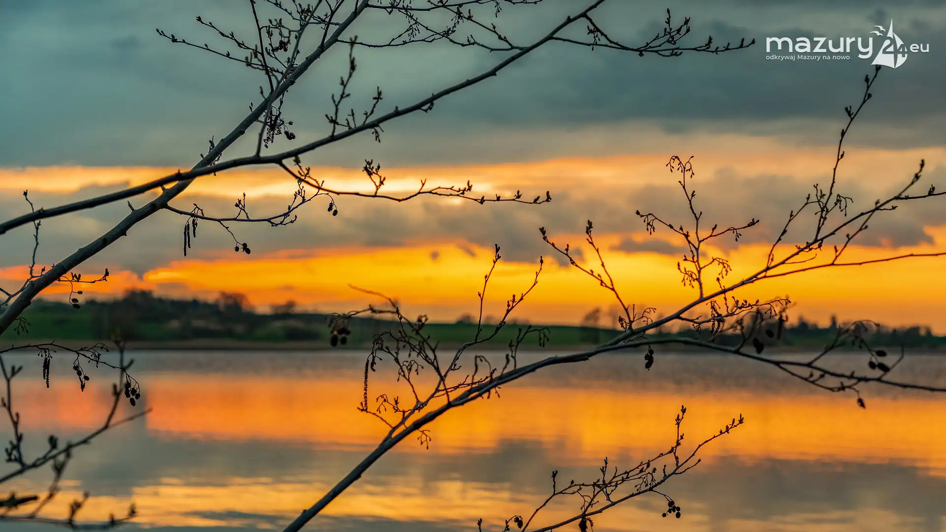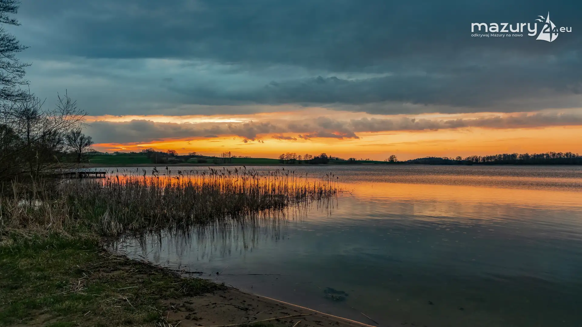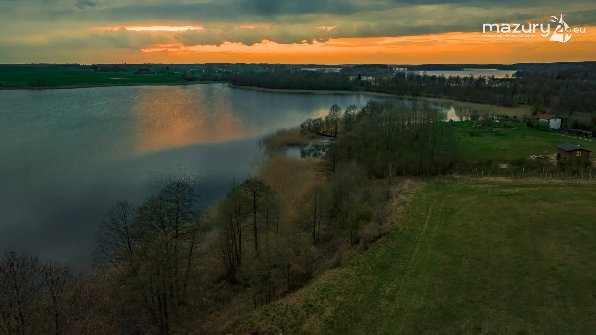 Zachód słońca w Pierkunowie, jezioro Kisajno, kwiecień 2023 r.