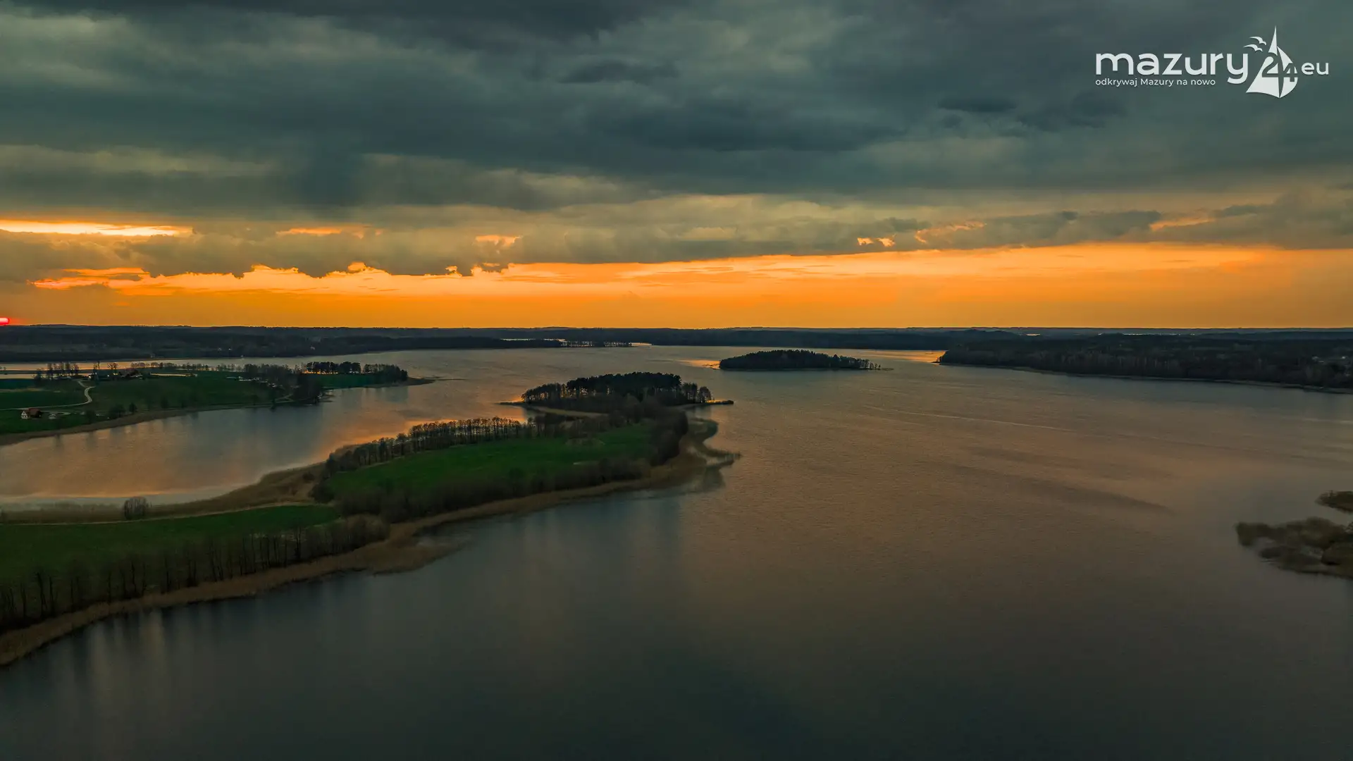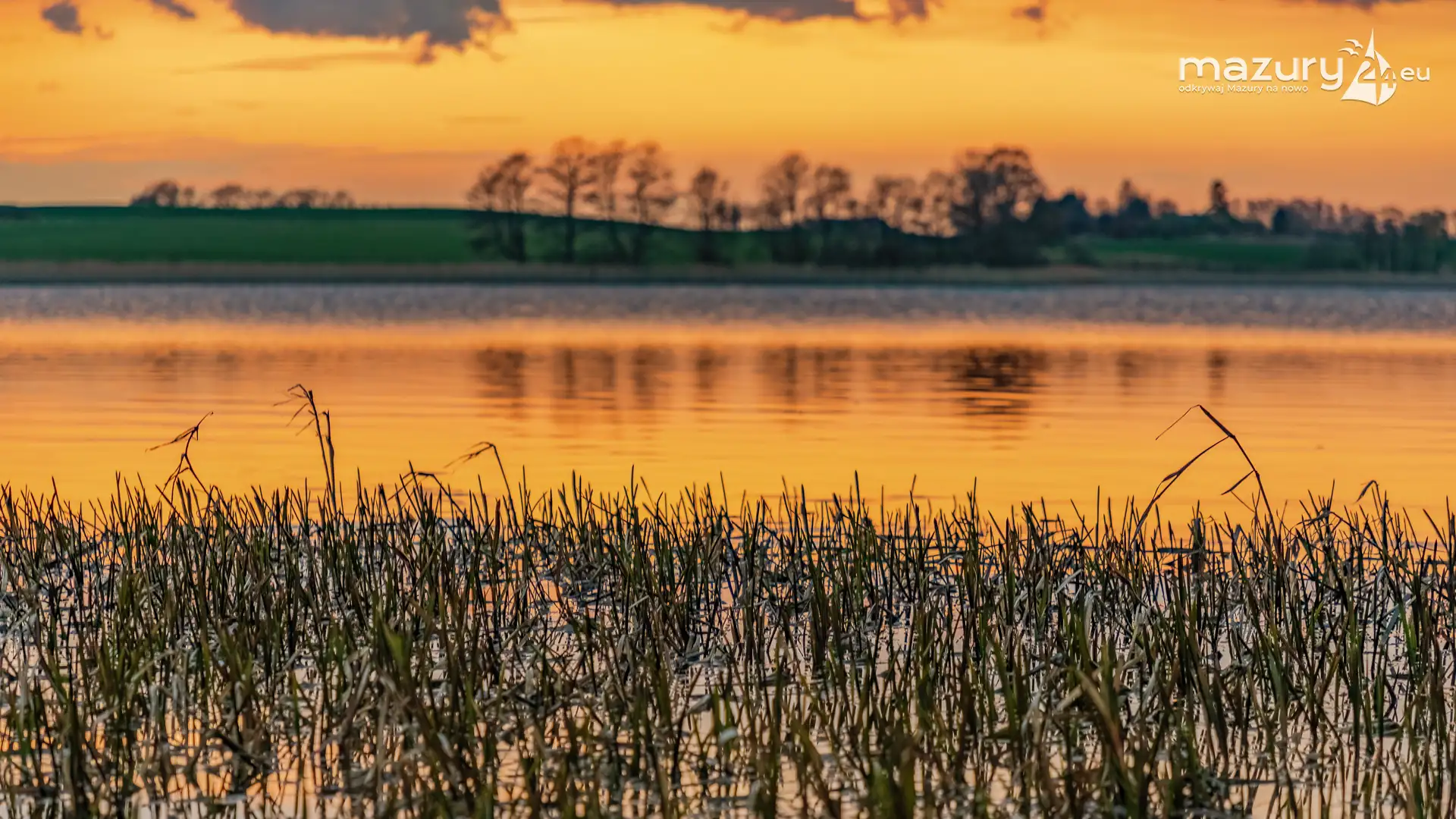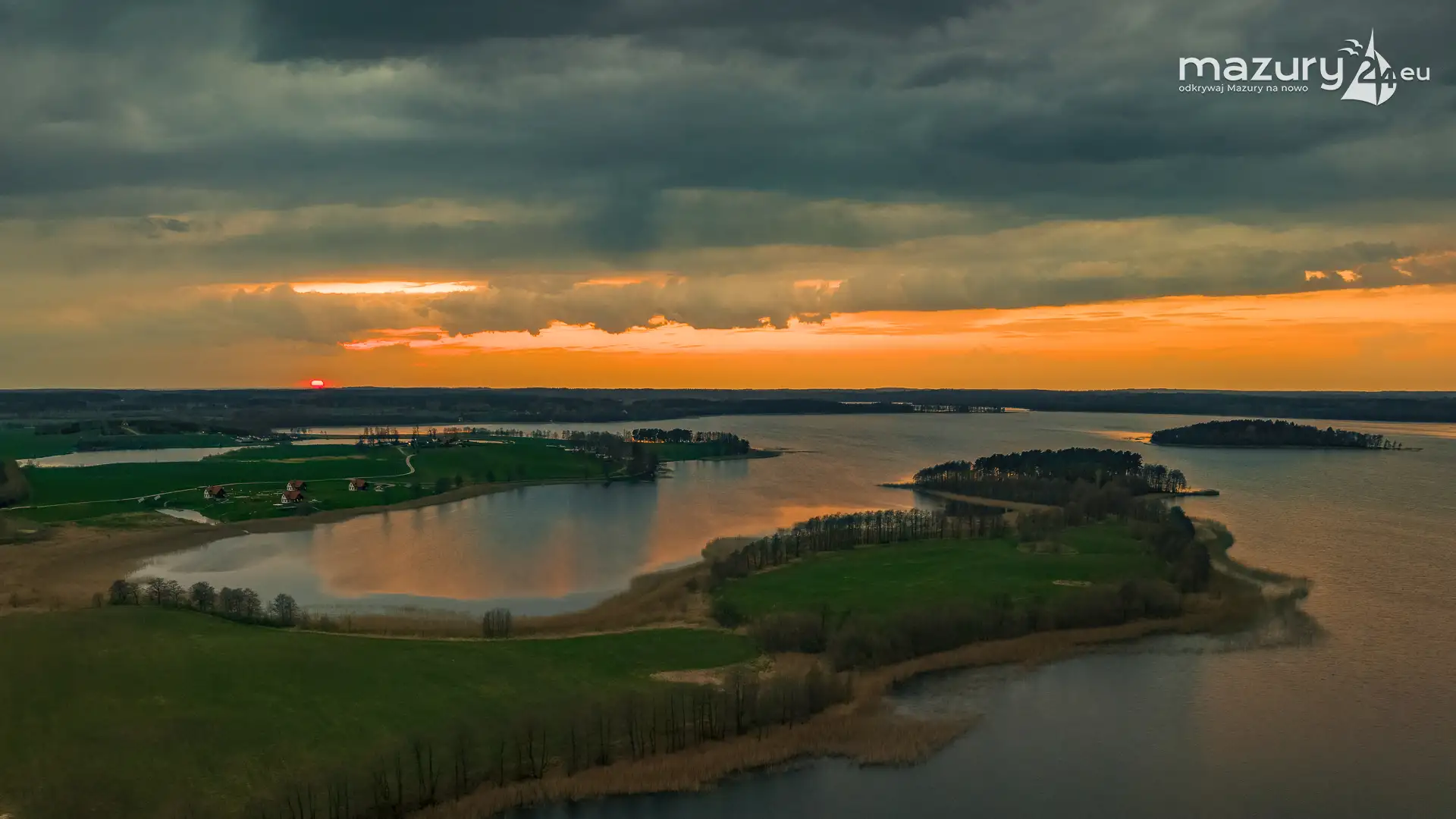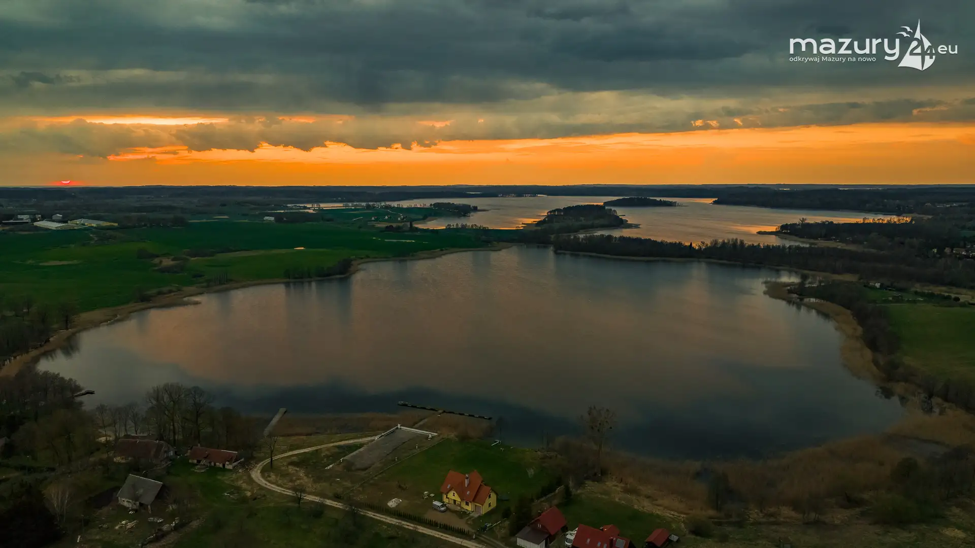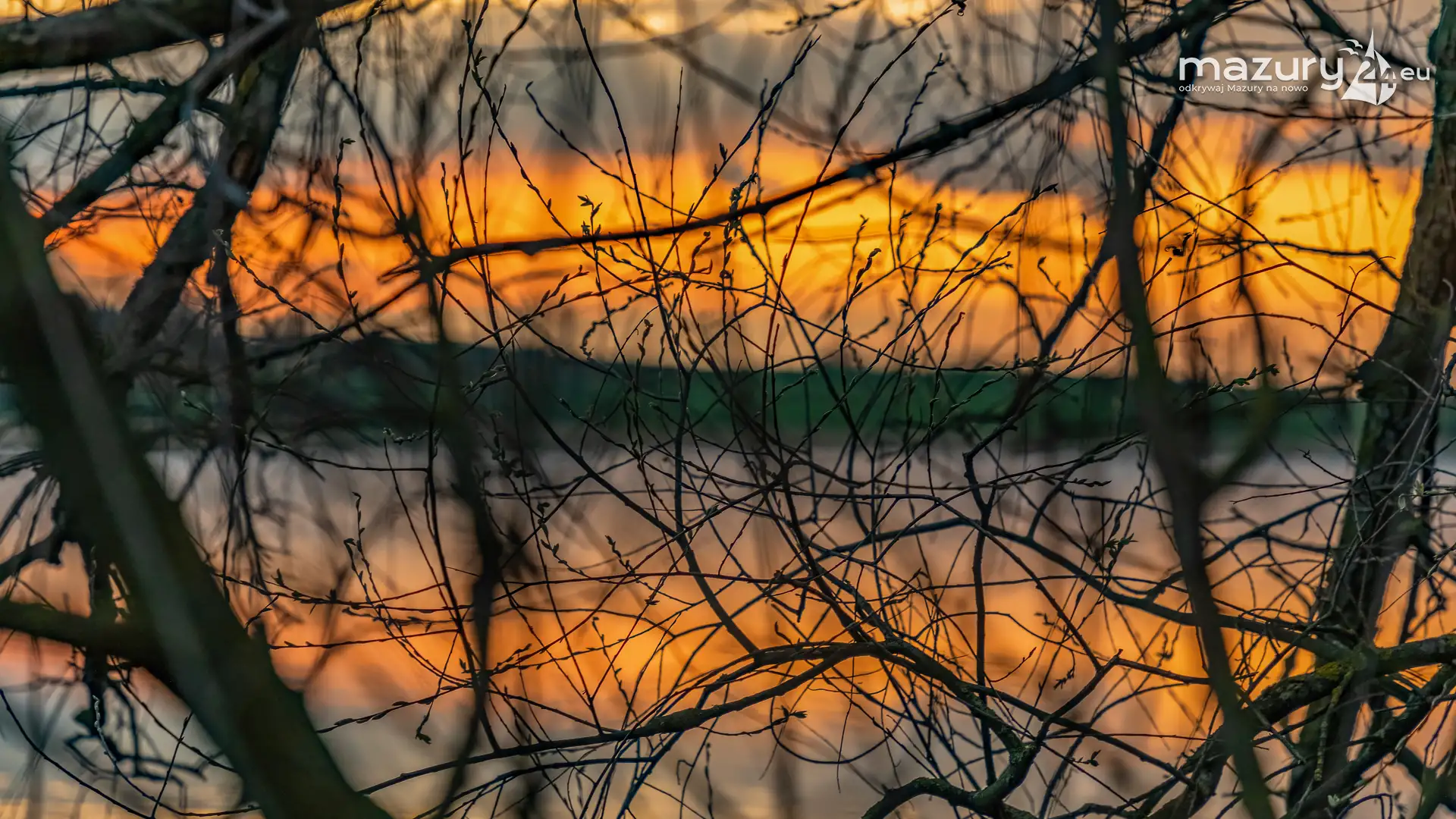 Zachód słońca w Pierkunowie, jezioro Kisajno, kwiecień 2023 r.