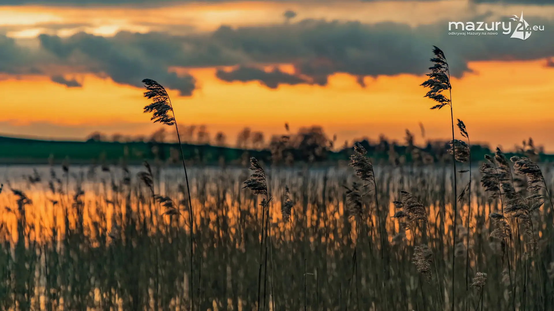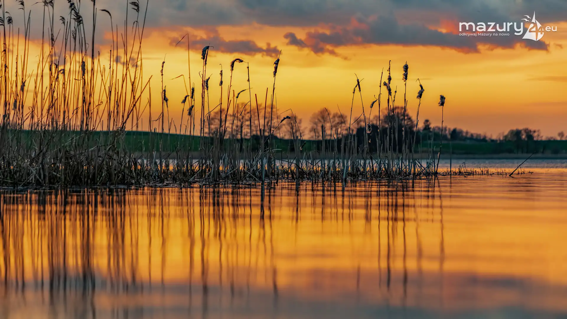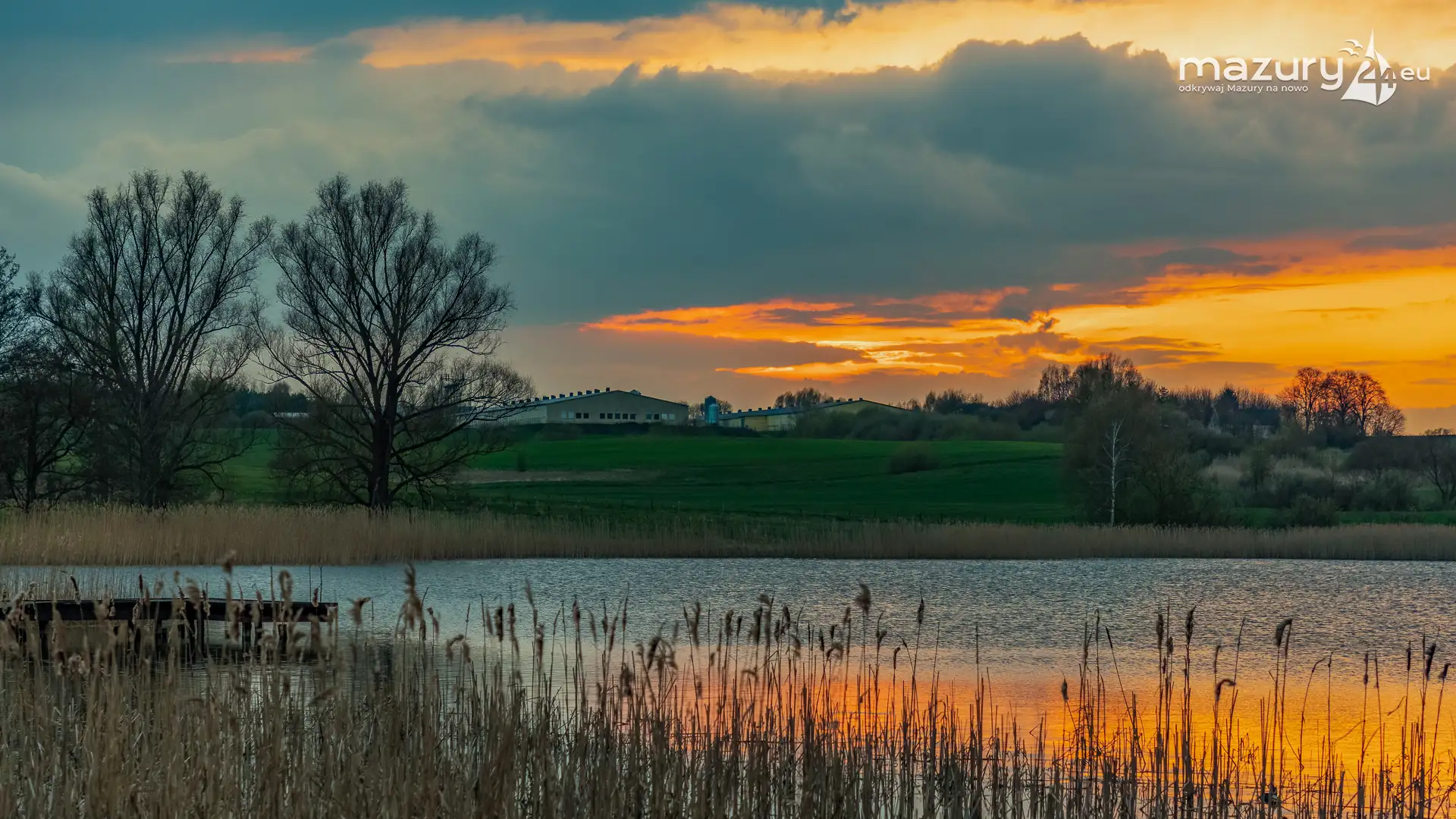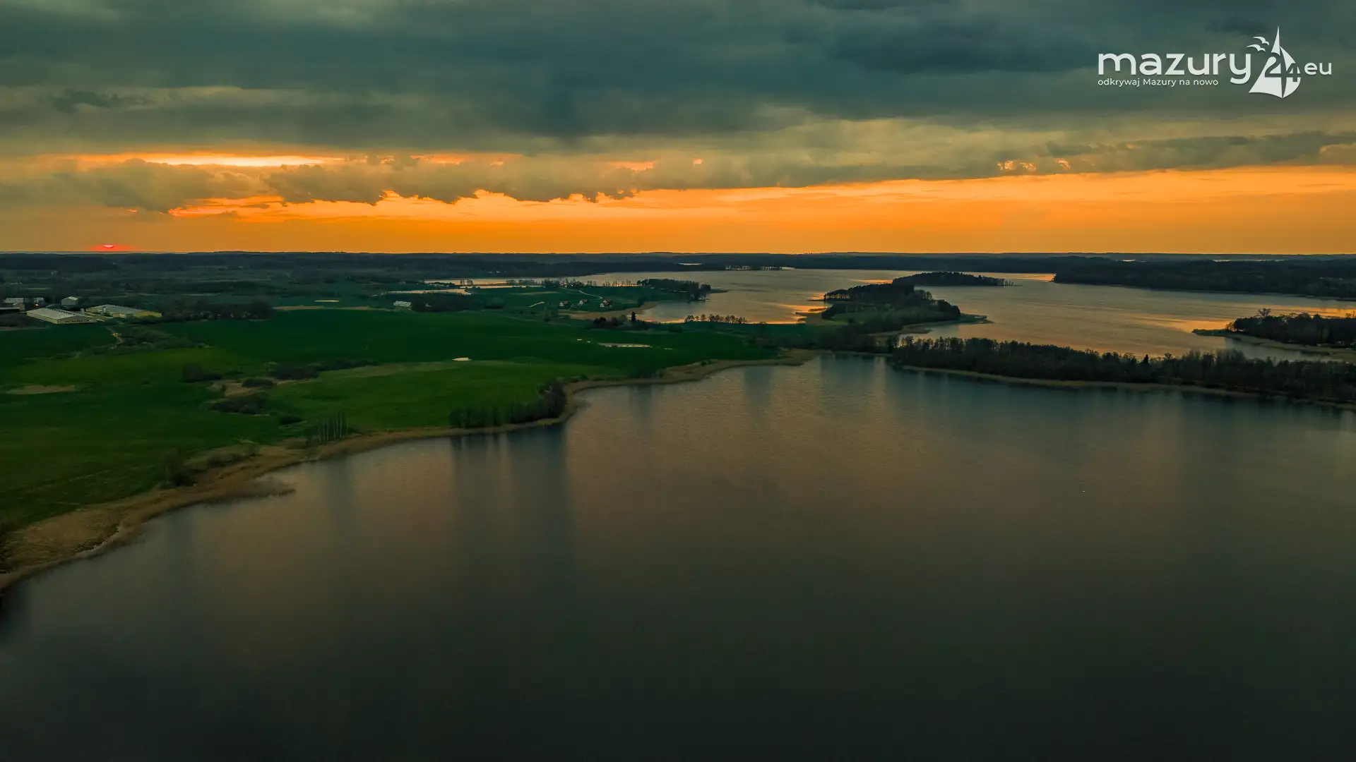 Zachód słońca w Pierkunowie, jezioro Kisajno, kwiecień 2023 r.