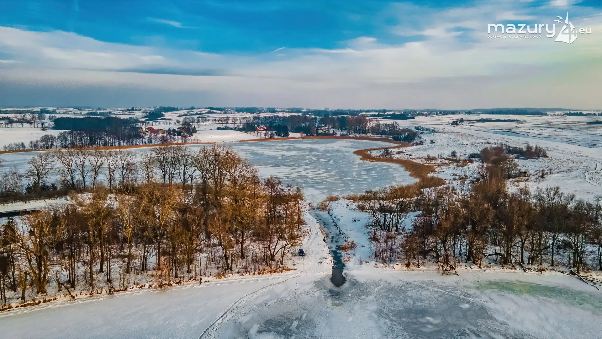 Jezioro Ślepieniec skąpane w zimowej bieli, luty 2021