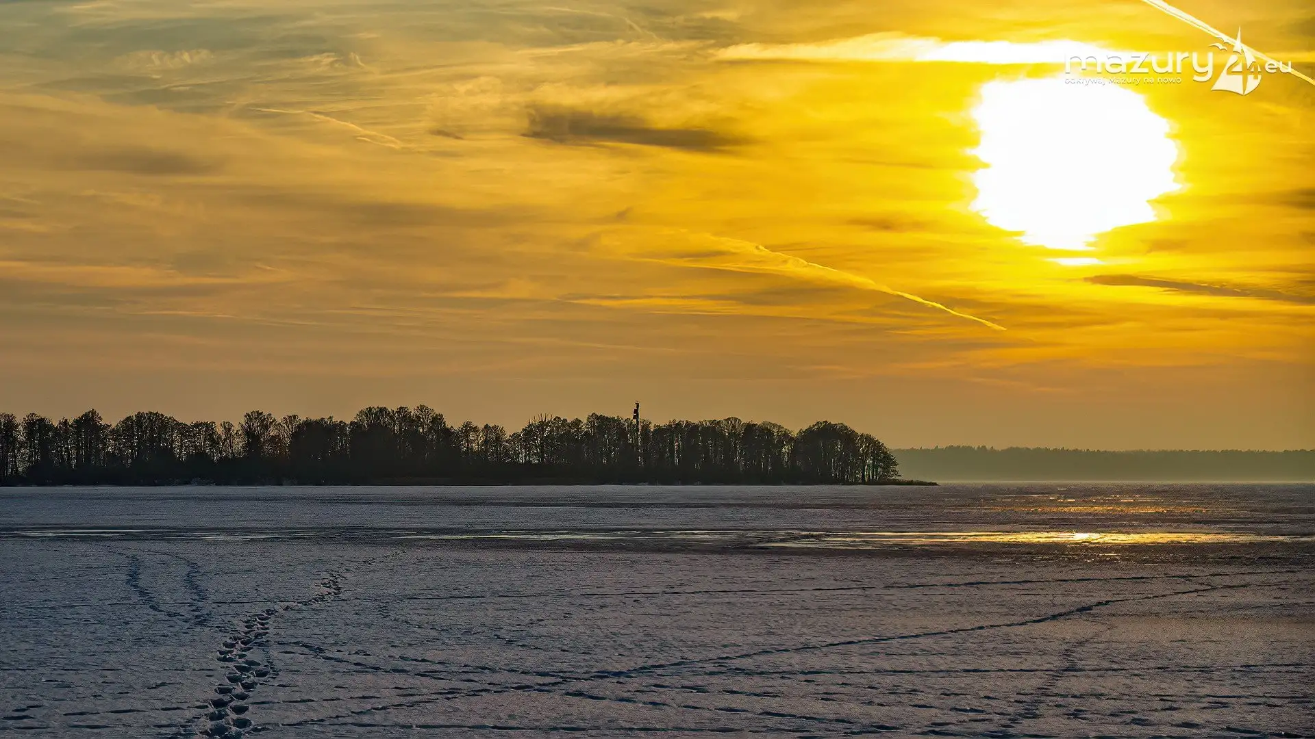 Mimo, że temperatura na Mazurach wzrosła i jej wartości bliżej są wiosny niż zimy, dalej nasze ukochane jeziora pokrywa warstwa śniegu. Coraz częściej pojawia się słońce, dzięki czemu mamy pożywkę dla kolejny fotogalerii  i pięknych ujęć. Dzisiejsze pochodzą z wczorajszego zachodu słońca nad jeziorem Niegocin i Grajewko blisko Giżycka.
