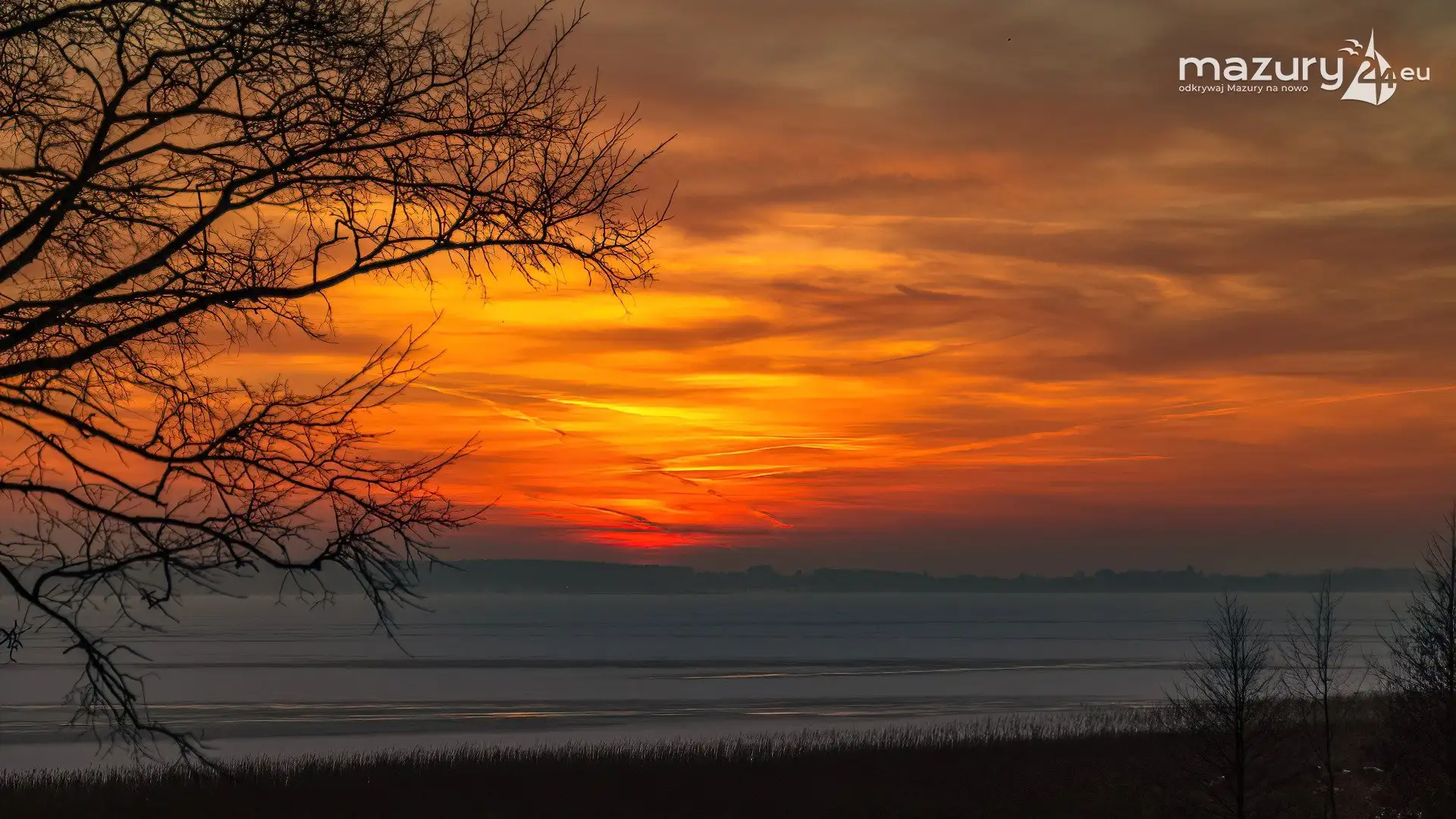 Zachód słońca nad jeziorem Niegocin, luty 2021