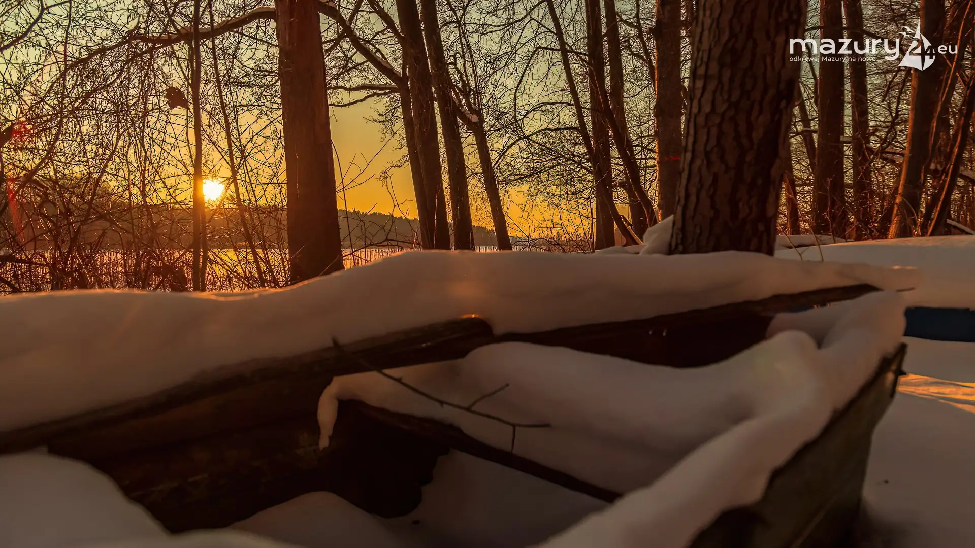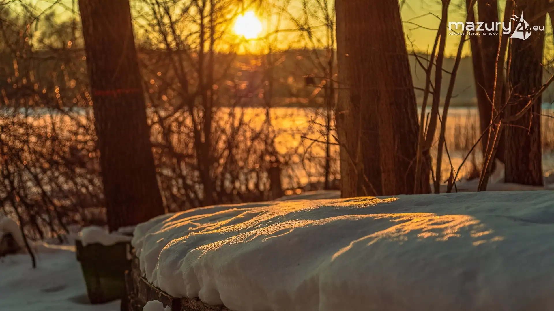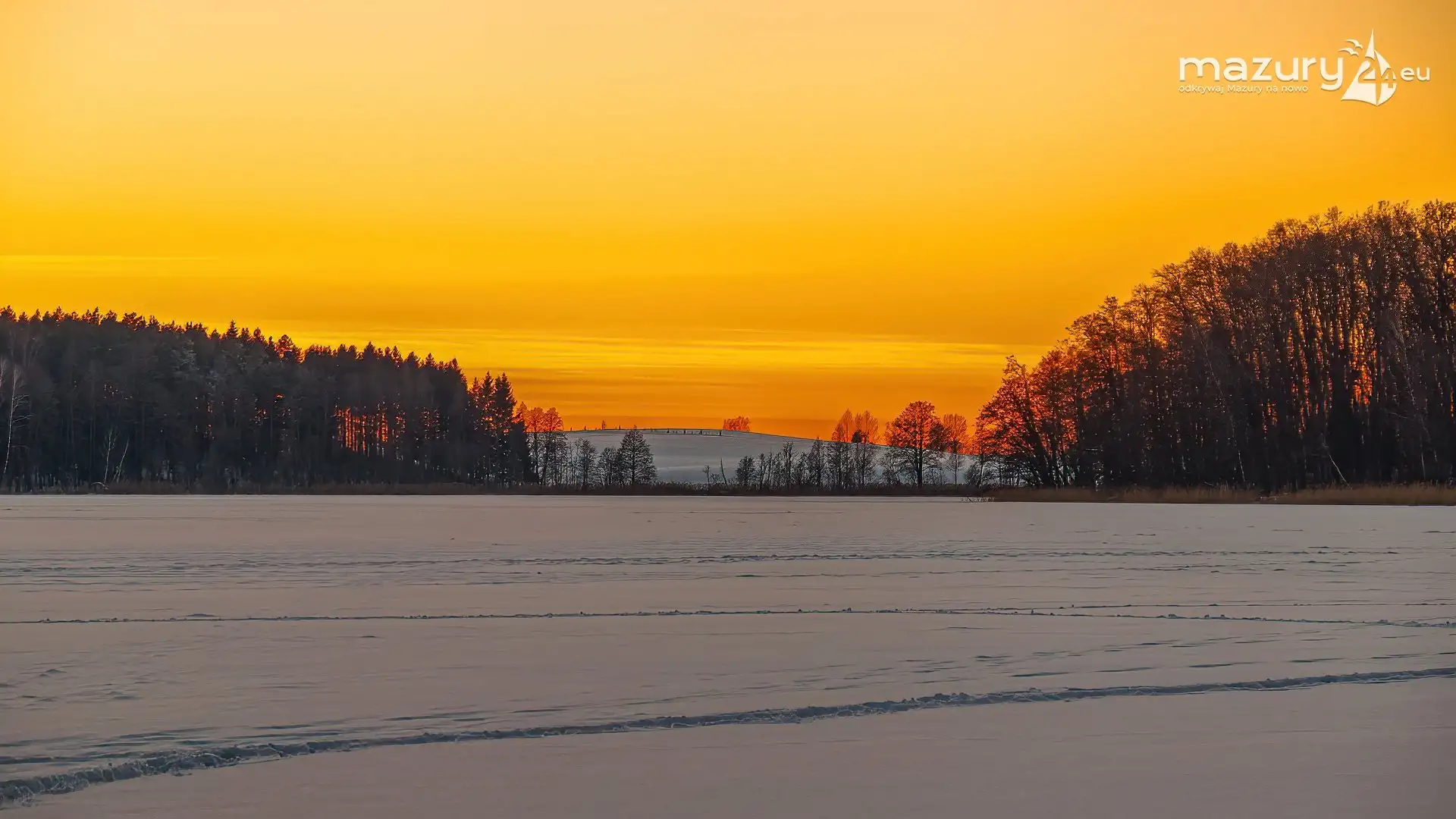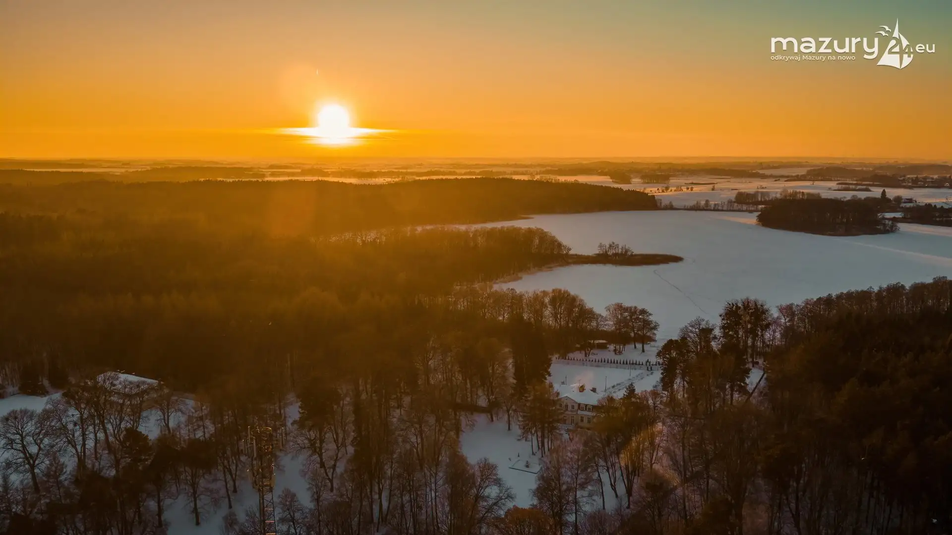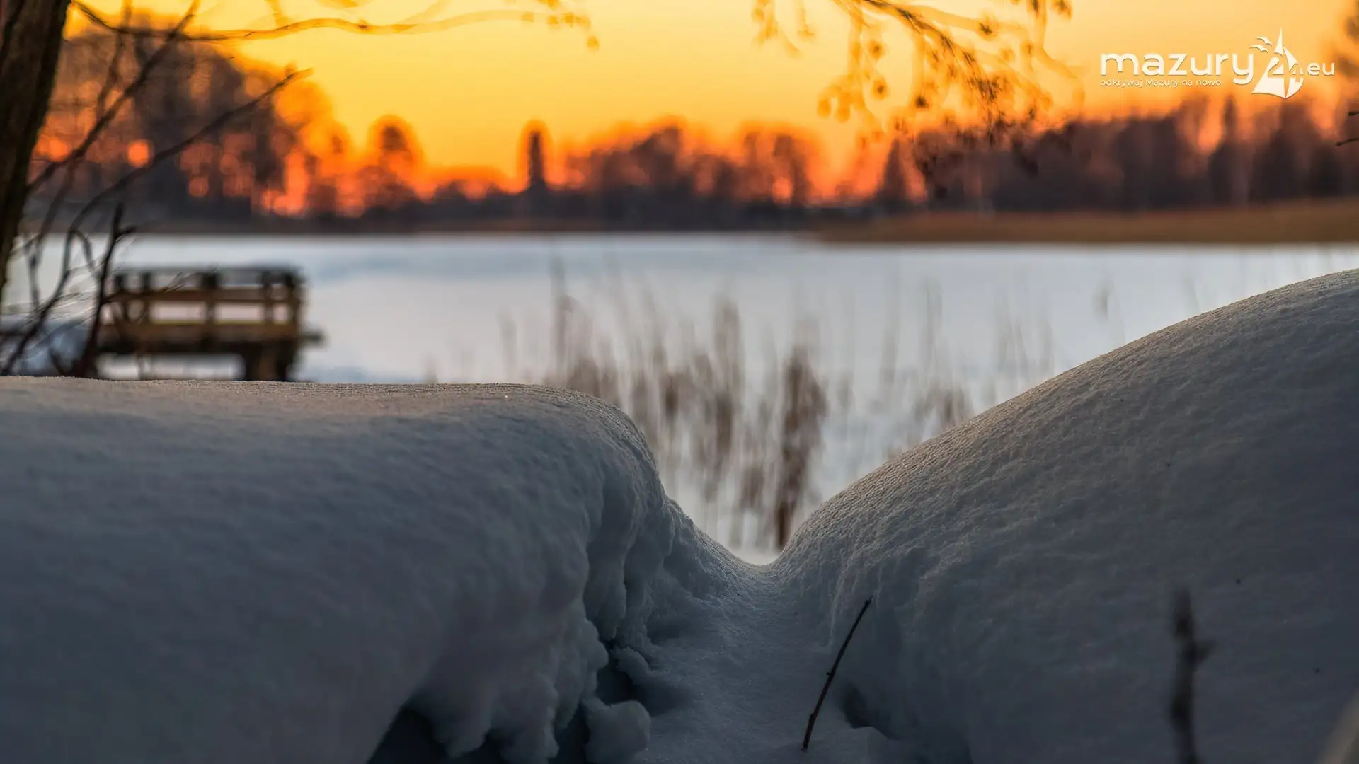 Mimo środka zimy, coraz bliżej wiosny, a już za kilka miesięcy spotkamy się nad mazurskimi jeziorami. Tym bardziej doceńmy kończące się zachody słońca nad zimowym białym puchem. Przed nami duże ocieplenie, a kolejne opady śniegu i mróz mogą nam nie przynieść już takich widoków jak te nad jeziorem Siercze, wykonano koło Księżycowego Dworku.