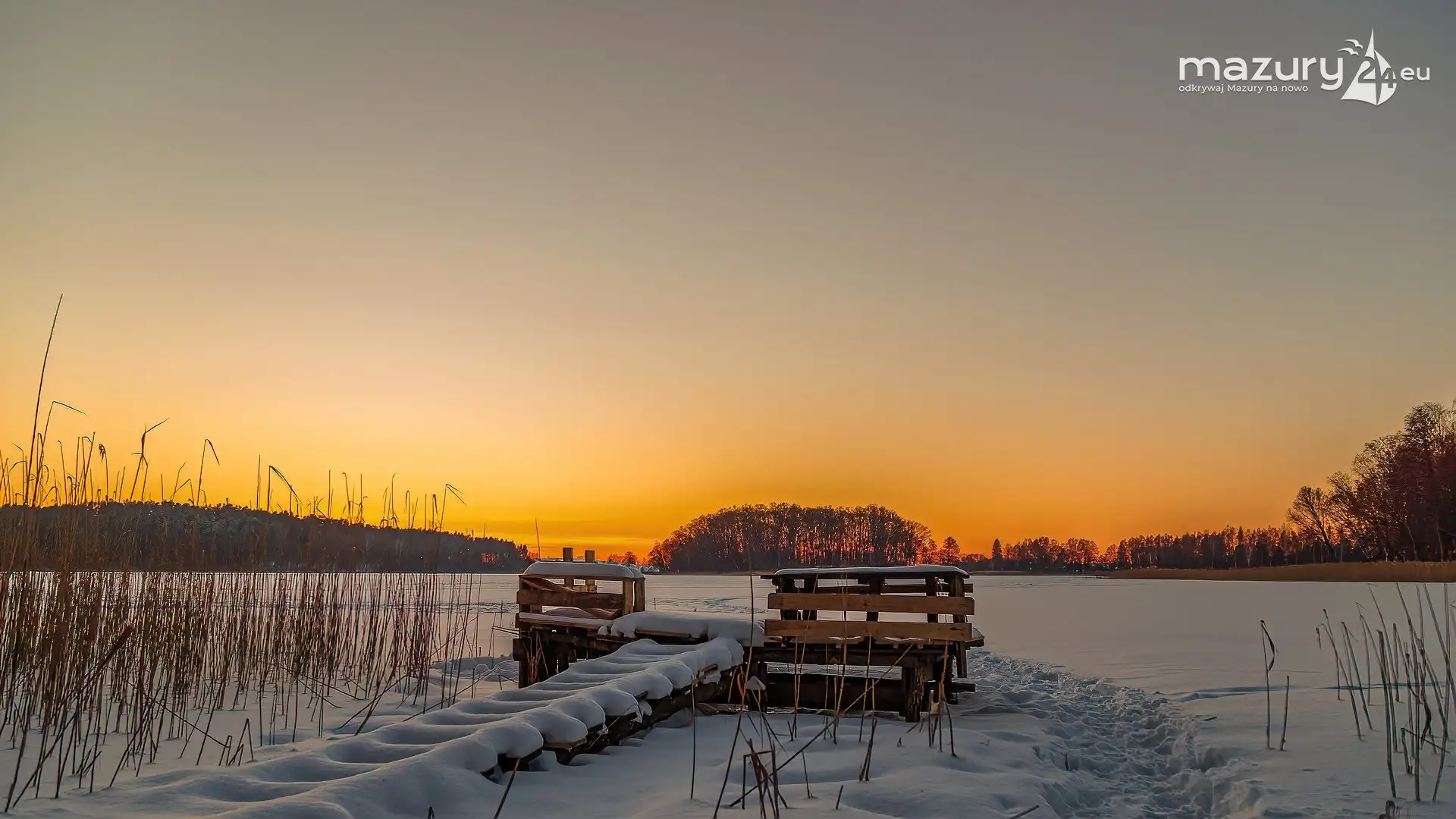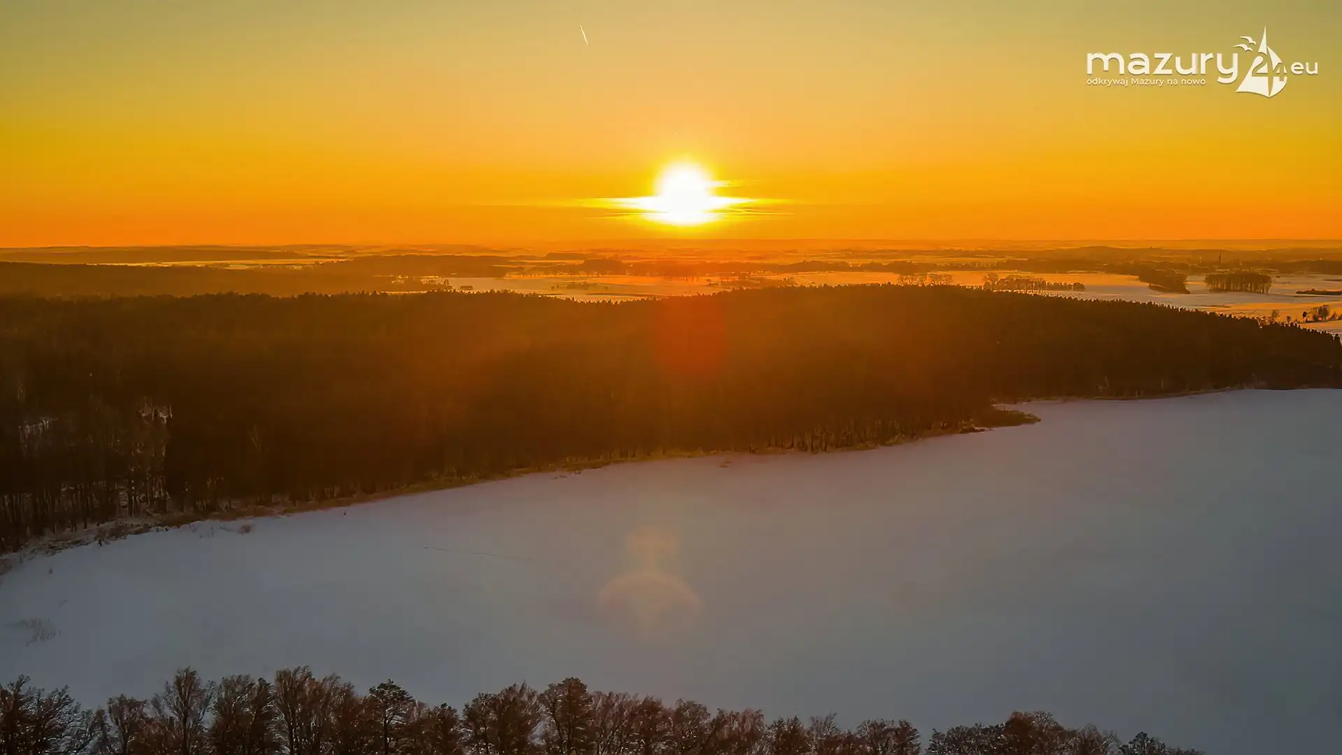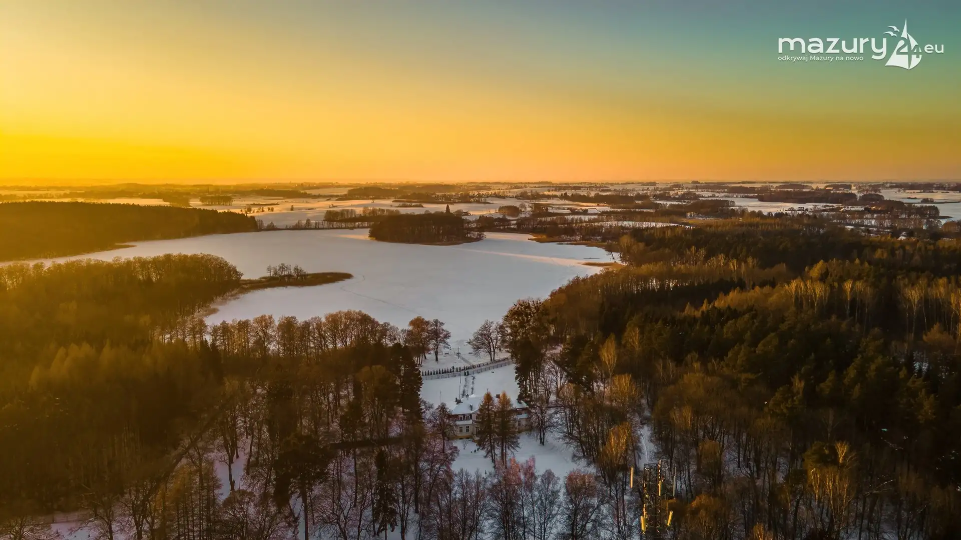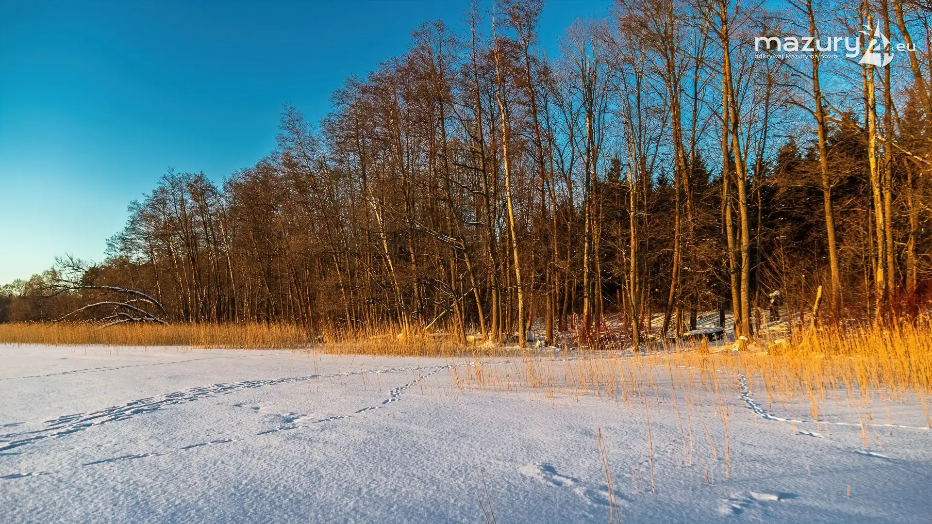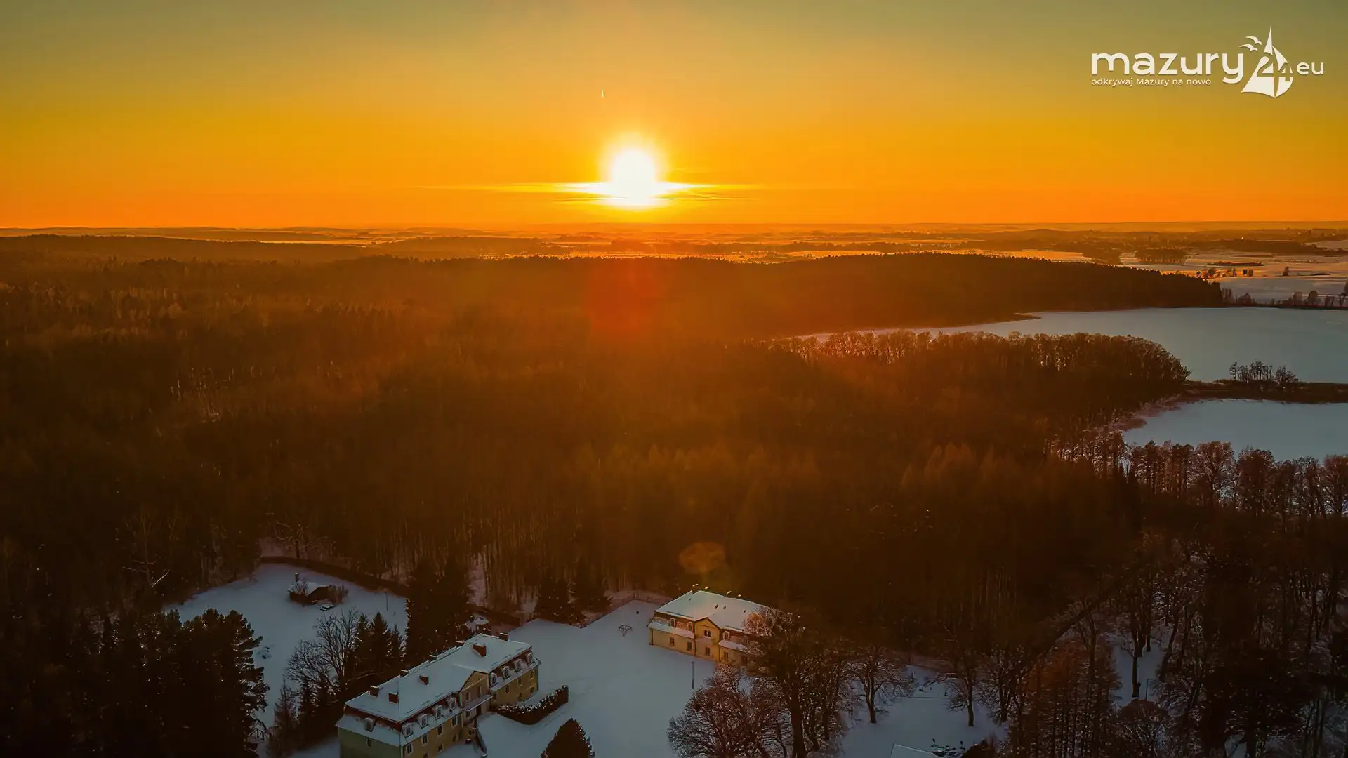 Mimo środka zimy, coraz bliżej wiosny, a już za kilka miesięcy spotkamy się nad mazurskimi jeziorami. Tym bardziej doceńmy kończące się zachody słońca nad zimowym białym puchem. Przed nami duże ocieplenie, a kolejne opady śniegu i mróz mogą nam nie przynieść już takich widoków jak te nad jeziorem Siercze, wykonano koło Księżycowego Dworku.