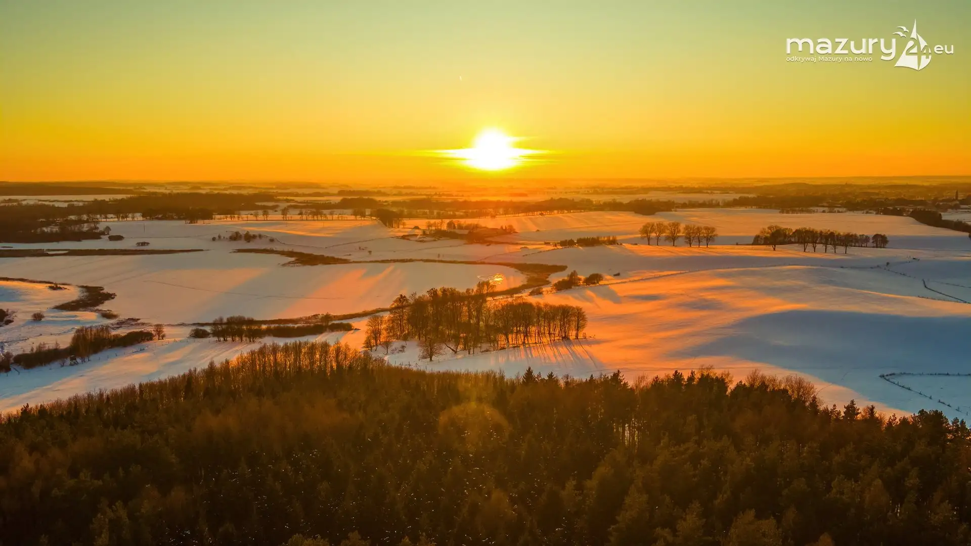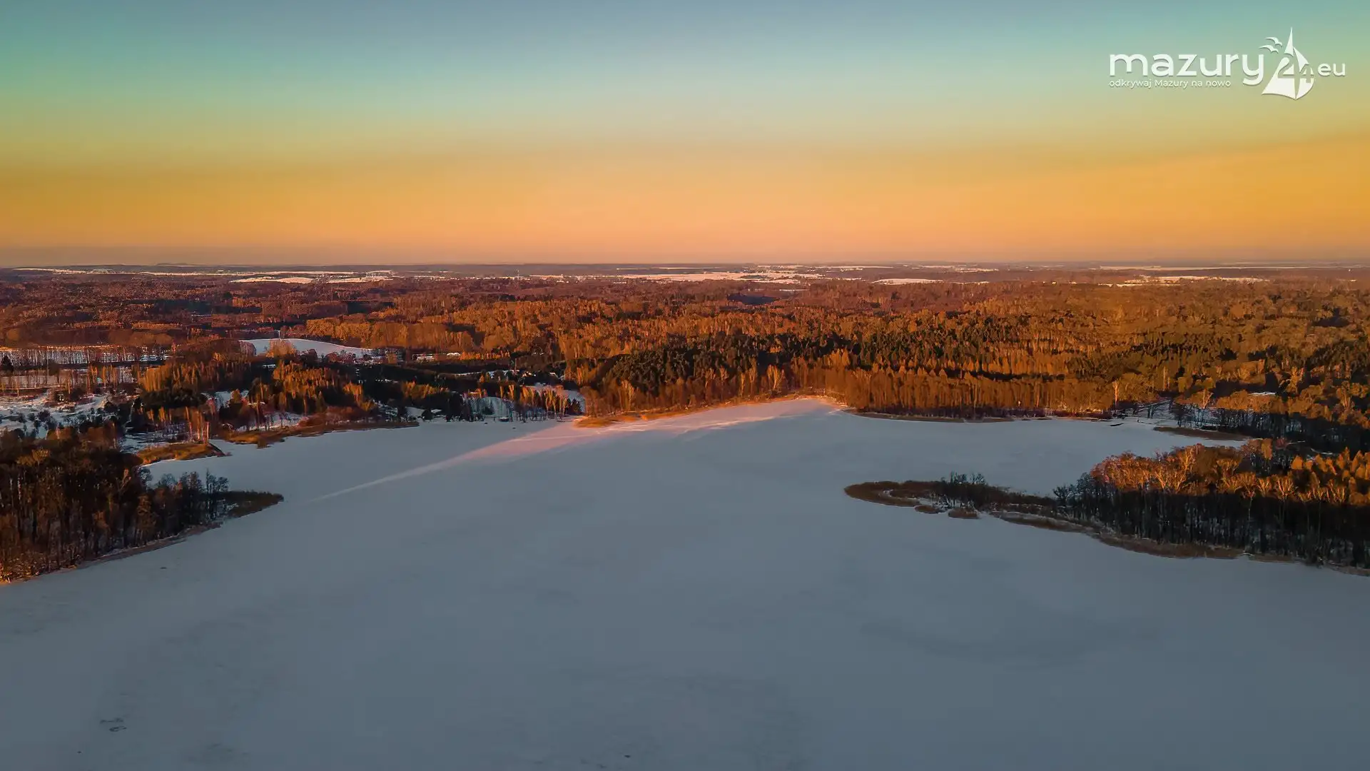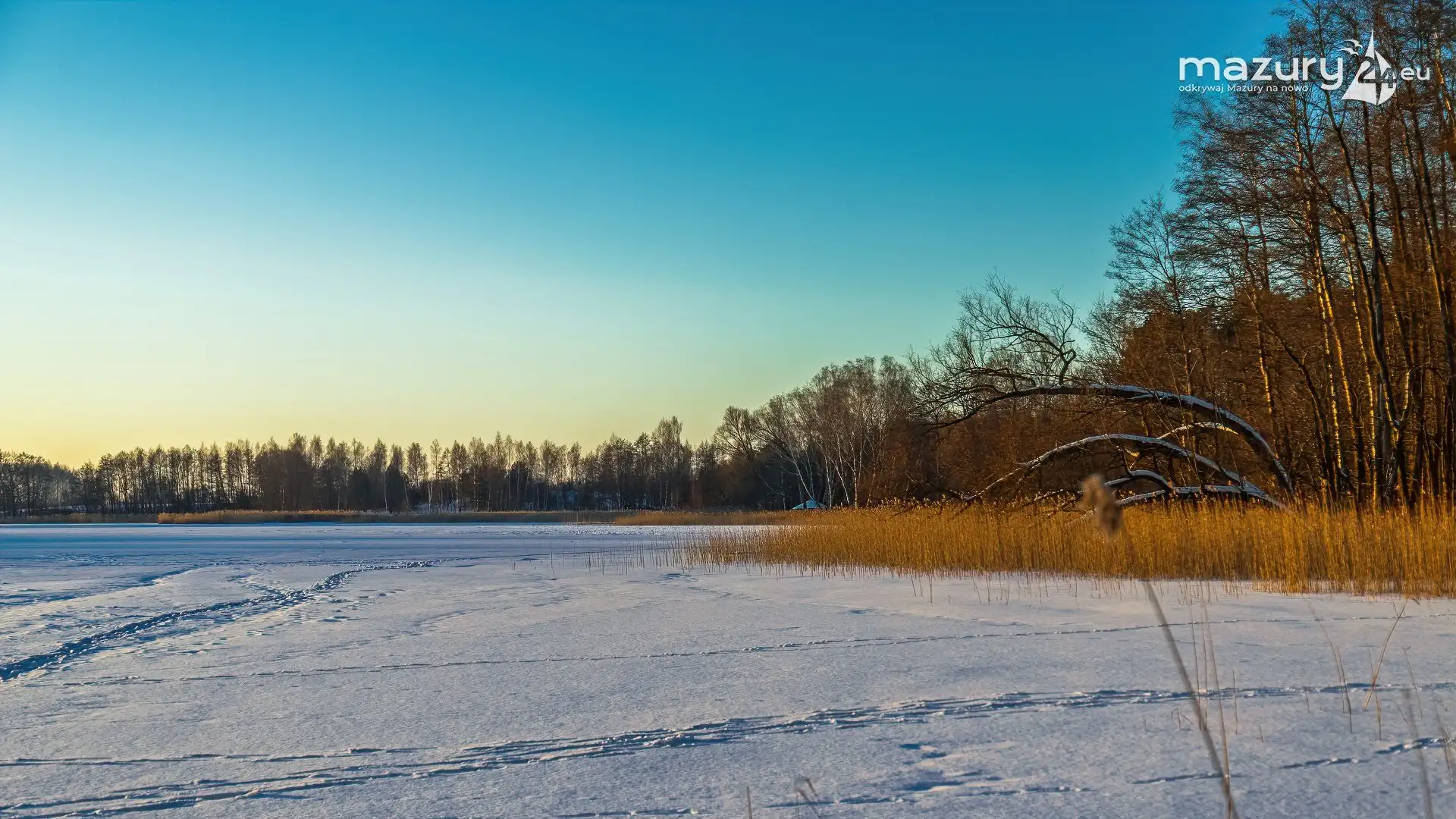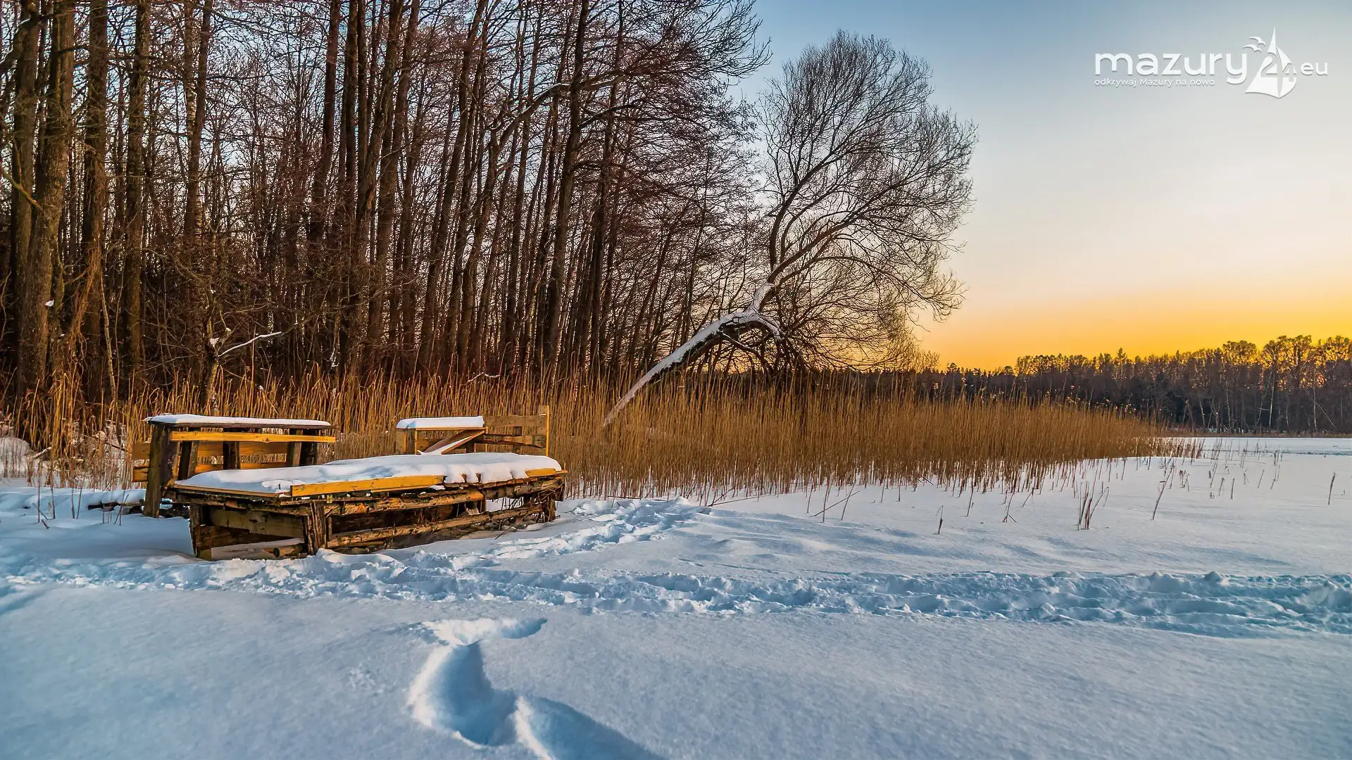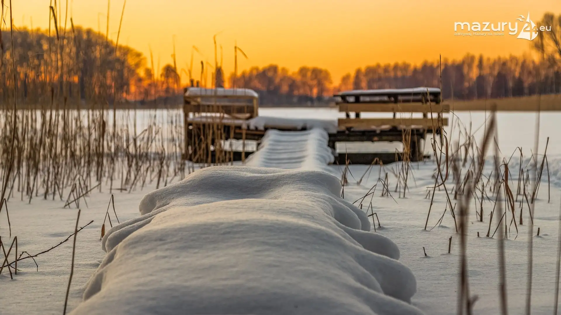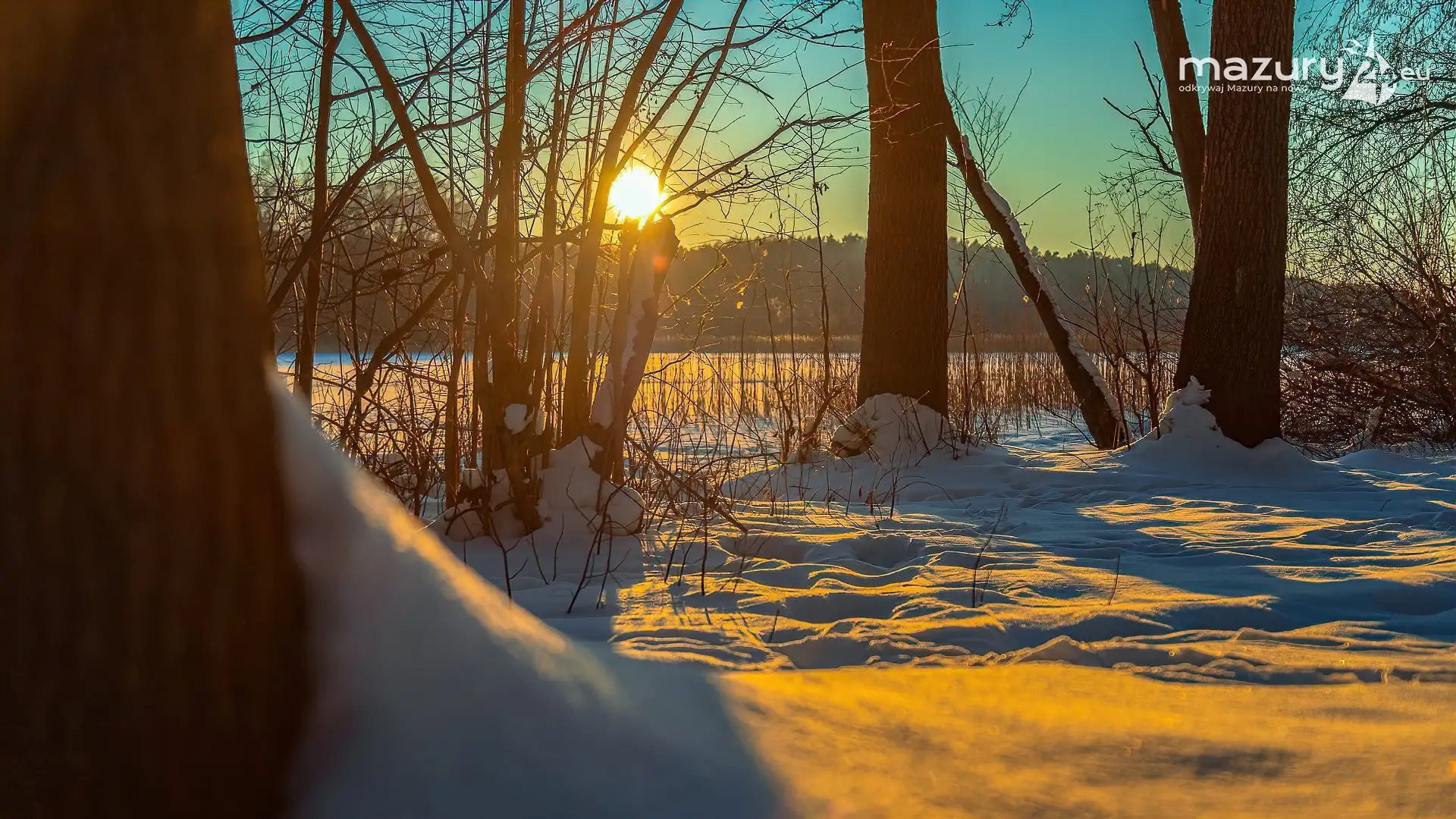 Mimo środka zimy, coraz bliżej wiosny, a już za kilka miesięcy spotkamy się nad mazurskimi jeziorami. Tym bardziej doceńmy kończące się zachody słońca nad zimowym białym puchem. Przed nami duże ocieplenie, a kolejne opady śniegu i mróz mogą nam nie przynieść już takich widoków jak te nad jeziorem Siercze, wykonano koło Księżycowego Dworku.