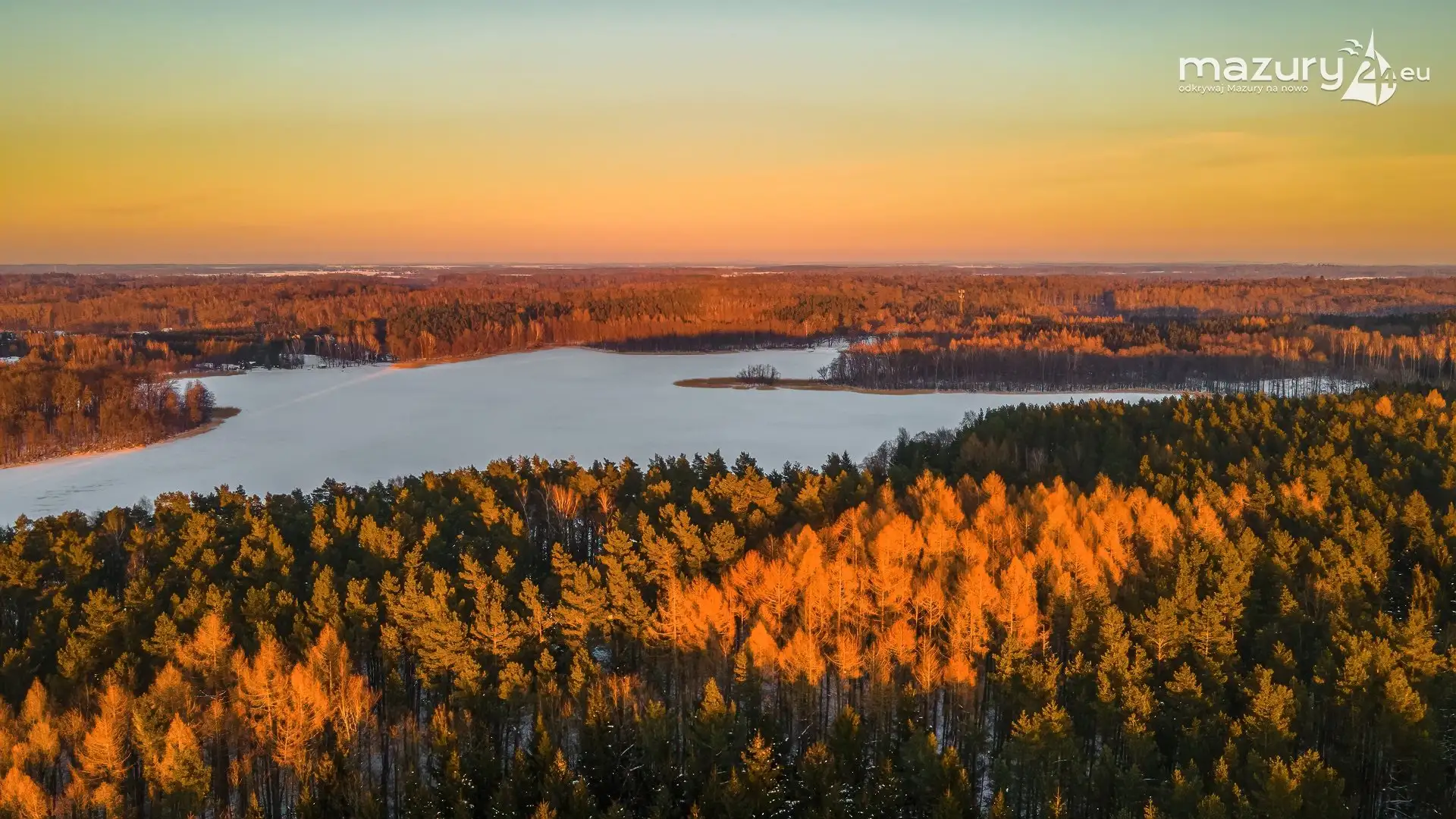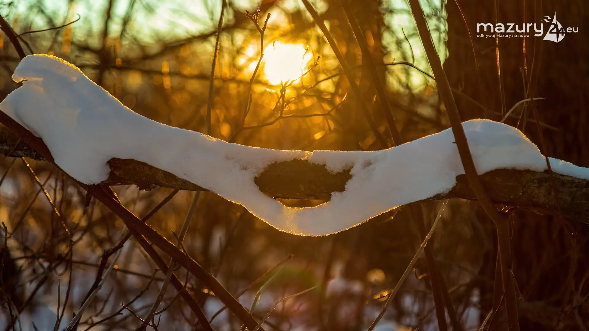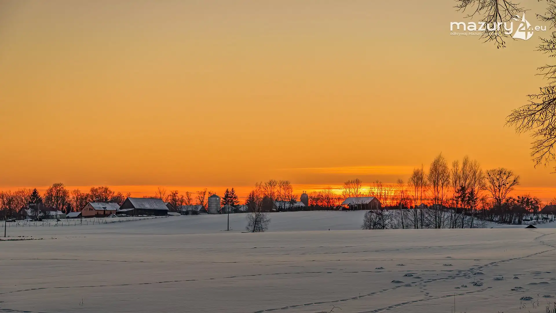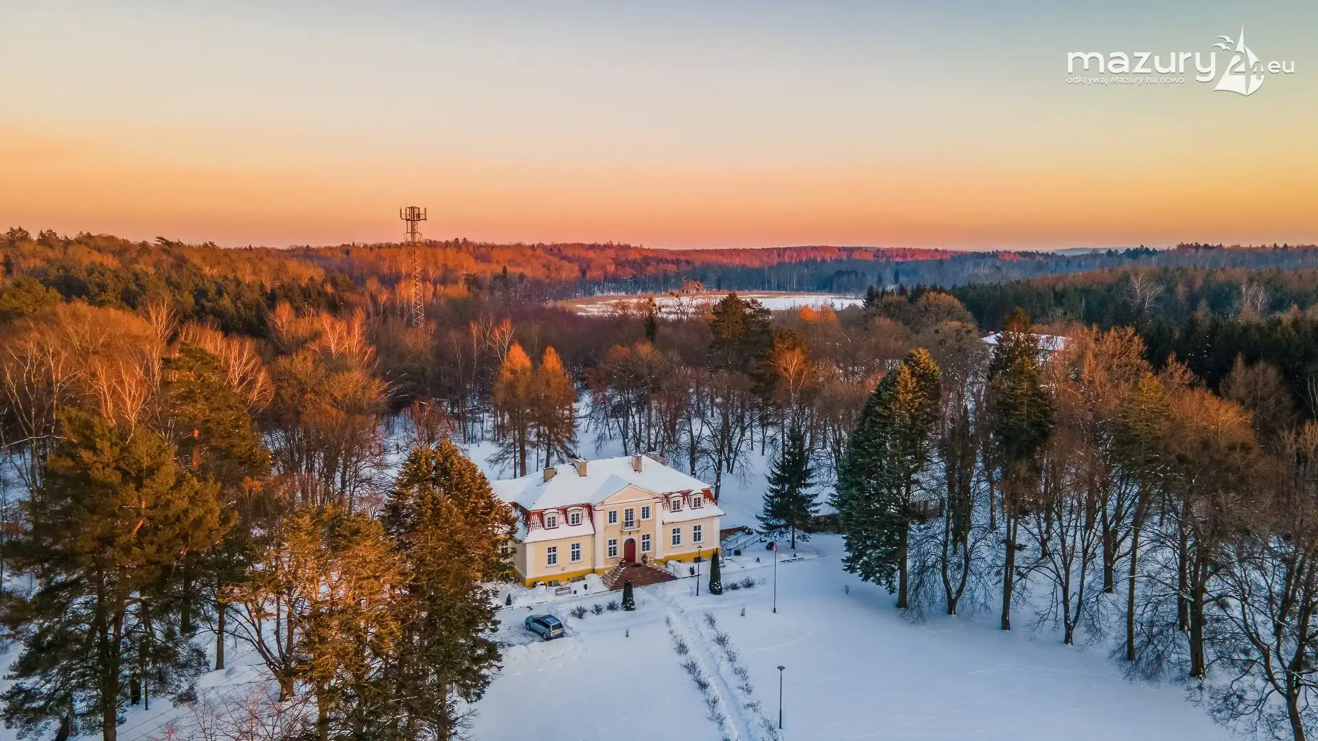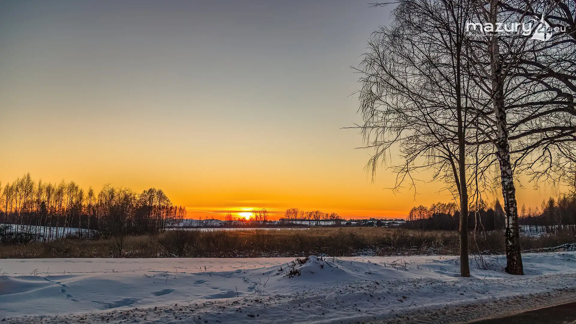 Mimo środka zimy, coraz bliżej wiosny, a już za kilka miesięcy spotkamy się nad mazurskimi jeziorami. Tym bardziej doceńmy kończące się zachody słońca nad zimowym białym puchem. Przed nami duże ocieplenie, a kolejne opady śniegu i mróz mogą nam nie przynieść już takich widoków jak te nad jeziorem Siercze, wykonano koło Księżycowego Dworku.