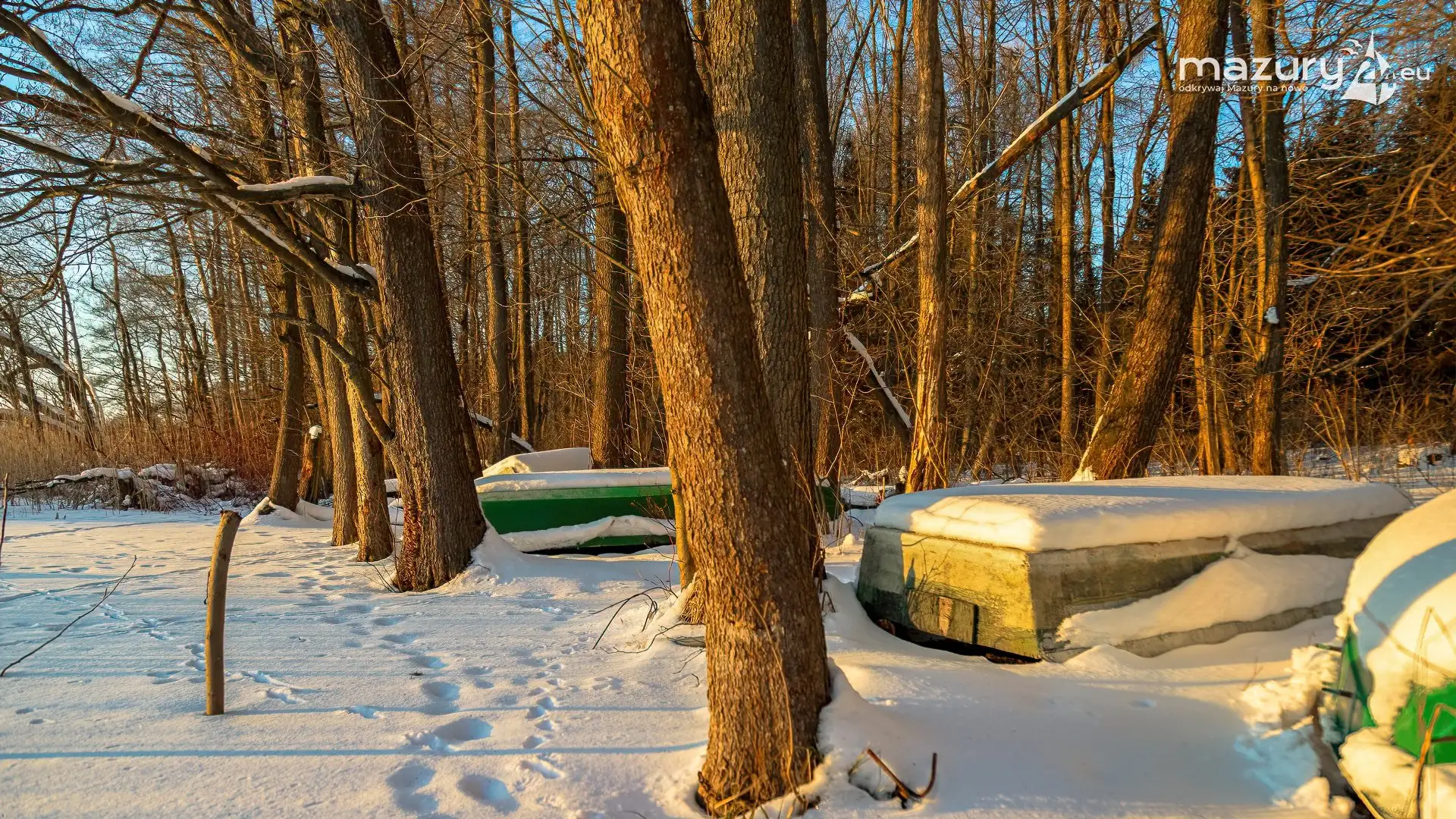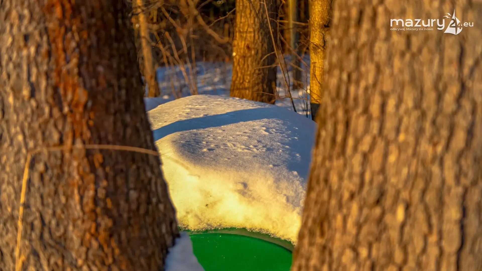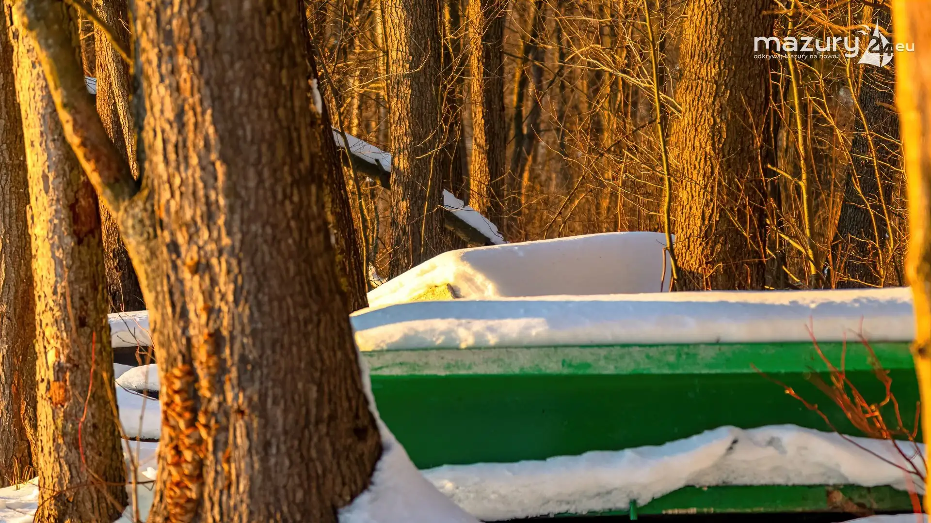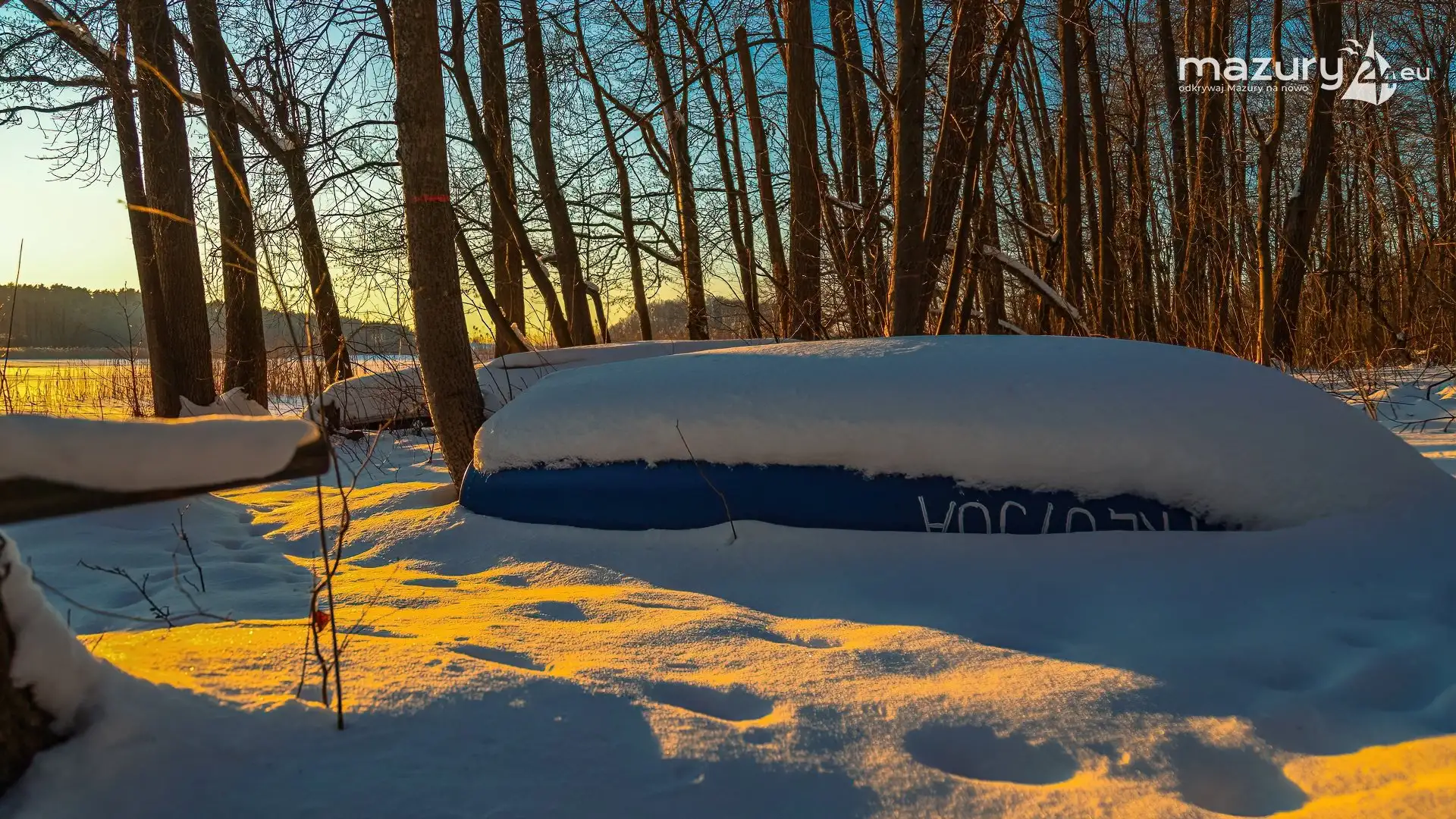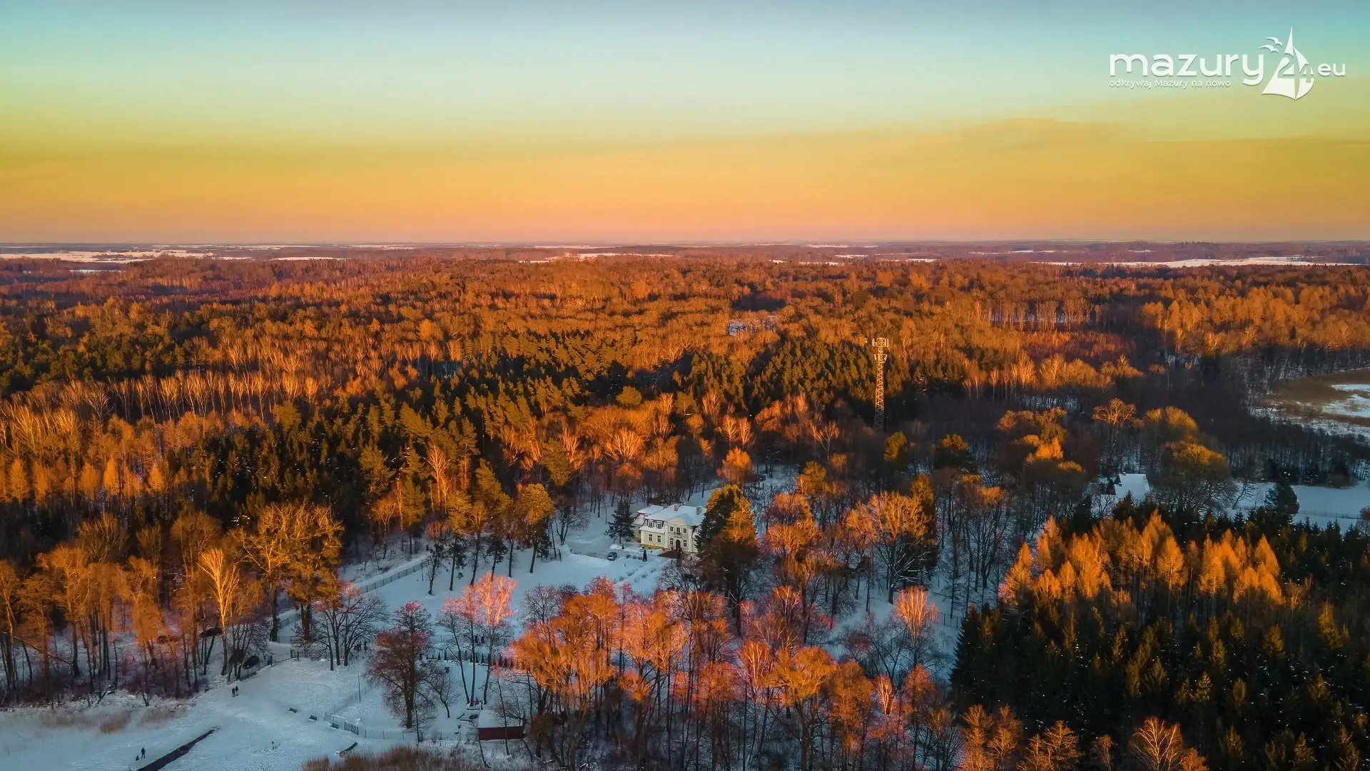 Mimo środka zimy, coraz bliżej wiosny, a już za kilka miesięcy spotkamy się nad mazurskimi jeziorami. Tym bardziej doceńmy kończące się zachody słońca nad zimowym białym puchem. Przed nami duże ocieplenie, a kolejne opady śniegu i mróz mogą nam nie przynieść już takich widoków jak te nad jeziorem Siercze, wykonano koło Księżycowego Dworku.
