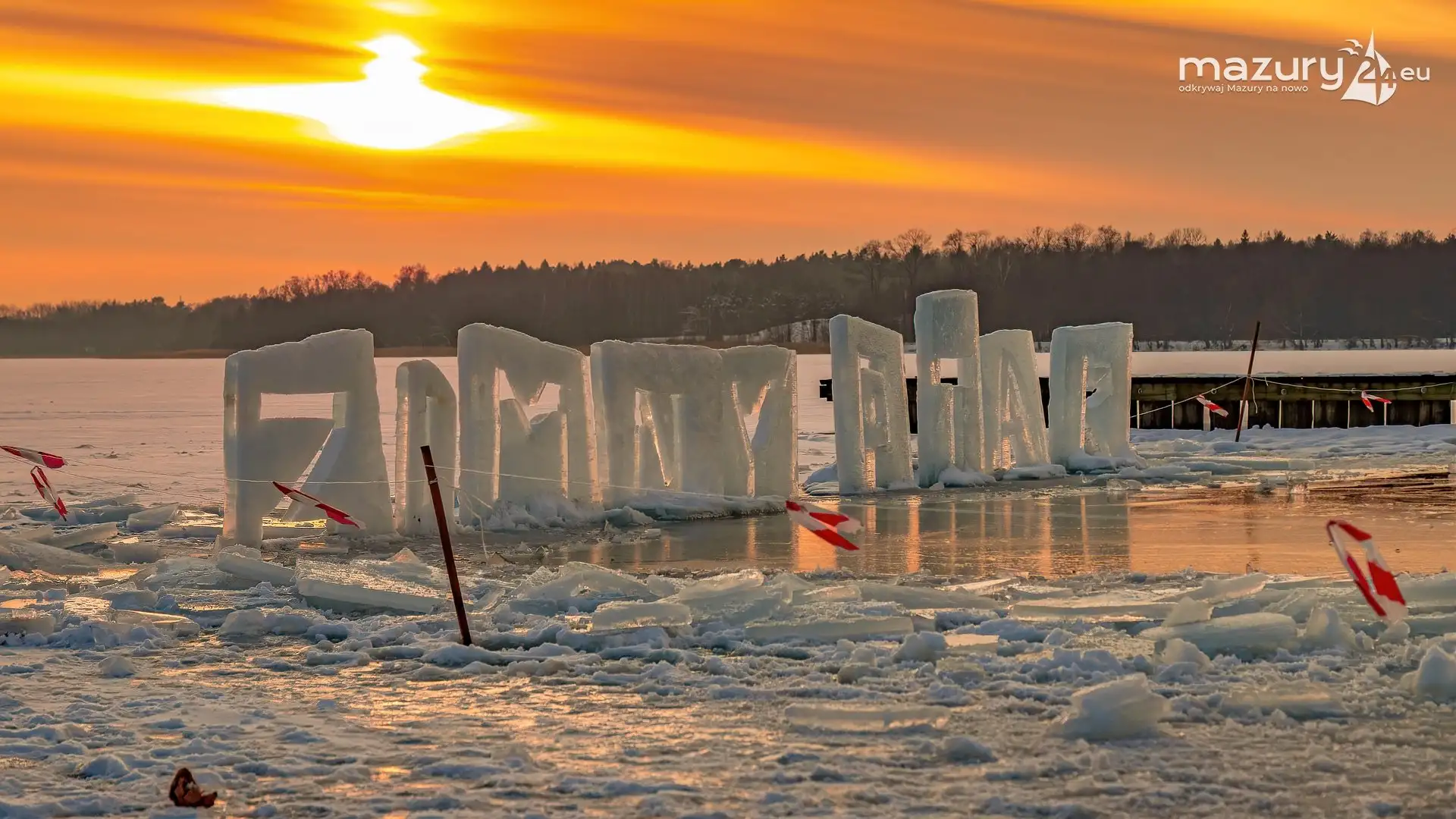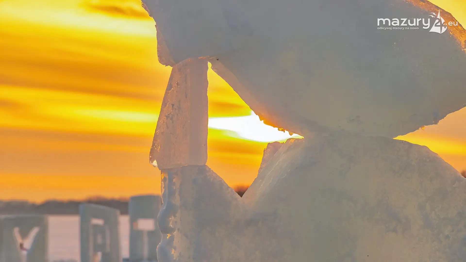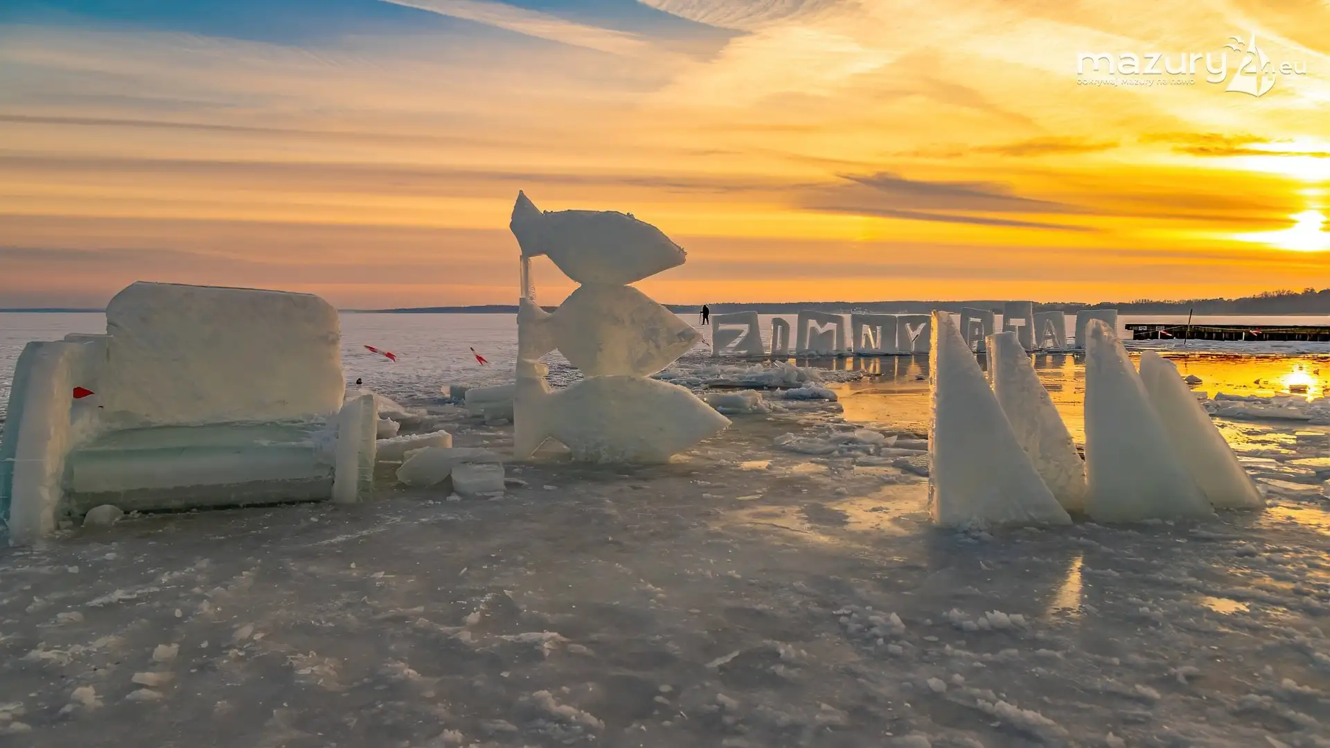Pięknej zimy skąpanej w zachodach słońca ciąg dalszy. Tym razem nie szukaliśmy magii przy małych pomostach i mniej znanych jeziorach - znaleźliśmy ją na plaży w Giżycku nad jeziorem Niegocin. Przy okazji udało nam się sfotografować aranżację artystyczną wykutą w lodzie wykonaną przez Giżycki Klub Morsów "Zimny Ptak". Reszta komentarza wydaje się zbędna - zobaczcie sami.