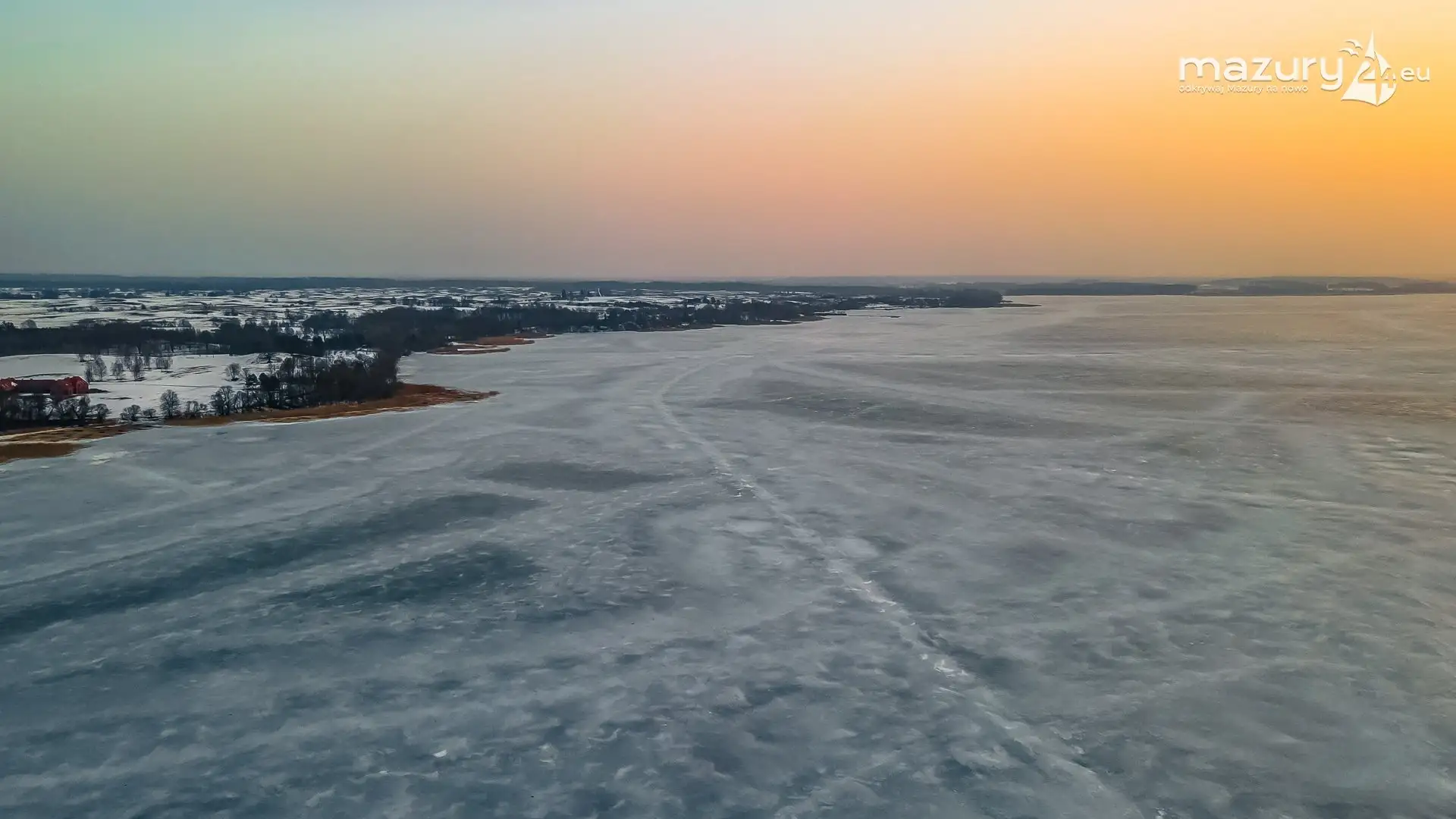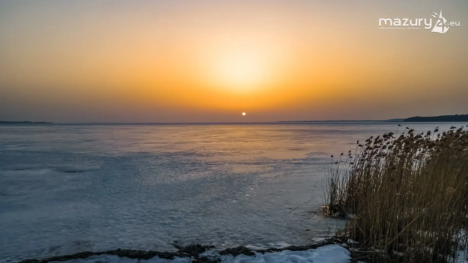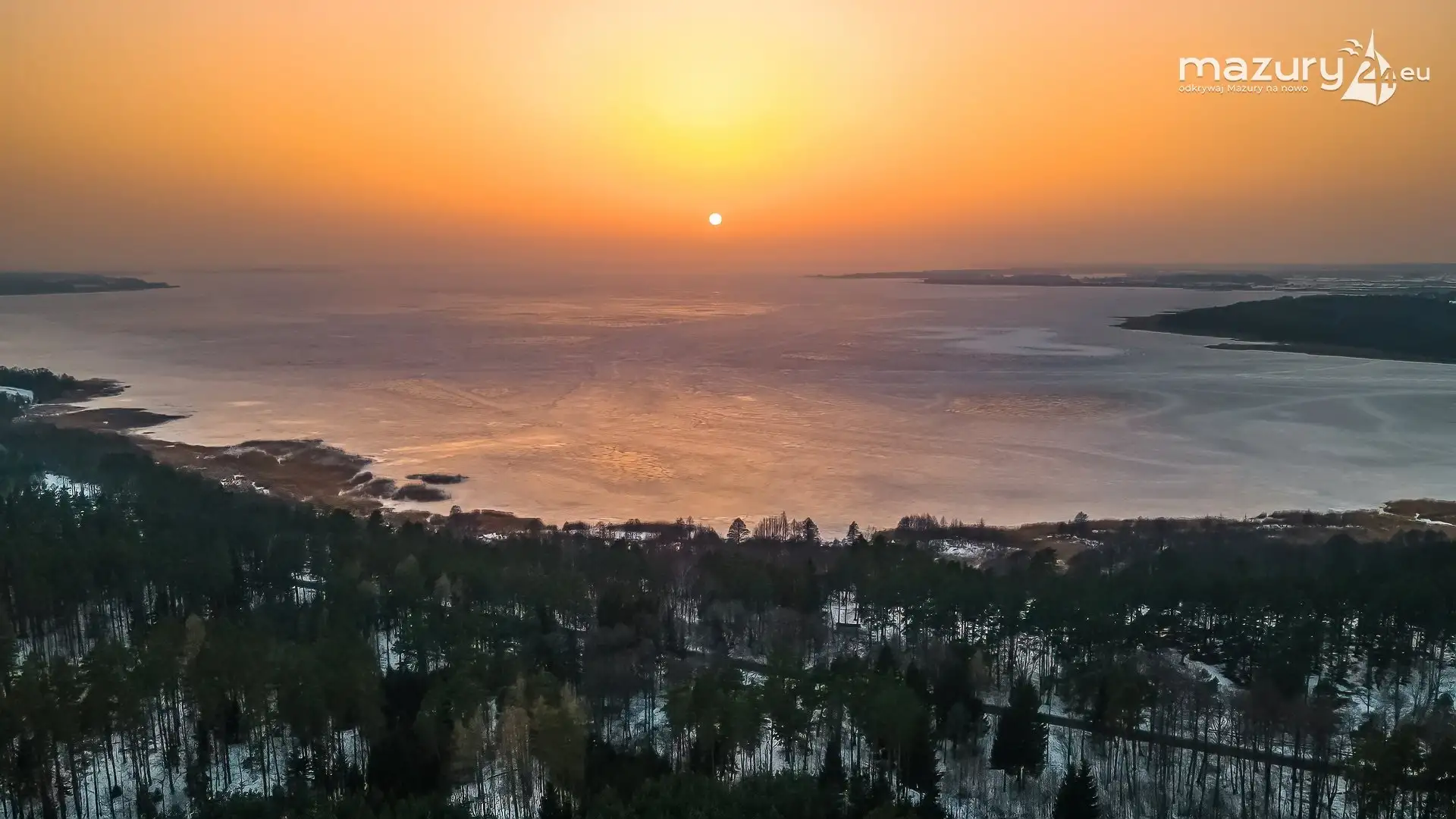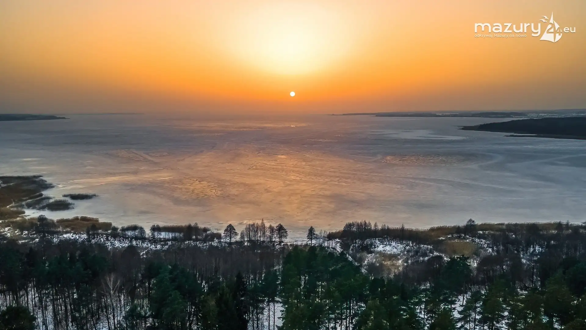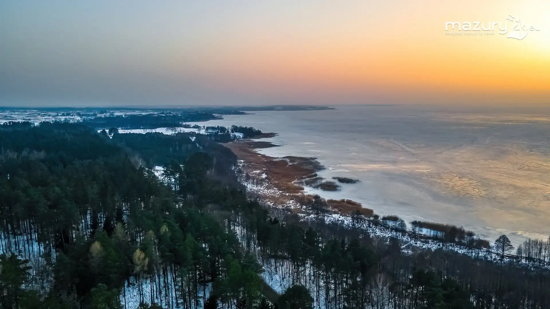 Zimowy zachód słońca nad jeziorem Śniardwy