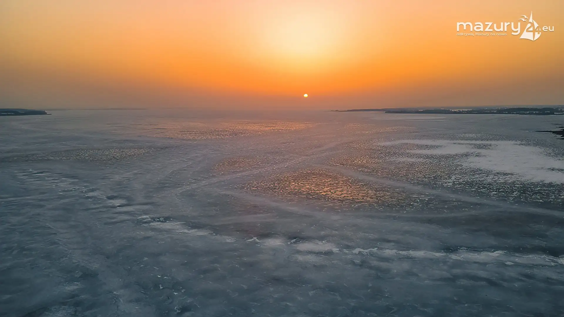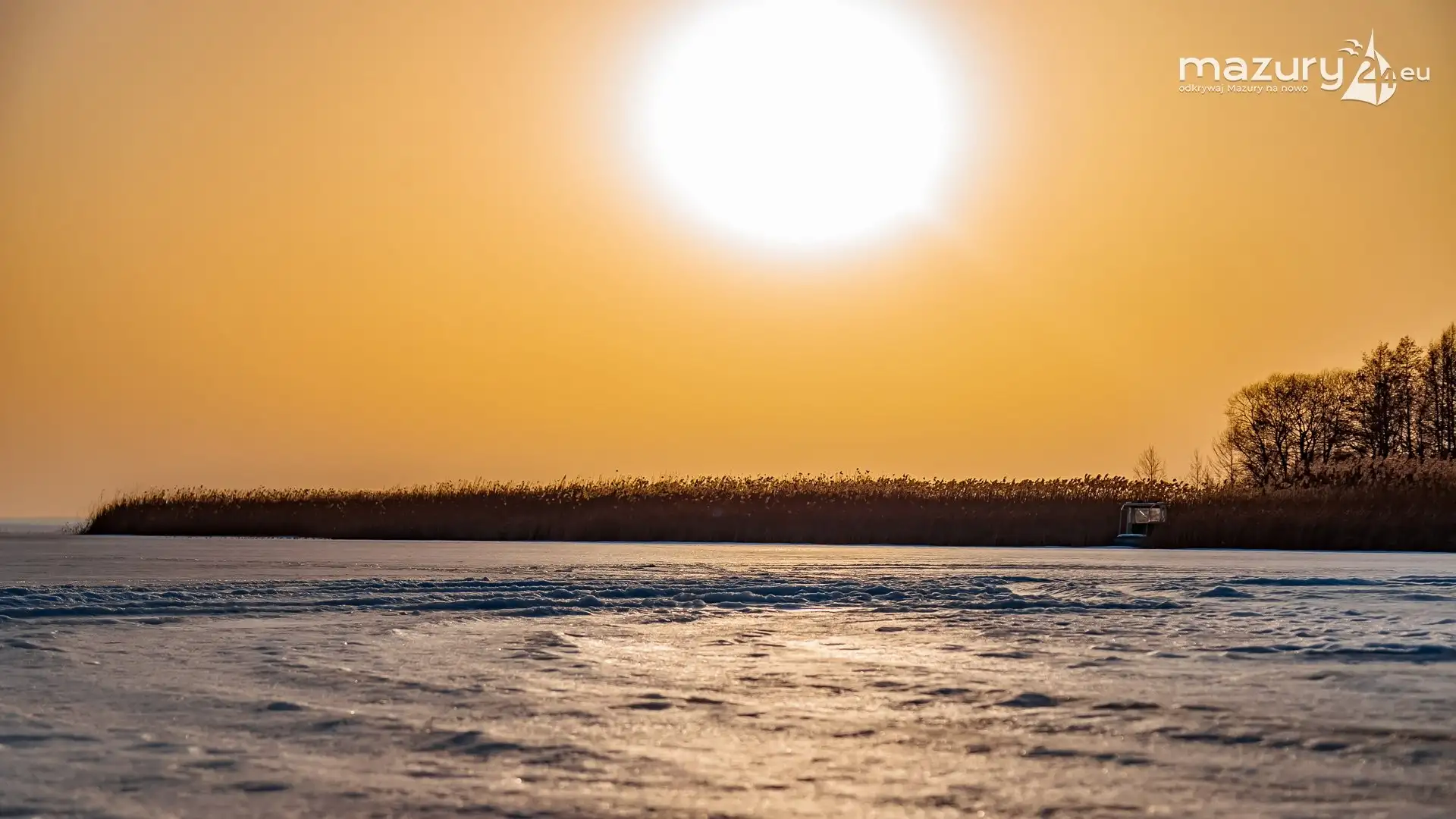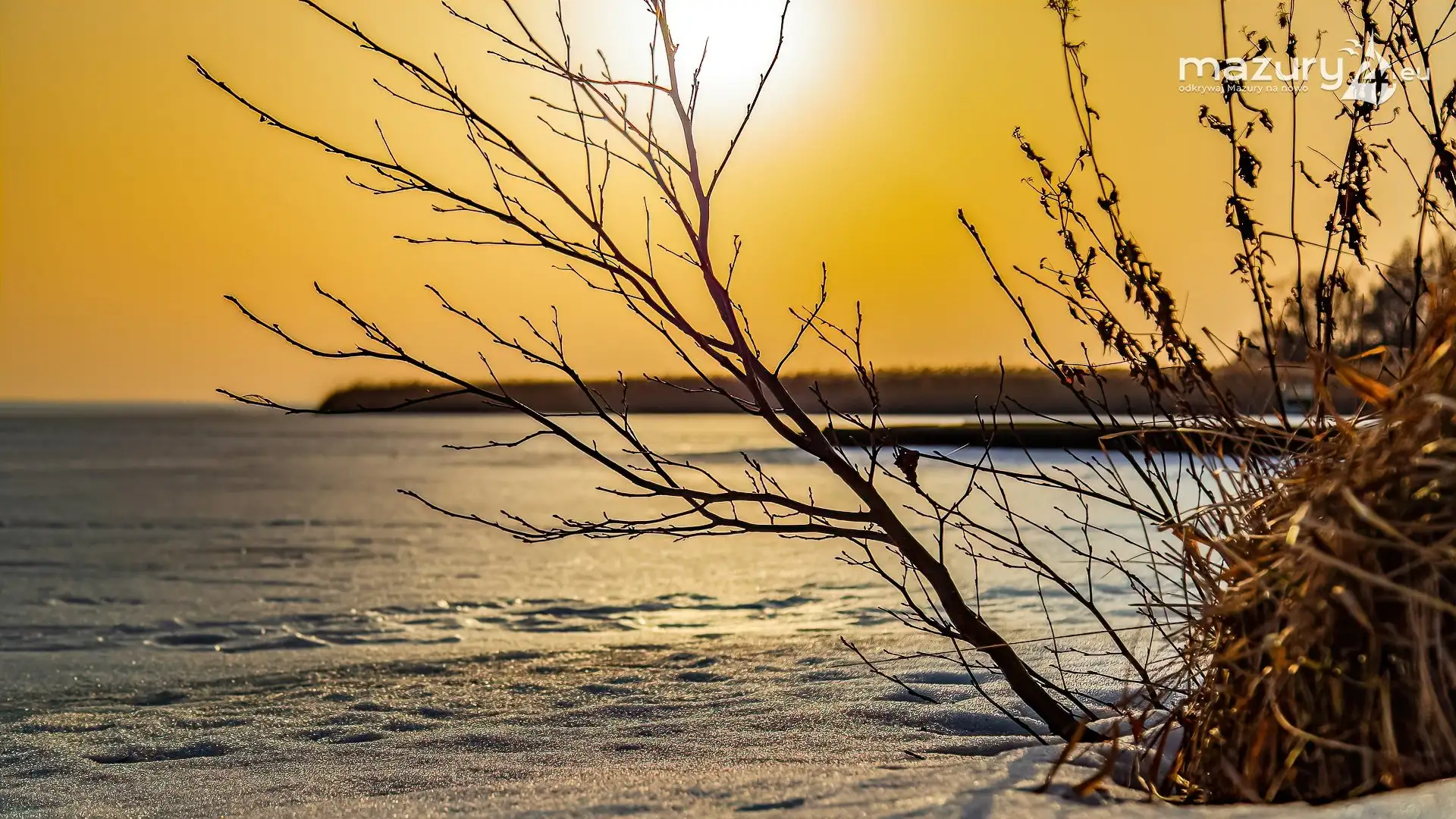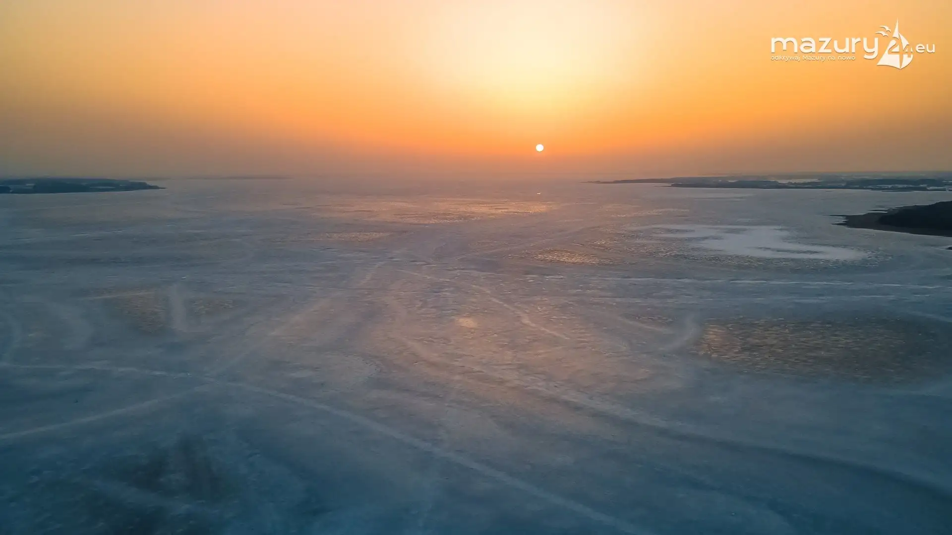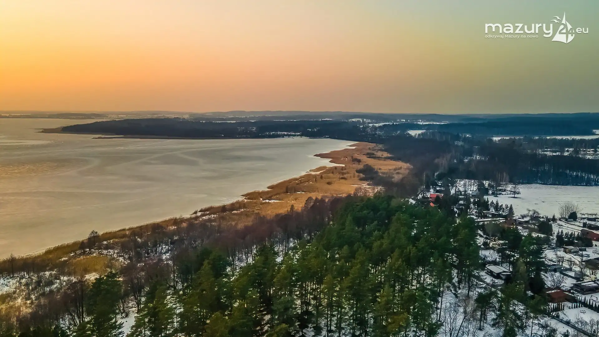 Zimowy zachód słońca nad jeziorem Śniardwy
