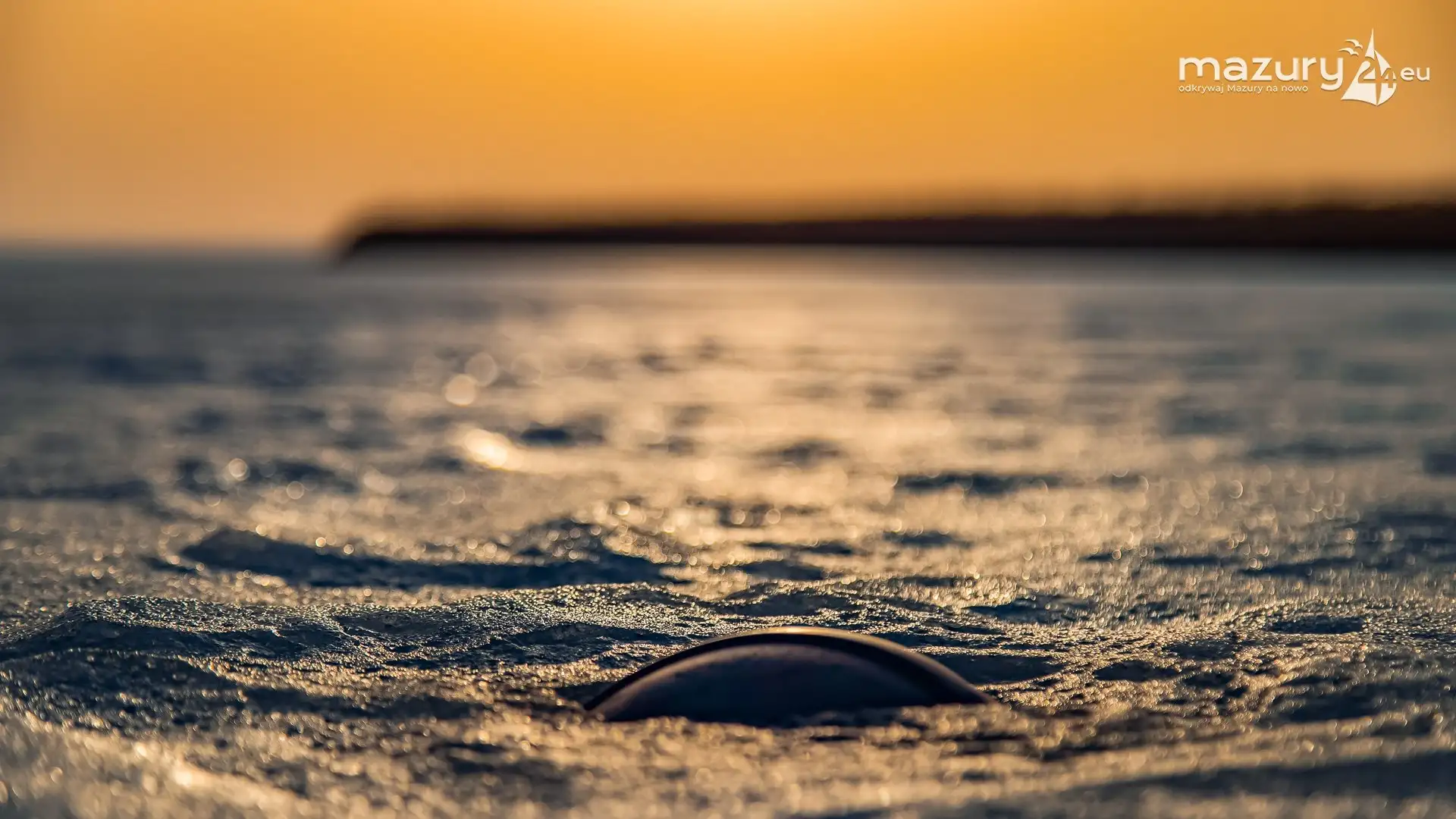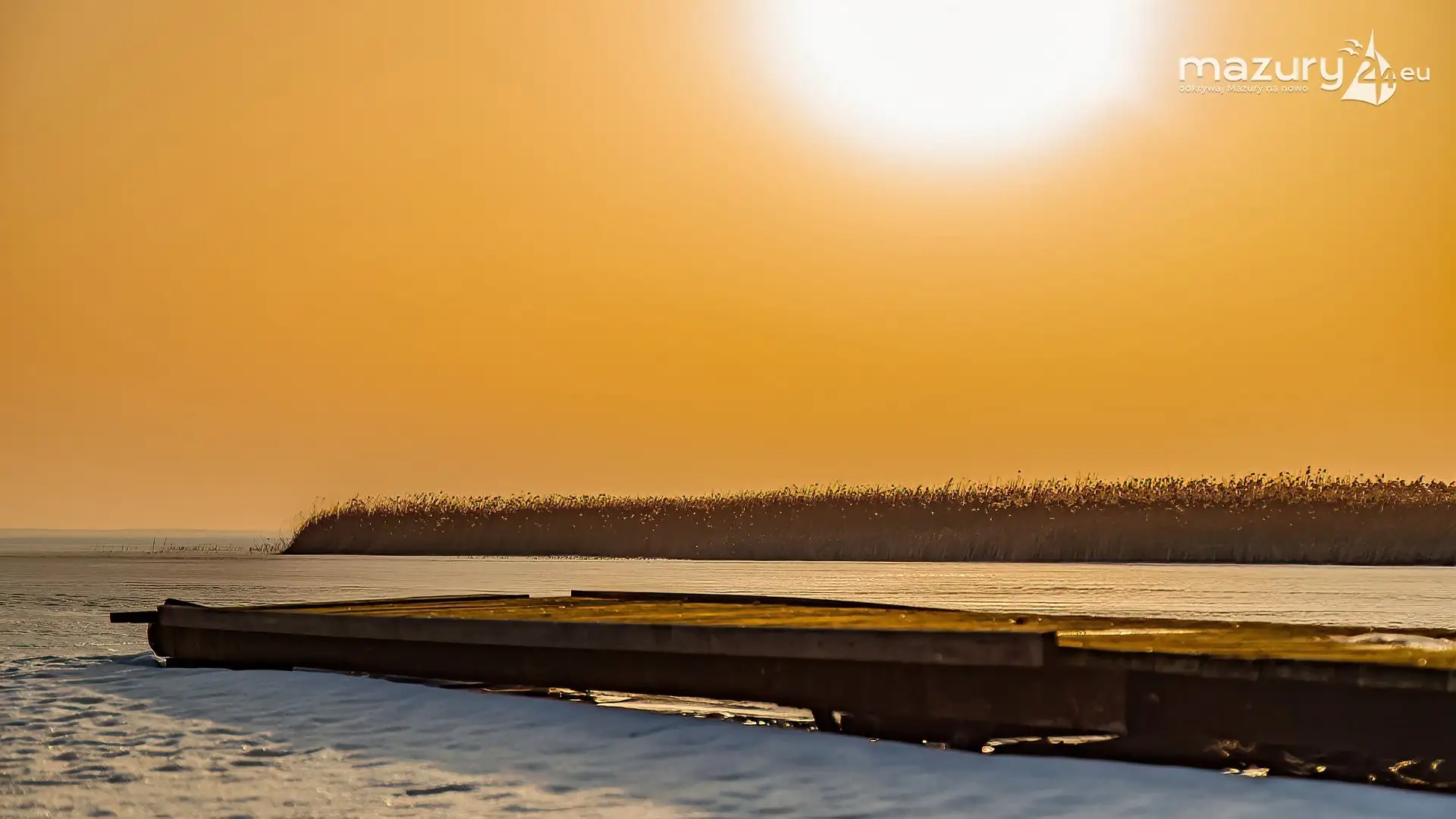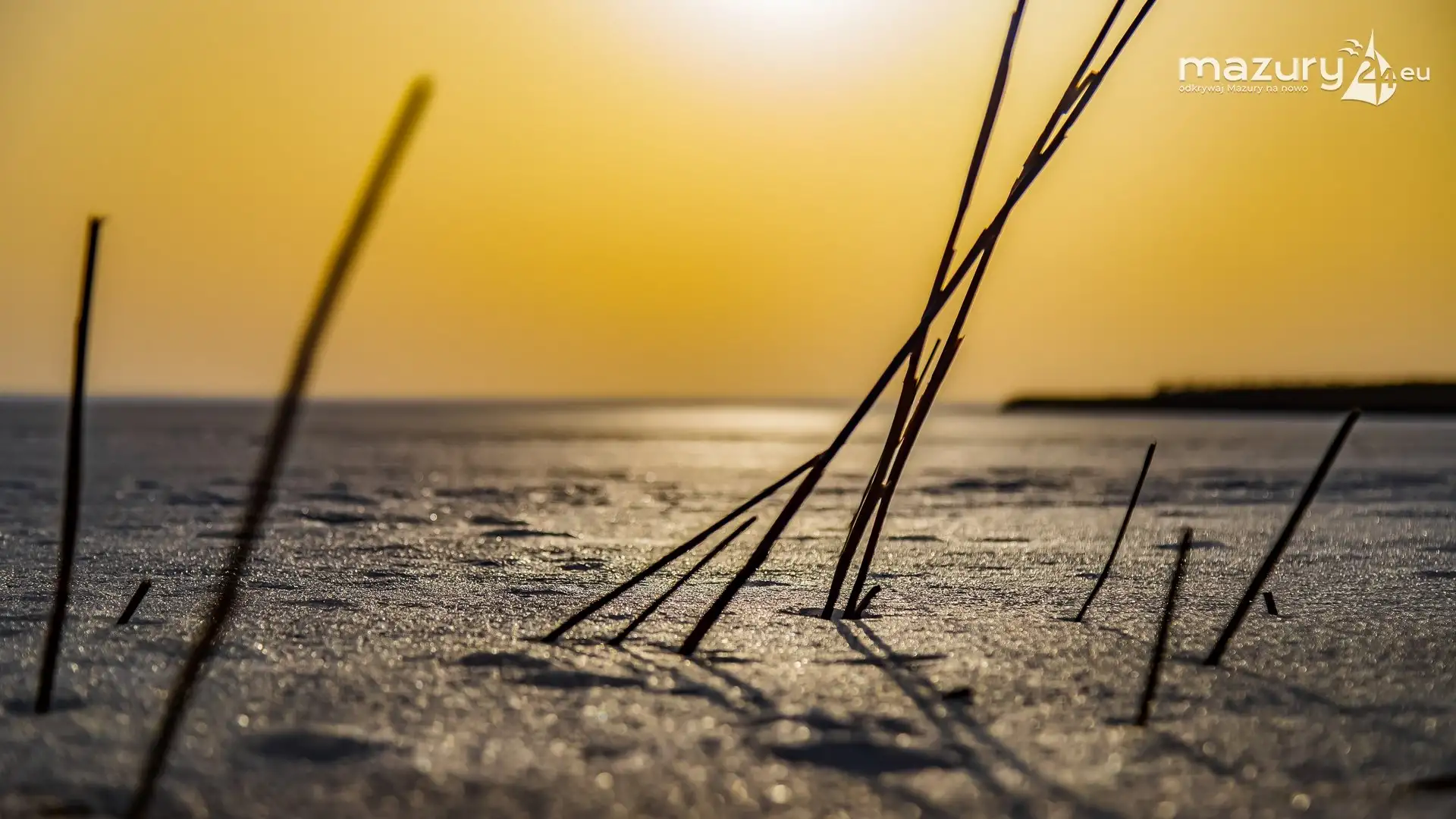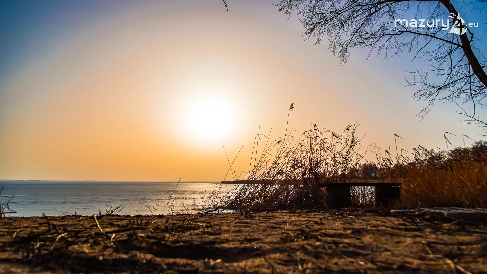 Zimowy zachód słońca nad jeziorem Śniardwy