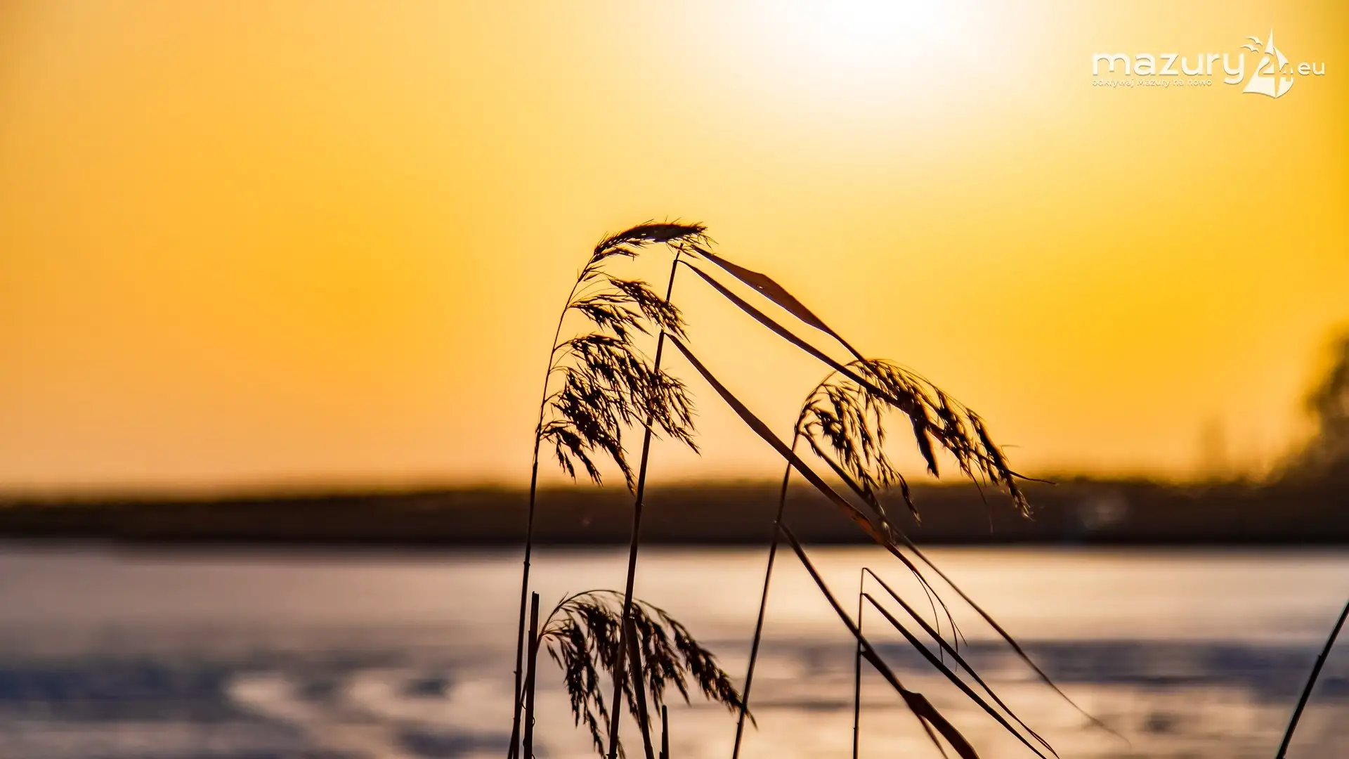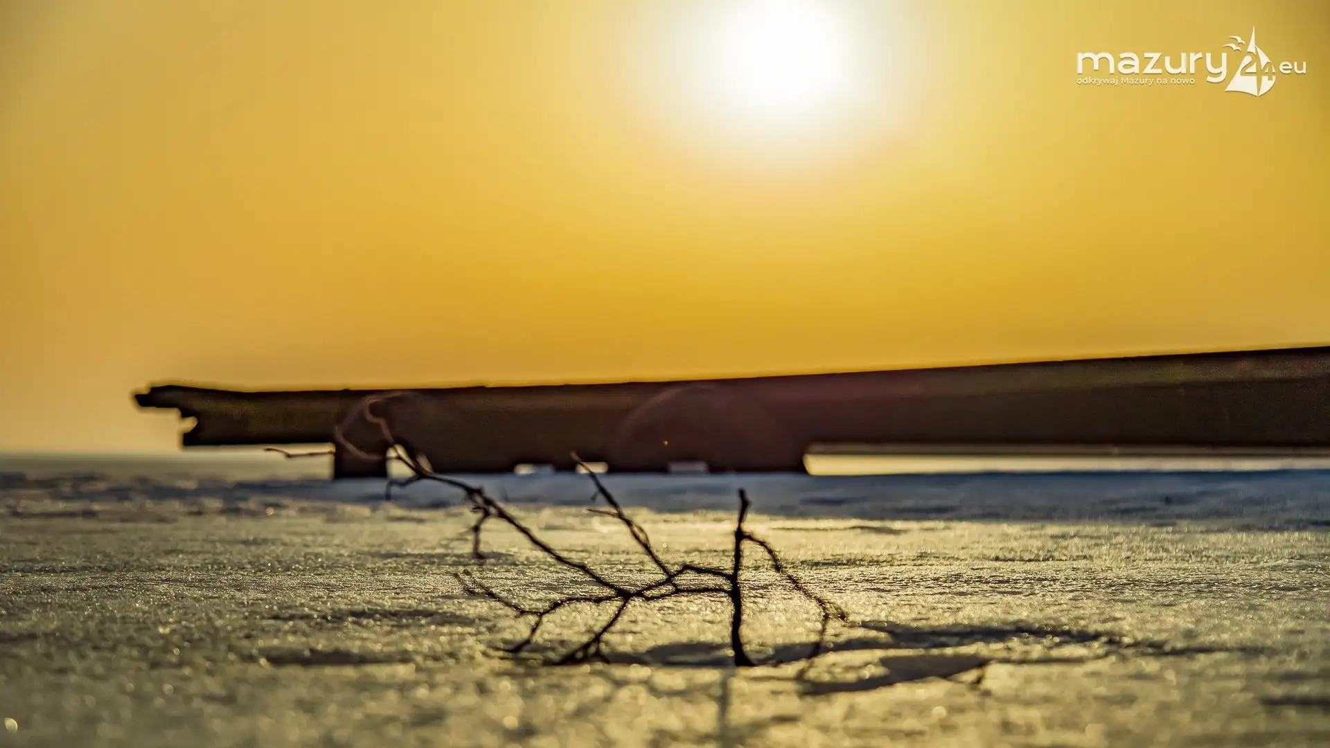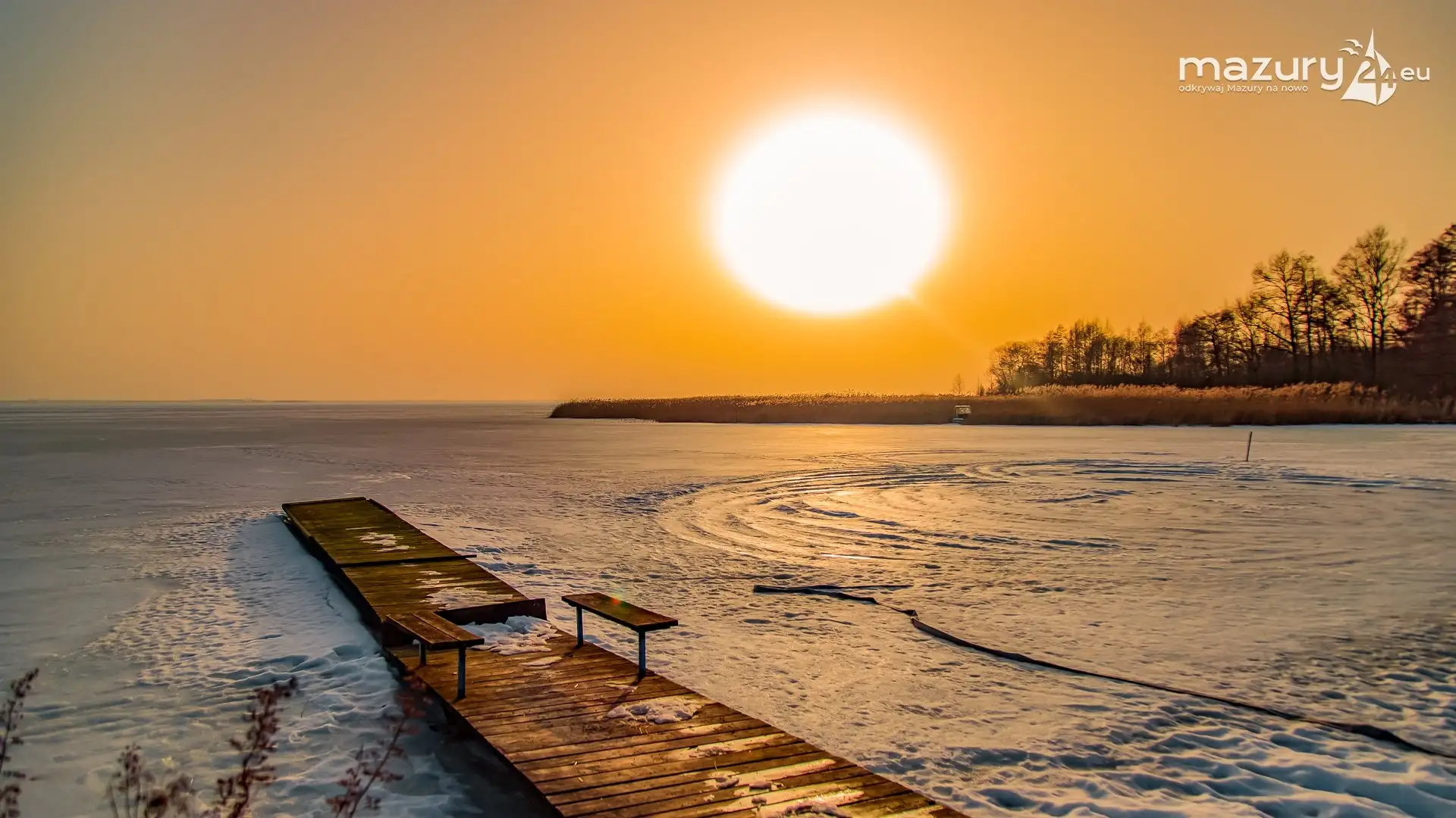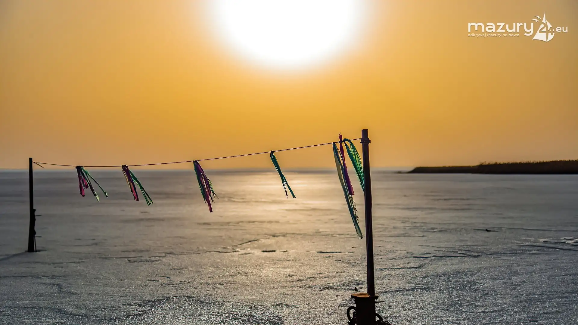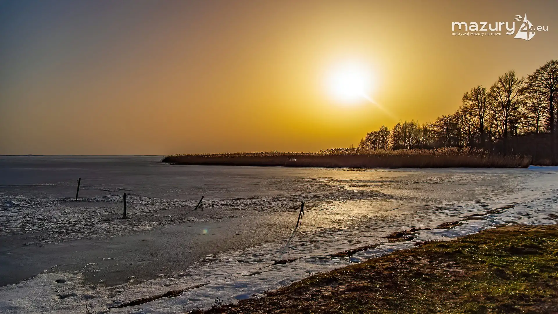 Zimowy zachód słońca nad jeziorem Śniardwy