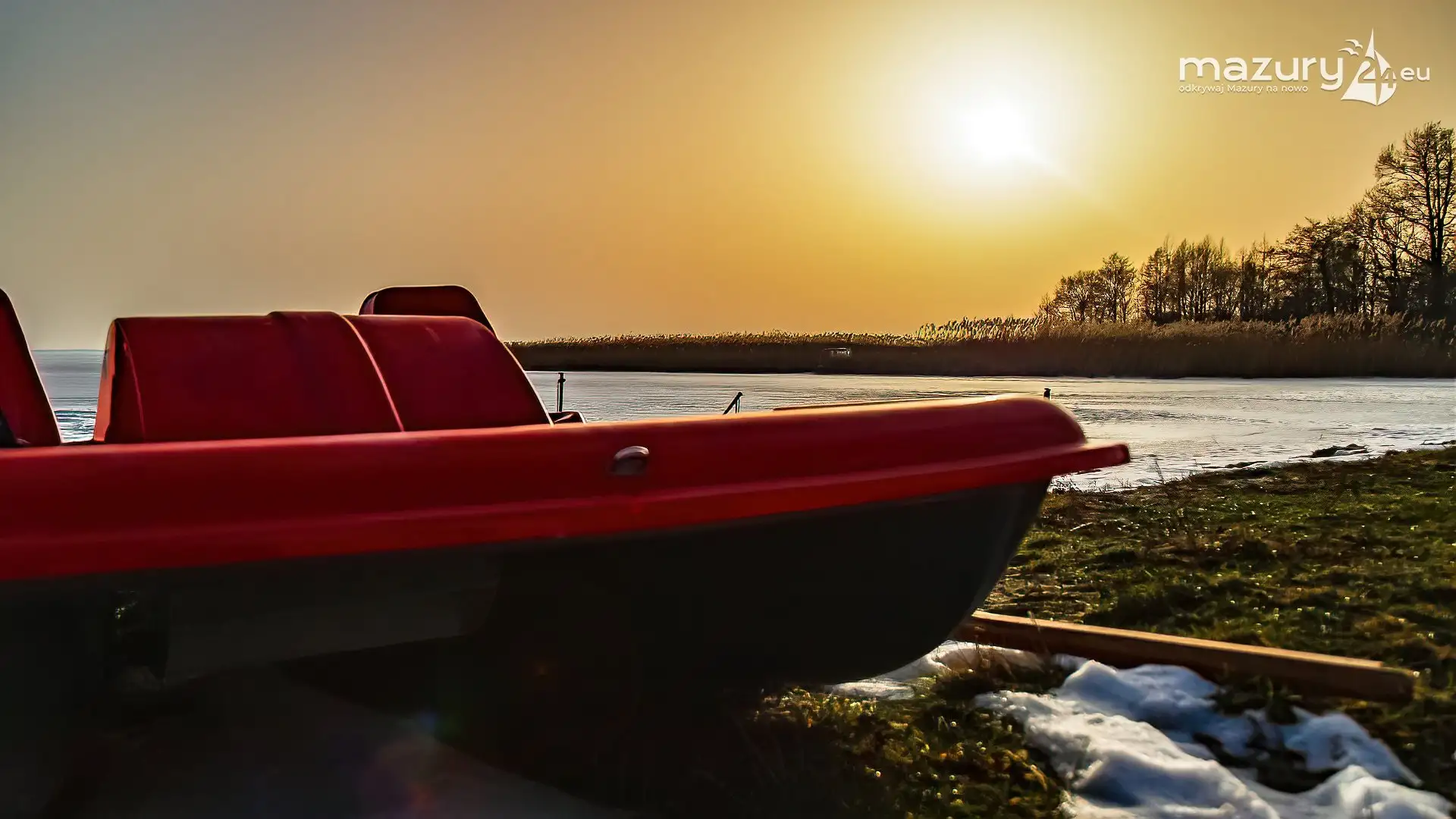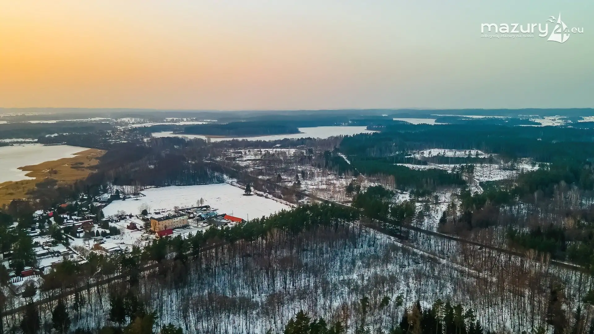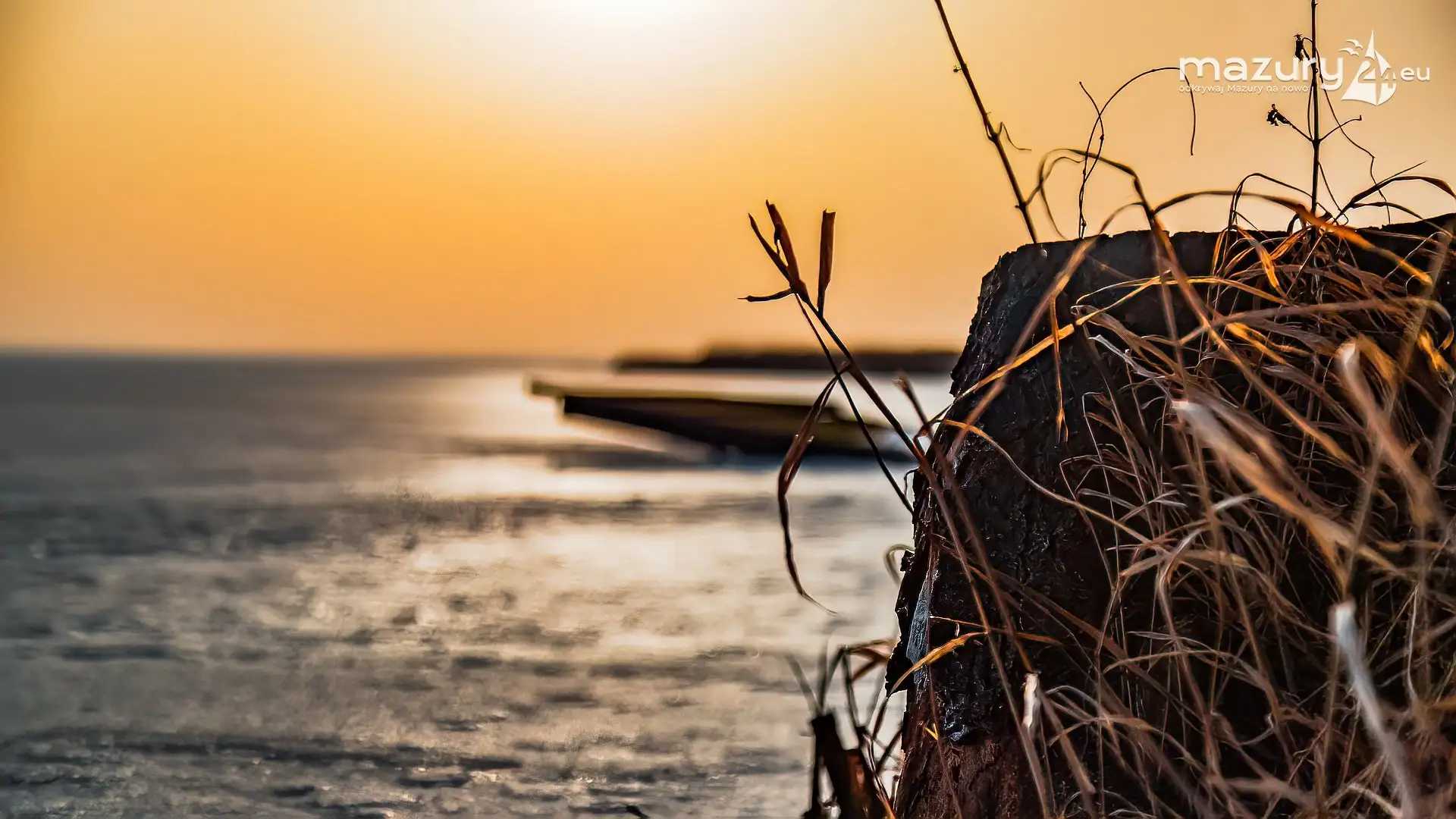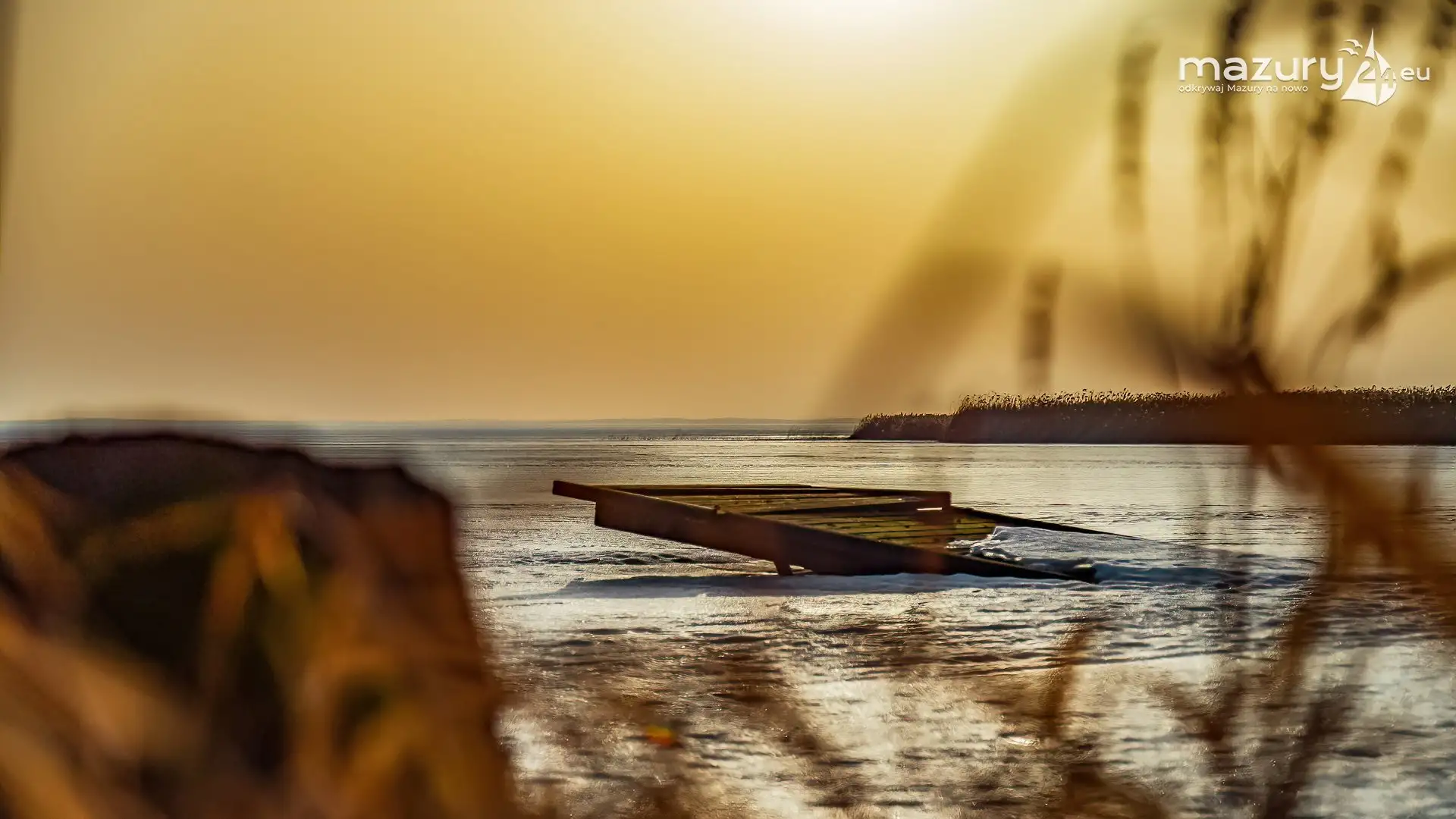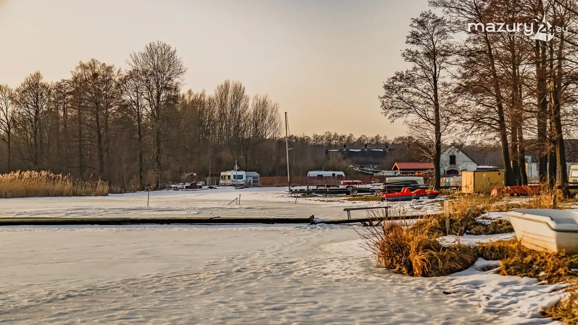 Zimowy zachód słońca nad jeziorem Śniardwy