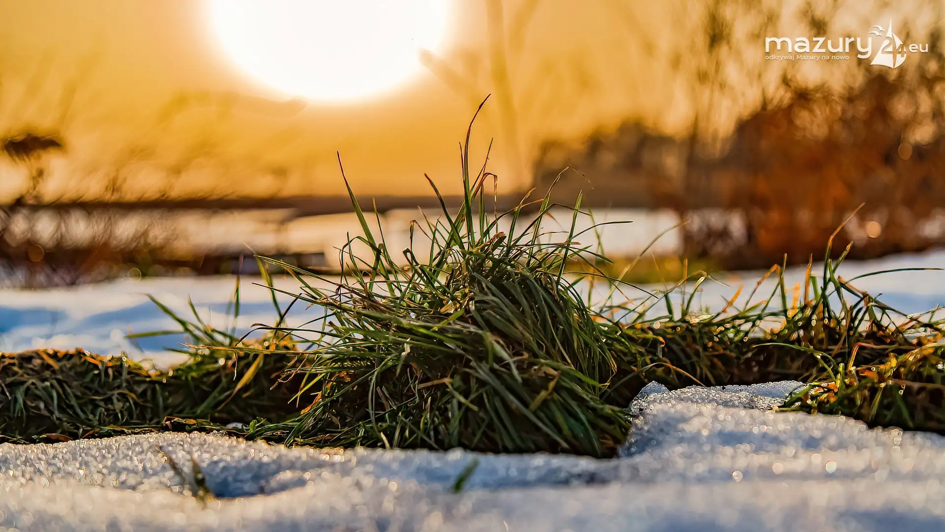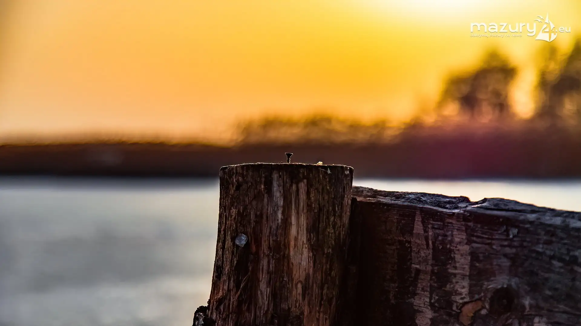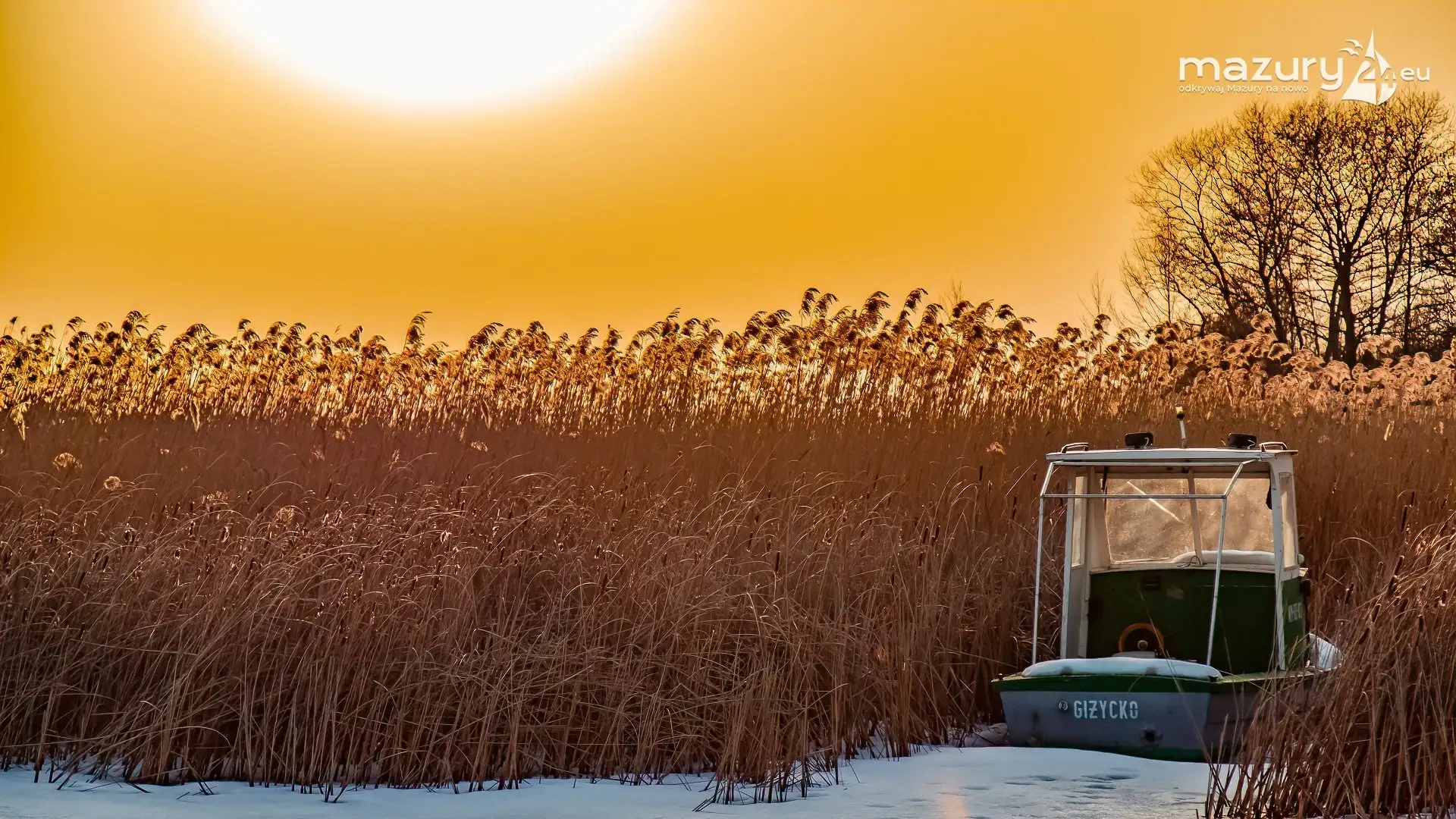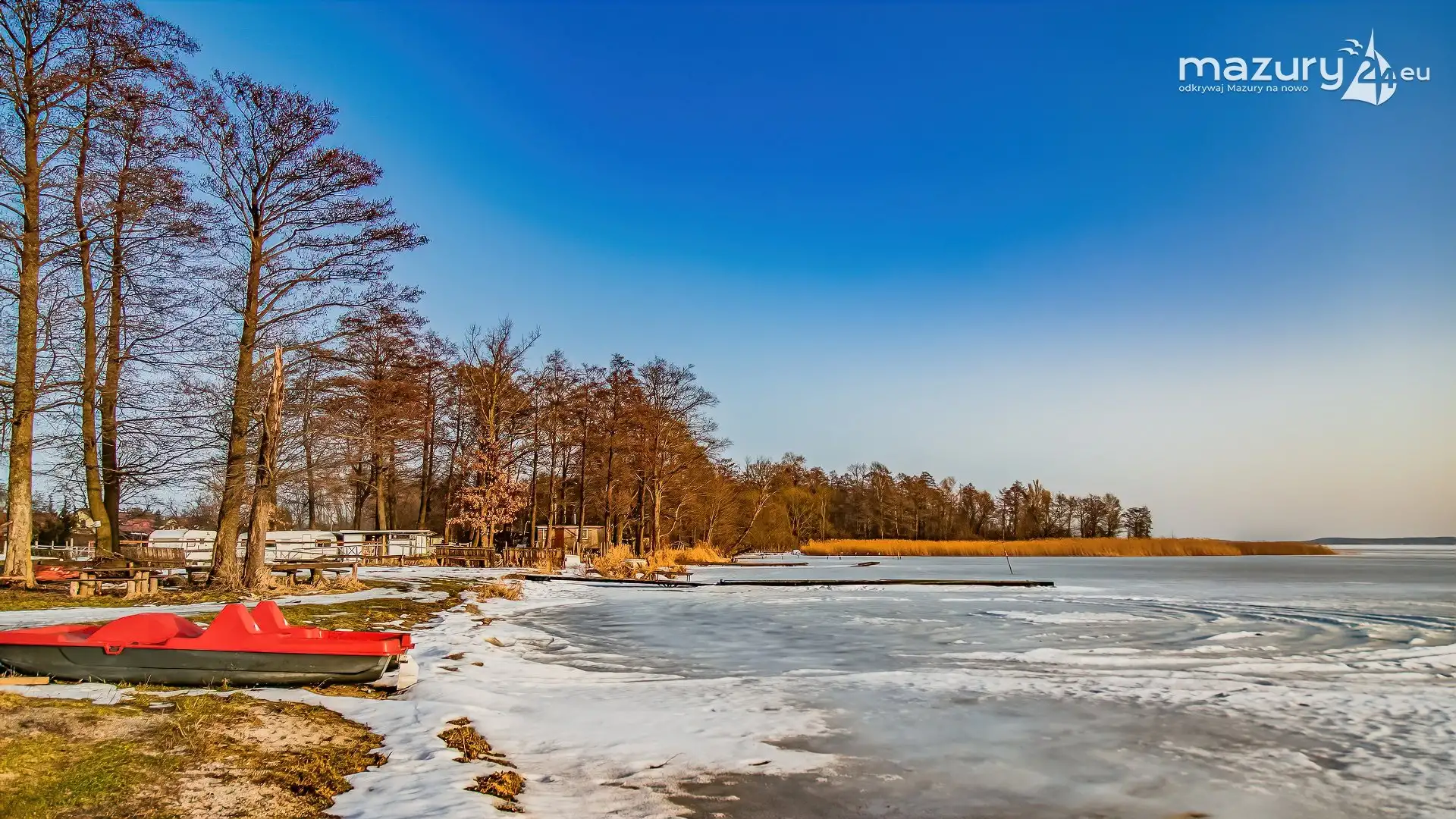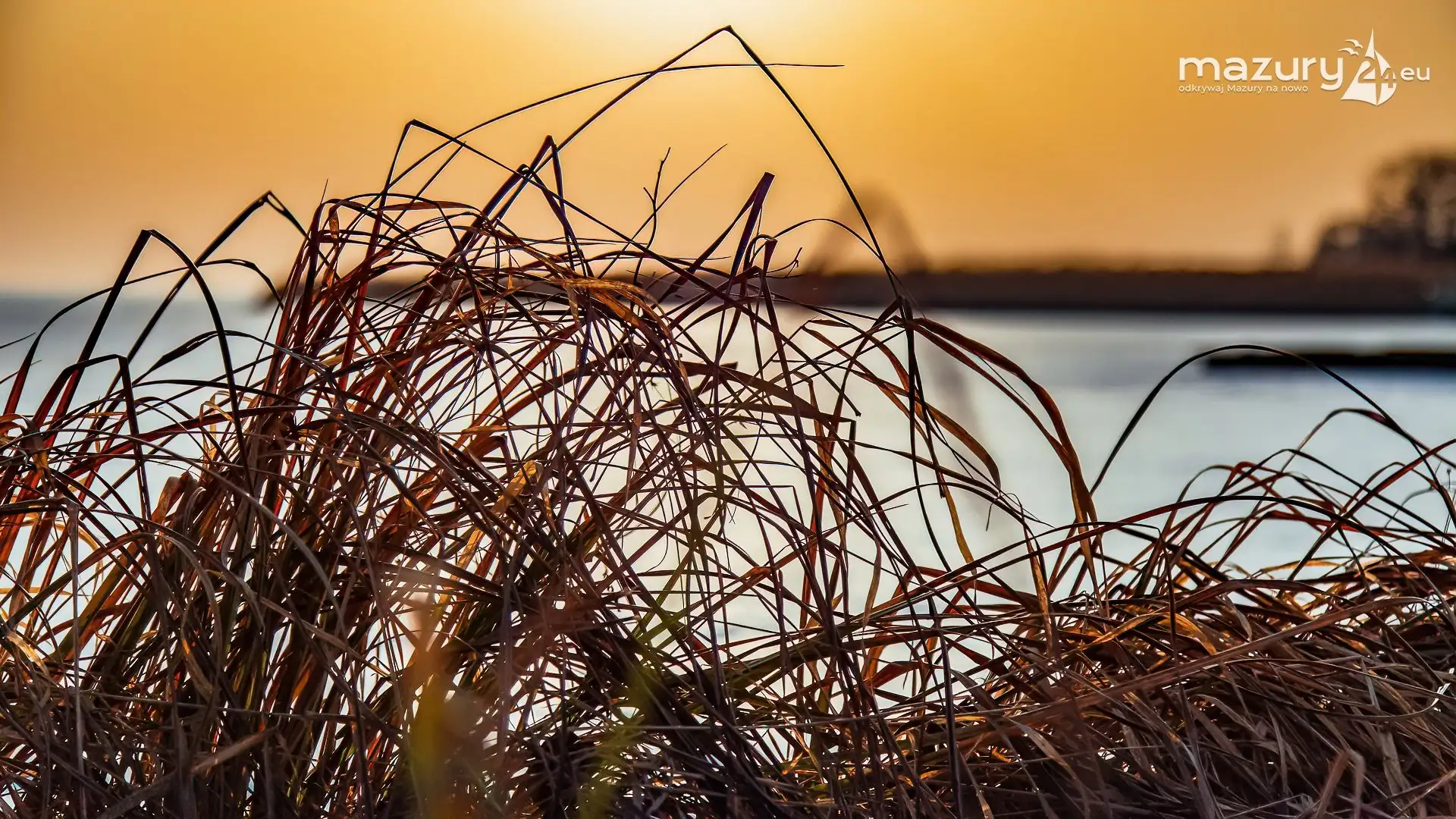 Zimowy zachód słońca nad jeziorem Śniardwy