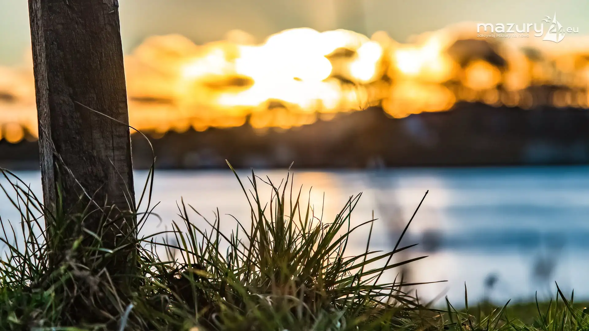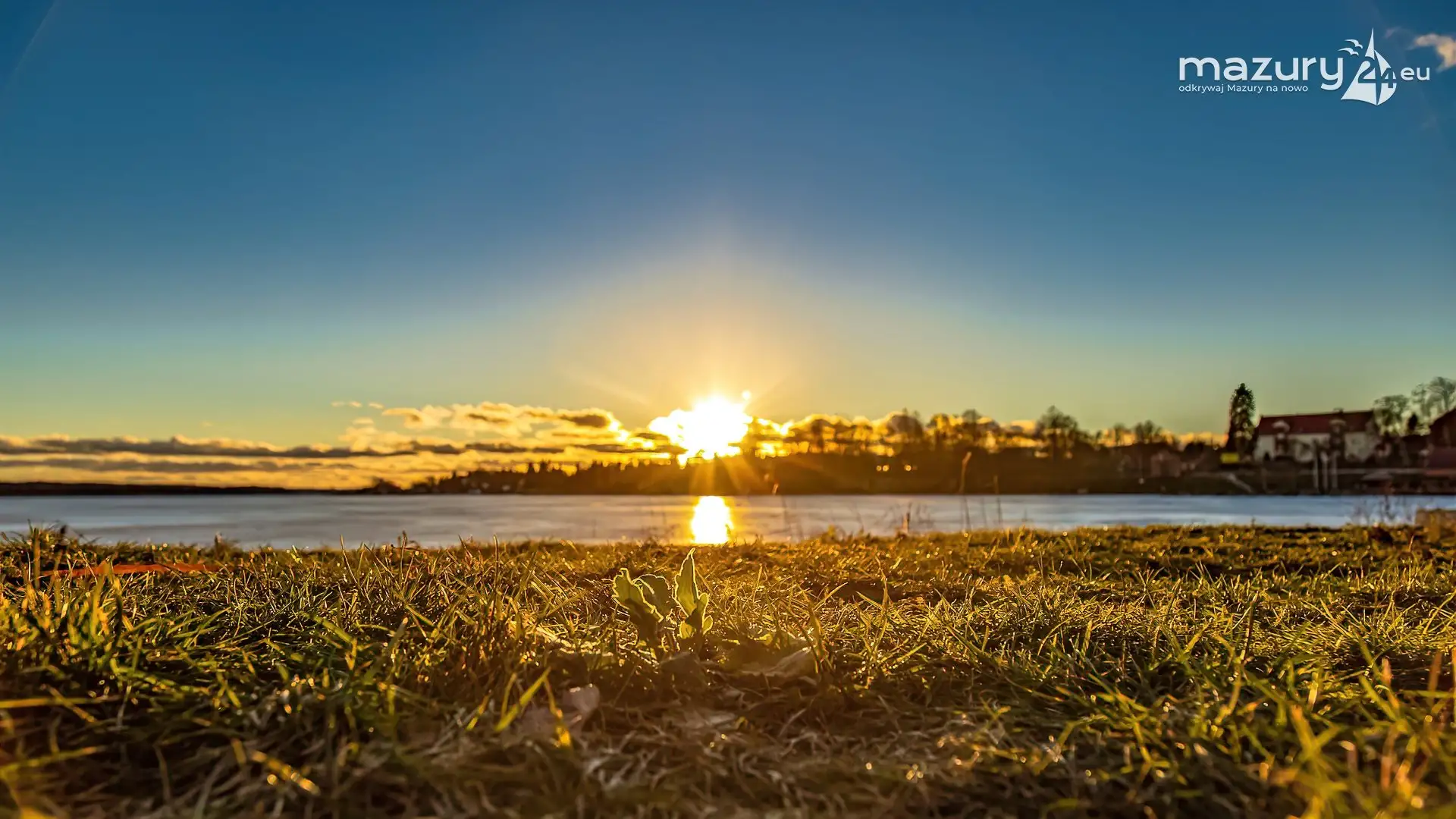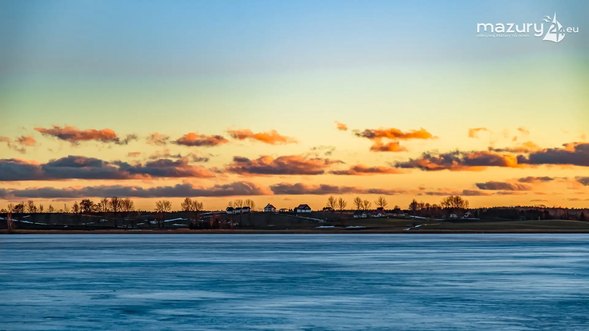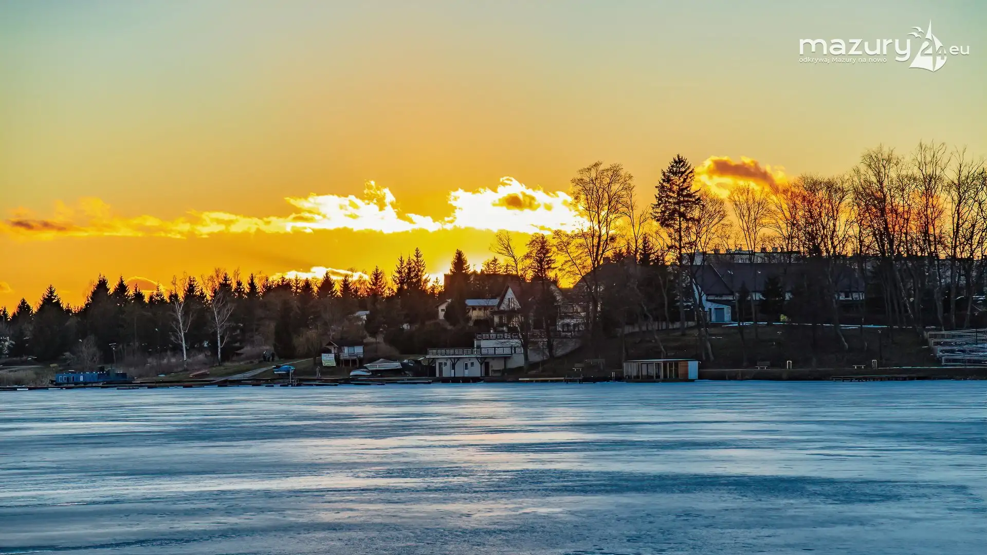 Przedwiosenny zachód słońca nad jeziorem Gołdopiwo i Żabiniec