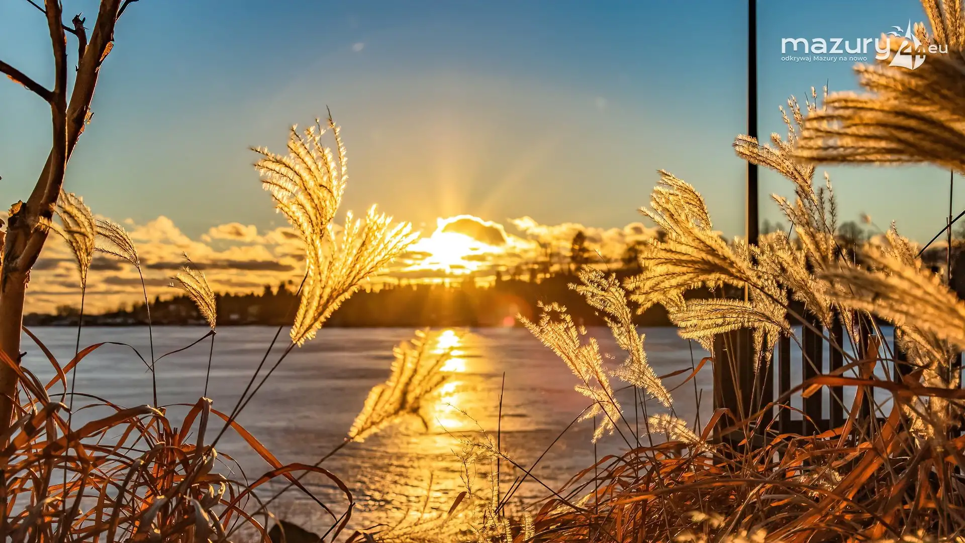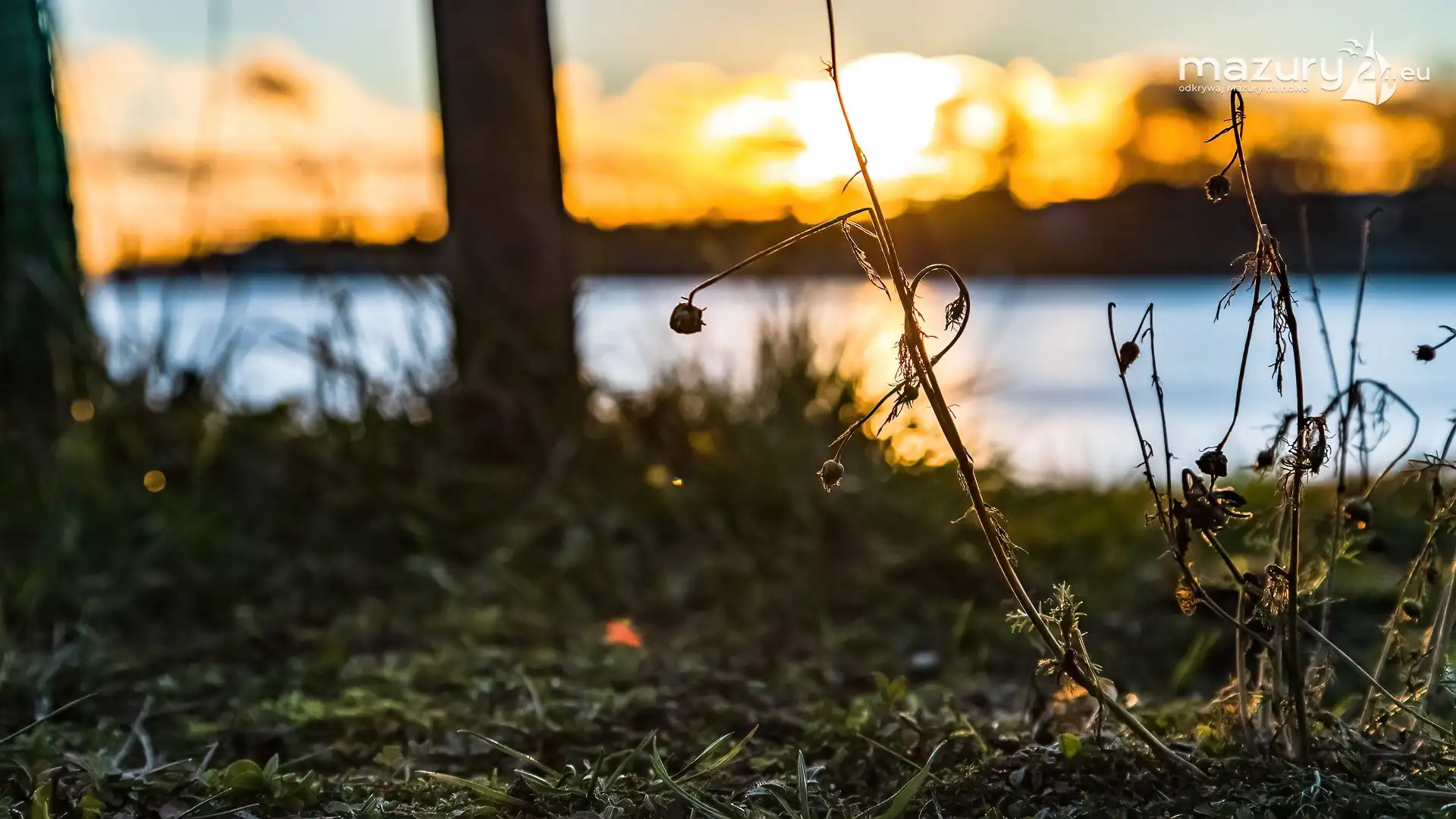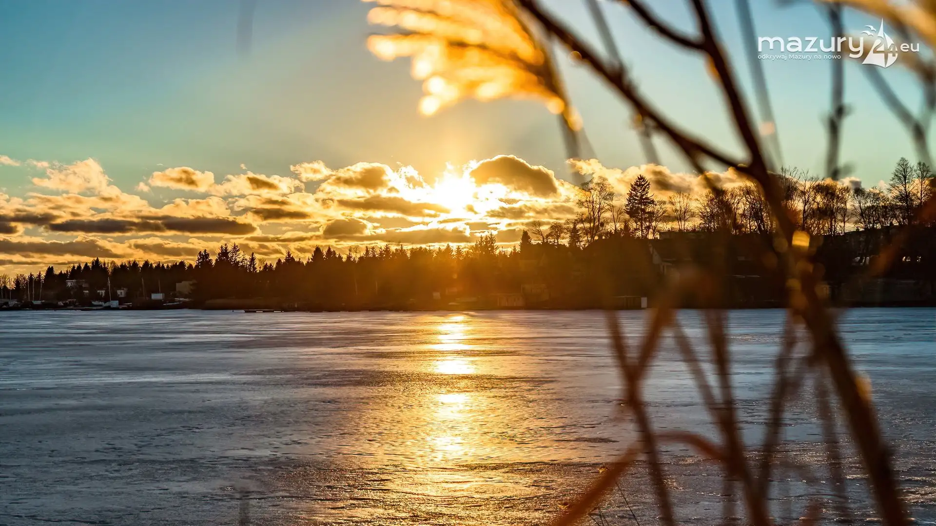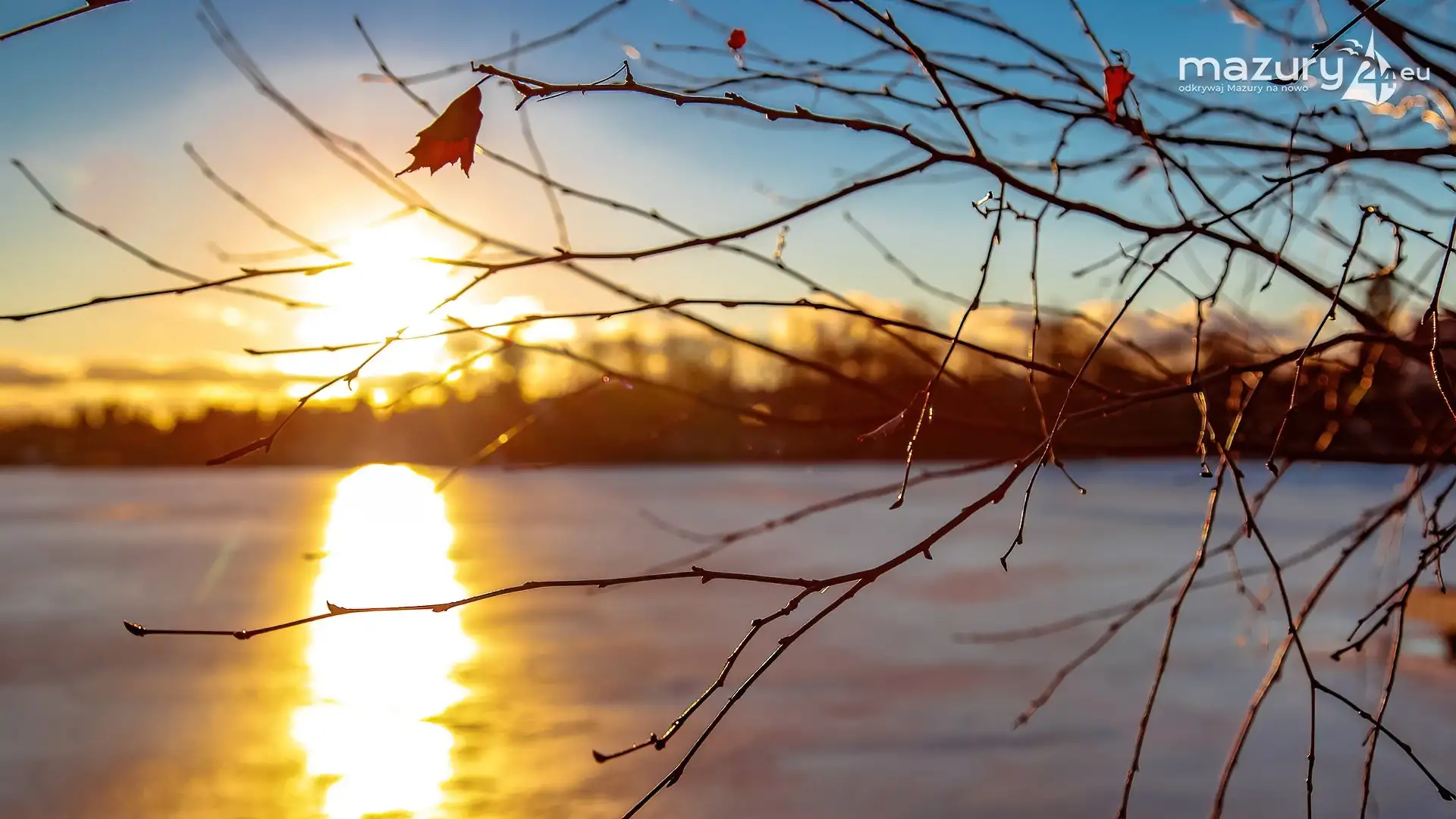 Przedwiosenny zachód słońca nad jeziorem Gołdopiwo i Żabiniec