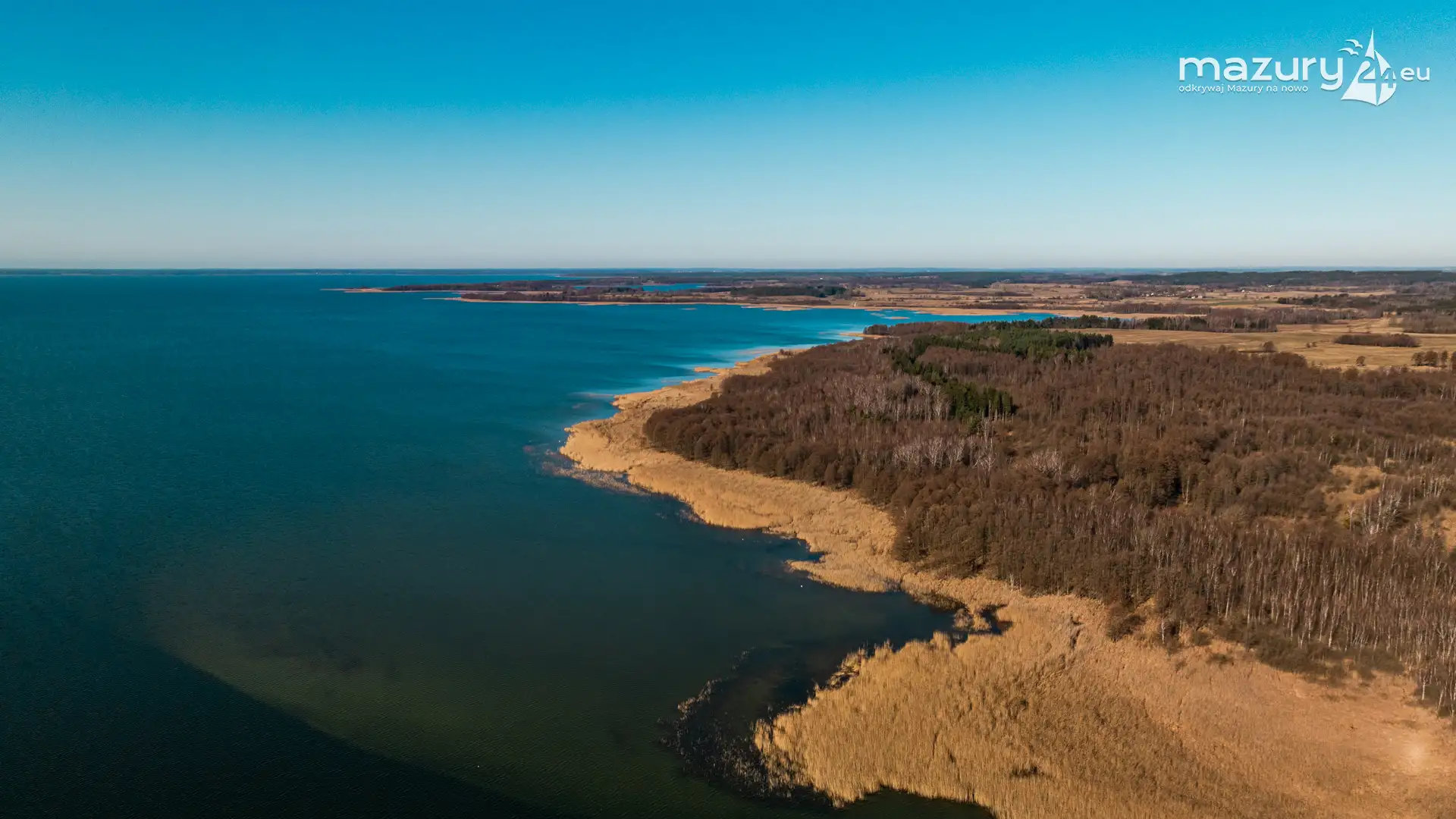 Okartowo nad Śniardwami, marzec 2025r. Zdjęcia wykonane w połowie marca, przedstawiają przepiękny krajobraz tej malowniczej okolicy. Choć noc była chłodna z przymrozkiem, dzień zapowiadał się ciepły i słoneczny, co nadawało całemu miejscu wyjątkowy charakter. Na zdjęciach z drona widać niezwykłą perspektywę, która uwydatnia zarówno jezioro Śniardwy, jak i jezioro Tyrkło. Zdjęcia te oddają wyjątkowy spokój tej części Mazur, gdzie natura zachowuje swoje pierwotne piękno, a słońce, choć jeszcze delikatne, zaczyna już rozgrzewać ziemię po mroźnej nocy. Z niecierpliwością czekamy na moment, kiedy to spokojne, dzikie zakątki Okartowa oraz inne urokliwe miejsca na Mazurach zapełnią się ludźmi i radosnym śpiewem szant przy akompaniamencie gitary. Choć teraz panuje cisza i spokój, wkrótce, gdy wiosna rozwinie swoje skrzydła, te same plaże i lasy staną się tętniącymi życiem miejscami spotkań.