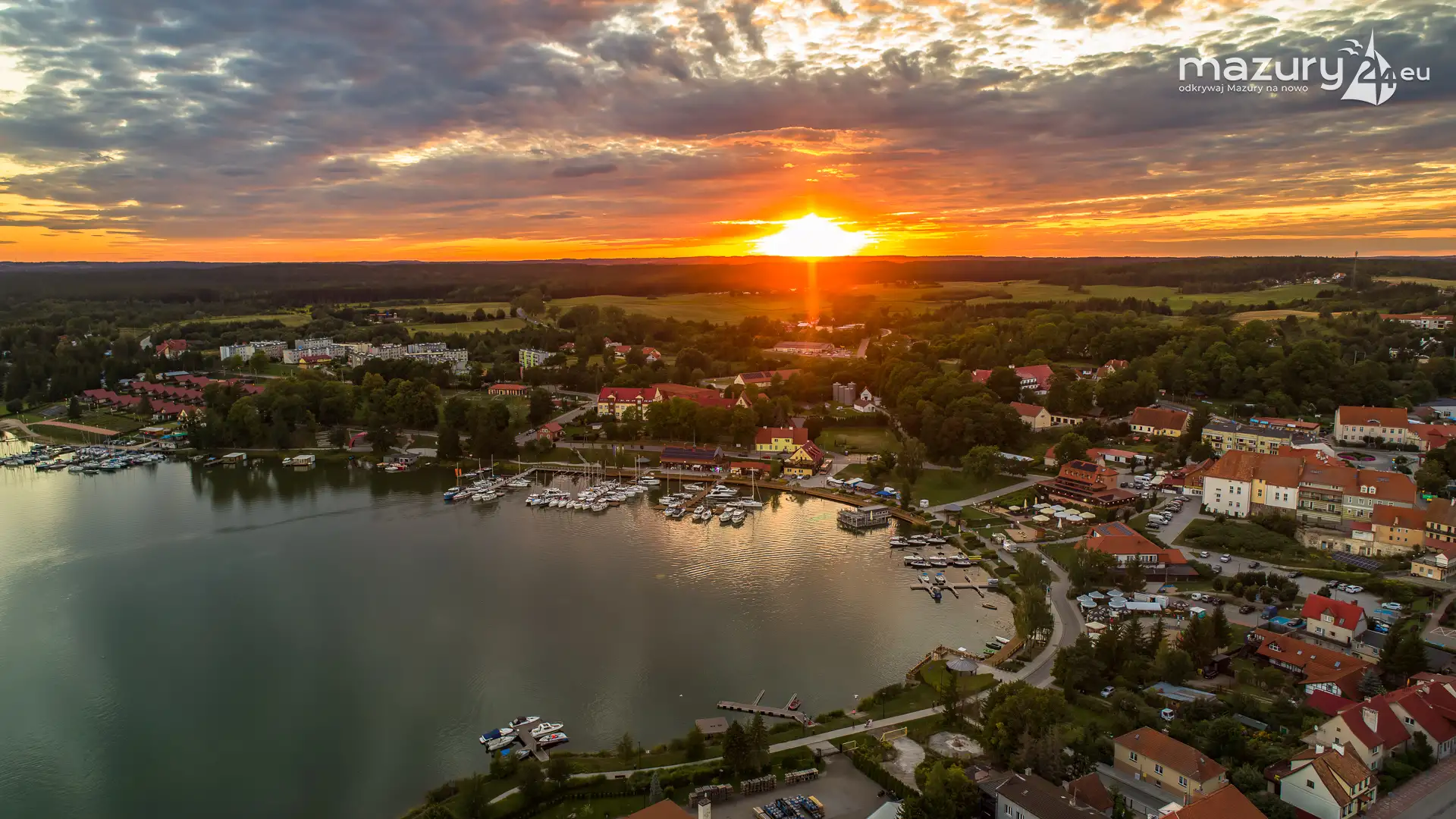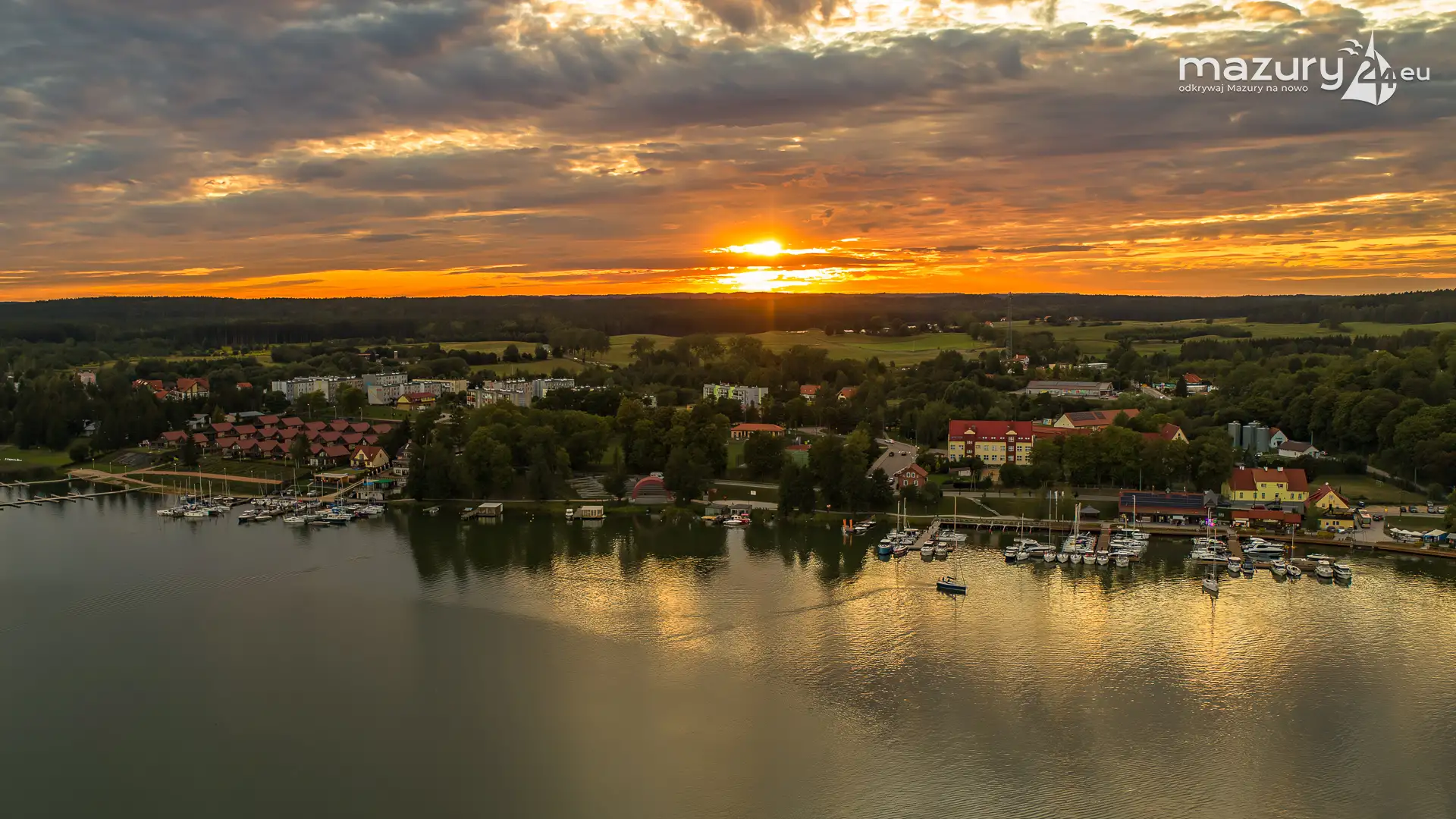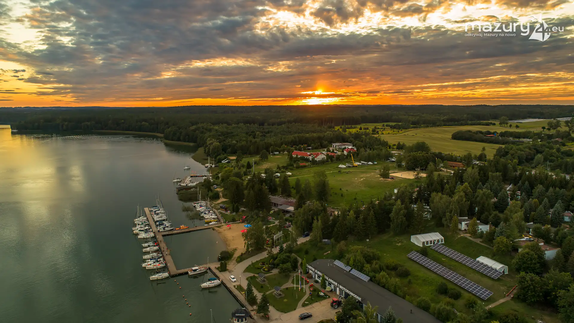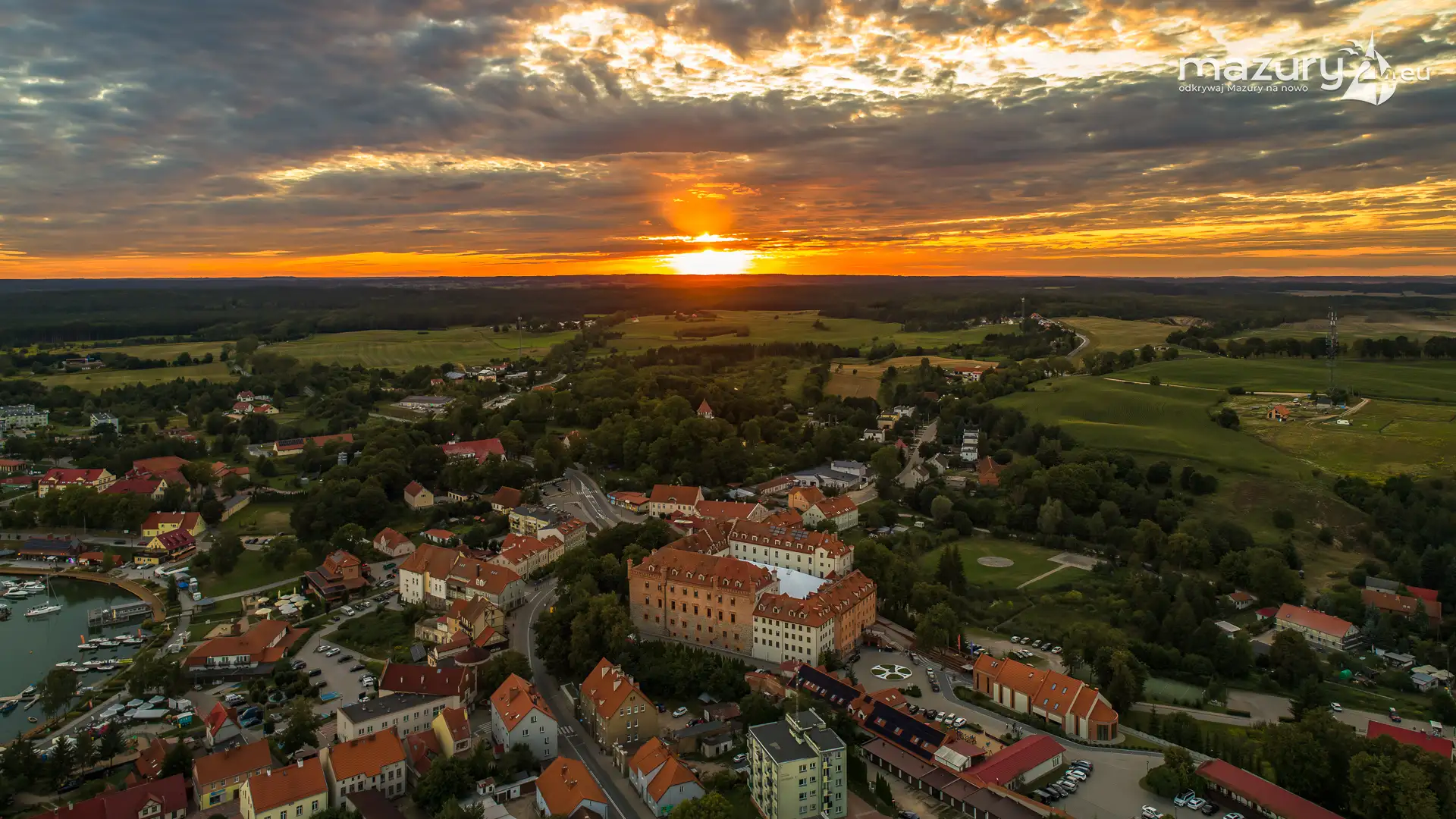 Są takie momenty na Mazurach, kiedy warto być w górze :) W Rynie zachód widziany z doły trwa tylko kilka chwil, a słońce szybko chowa się za wzniesieniem i drzewami... Inaczej to wygląda z lotu ptaka... Kolory, oświetlone chmury - coś pięknego. Przekonajcie się sami i... zakochajcie się w Rynie. Część naszej ekipy przygodę z Mazurami zaczynała właśnie w Rynie, pod żaglami, ponad 28 lat temu...