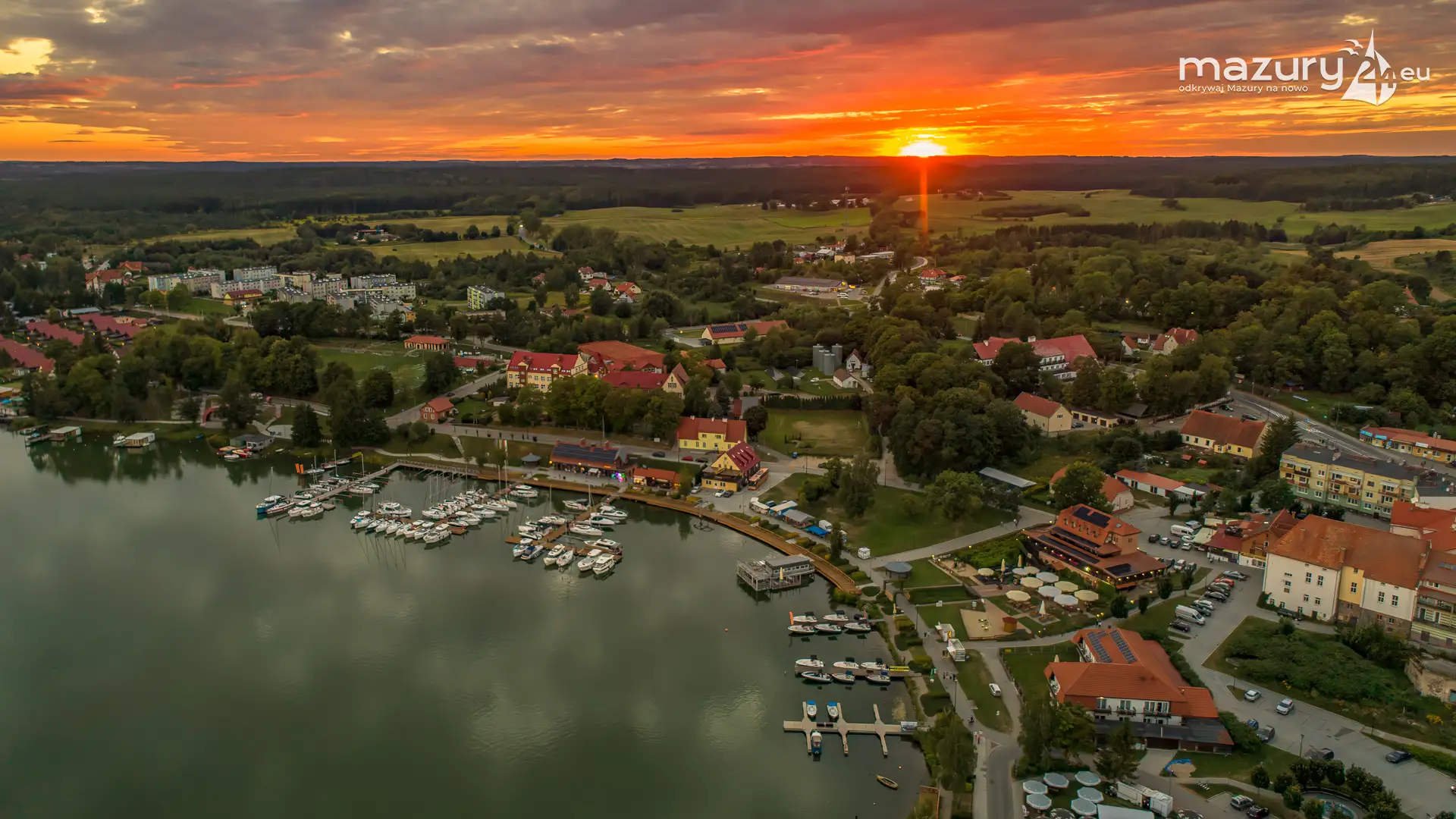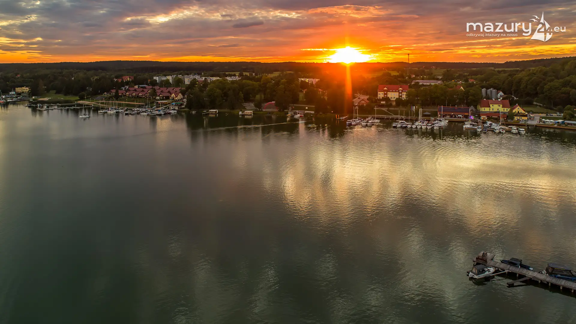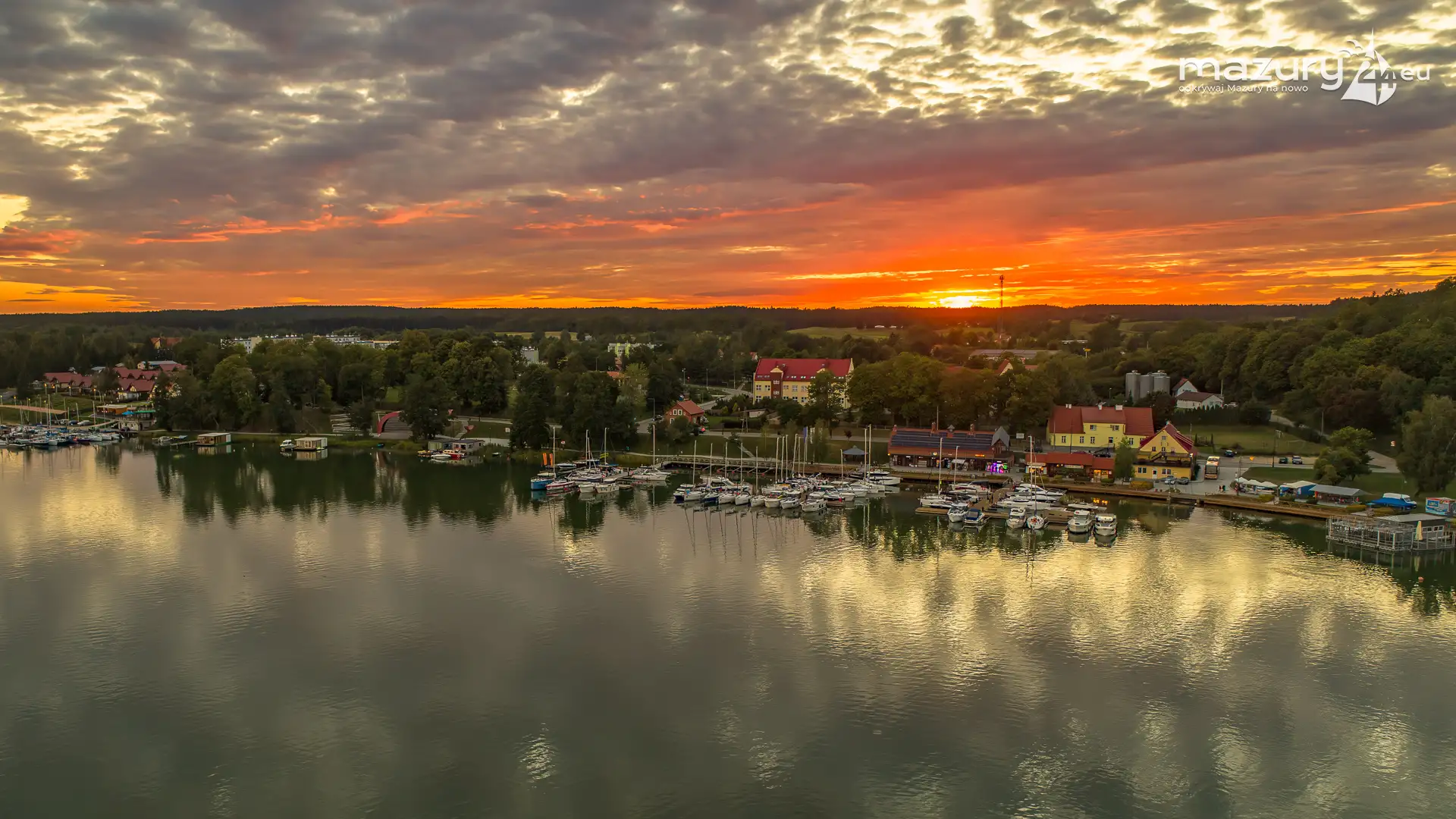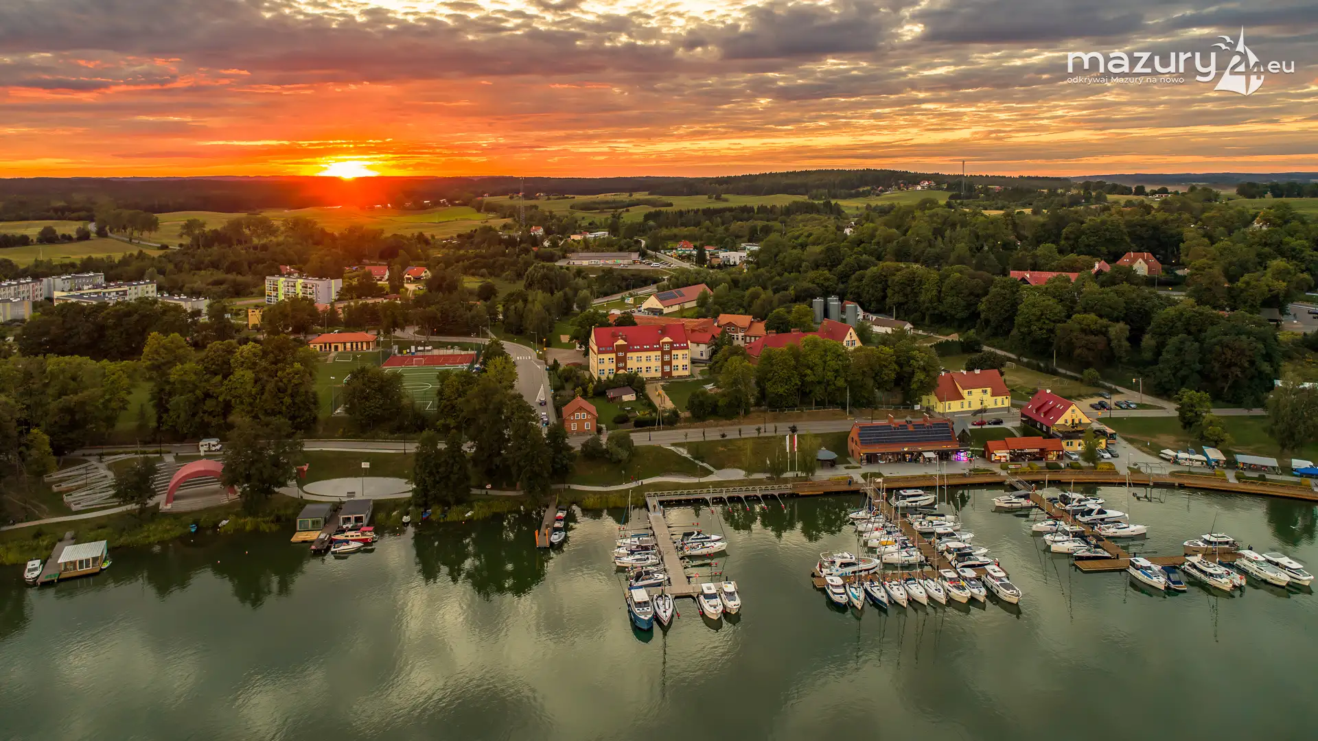Są takie momenty na Mazurach, kiedy warto być w górze :) W Rynie zachód widziany z doły trwa tylko kilka chwil, a słońce szybko chowa się za wzniesieniem i drzewami... Inaczej to wygląda z lotu ptaka... Kolory, oświetlone chmury - coś pięknego. Przekonajcie się sami i... zakochajcie się w Rynie. Część naszej ekipy przygodę z Mazurami zaczynała właśnie w Rynie, pod żaglami, ponad 28 lat temu...