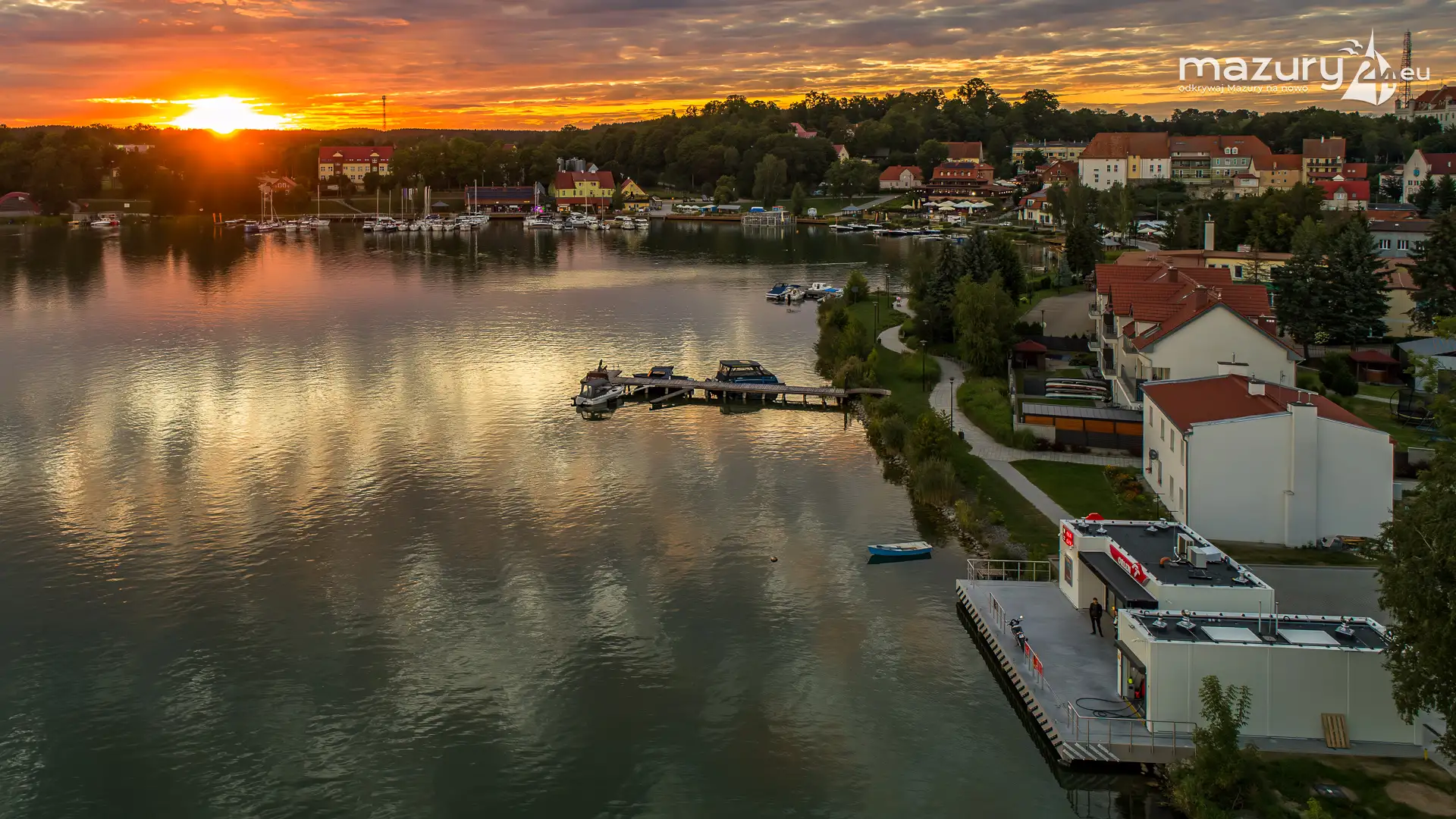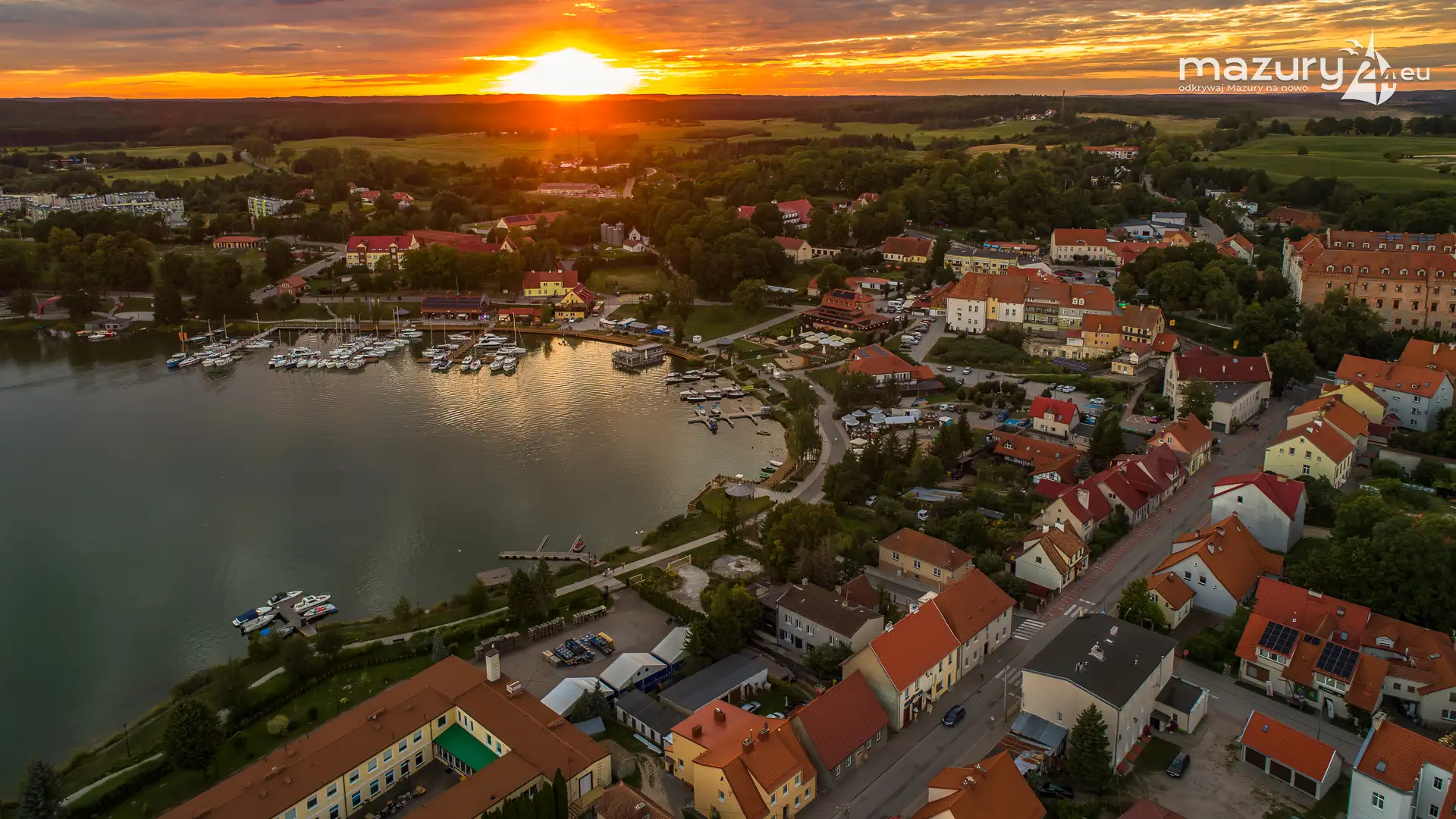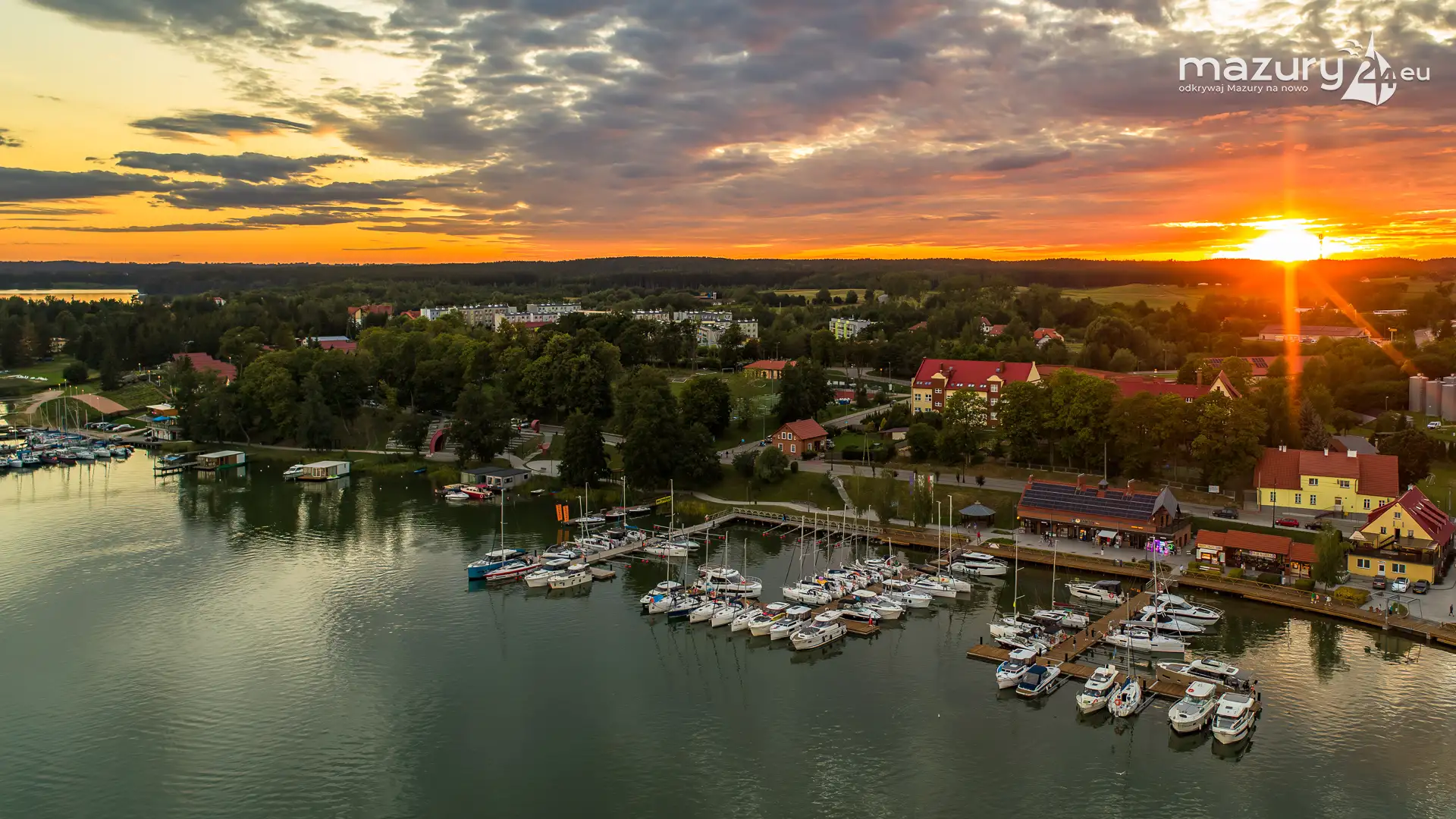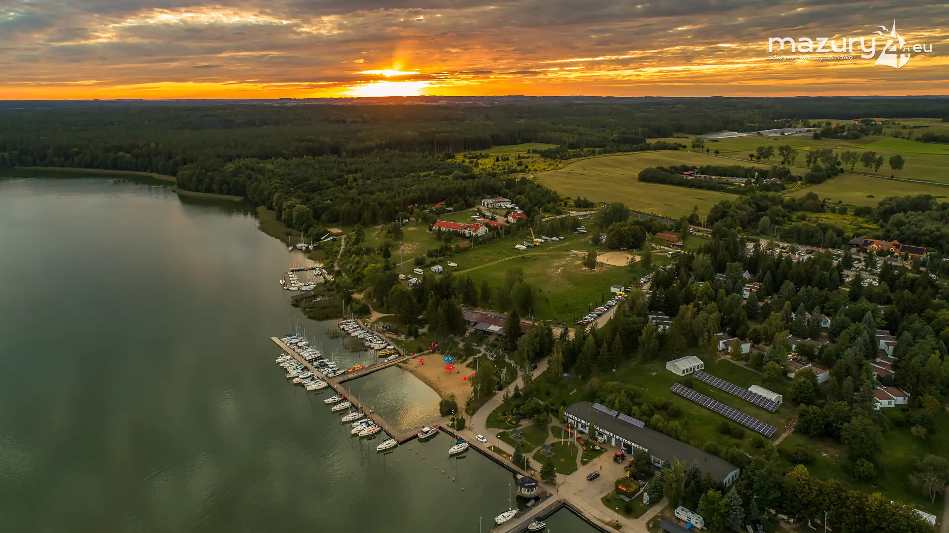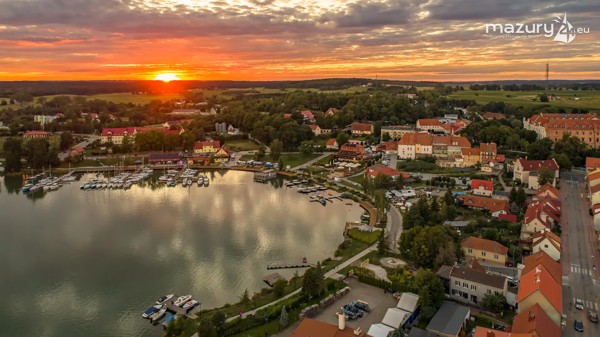 Są takie momenty na Mazurach, kiedy warto być w górze :) W Rynie zachód widziany z doły trwa tylko kilka chwil, a słońce szybko chowa się za wzniesieniem i drzewami... Inaczej to wygląda z lotu ptaka... Kolory, oświetlone chmury - coś pięknego. Przekonajcie się sami i... zakochajcie się w Rynie. Część naszej ekipy przygodę z Mazurami zaczynała właśnie w Rynie, pod żaglami, ponad 28 lat temu...