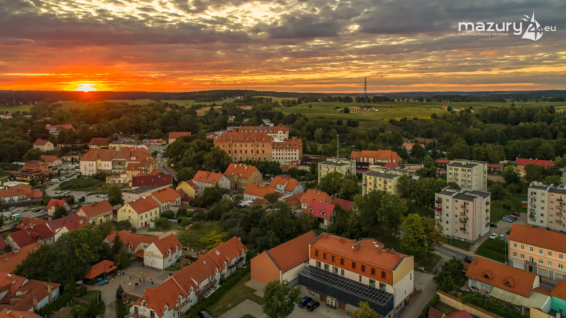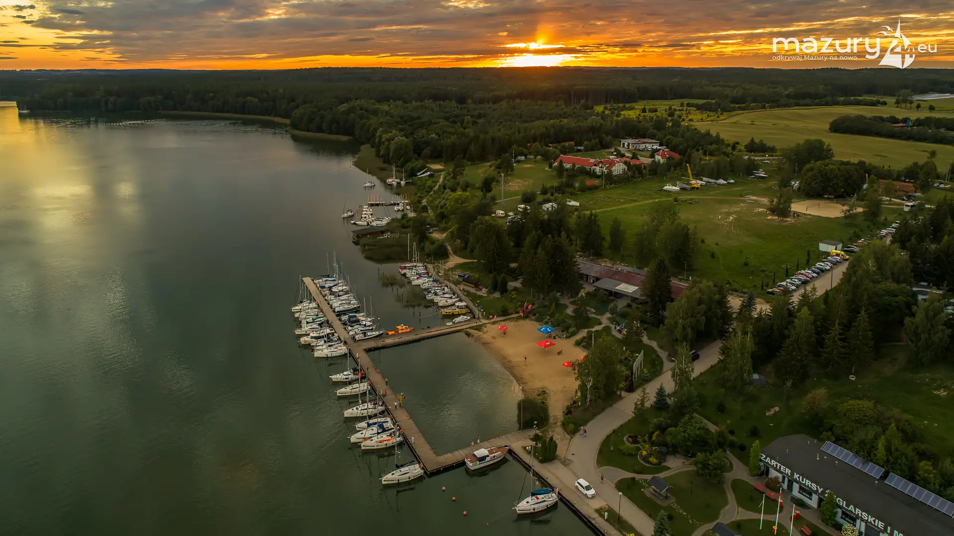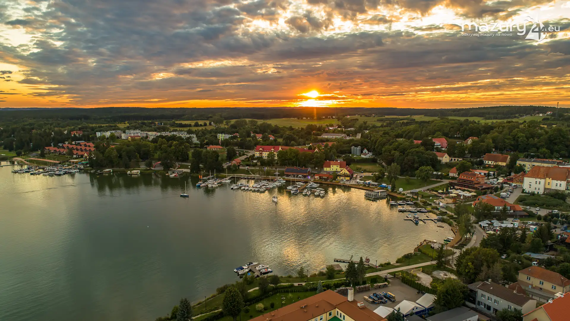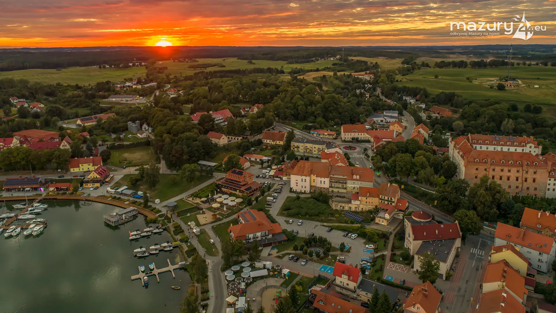 Są takie momenty na Mazurach, kiedy warto być w górze :) W Rynie zachód widziany z doły trwa tylko kilka chwil, a słońce szybko chowa się za wzniesieniem i drzewami... Inaczej to wygląda z lotu ptaka... Kolory, oświetlone chmury - coś pięknego. Przekonajcie się sami i... zakochajcie się w Rynie. Część naszej ekipy przygodę z Mazurami zaczynała właśnie w Rynie, pod żaglami, ponad 28 lat temu...
