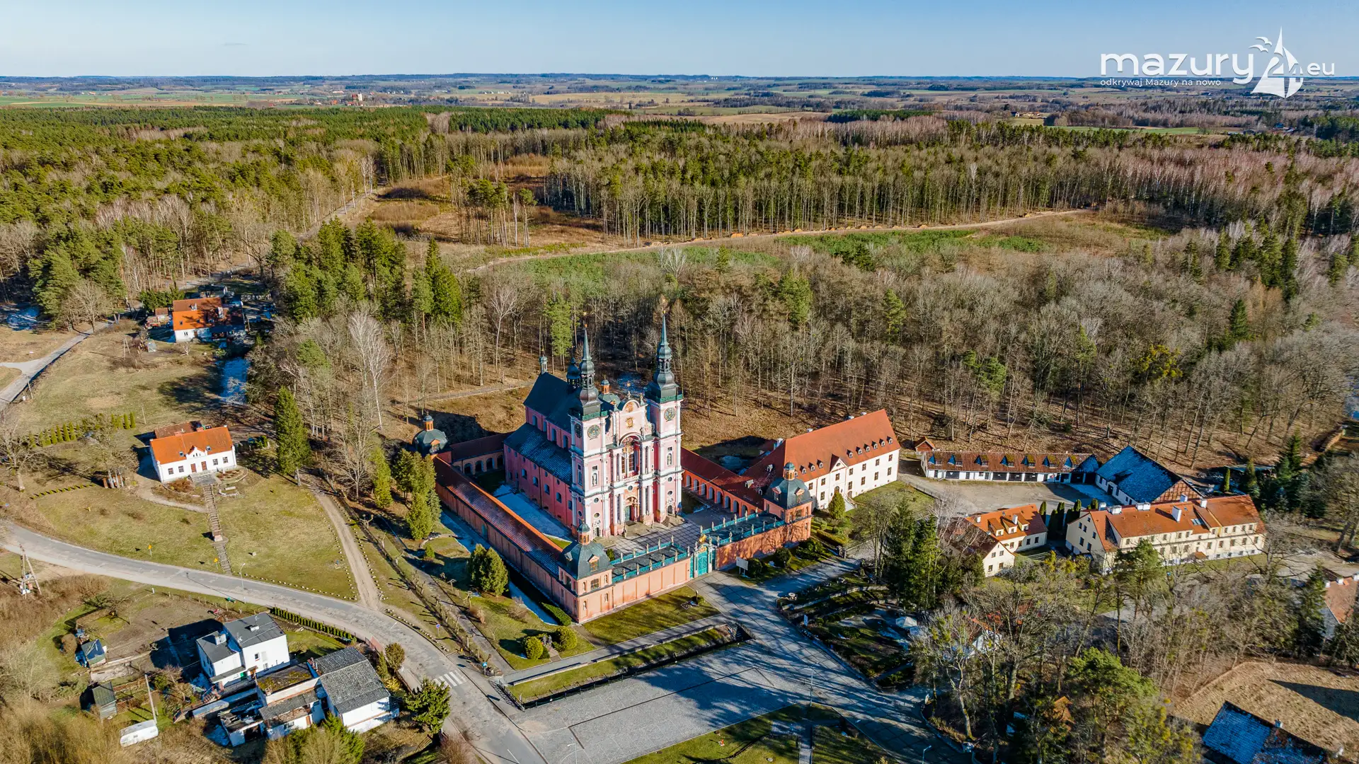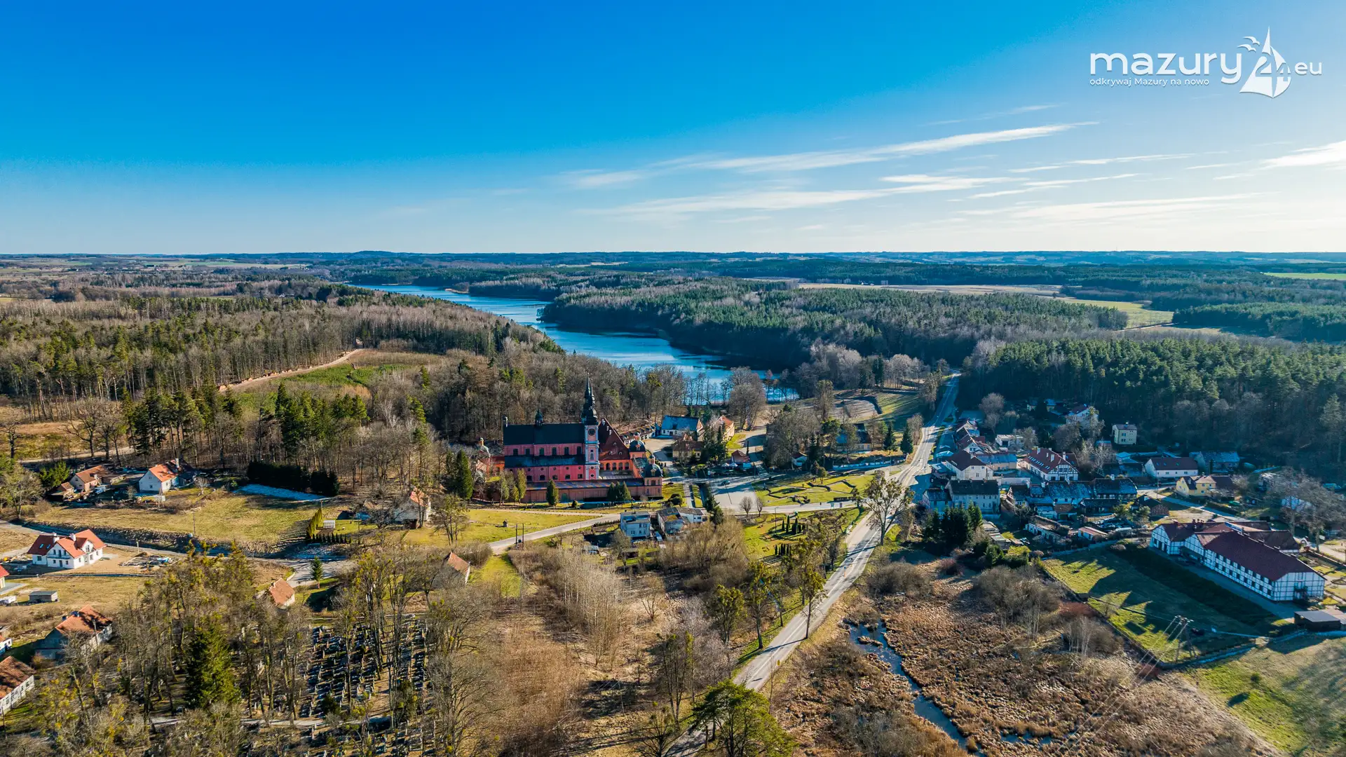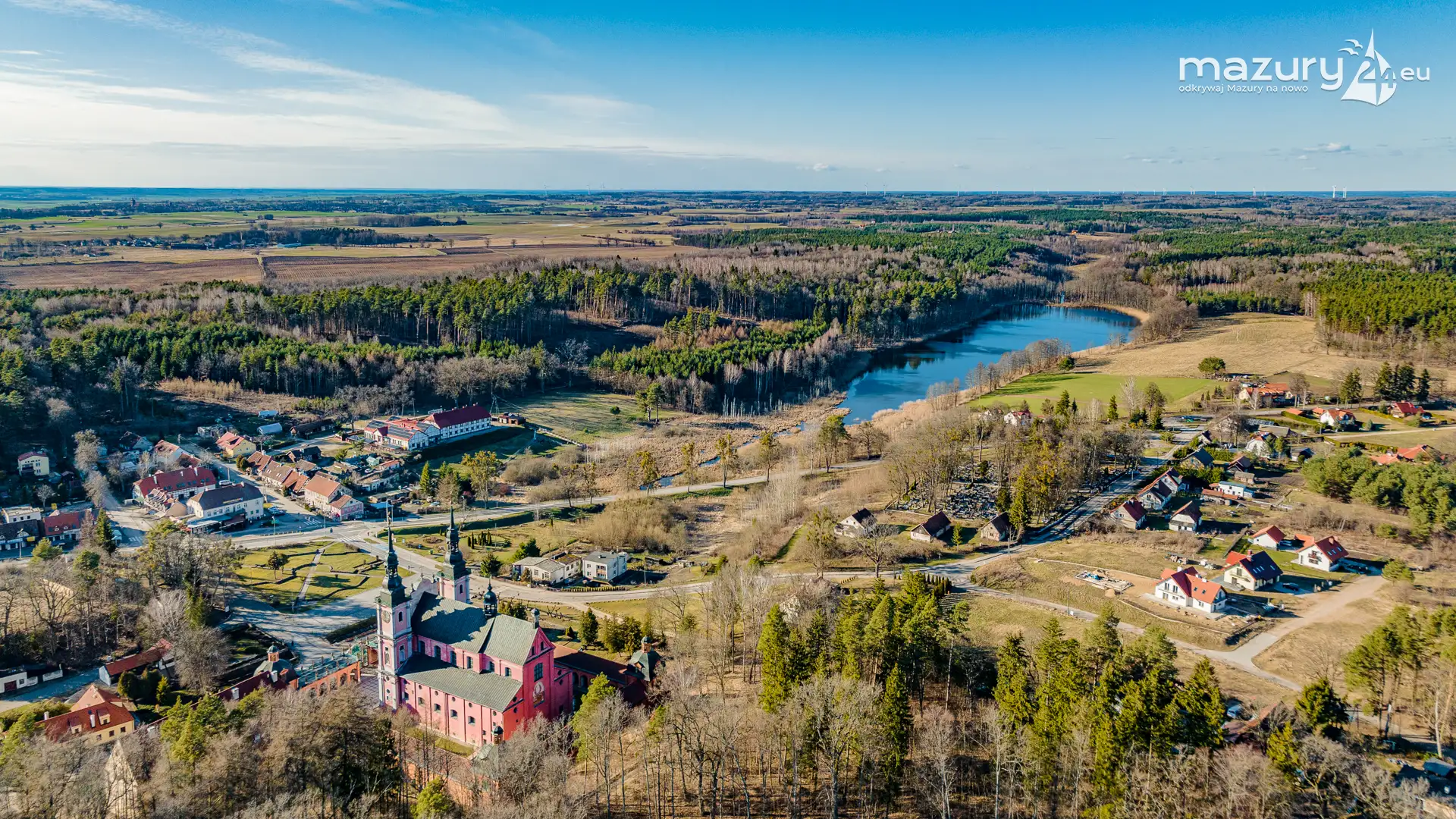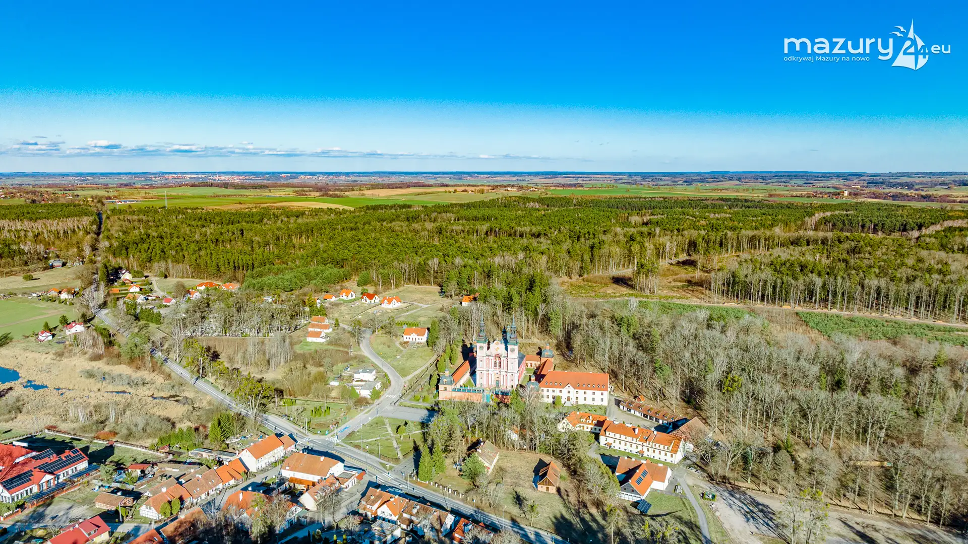 Świętą Lipkę mijaliśmy przez ładne kilka lat kilkanaście razy. Dopiero później okazało się, że nie mamy zdjęć z drona pokazujące to wyjątkowe miejsce. Naprawiliśmy to pod koniec marca 2023 roku. Sanktuarium Maryjne i okoliczne jeziora przykuwają wzrok, tak że prawie nie widać samej wsi...