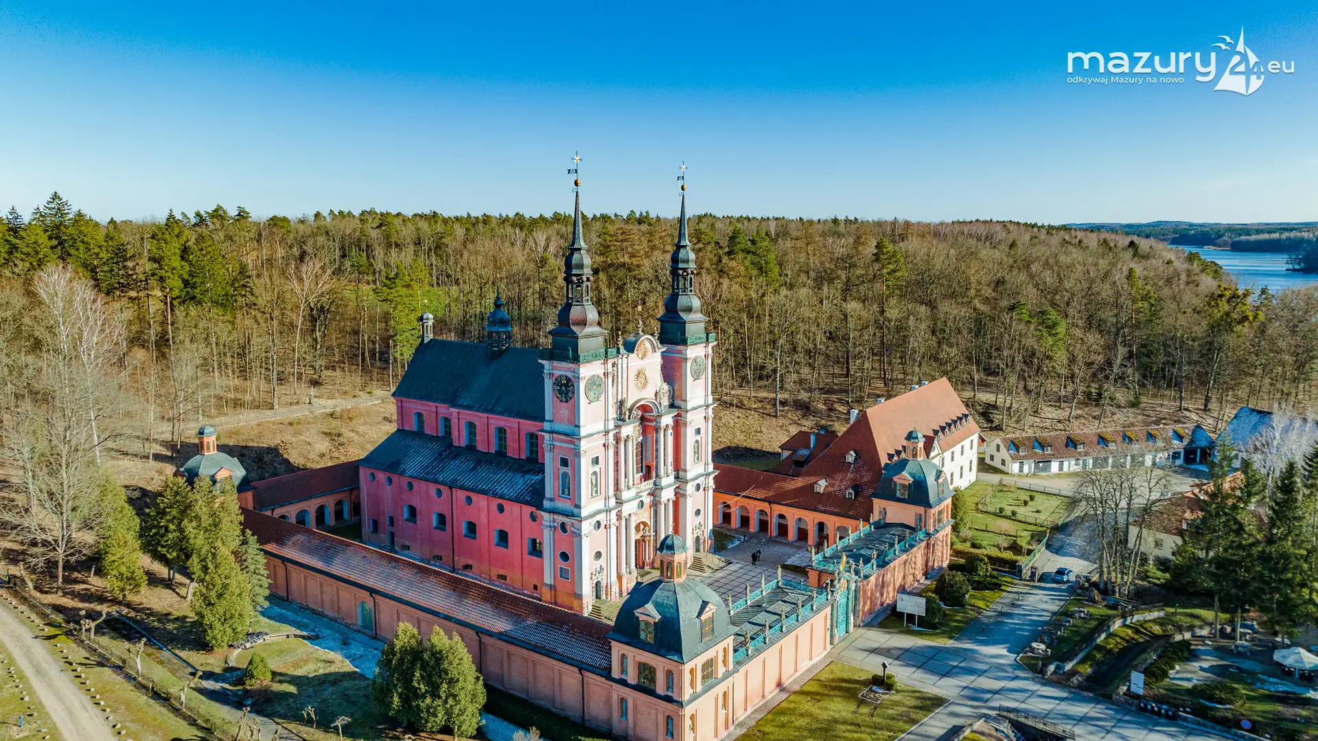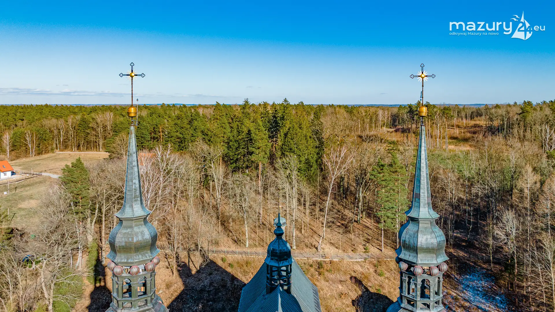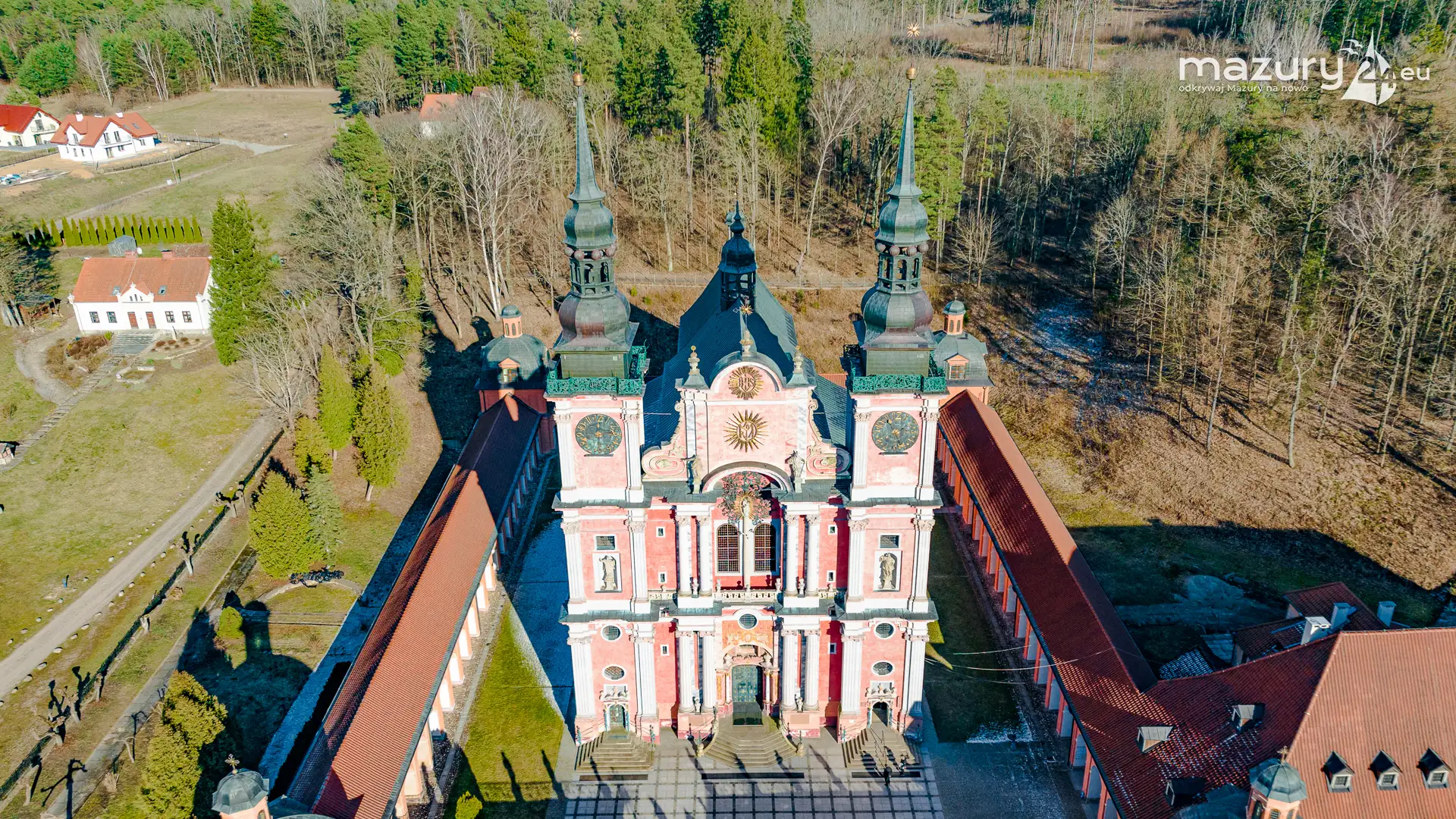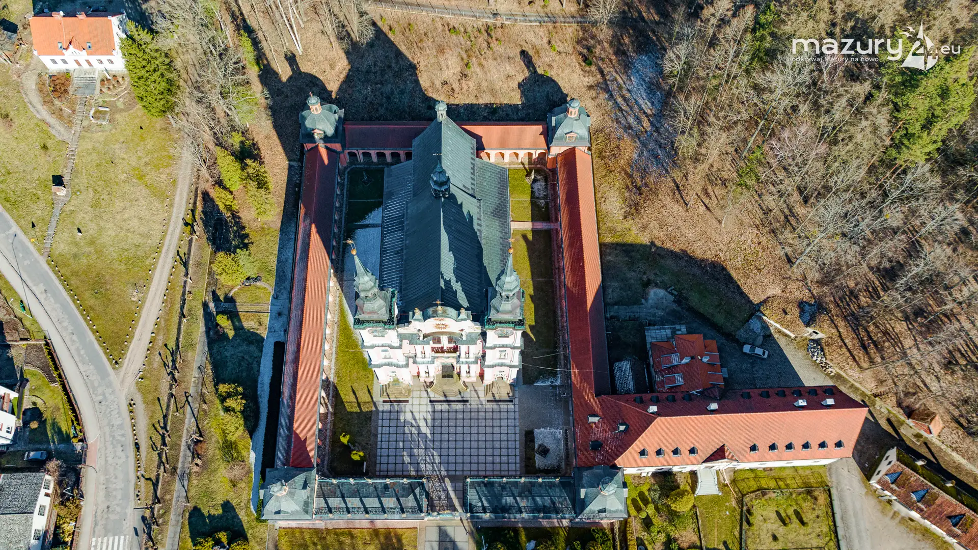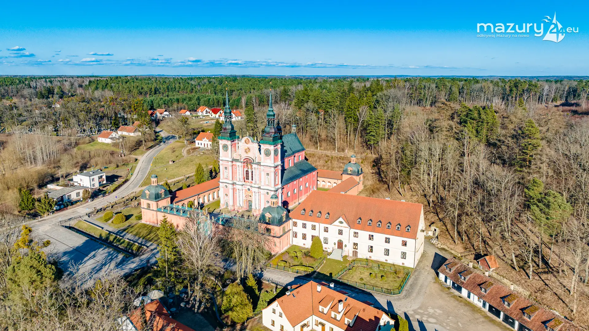 Świętą Lipkę mijaliśmy przez ładne kilka lat kilkanaście razy. Dopiero później okazało się, że nie mamy zdjęć z drona pokazujące to wyjątkowe miejsce. Naprawiliśmy to pod koniec marca 2023 roku. Sanktuarium Maryjne i okoliczne jeziora przykuwają wzrok, tak że prawie nie widać samej wsi...