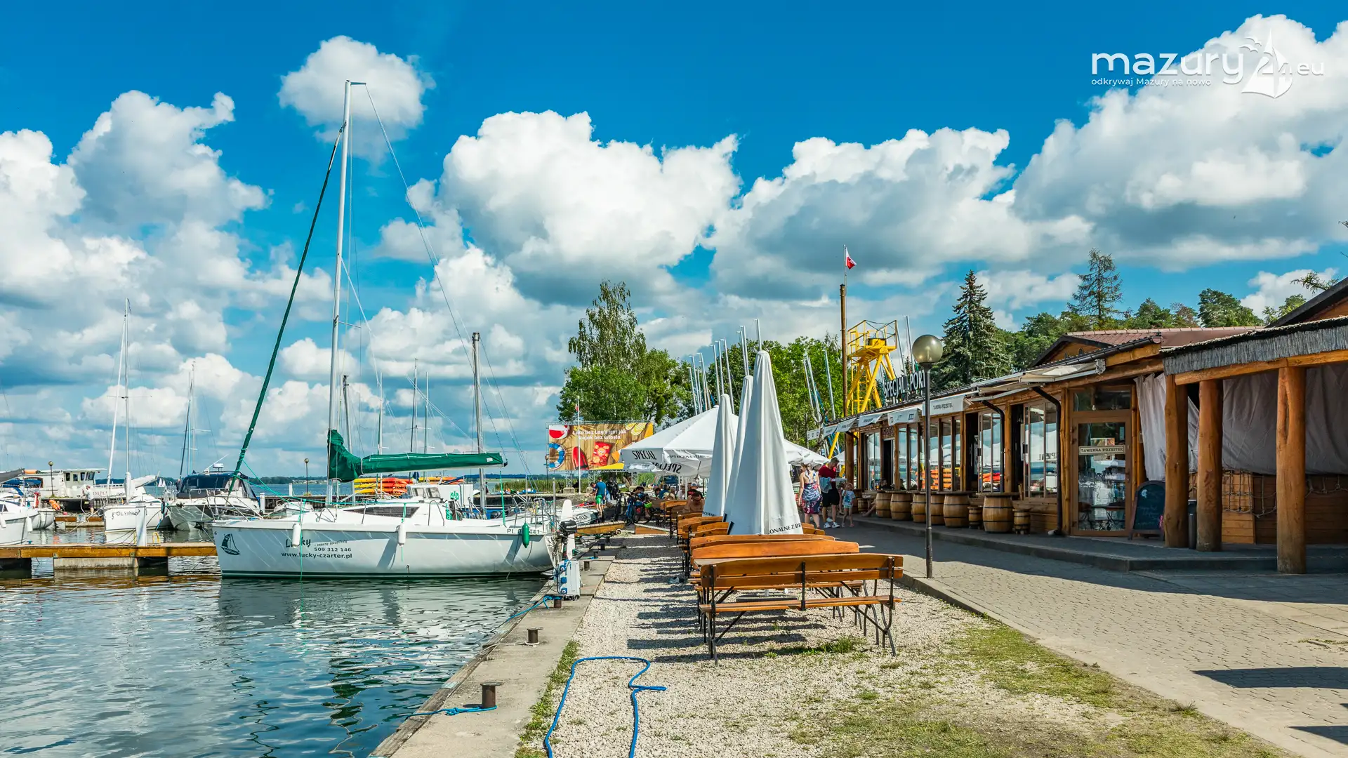 Zobaczcie jeden z popularniejszych portów na Mazurach na niedzielnych i słonecznych zdjęciach. Tak wyglądał pierwszy dzień faktycznego lata na Mazurach w tym roku (Już nie wystarczy określenie pór roku astronomiczne i meteorologiczne). Piękne niebieskie niebo, ruch na wodzie, żeglarze i motorowodniacy krzątający się po porcie - na takie momenty i kadry czasem czeka się prawie rok...