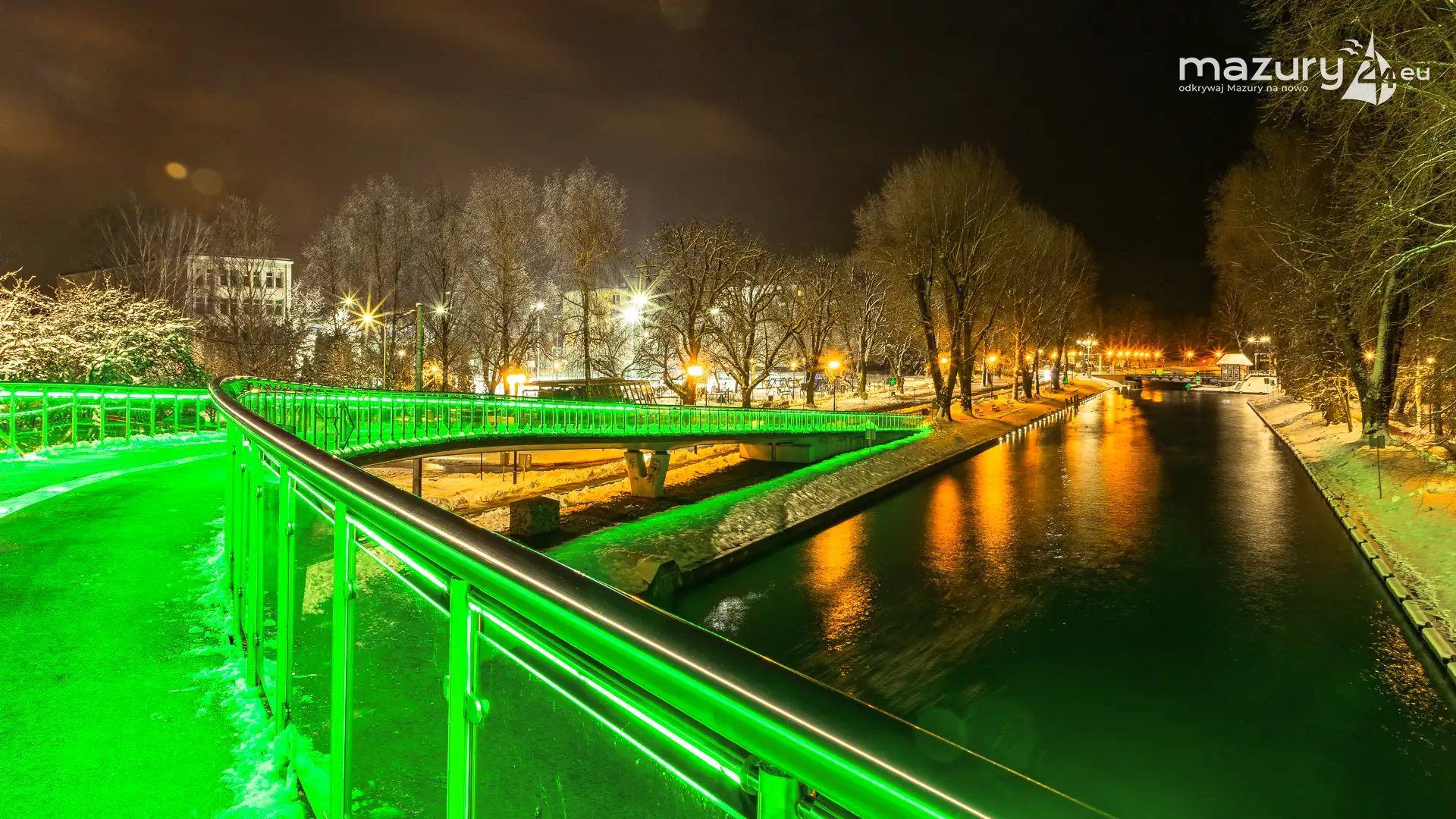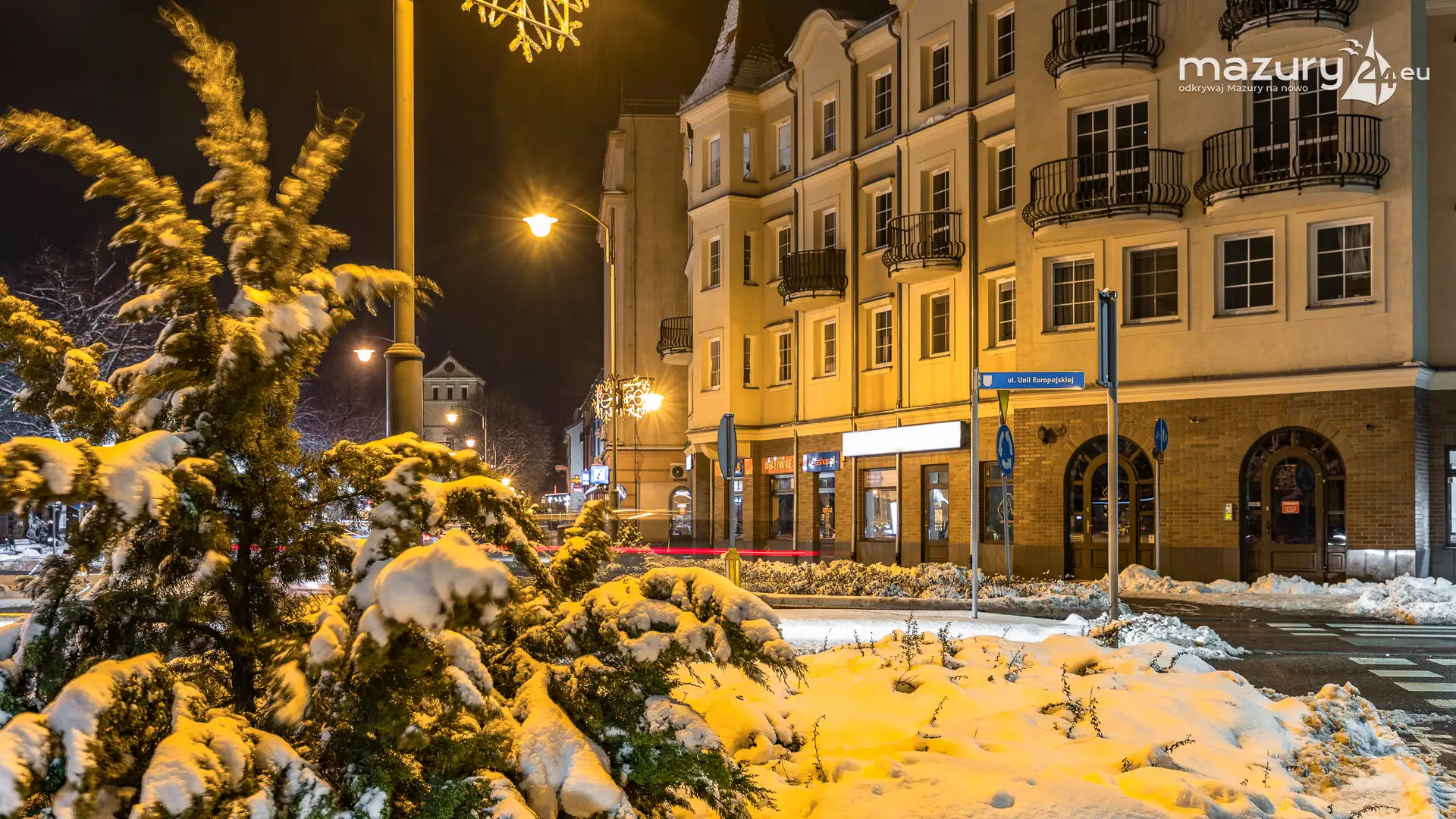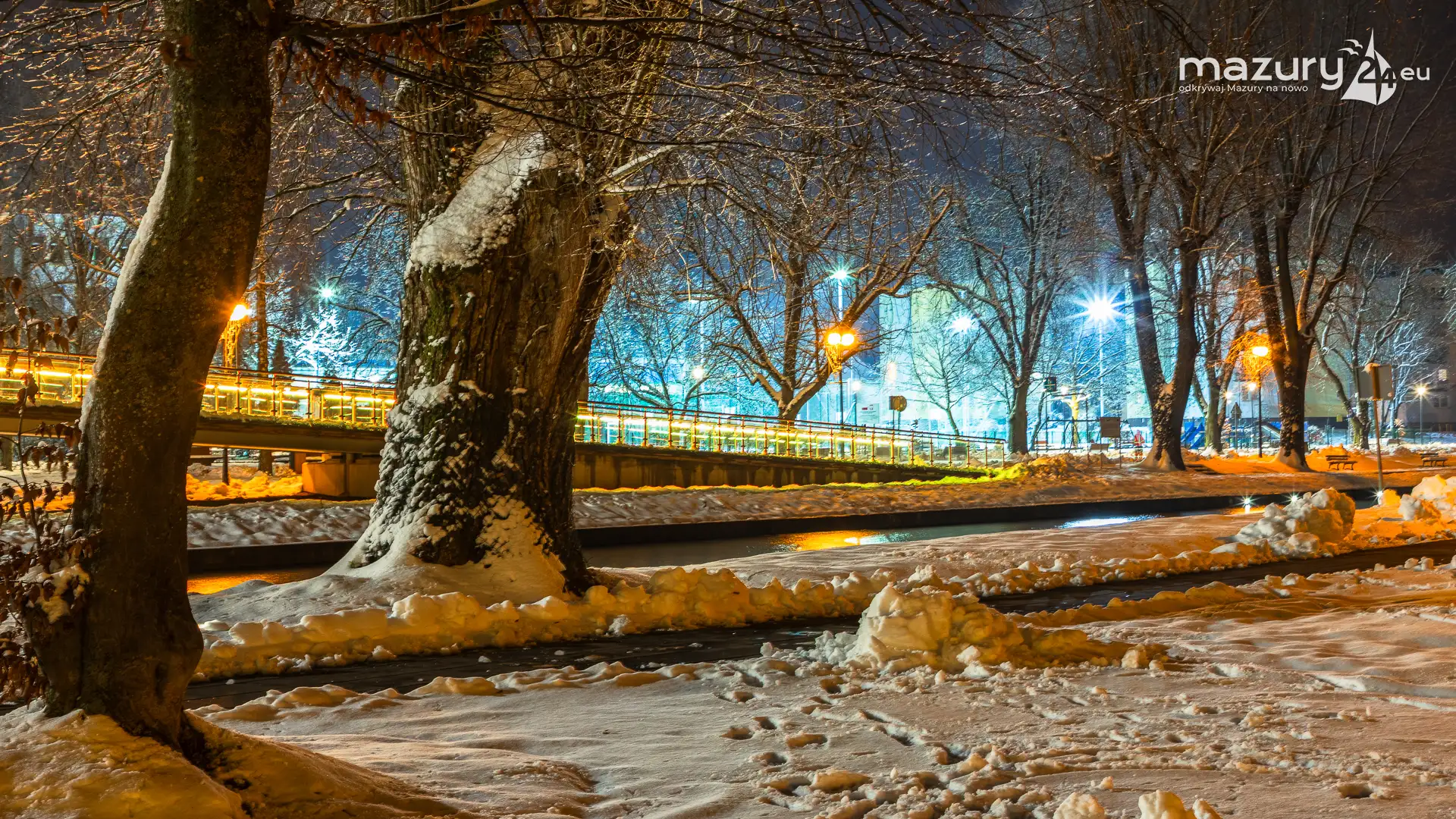 Kilka dni temu, Mazury w ciągu jednej nocy przeszły z trybu jesiennego na zimowy. Mimo pięknej wszechobecnej bieli nie możemy doczekać się słońca. Stąd pomysł na poszukanie kolorów nocą. Zapraszamy na krótki, wieczorny spacer po Giżycku...