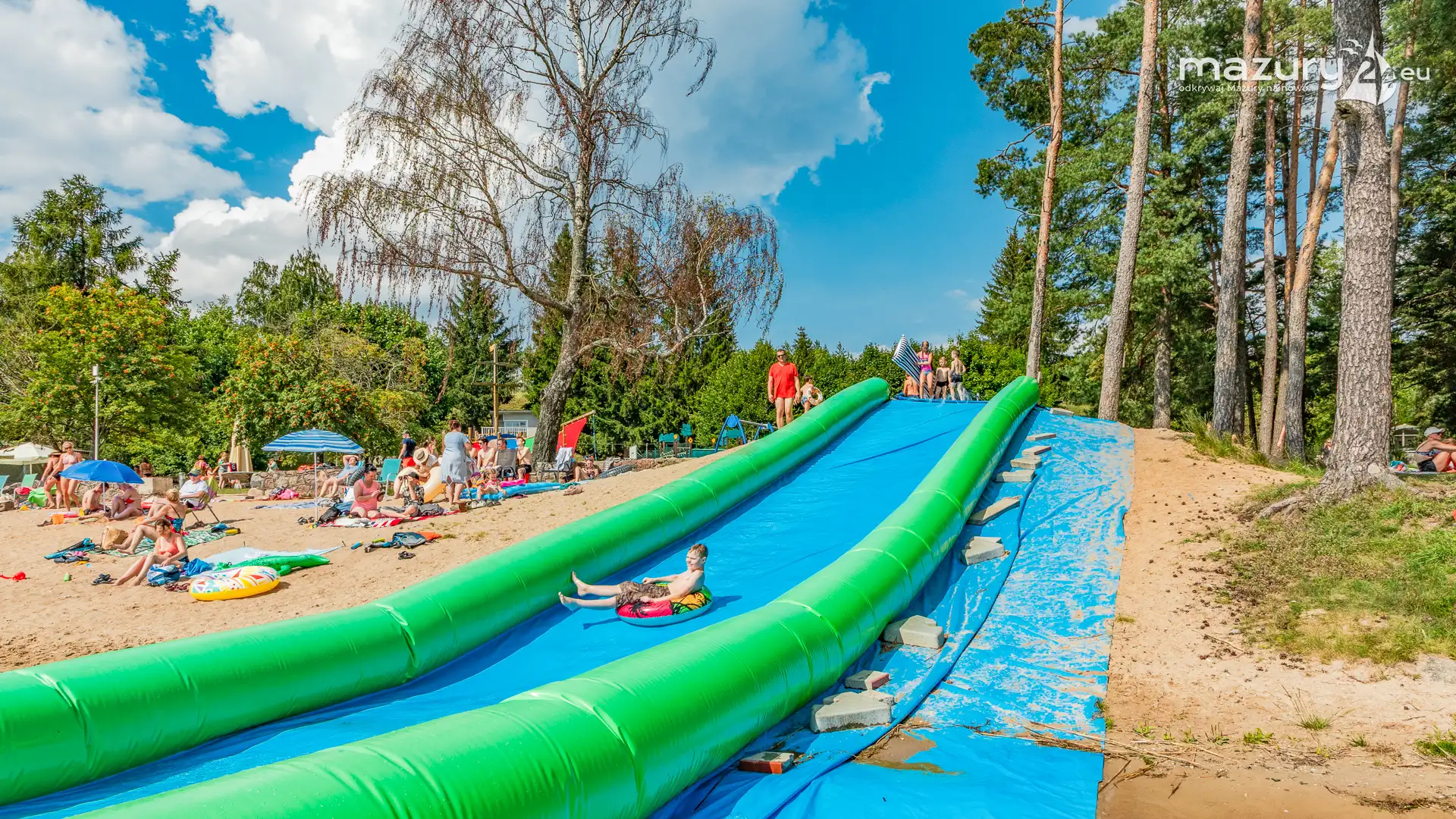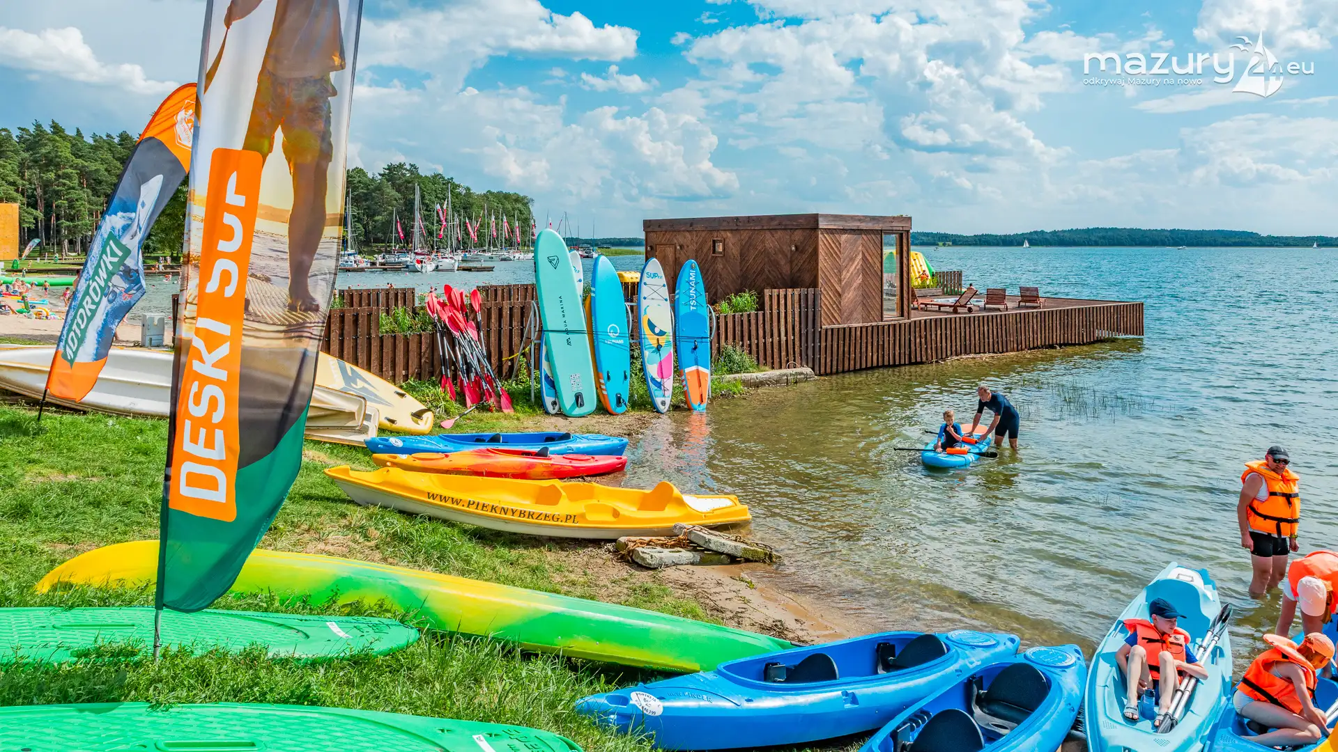 Piękny Brzeg to najlepsze miejsce dla żeglarzy z dziećmi na północnej części szlaków Wielkich Jezior Mazurskich. Leży nad jeziorem Święcajty, po wejściu na jezioro przez bramę Kalską, 90 stopni skręcamy w lewo i jesteśmy na ostatniej prostej. Część ekipy Mazury24 jeszcze kwalifikuje się do miana dziecka - jesteśmy tam kilka razy w sezonie - polecamy.