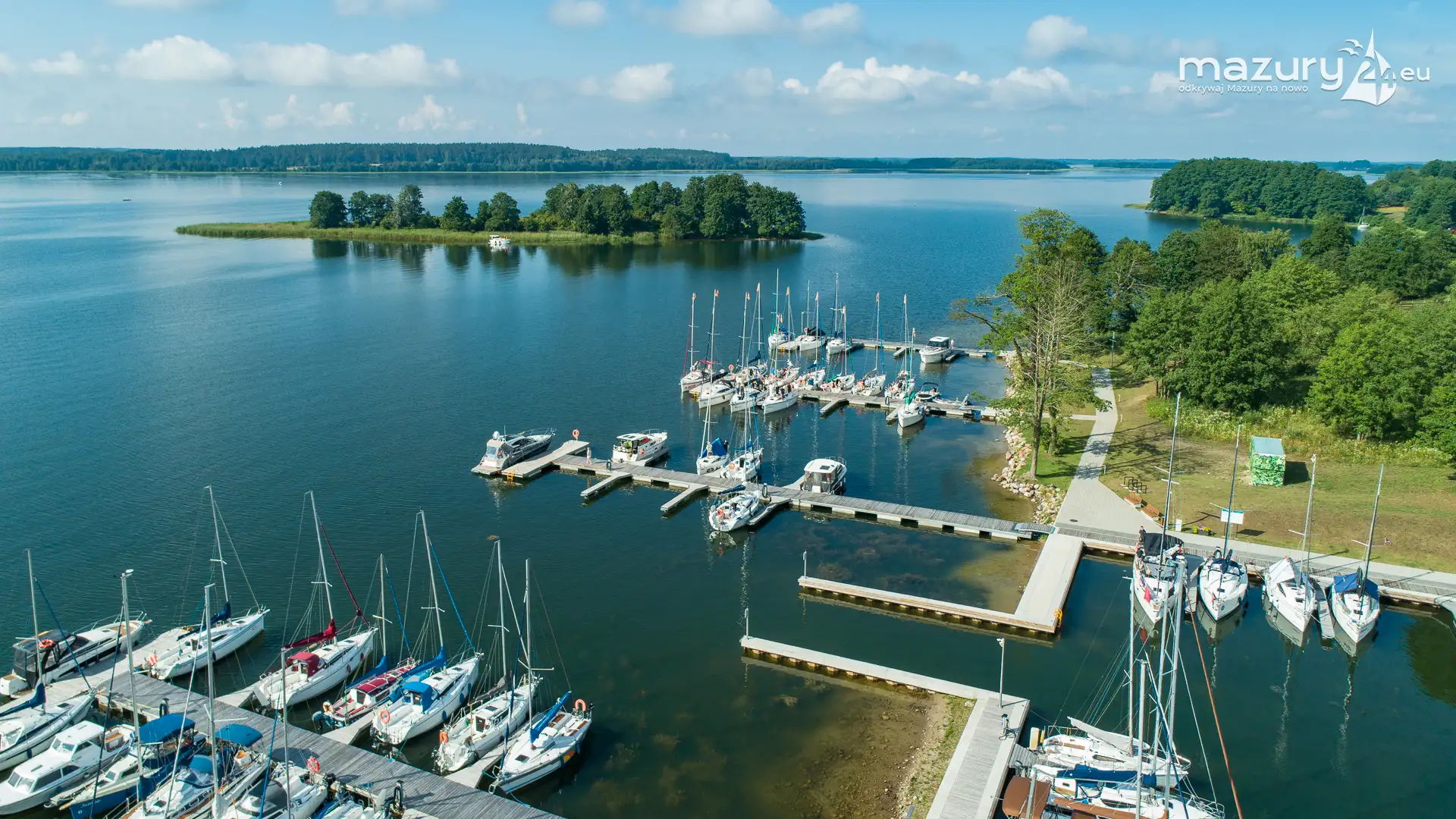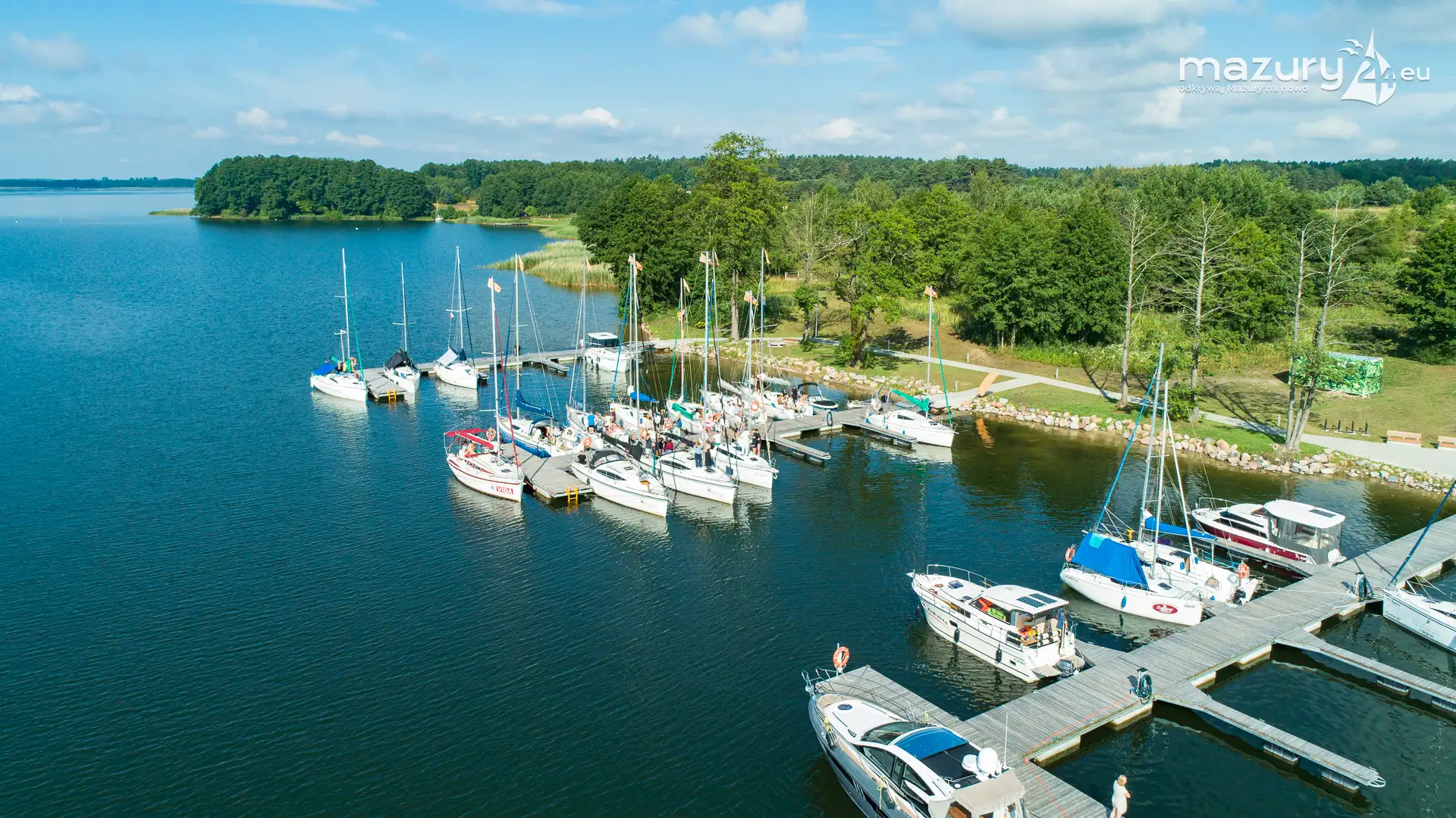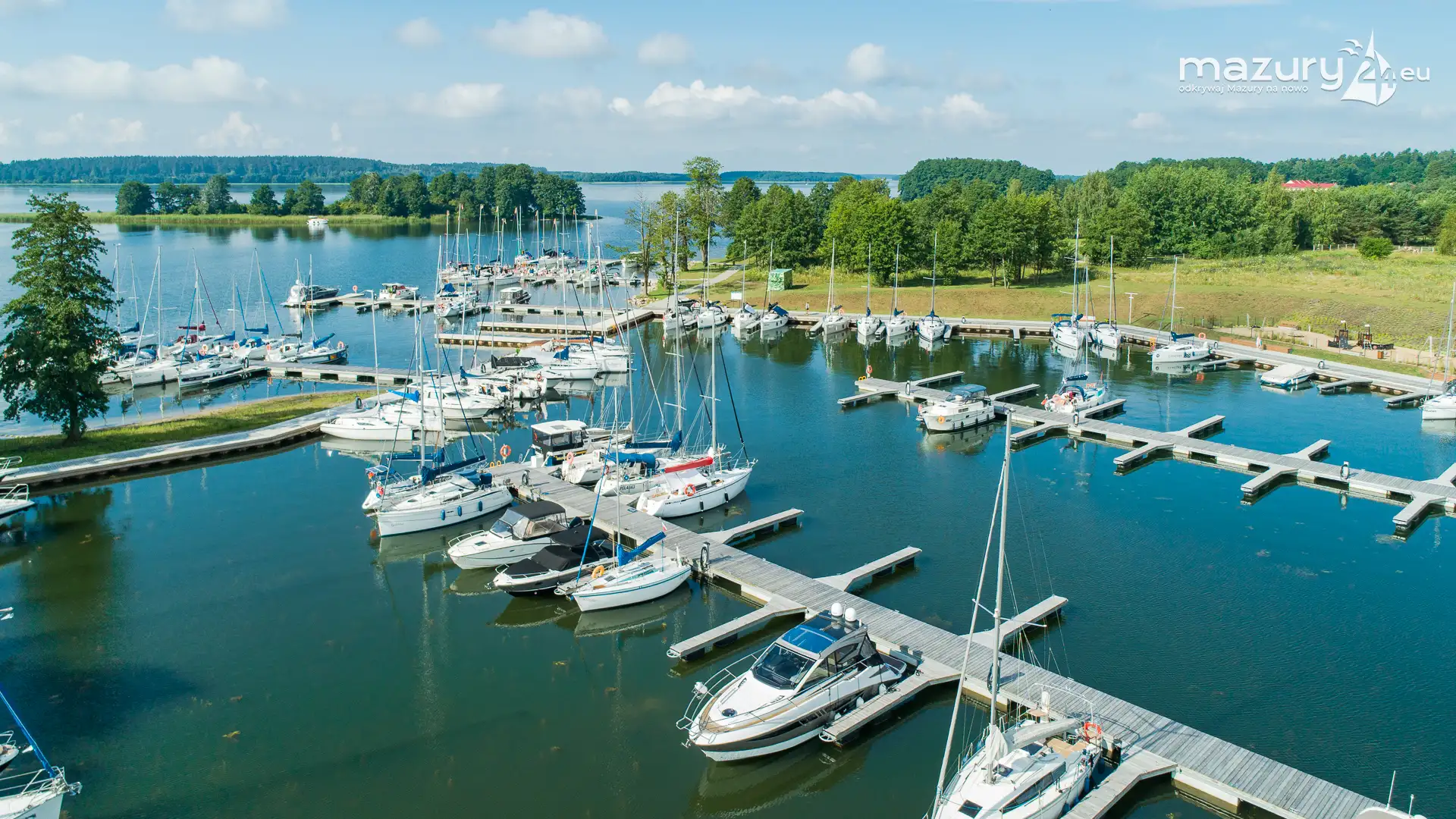 Dzisiejszy poranek był wyjątkowo słoneczny, z dużą przejrzystością powietrza - idealne warunki na podpatrzenie Mazur z lotu ptaka. Tym razem wzbiliśmy się nad portem uruchomionym w sezonie 2024 w Kolonii Rybackiej, nad jeziorem Święcajty - przystanią Nautica. Co prawda część jachtów z flot czarterowych wypłynęła, ale port dalej prezentuje się wyśmienicie.