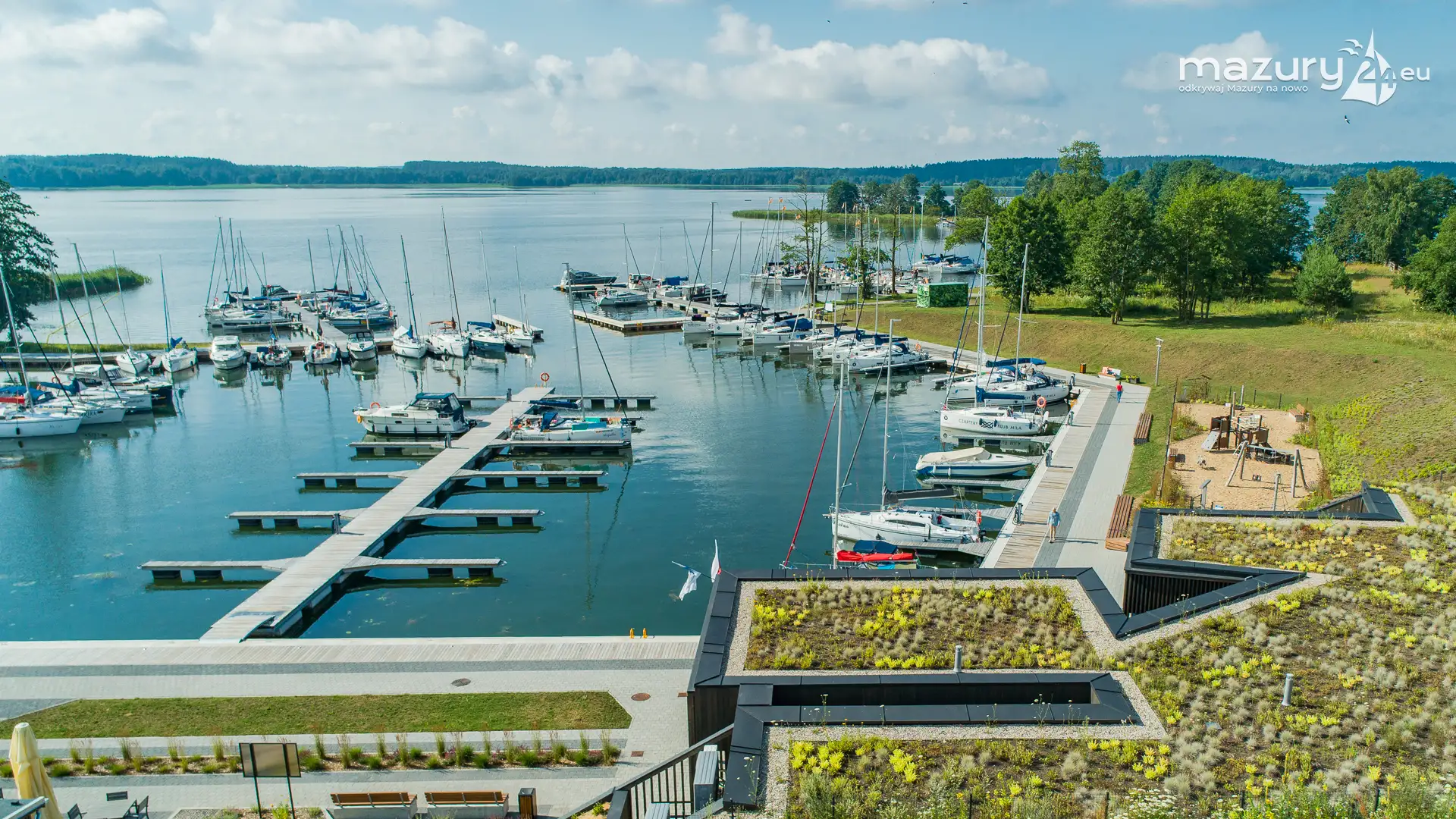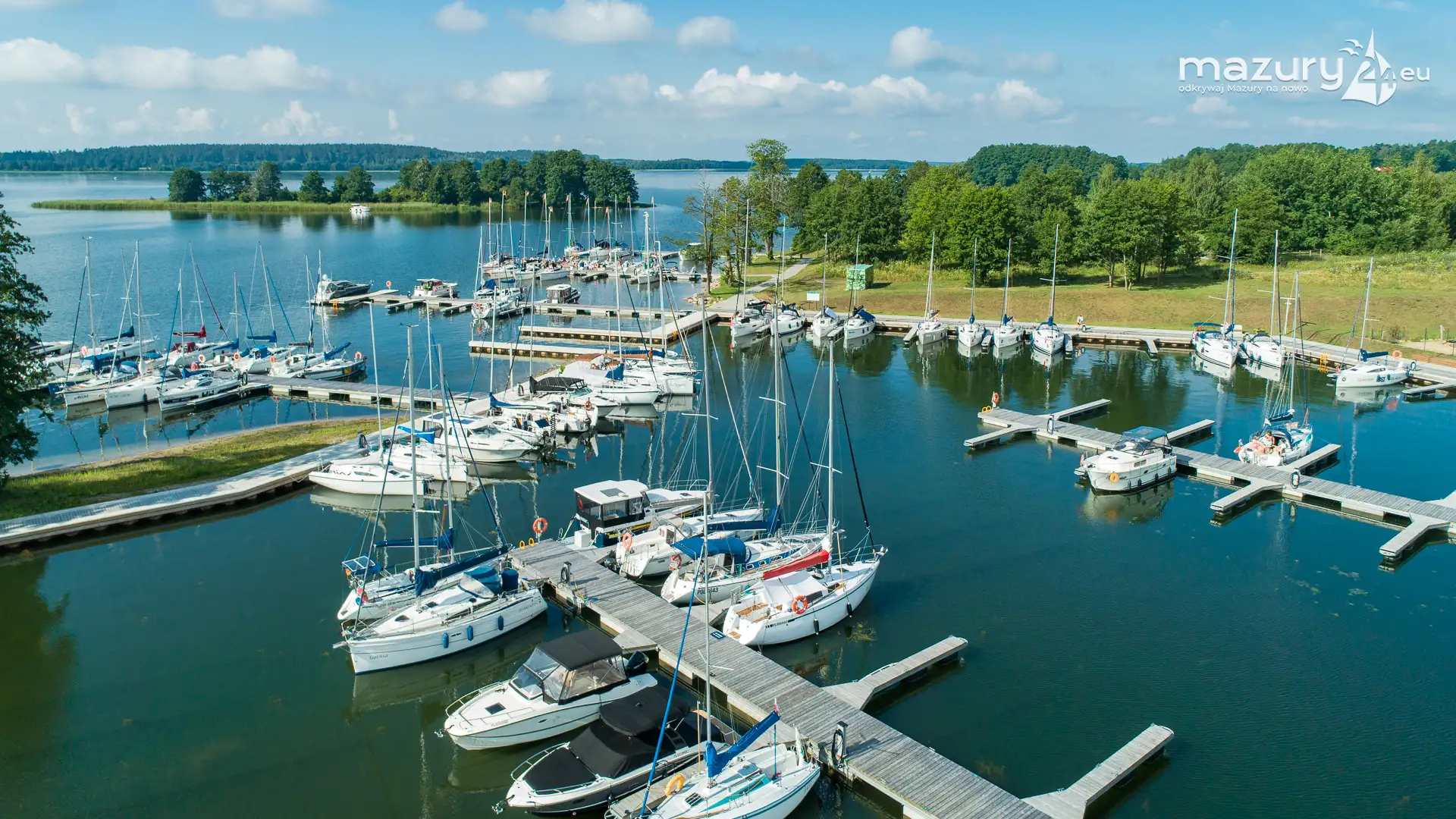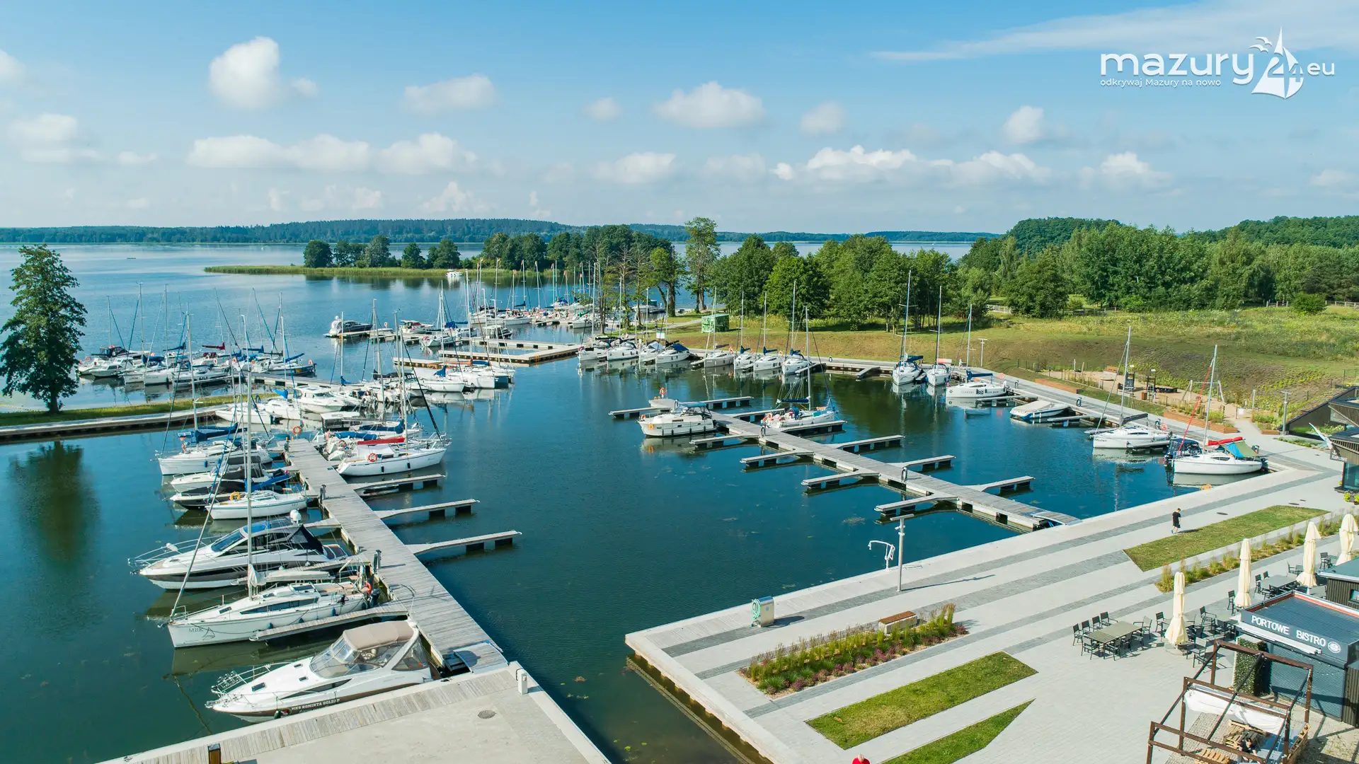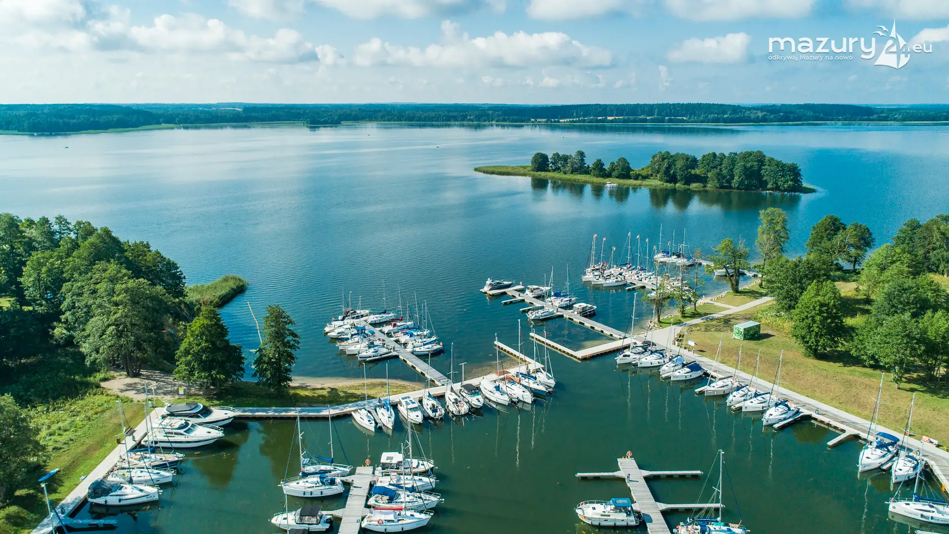 Dzisiejszy poranek był wyjątkowo słoneczny, z dużą przejrzystością powietrza - idealne warunki na podpatrzenie Mazur z lotu ptaka. Tym razem wzbiliśmy się nad portem uruchomionym w sezonie 2024 w Kolonii Rybackiej, nad jeziorem Święcajty - przystanią Nautica. Co prawda część jachtów z flot czarterowych wypłynęła, ale port dalej prezentuje się wyśmienicie.