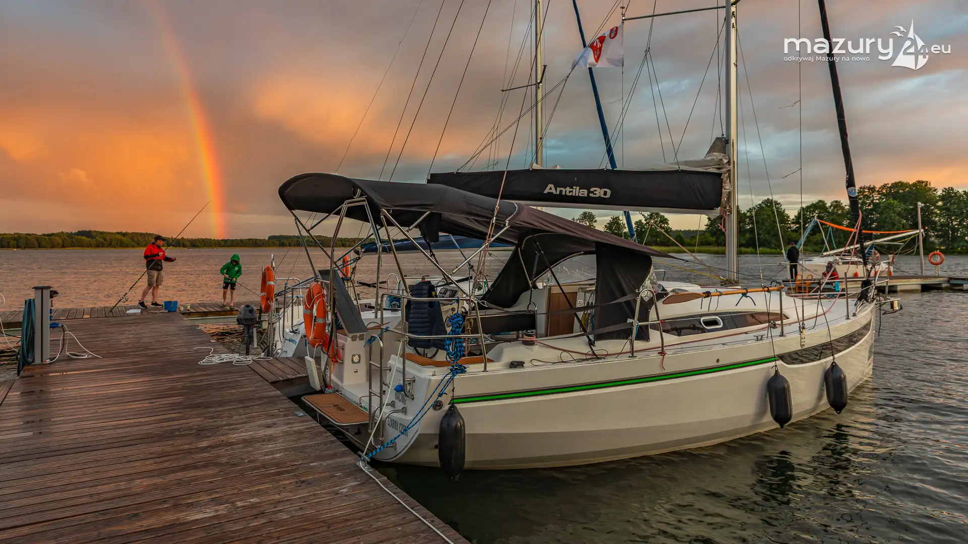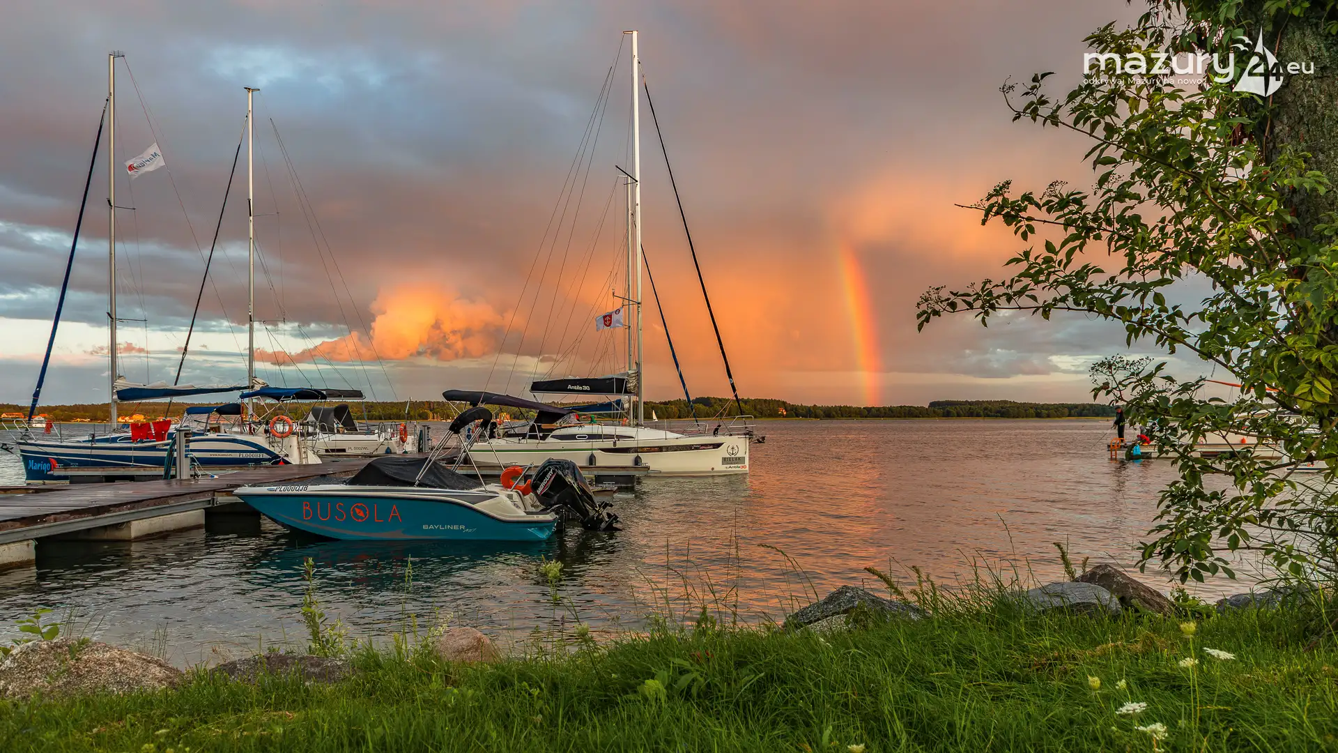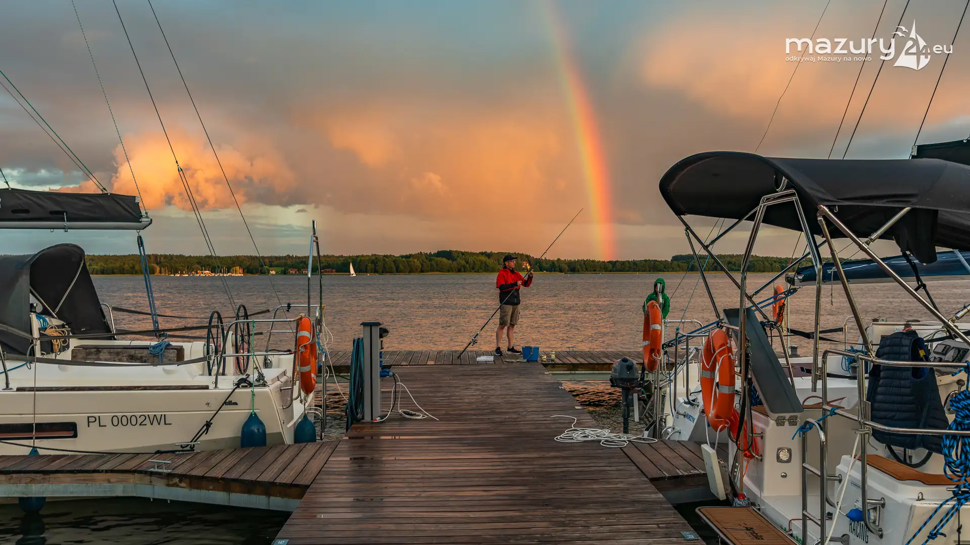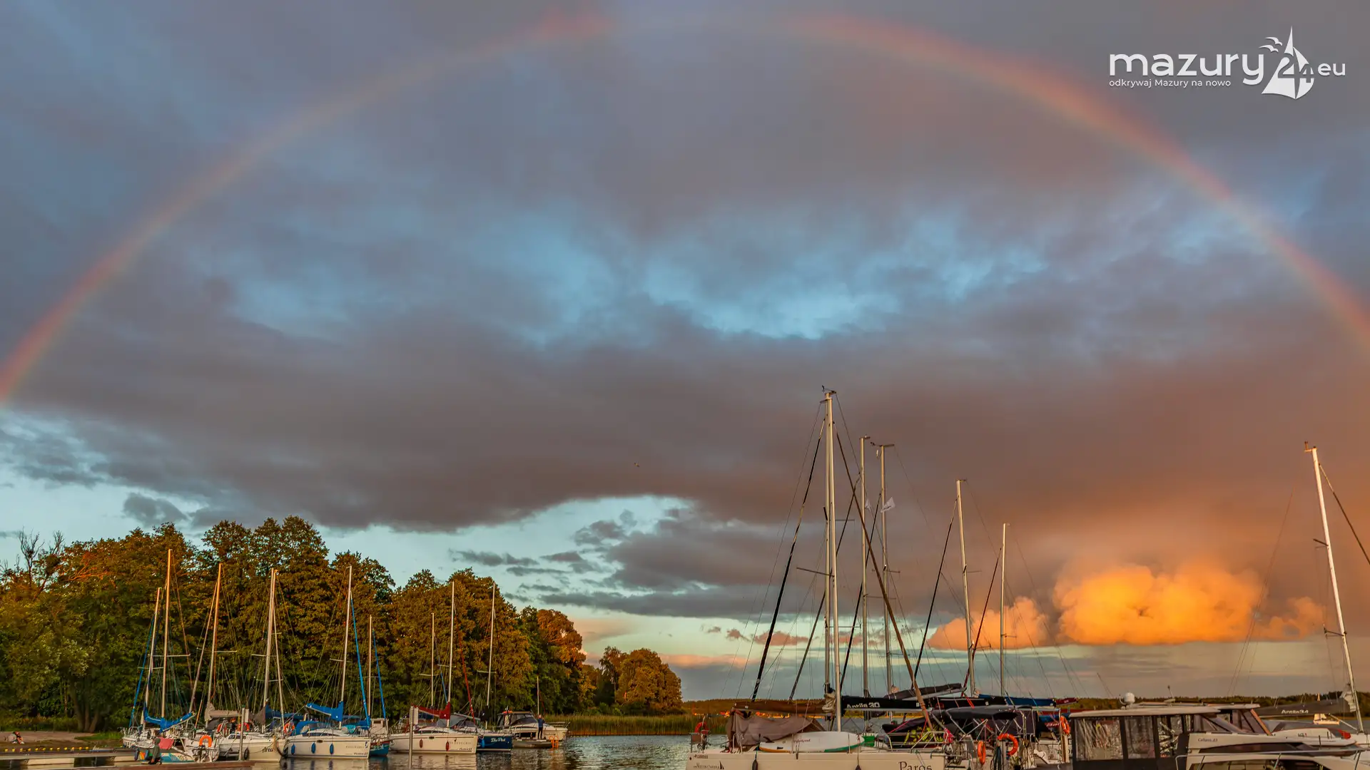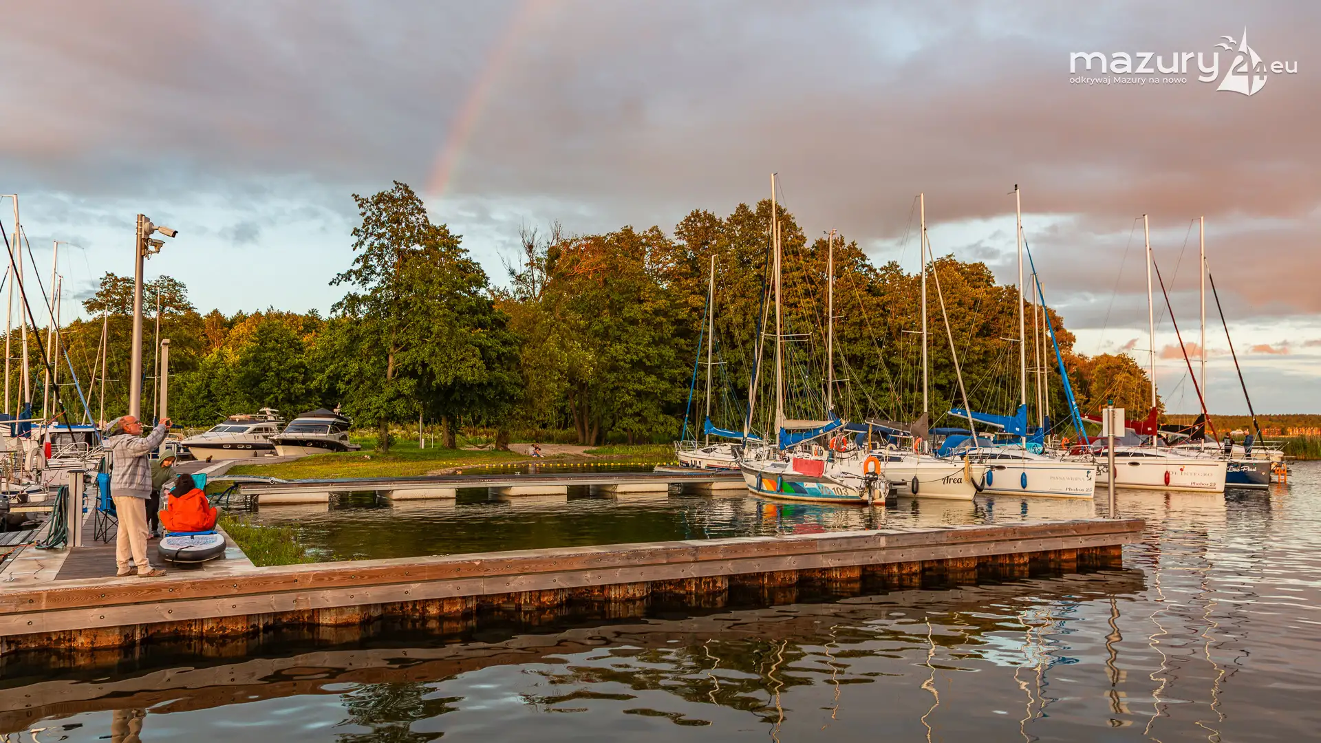 Przygotowując materiał do filmu o przystani Nautica w Kolonii Rybackiej, trafiliśmy na zachód słońca z bonusem. Z jednej strony kolory końca dnia, a z drugiej - spektakularna tęcza. Zachód widoczny był tylko z drona (zdjęcia wkrótce), więc z aparatem skupiliśmy się na tęczy. Nie tylko nas inspirowały kolory i kadry, co druga osoba kierowała telefon właśnie w jej stronę...