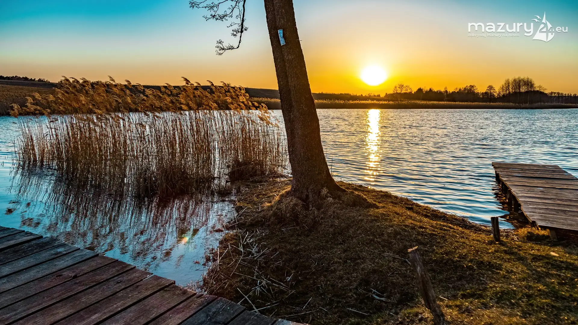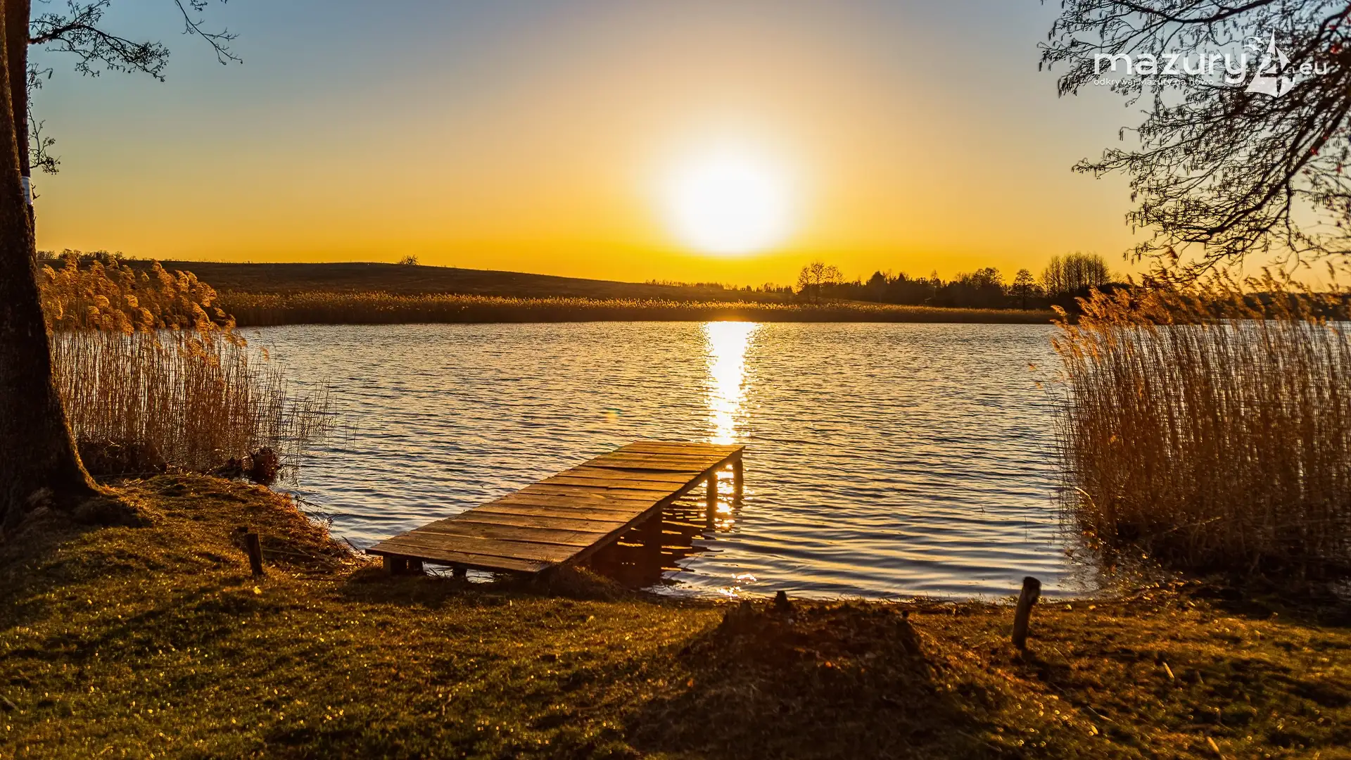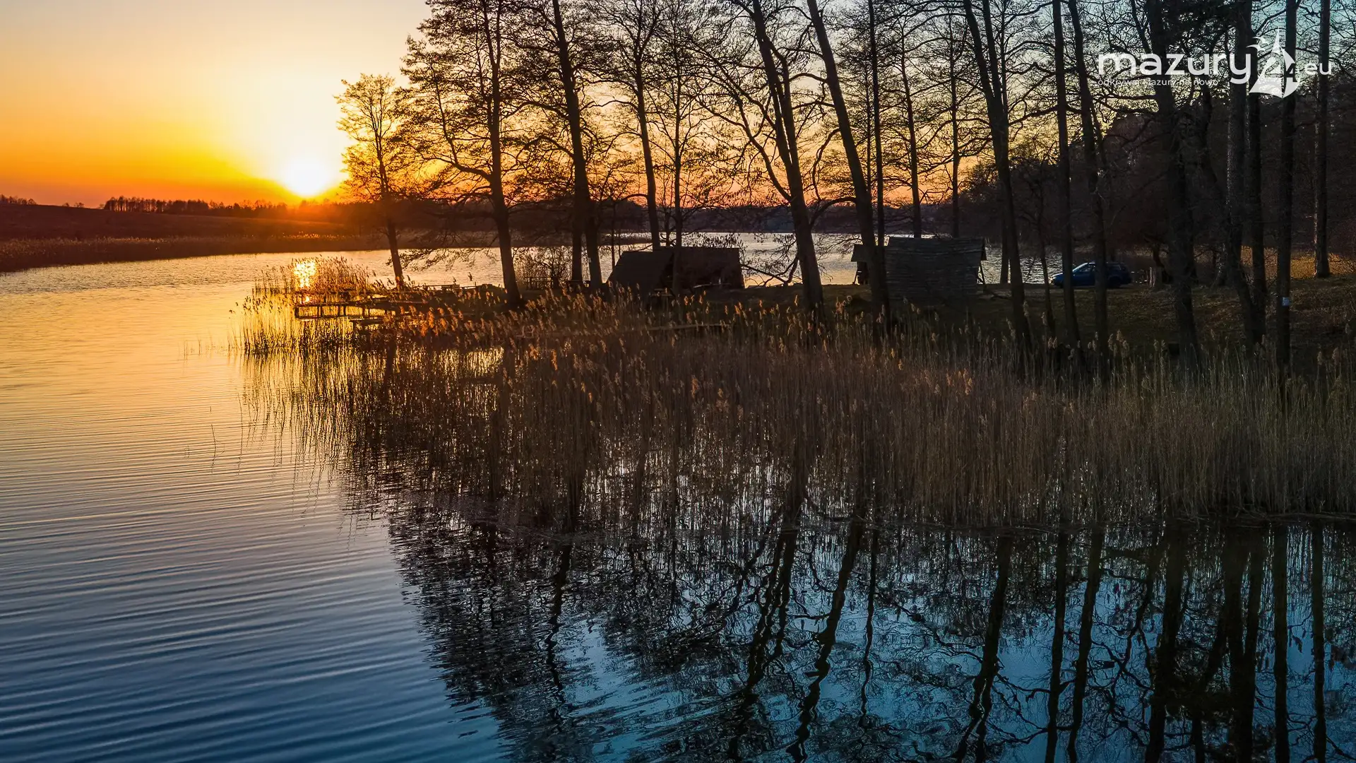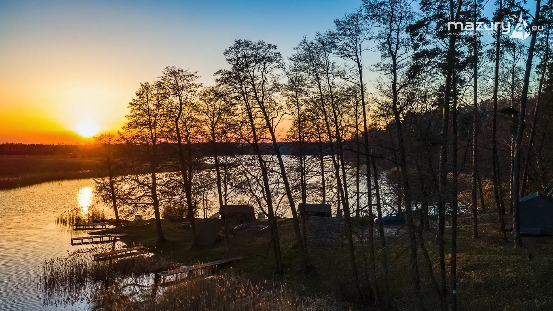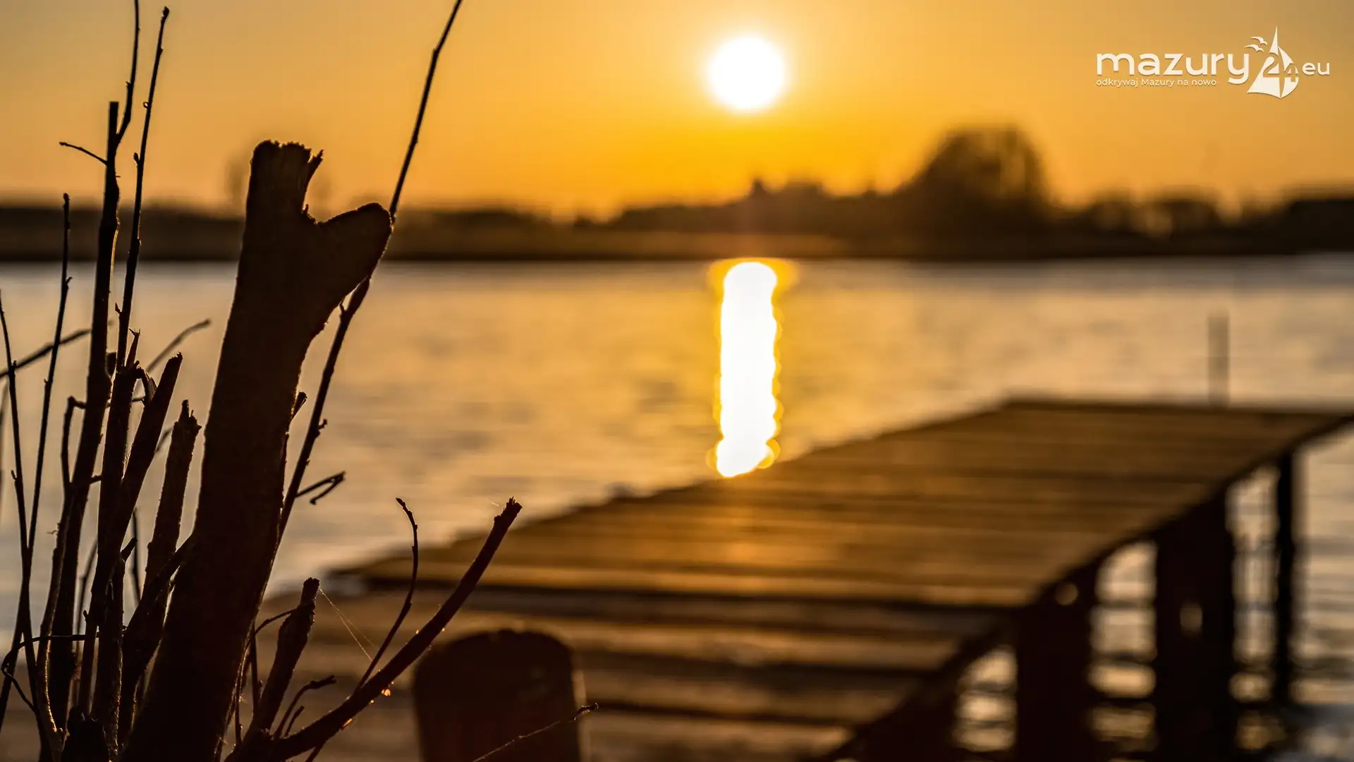 Zachód słońca nad jeziorem Dargin, przystań u Mielnika
