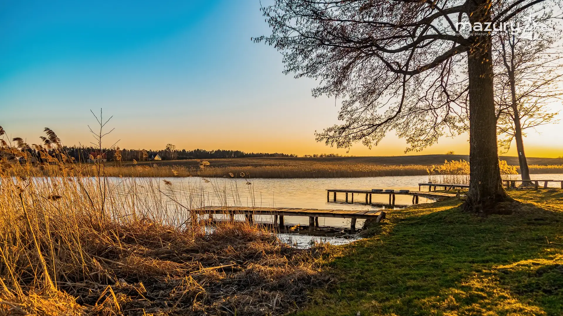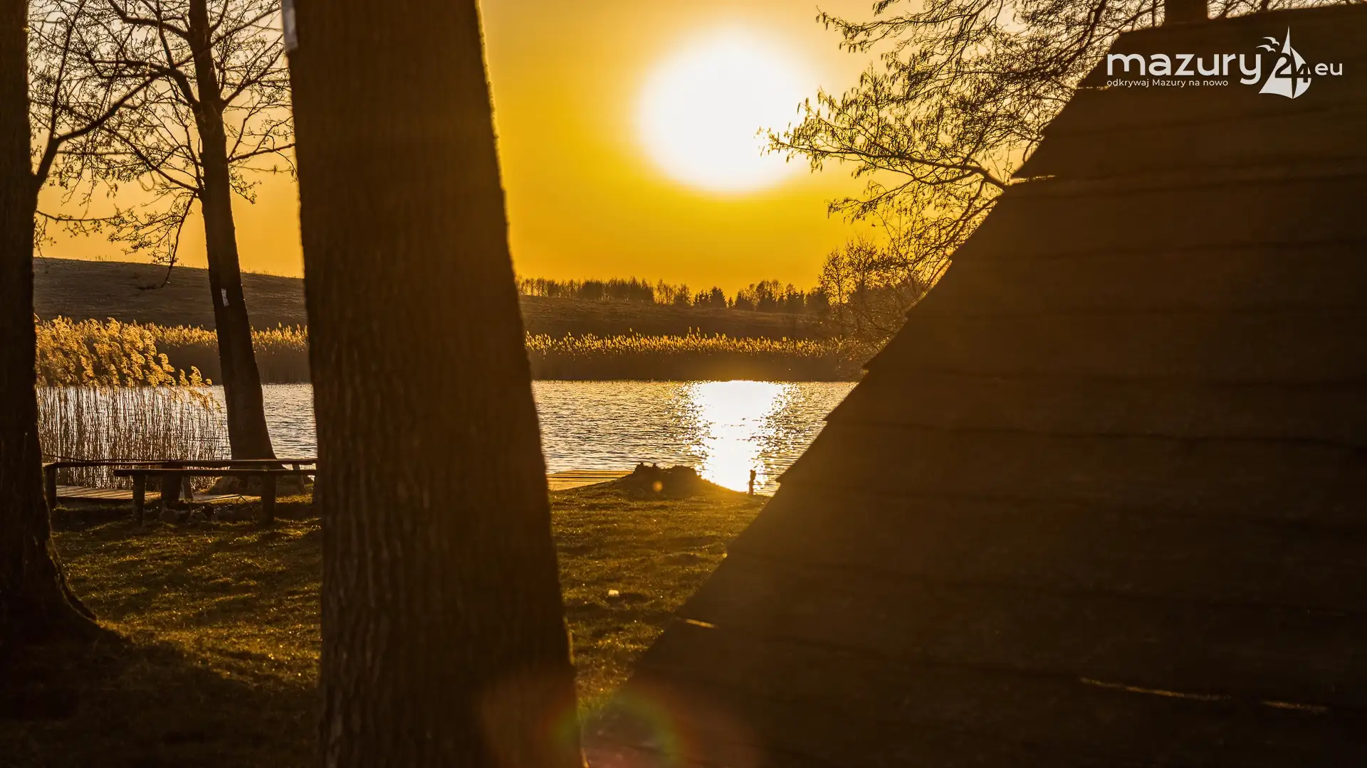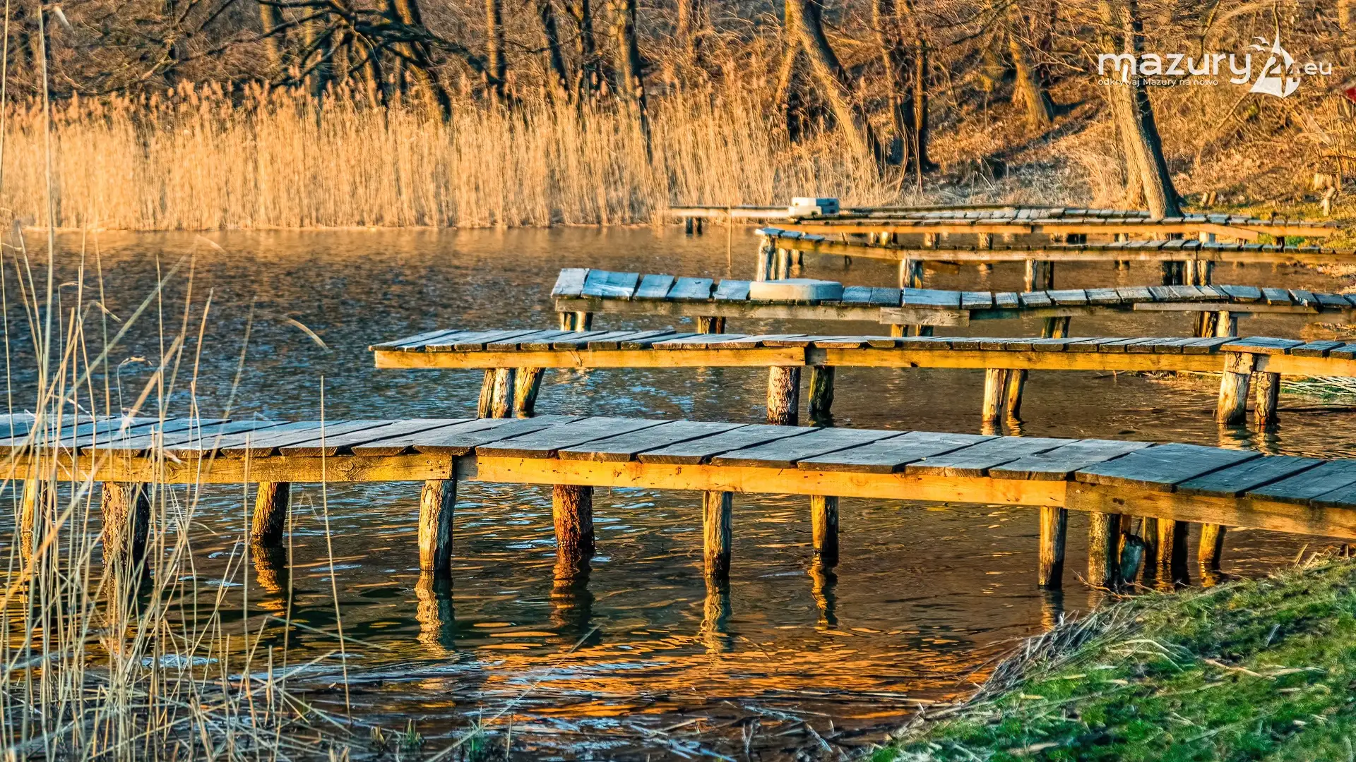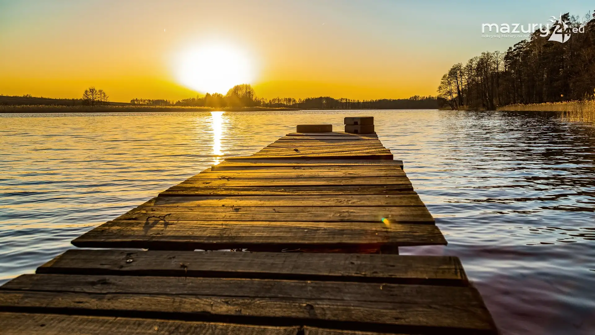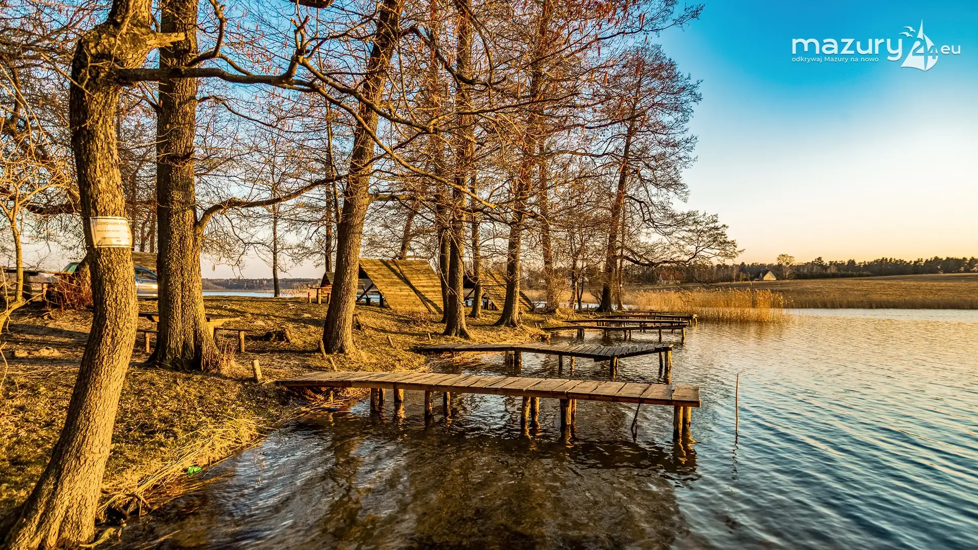 Zachód słońca nad jeziorem Dargin, przystań u Mielnika