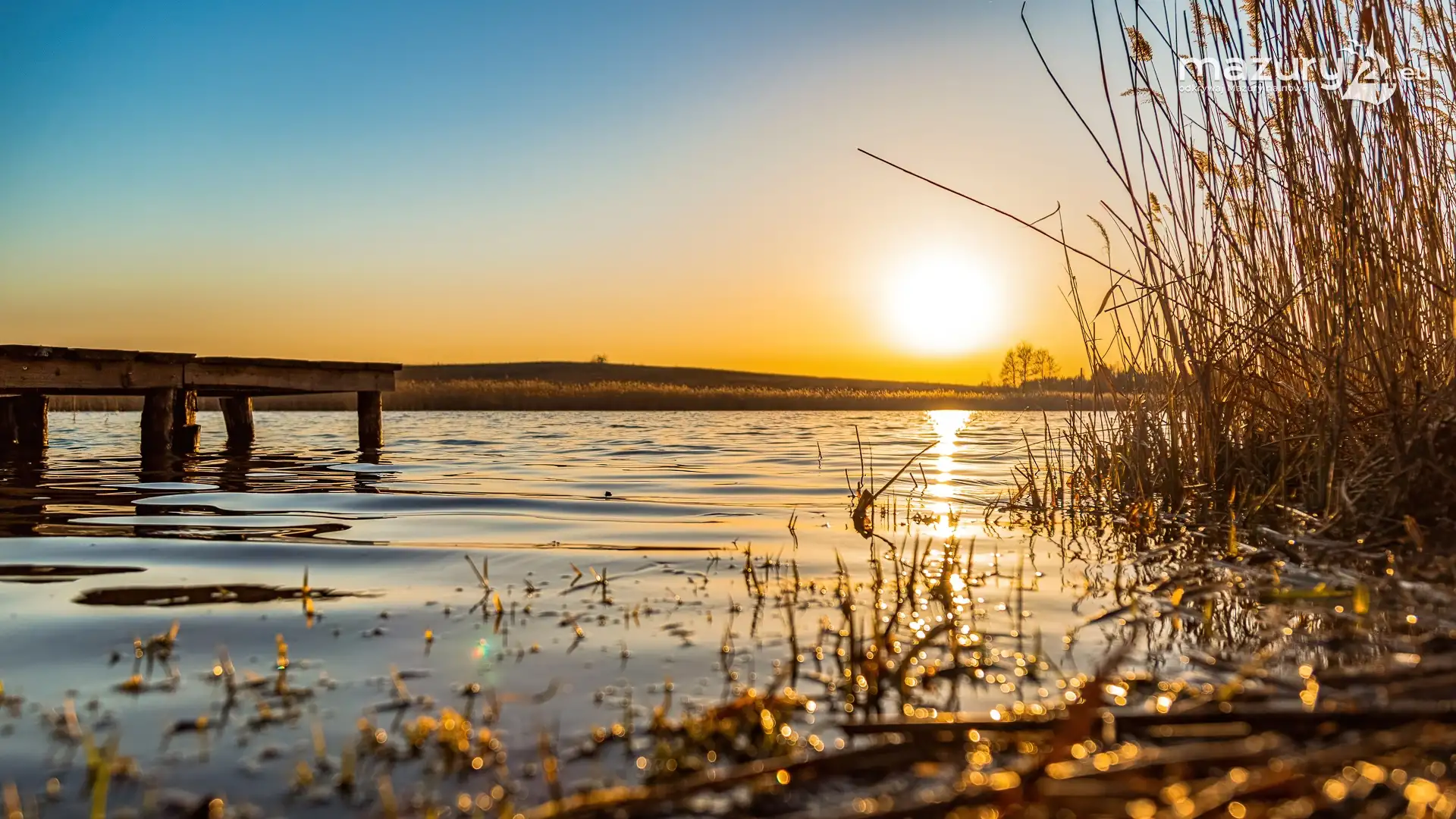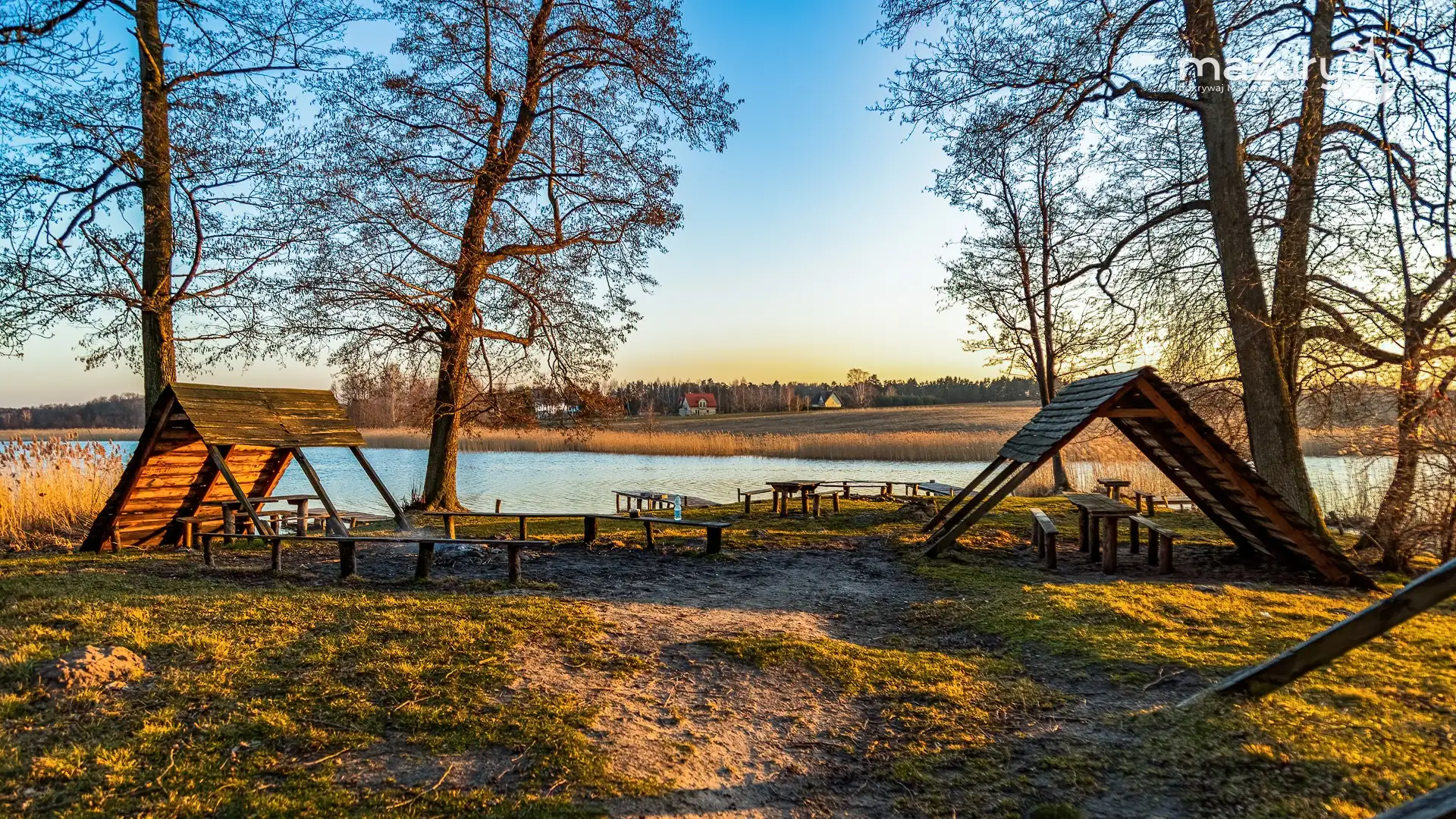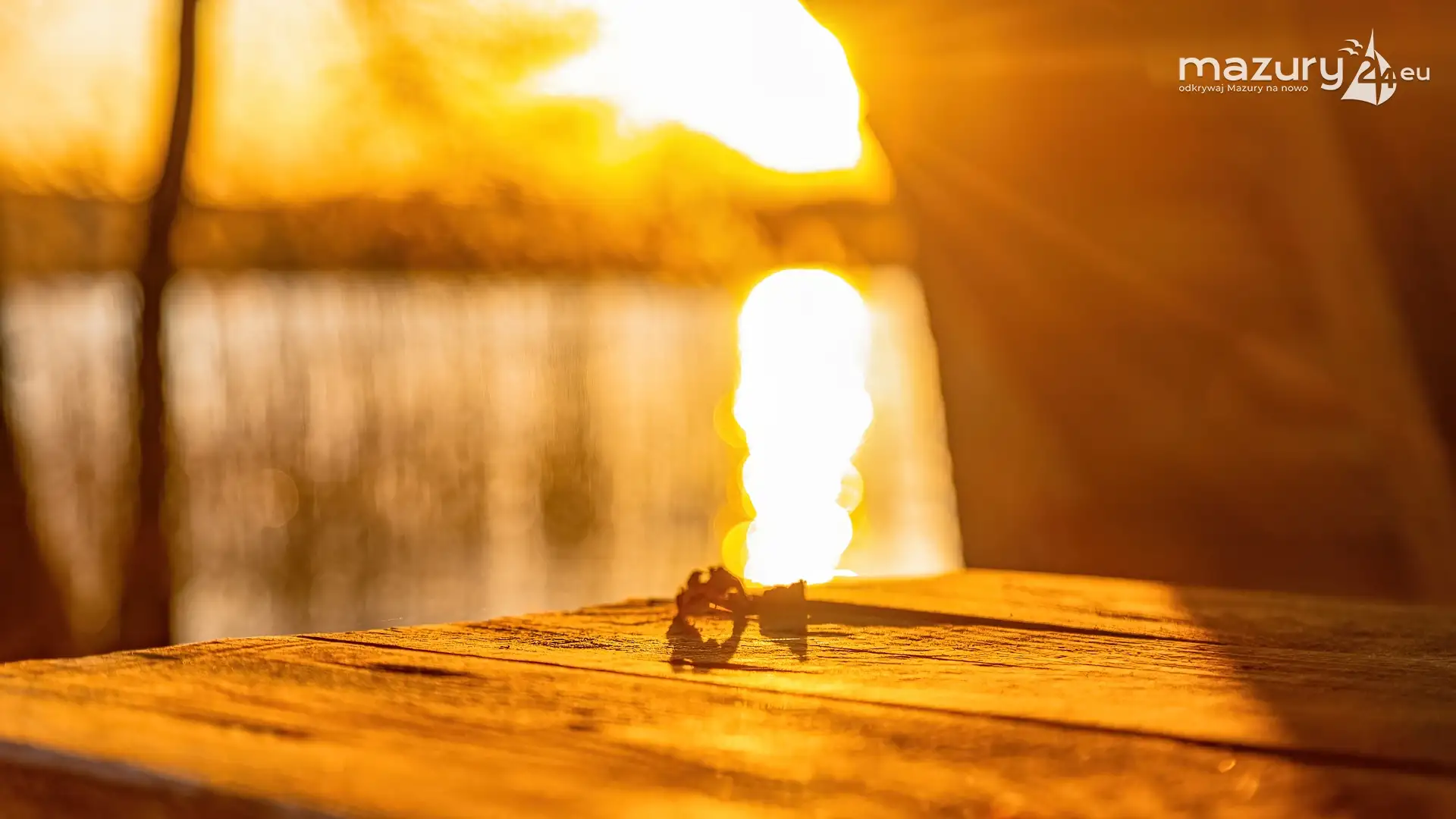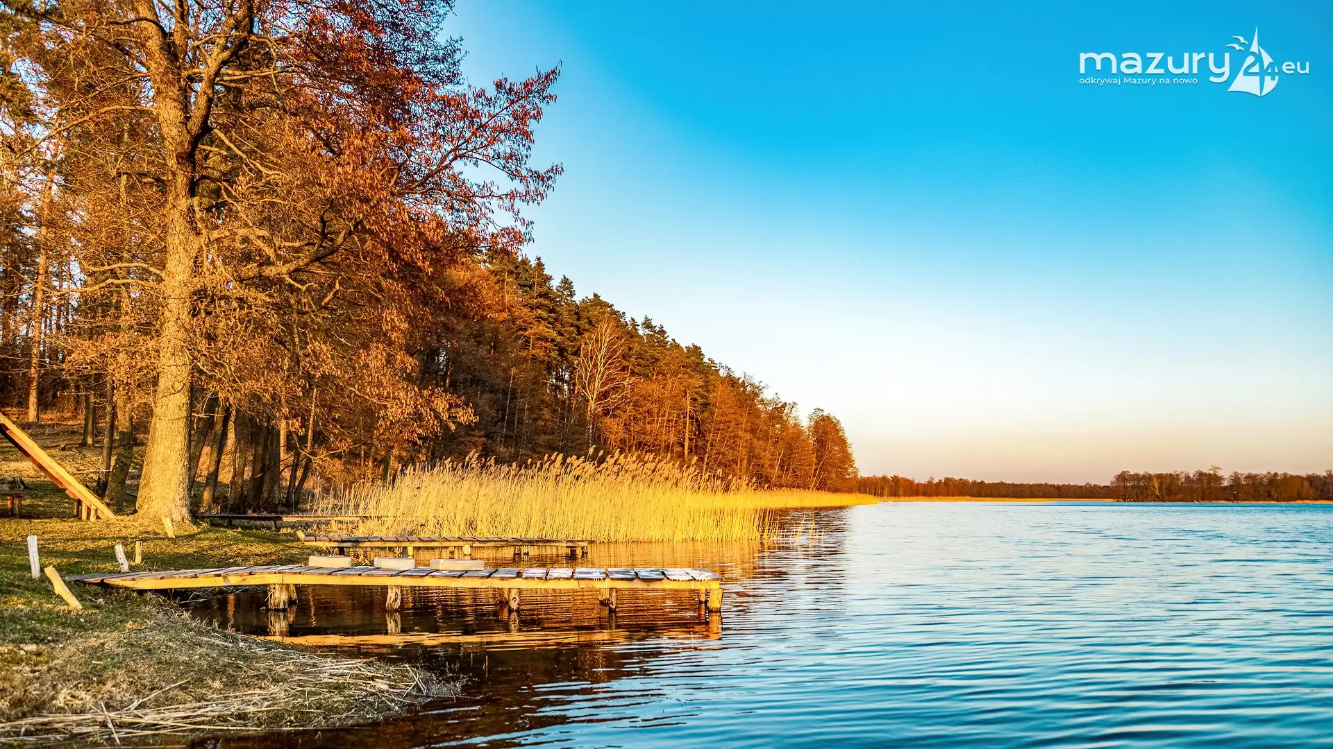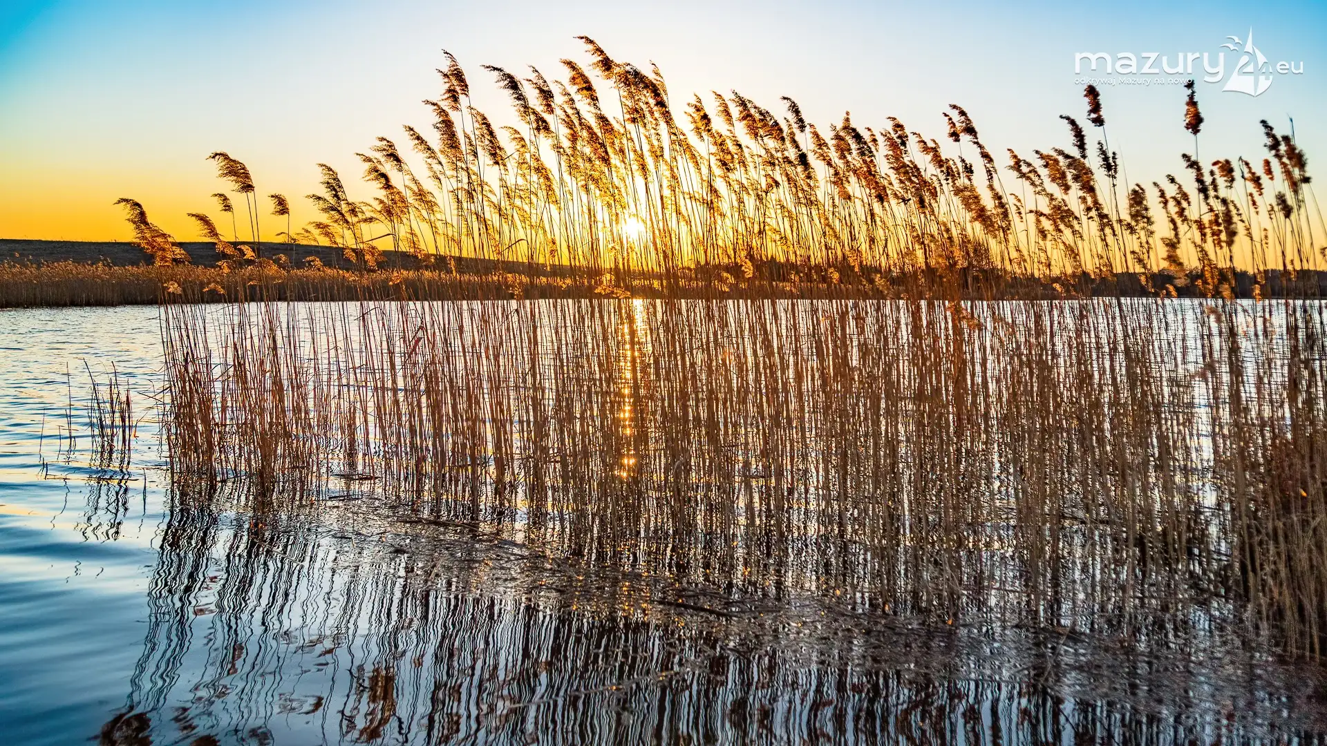 Zachód słońca nad jeziorem Dargin, przystań u Mielnika
