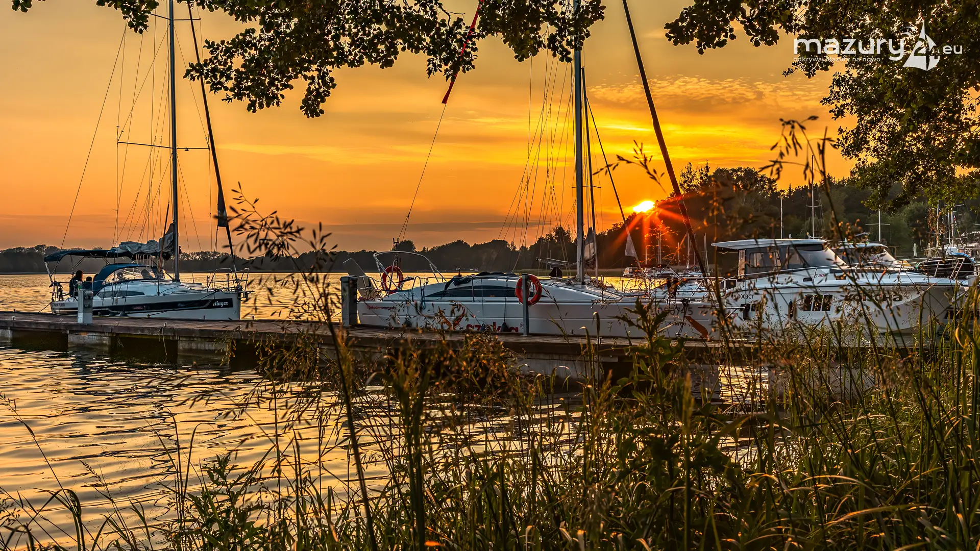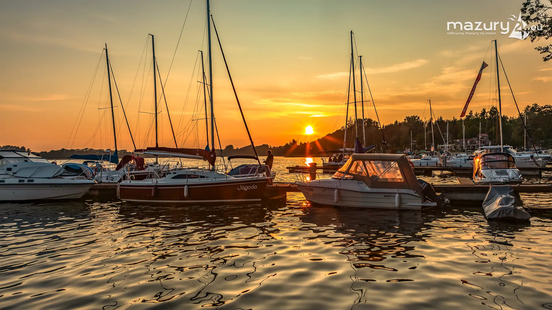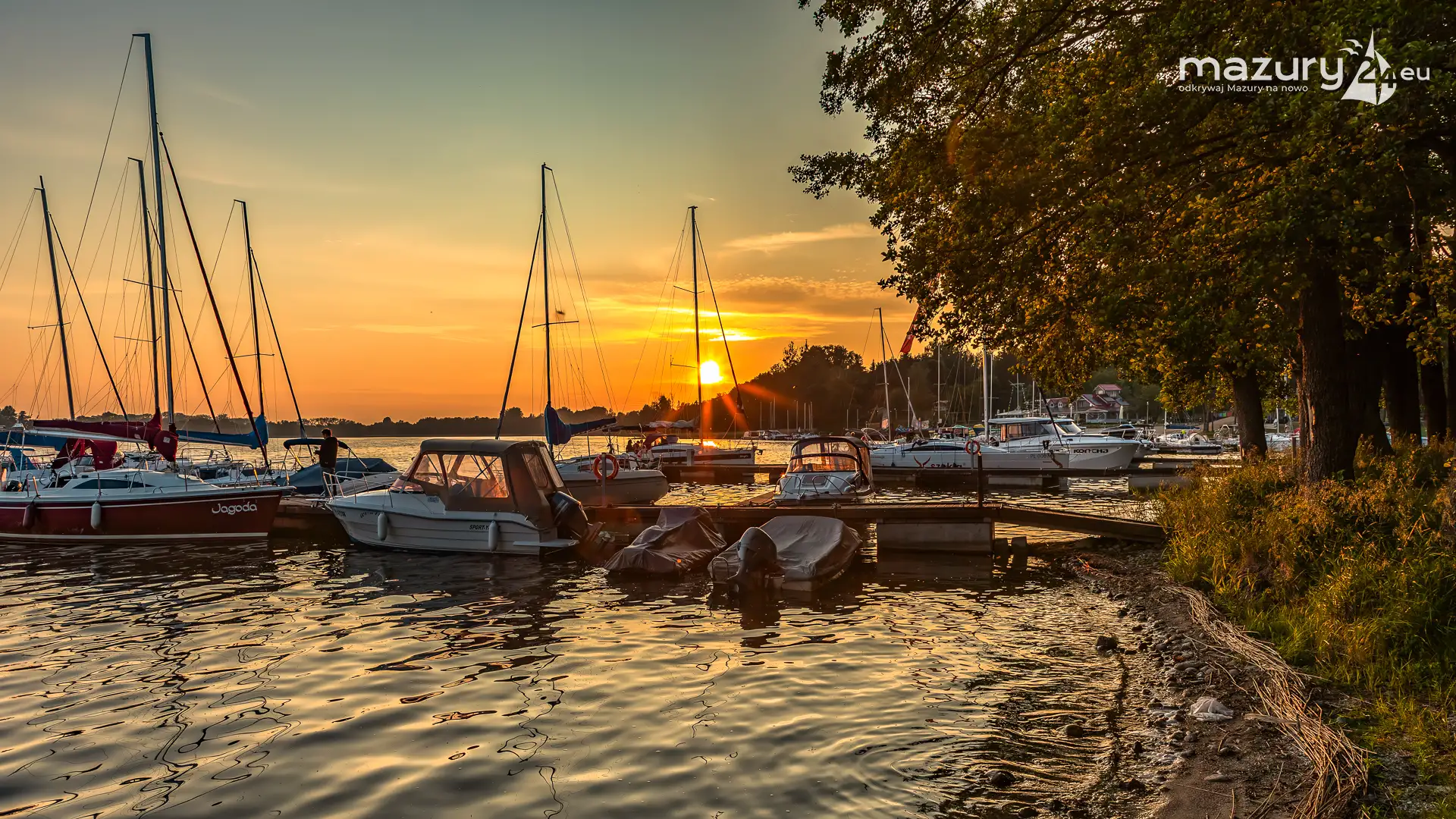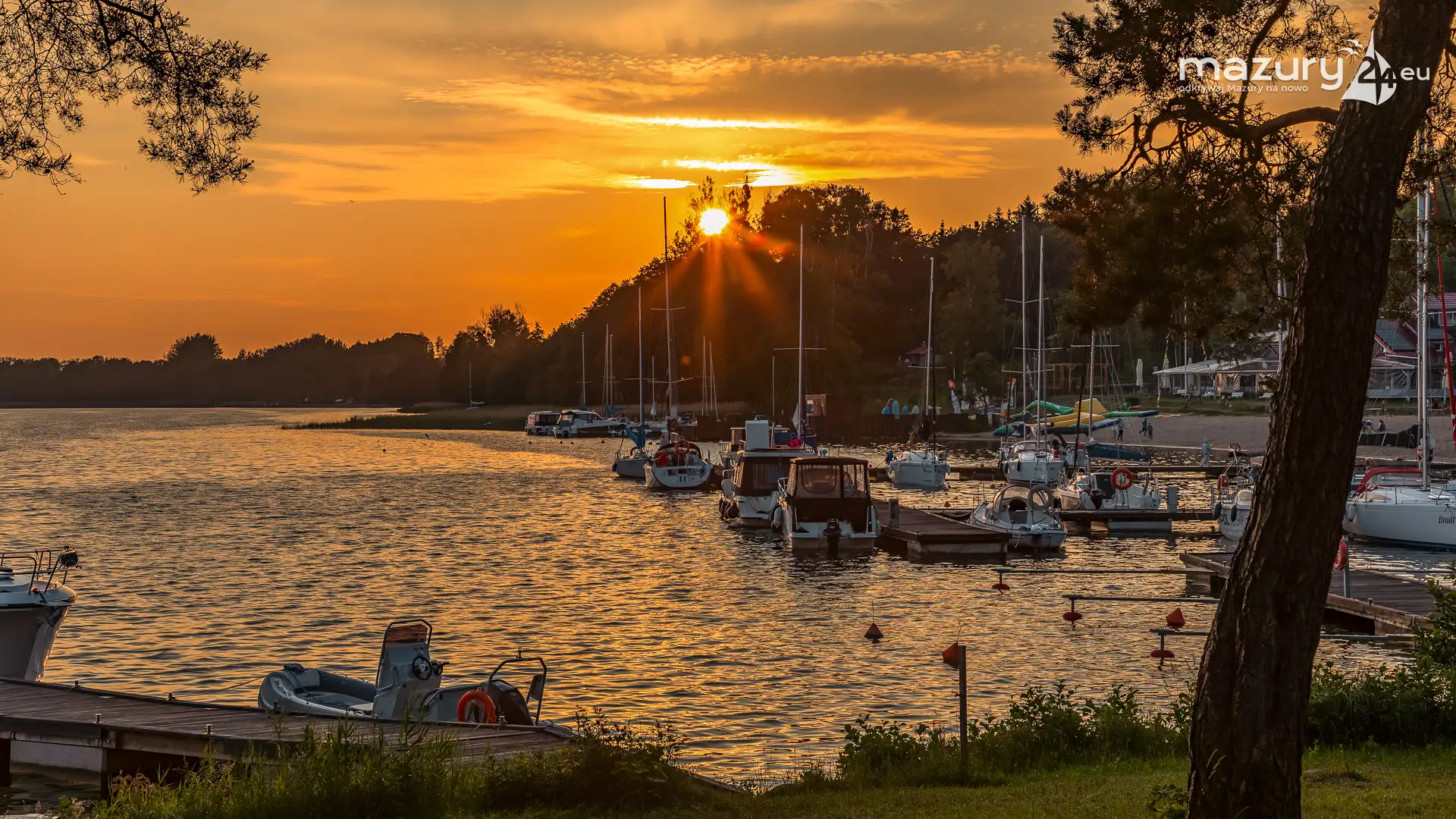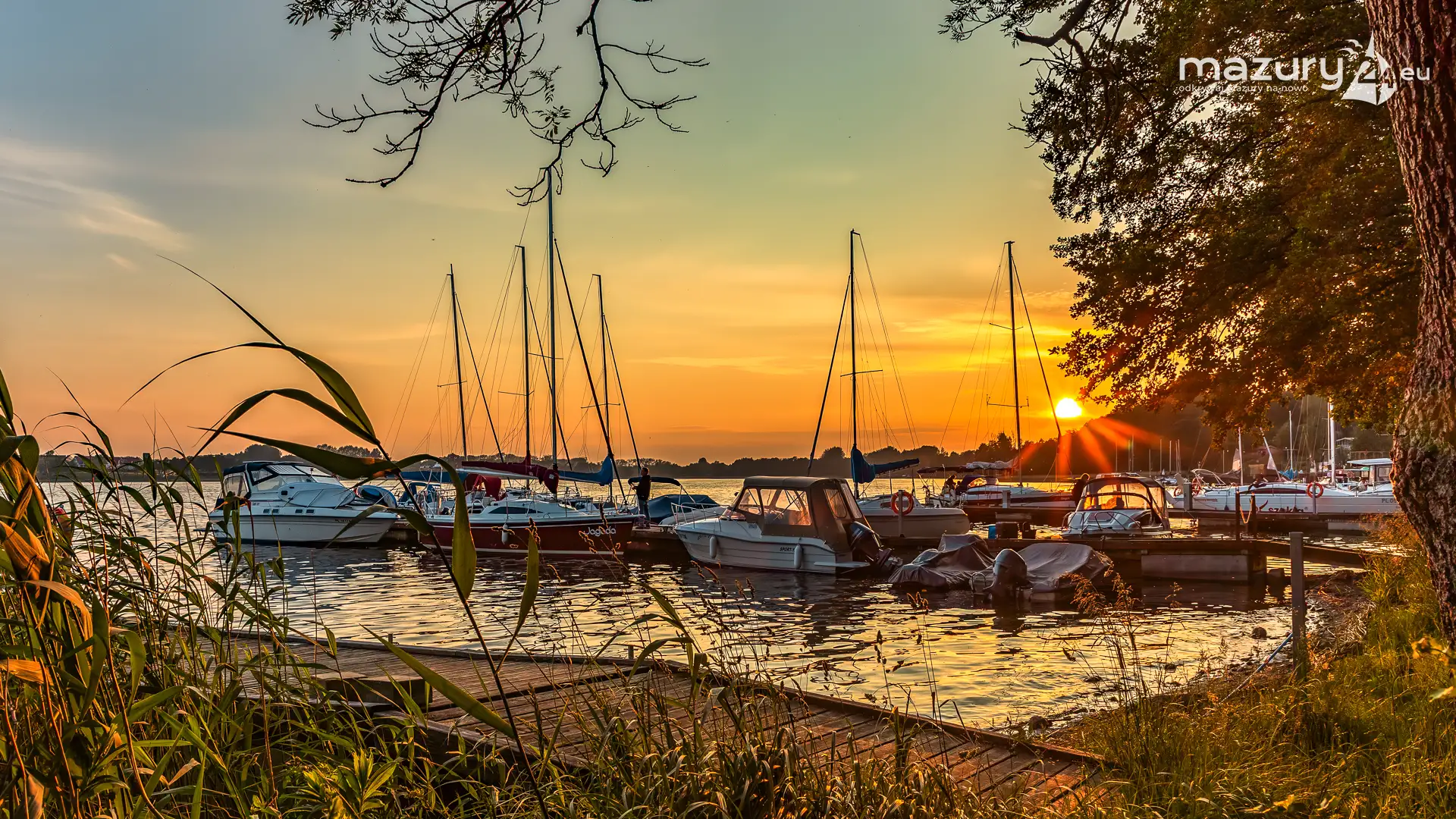 W poszukiwaniu pięknych kadrów o zachodzie słońca przemierzamy Mazury wzdłuż i wszerz. Jest to ważny element naszej przygody okraszonej hasłem "Odkrywamy Mazury na nowo!". Ostatnio dotarliśmy do portu Piękny Brzeg nad jeziorem Święcajty przy Węgorzewie, w którym o tej porze roku, zachód słońca z racji drzew obserwuje się nieco wcześniej...