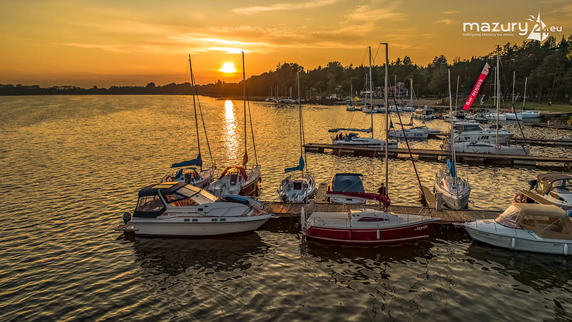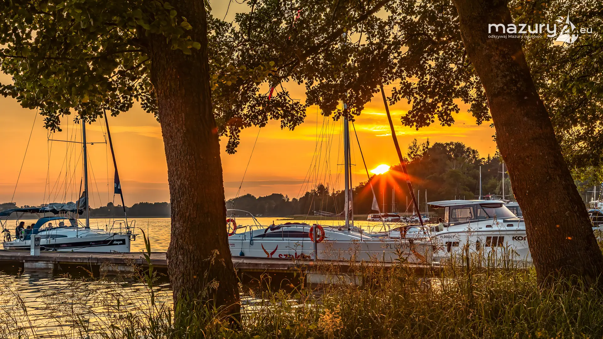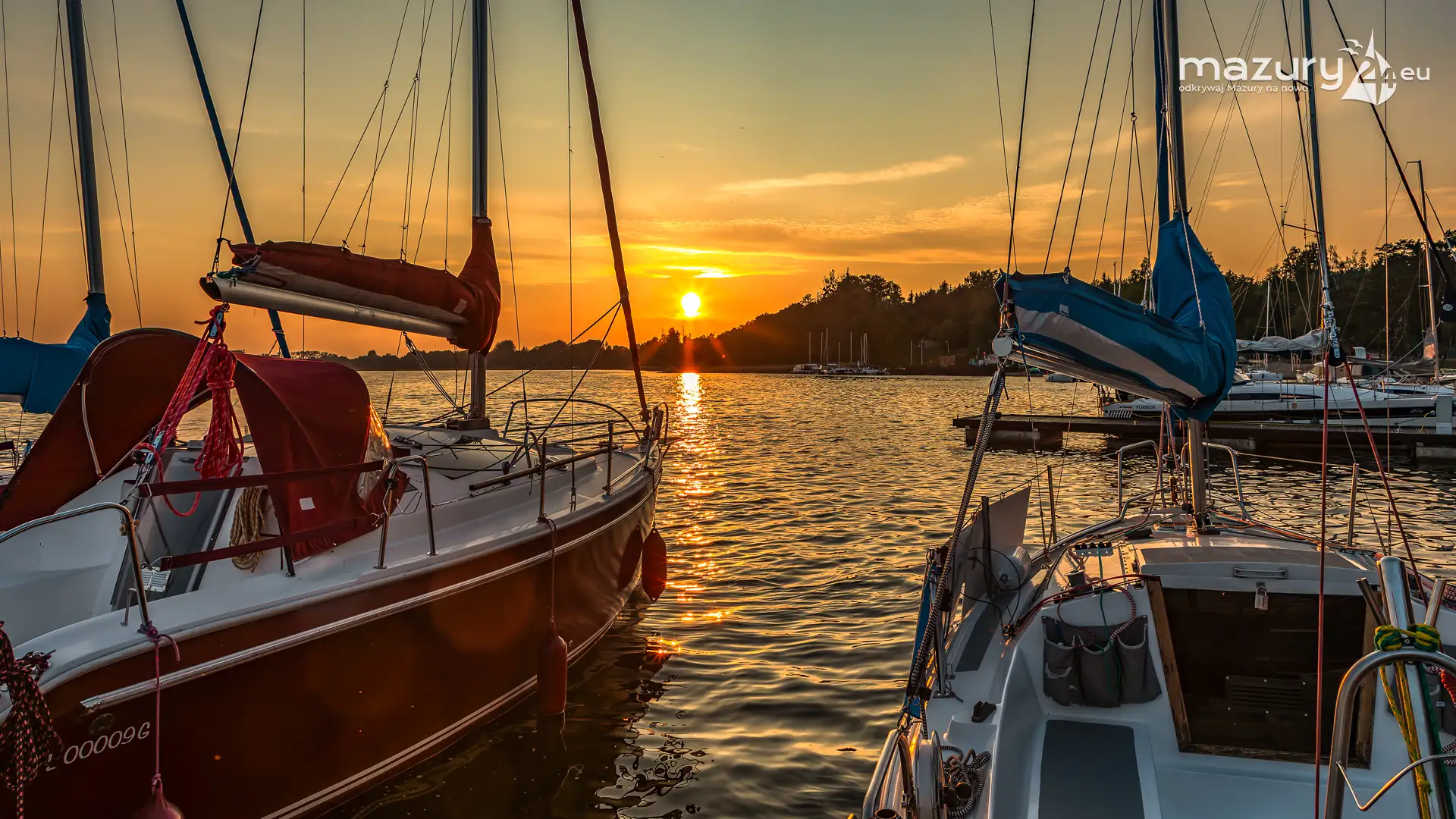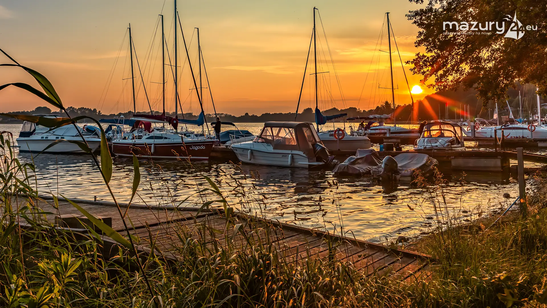 W poszukiwaniu pięknych kadrów o zachodzie słońca przemierzamy Mazury wzdłuż i wszerz. Jest to ważny element naszej przygody okraszonej hasłem "Odkrywamy Mazury na nowo!". Ostatnio dotarliśmy do portu Piękny Brzeg nad jeziorem Święcajty przy Węgorzewie, w którym o tej porze roku, zachód słońca z racji drzew obserwuje się nieco wcześniej...
