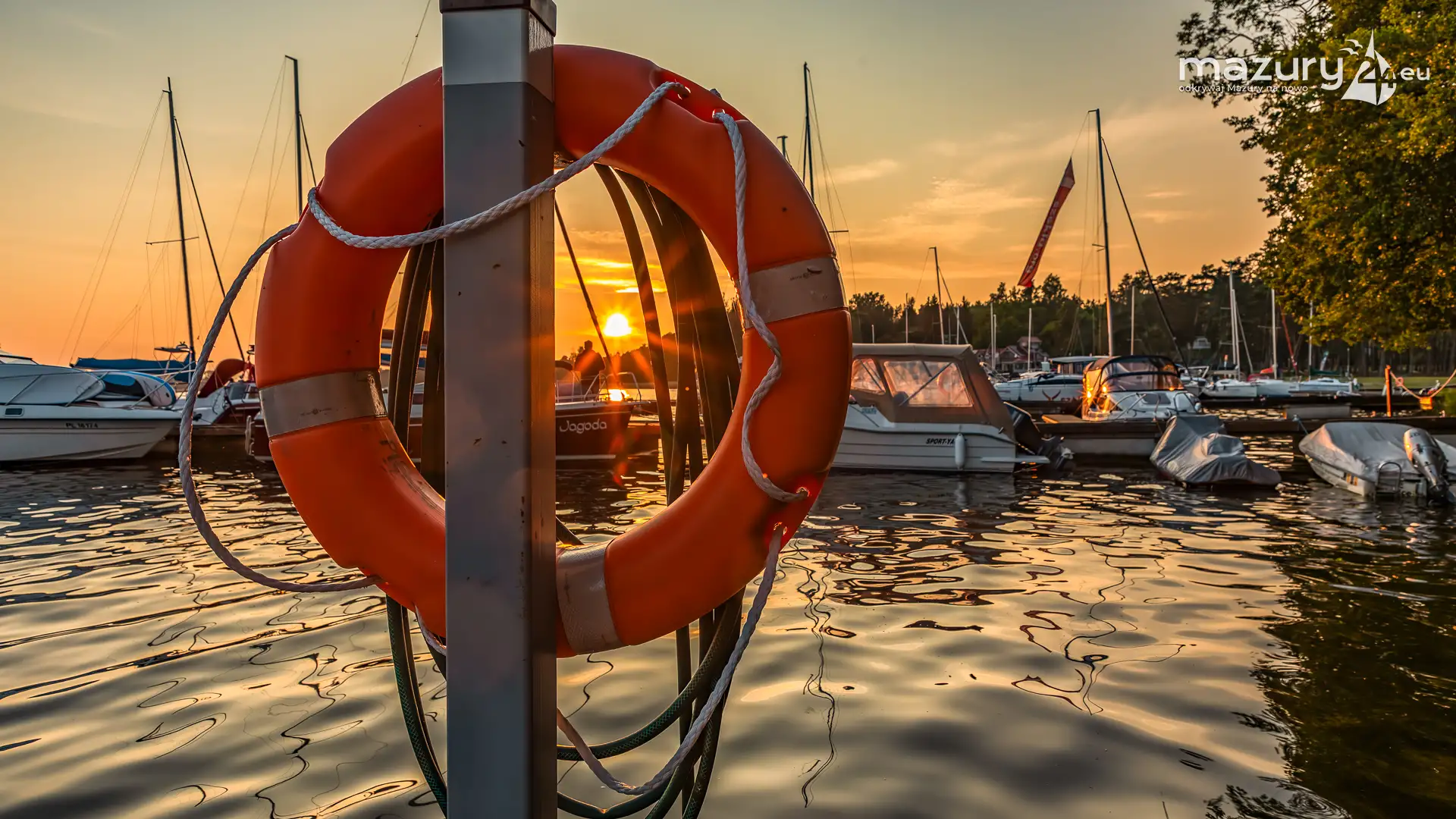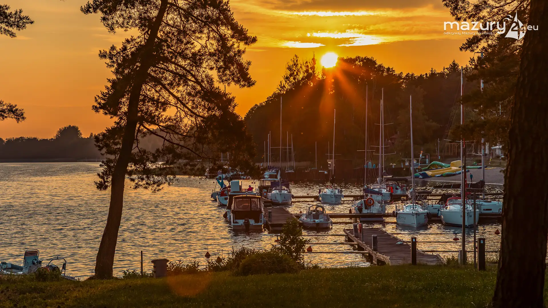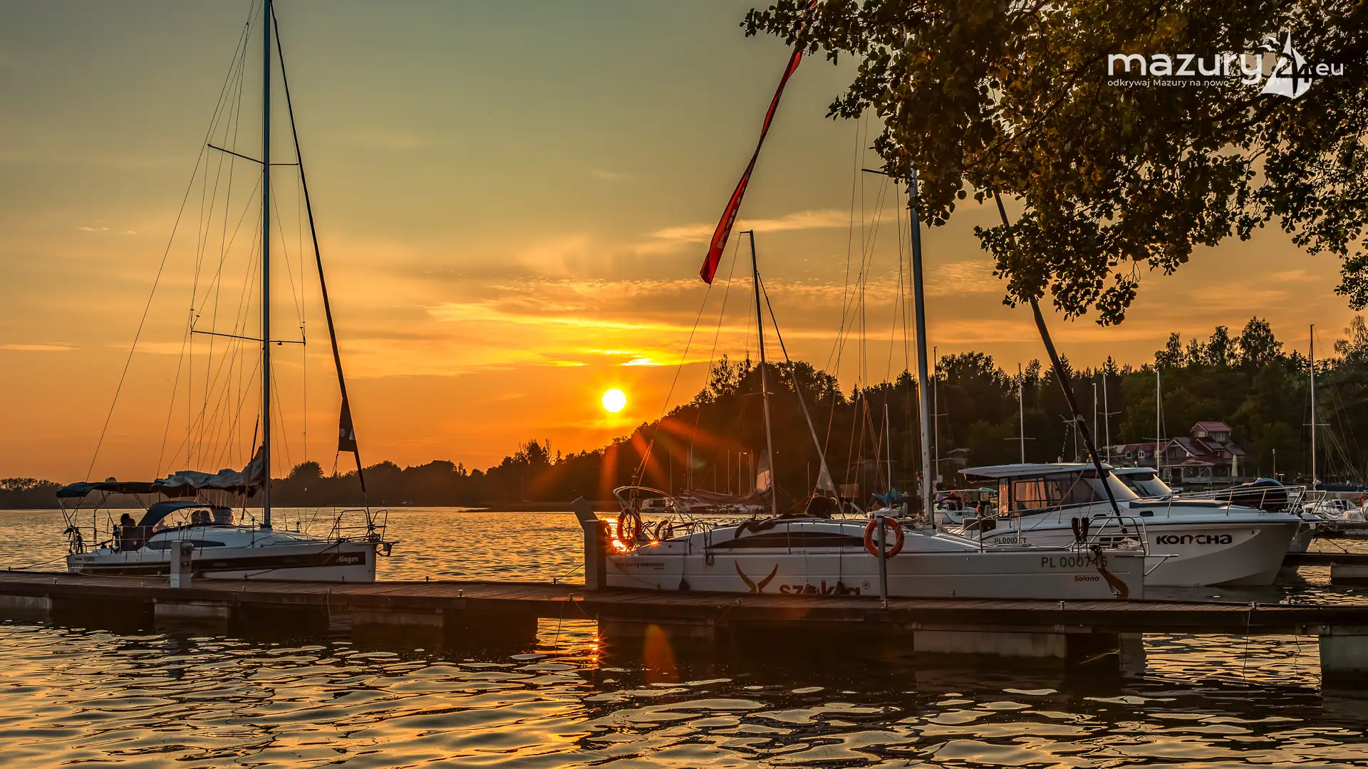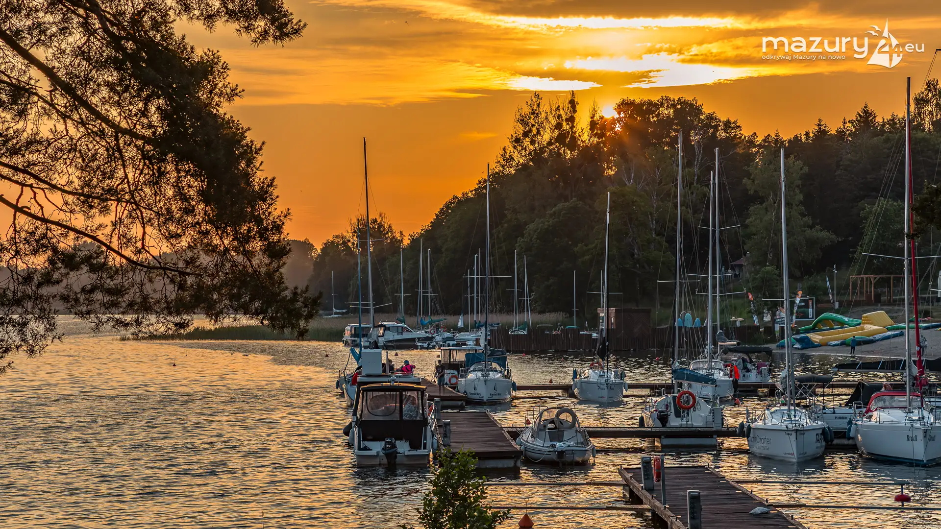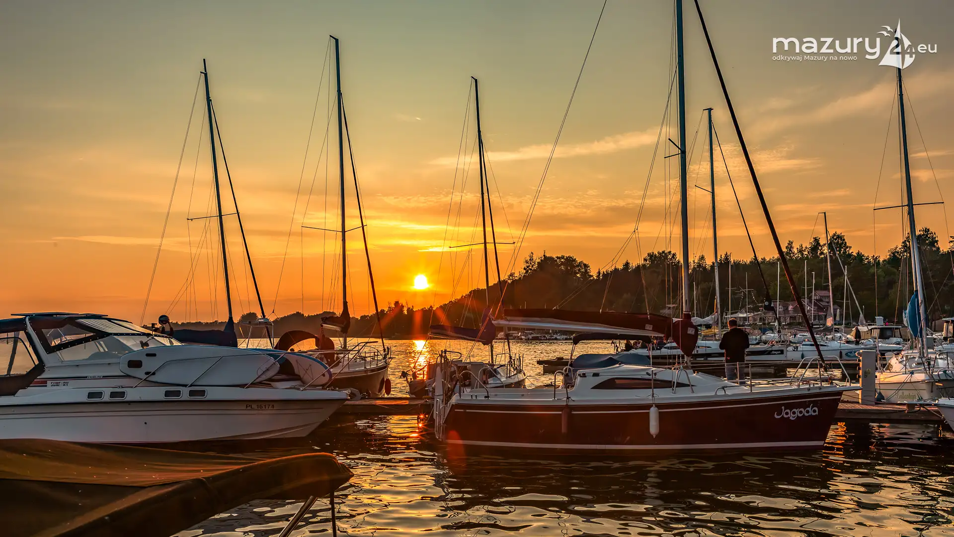 W poszukiwaniu pięknych kadrów o zachodzie słońca przemierzamy Mazury wzdłuż i wszerz. Jest to ważny element naszej przygody okraszonej hasłem "Odkrywamy Mazury na nowo!". Ostatnio dotarliśmy do portu Piękny Brzeg nad jeziorem Święcajty przy Węgorzewie, w którym o tej porze roku, zachód słońca z racji drzew obserwuje się nieco wcześniej...
