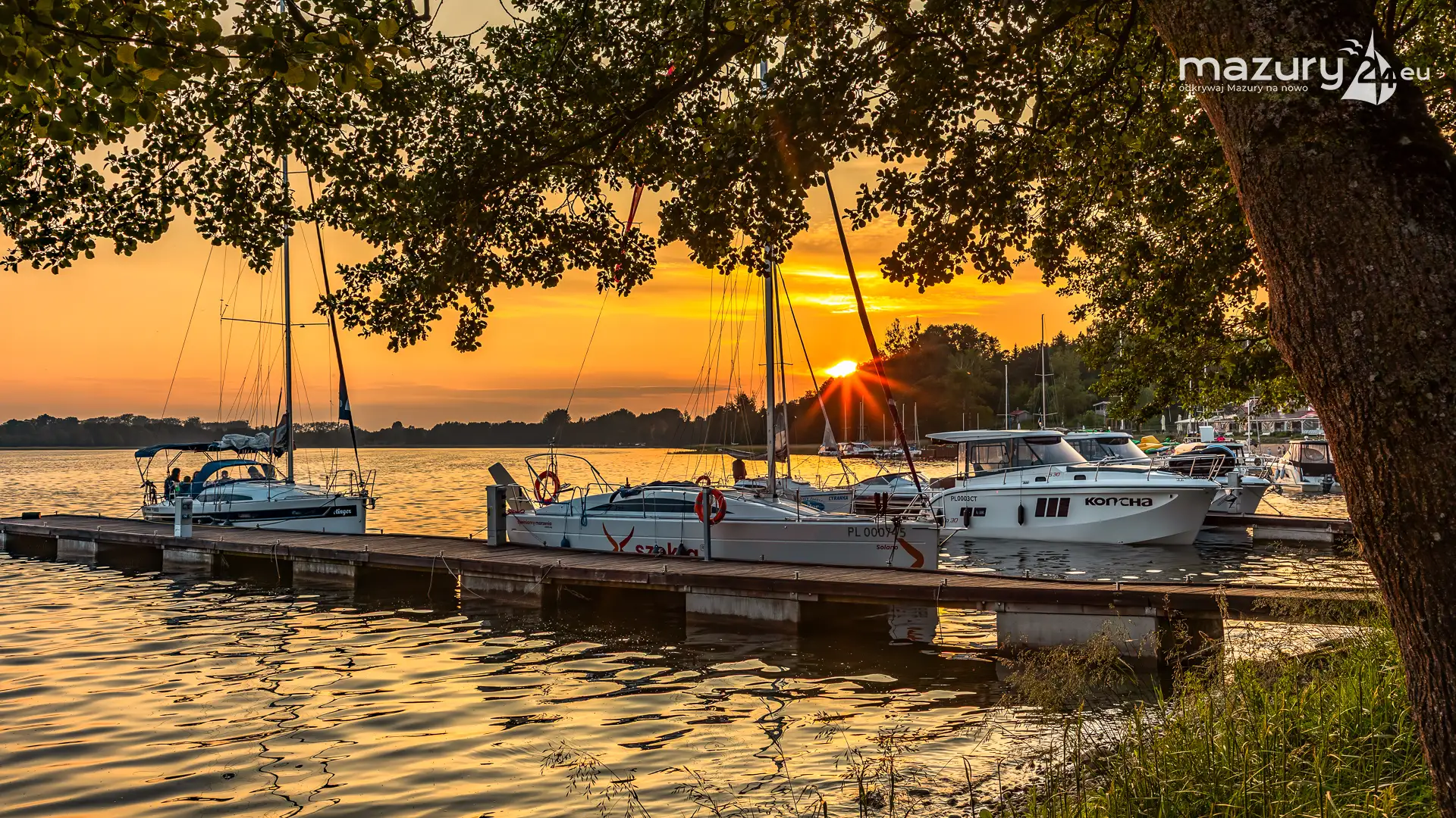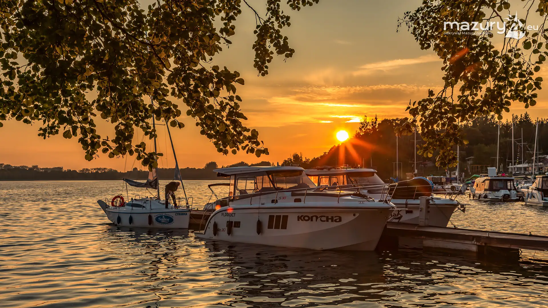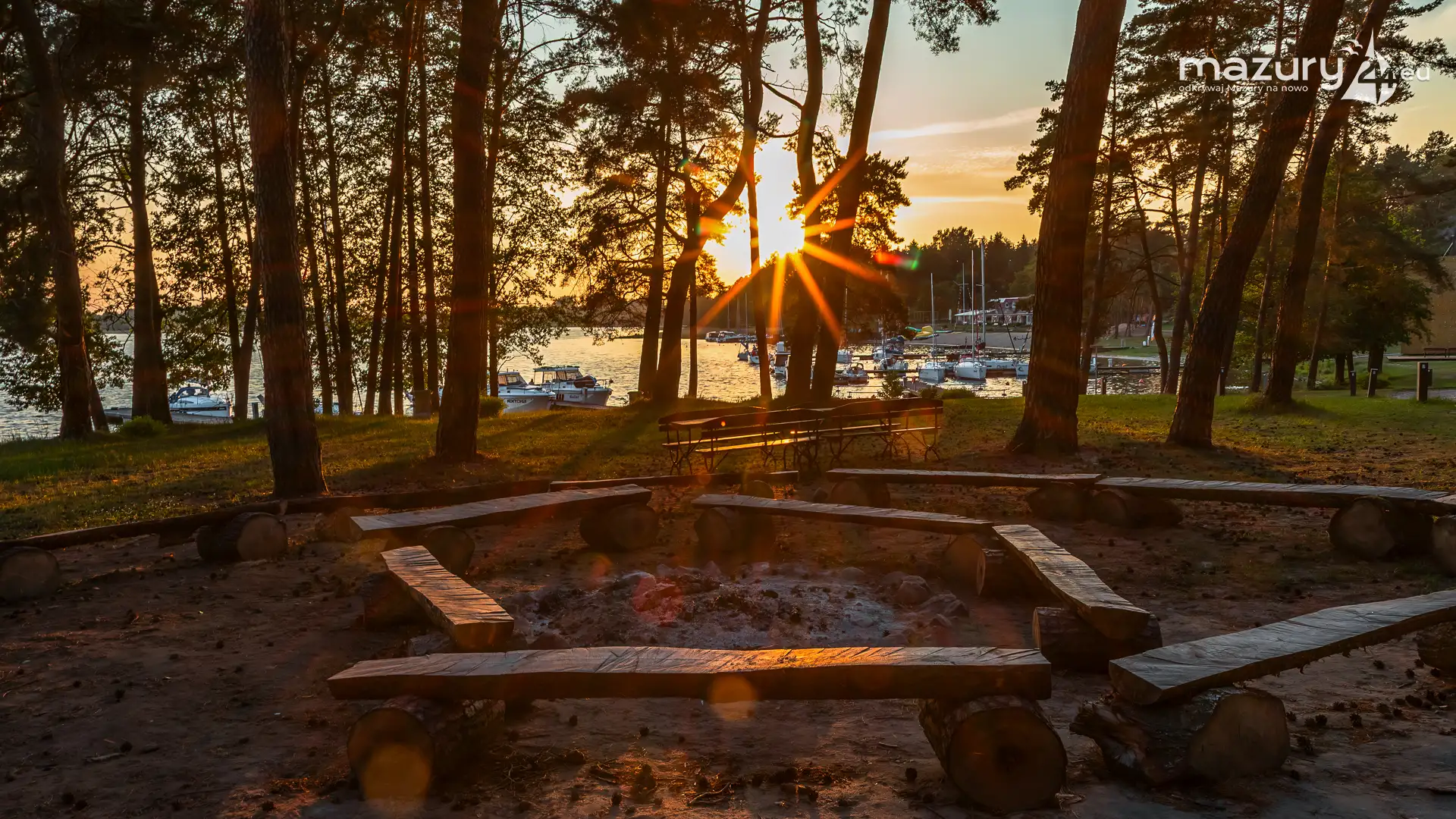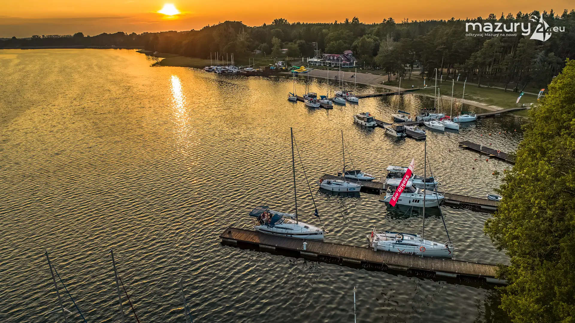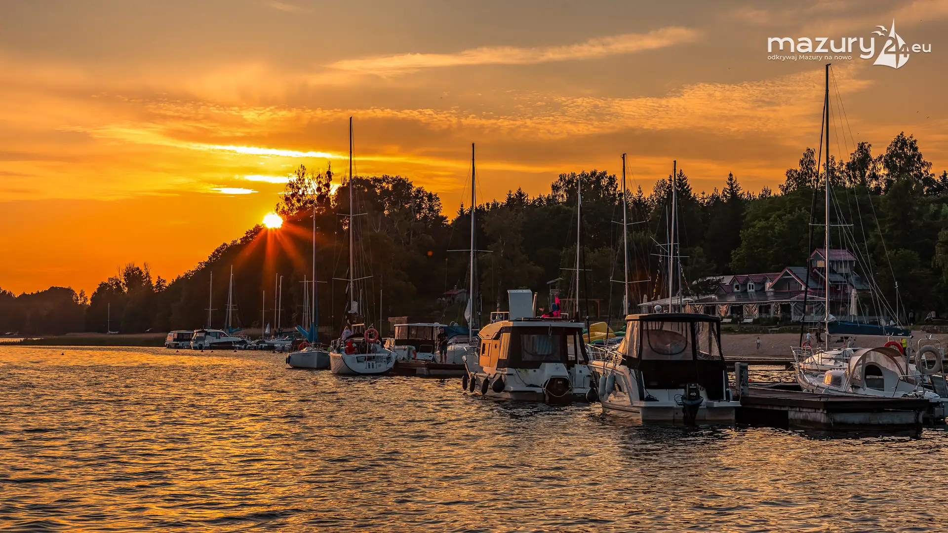 W poszukiwaniu pięknych kadrów o zachodzie słońca przemierzamy Mazury wzdłuż i wszerz. Jest to ważny element naszej przygody okraszonej hasłem "Odkrywamy Mazury na nowo!". Ostatnio dotarliśmy do portu Piękny Brzeg nad jeziorem Święcajty przy Węgorzewie, w którym o tej porze roku, zachód słońca z racji drzew obserwuje się nieco wcześniej...