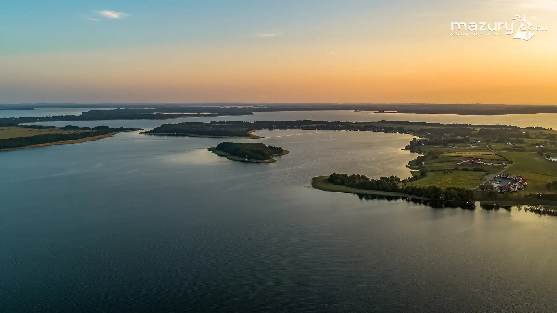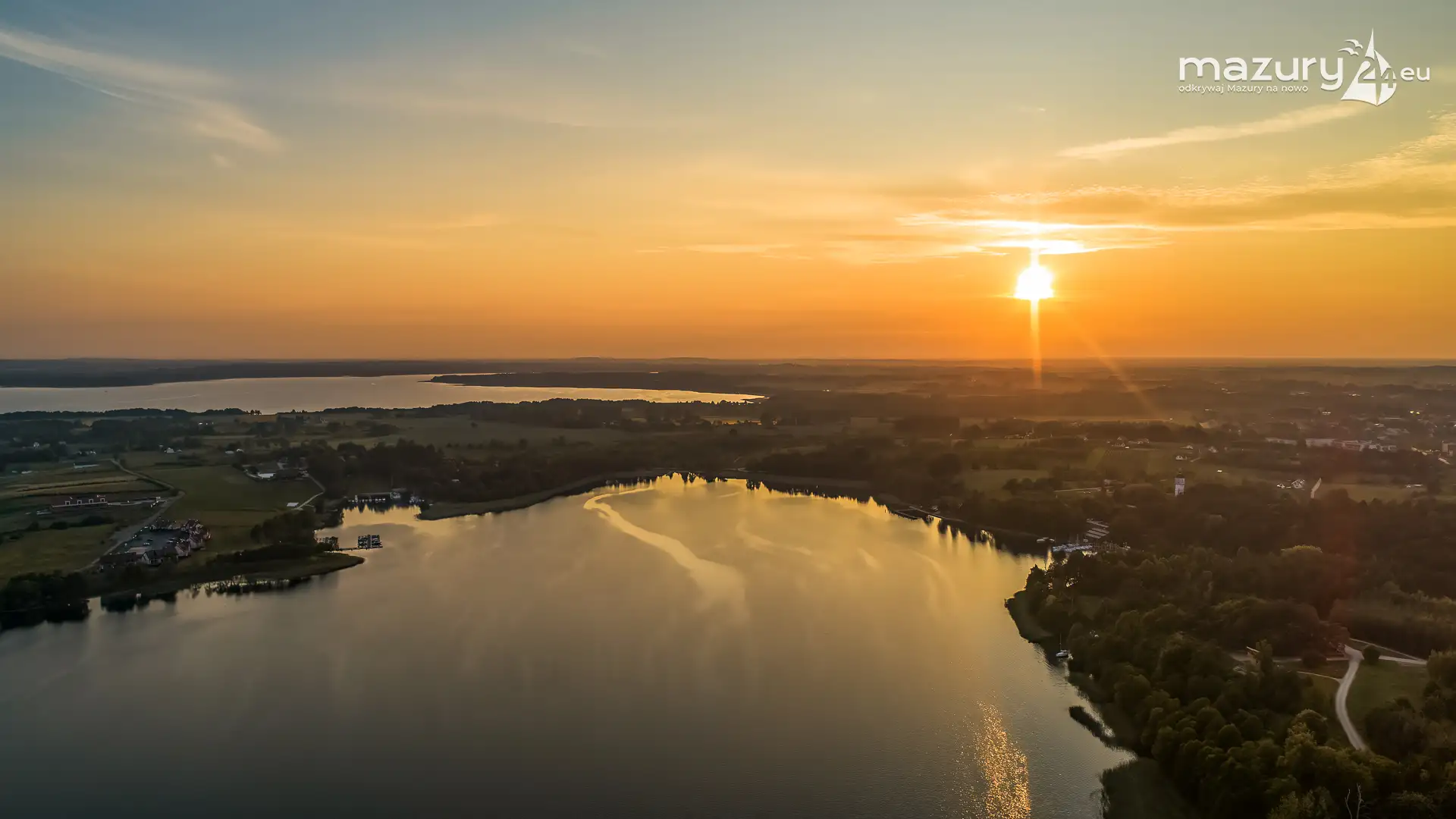 Zachód słońca z drona nad jeziorem Górkło, czerwiec 2025 r.