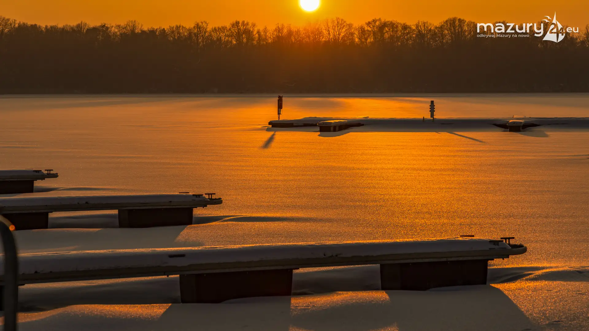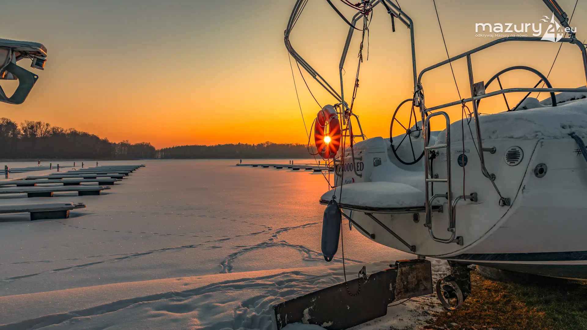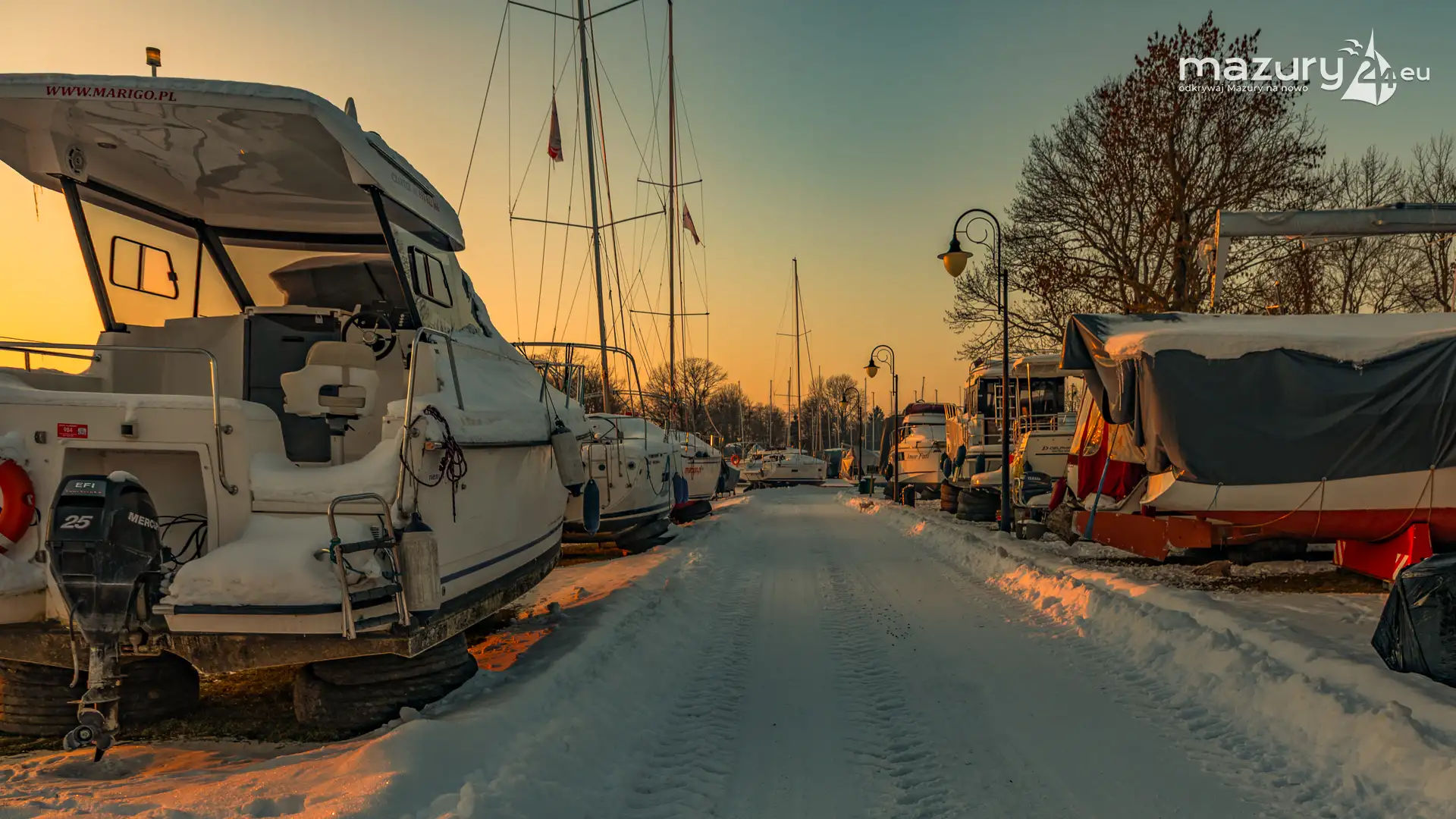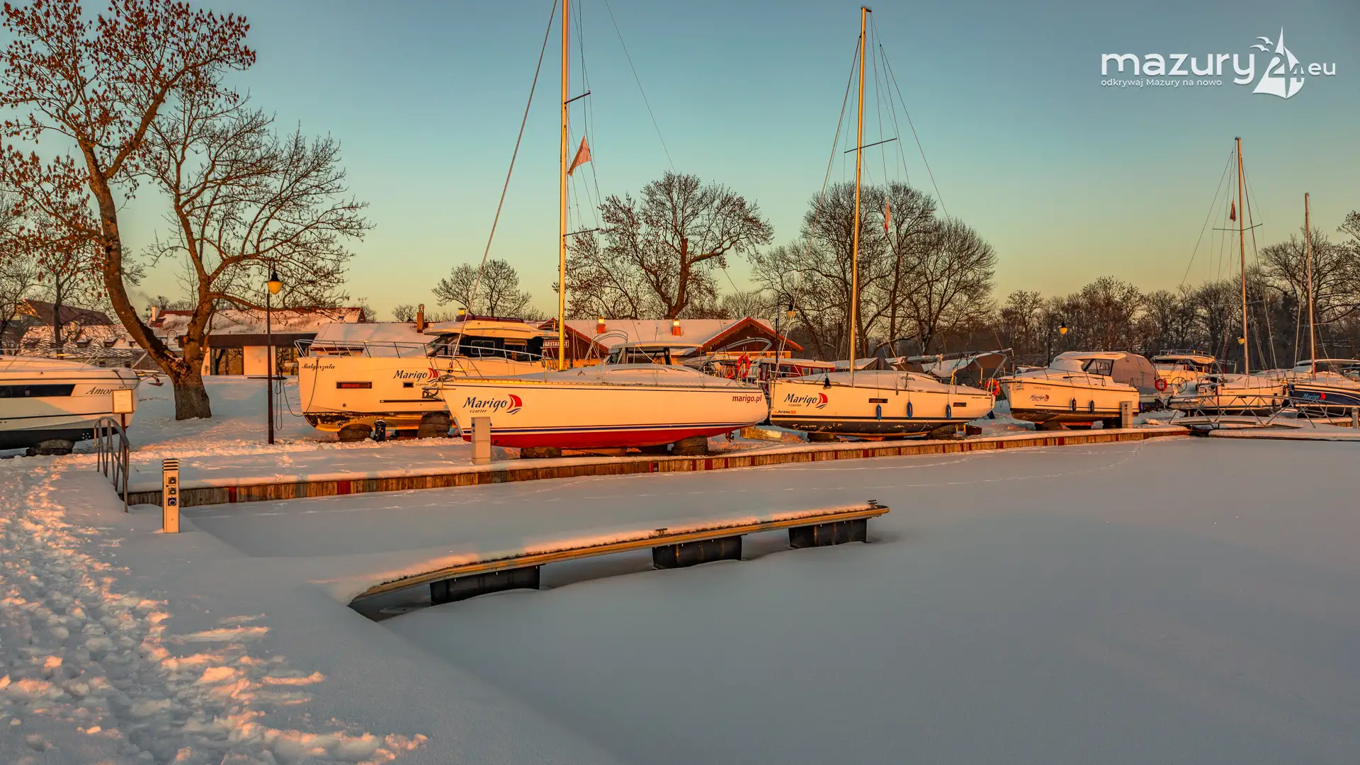 W największym porcie na Mazurach, na zachodach słońca jesteśmy minimum kilka razy w roku. Zimową wersję końca dnia mamy już za sobą. Port bez jachtów na wodzie wygląda troszkę smutno, z drugiej jednak strony, sezon w tym miejscu jest tak intensywny, że nie będziemy narzekać...