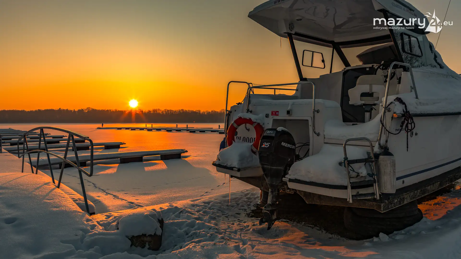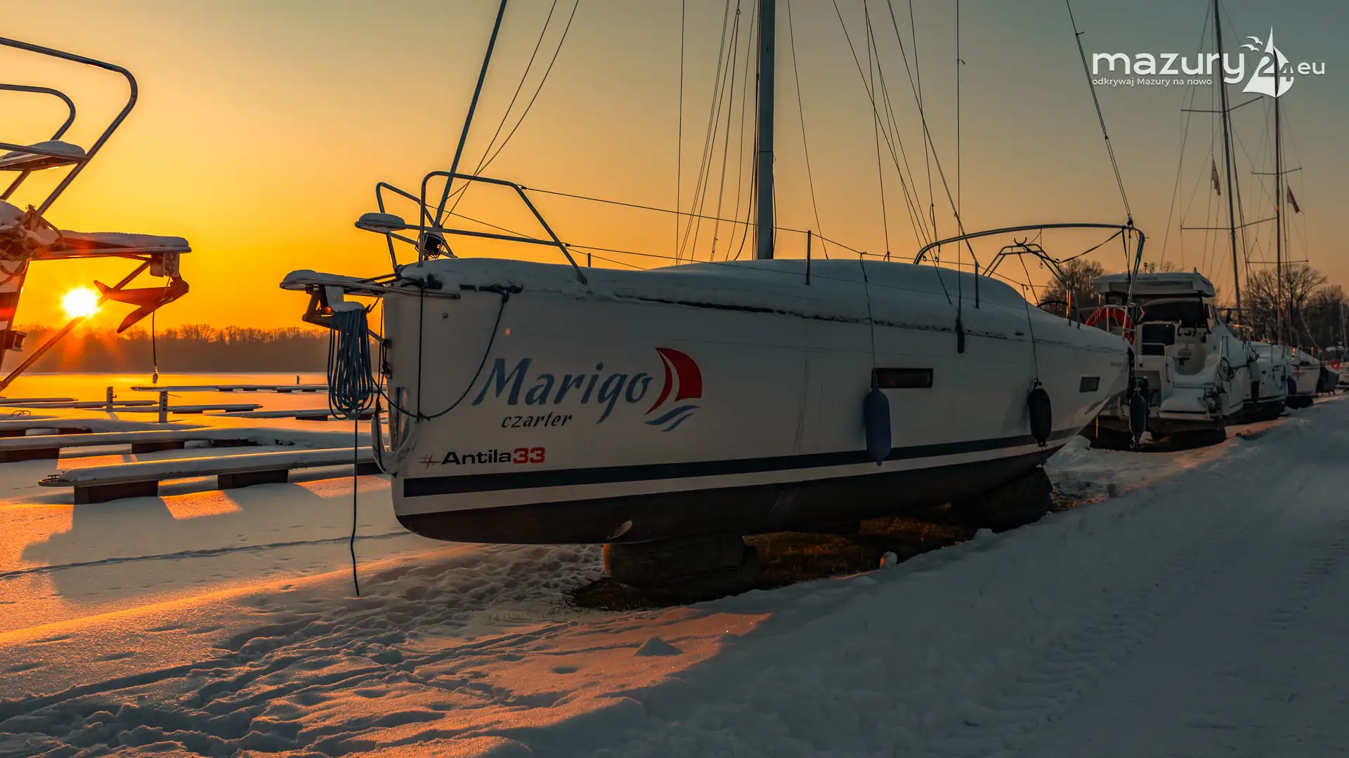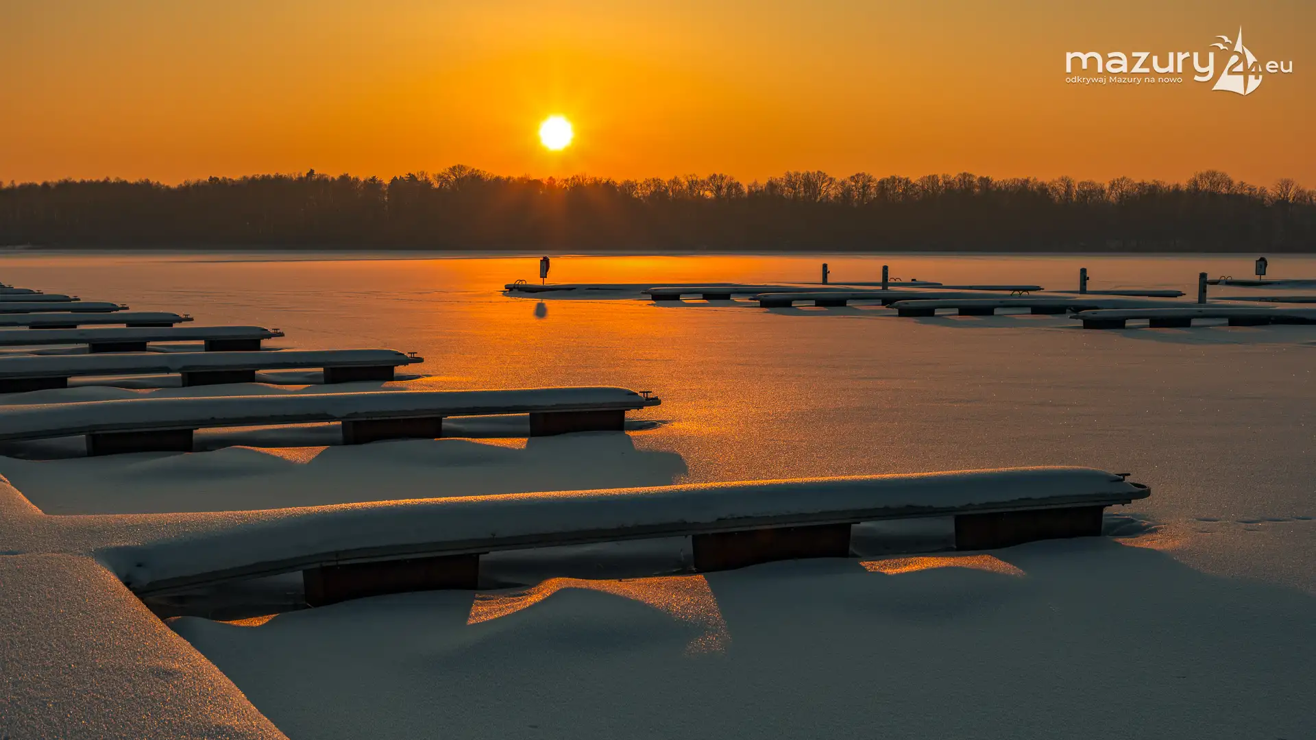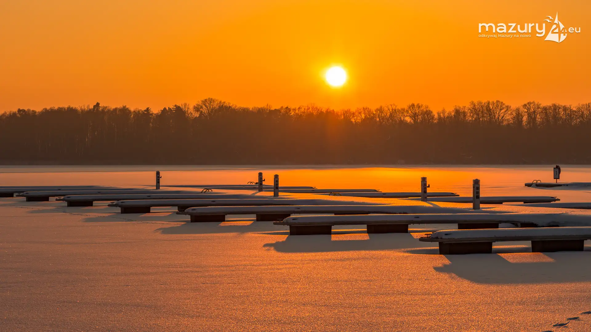 W największym porcie na Mazurach, na zachodach słońca jesteśmy minimum kilka razy w roku. Zimową wersję końca dnia mamy już za sobą. Port bez jachtów na wodzie wygląda troszkę smutno, z drugiej jednak strony, sezon w tym miejscu jest tak intensywny, że nie będziemy narzekać...