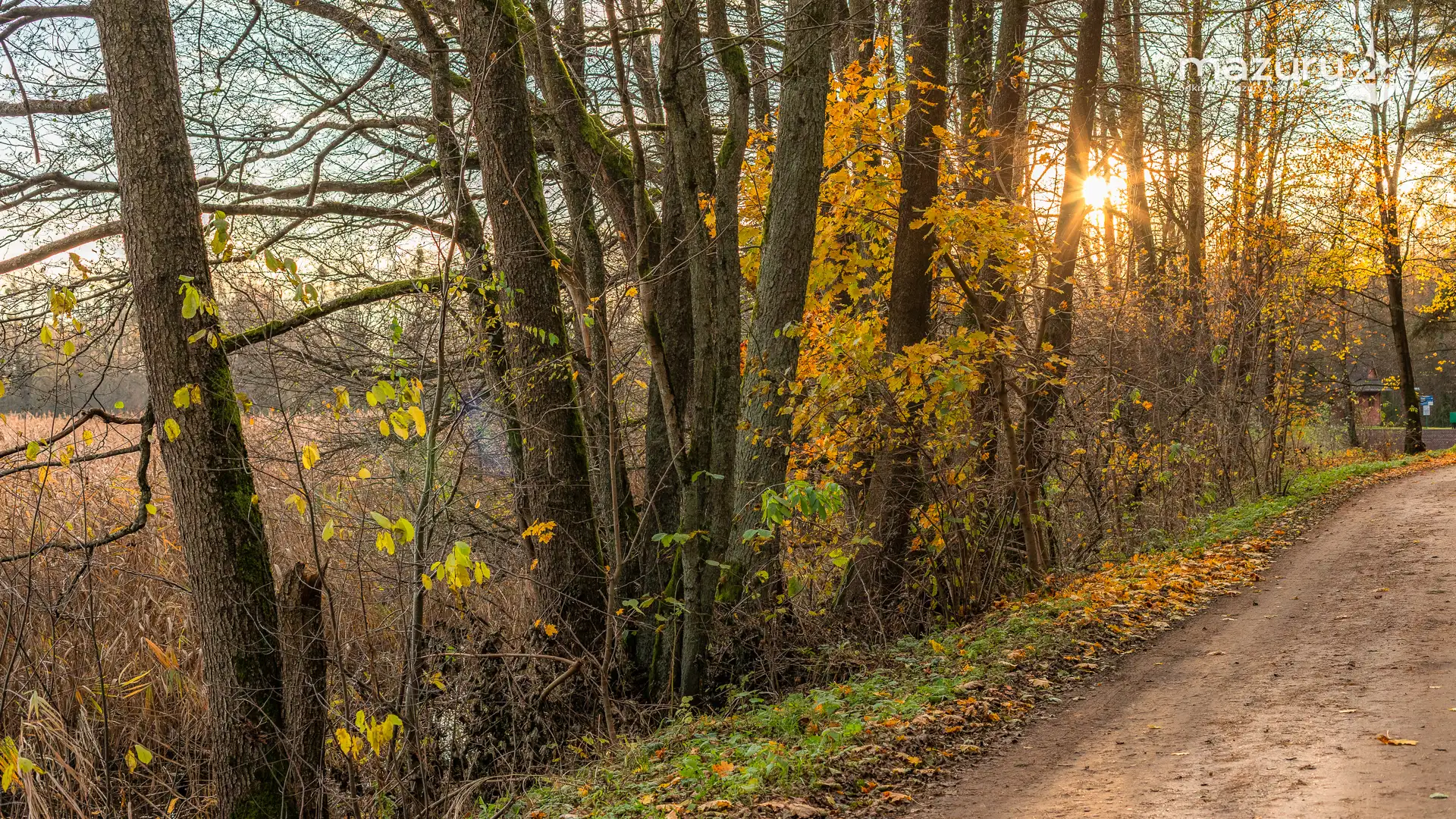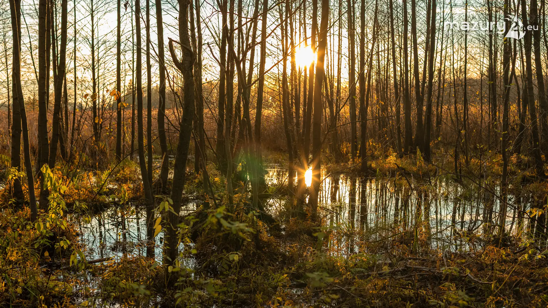 Zachód słońca, końcówka kolorów jesieni w Sztynorcie, listopad 2025 r.