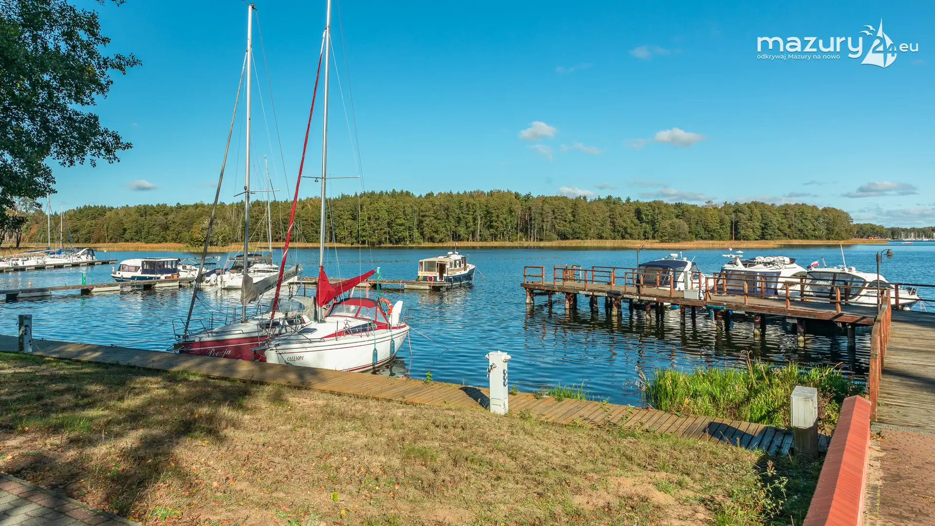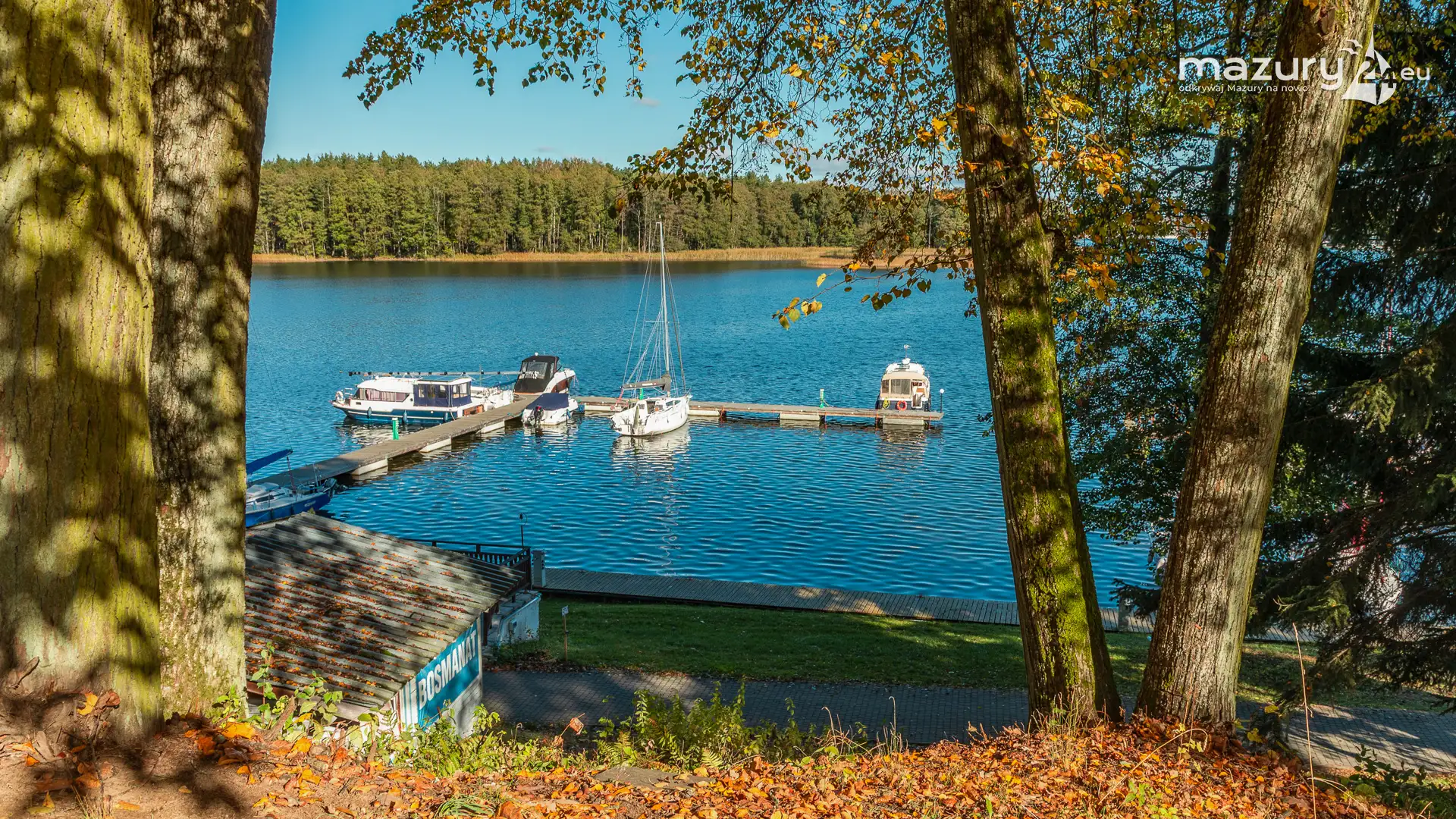 Na Mazurach nie brakuje miejsc, w których przyroda harmonijnie łączy się z działalnością człowieka. Jednym z nich jest port i ośrodek Łabędzi Ostrów w Pięknej Górze nad jeziorem Kisajno. Zobaczcie jesienną odsłonę tego miejsca – ostatnie jachty kołyszące się na wodzie, a wokół potężne dęby i buki ubrane w złociste barwy.