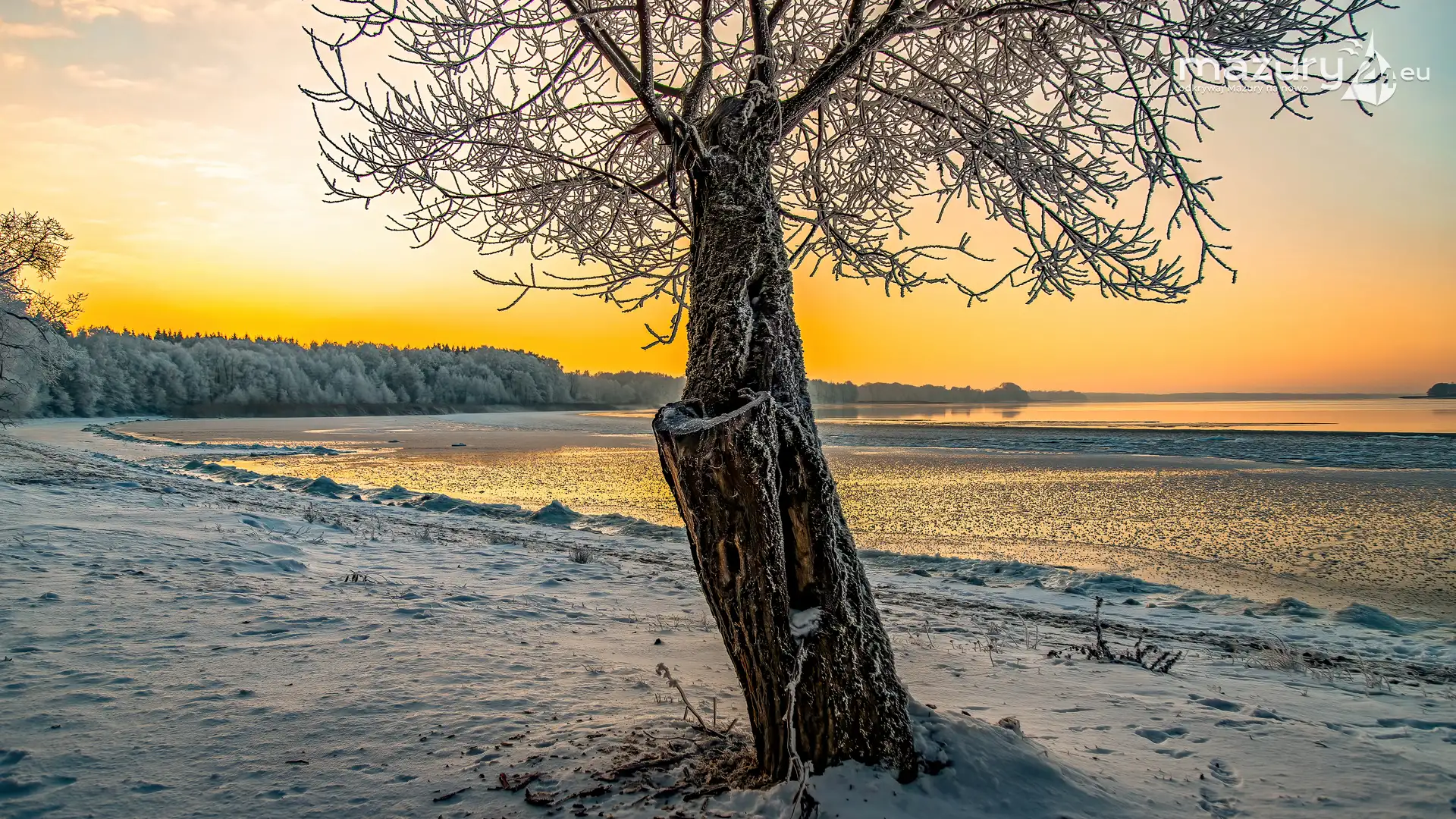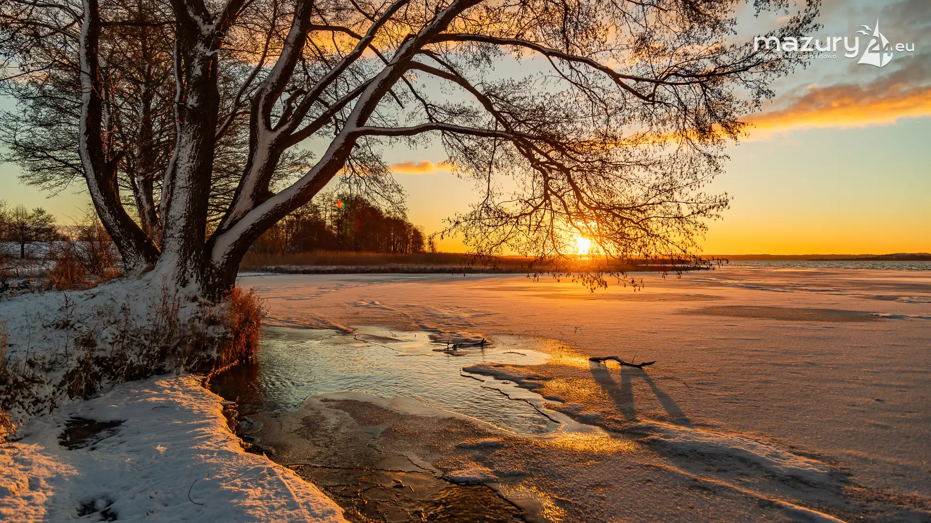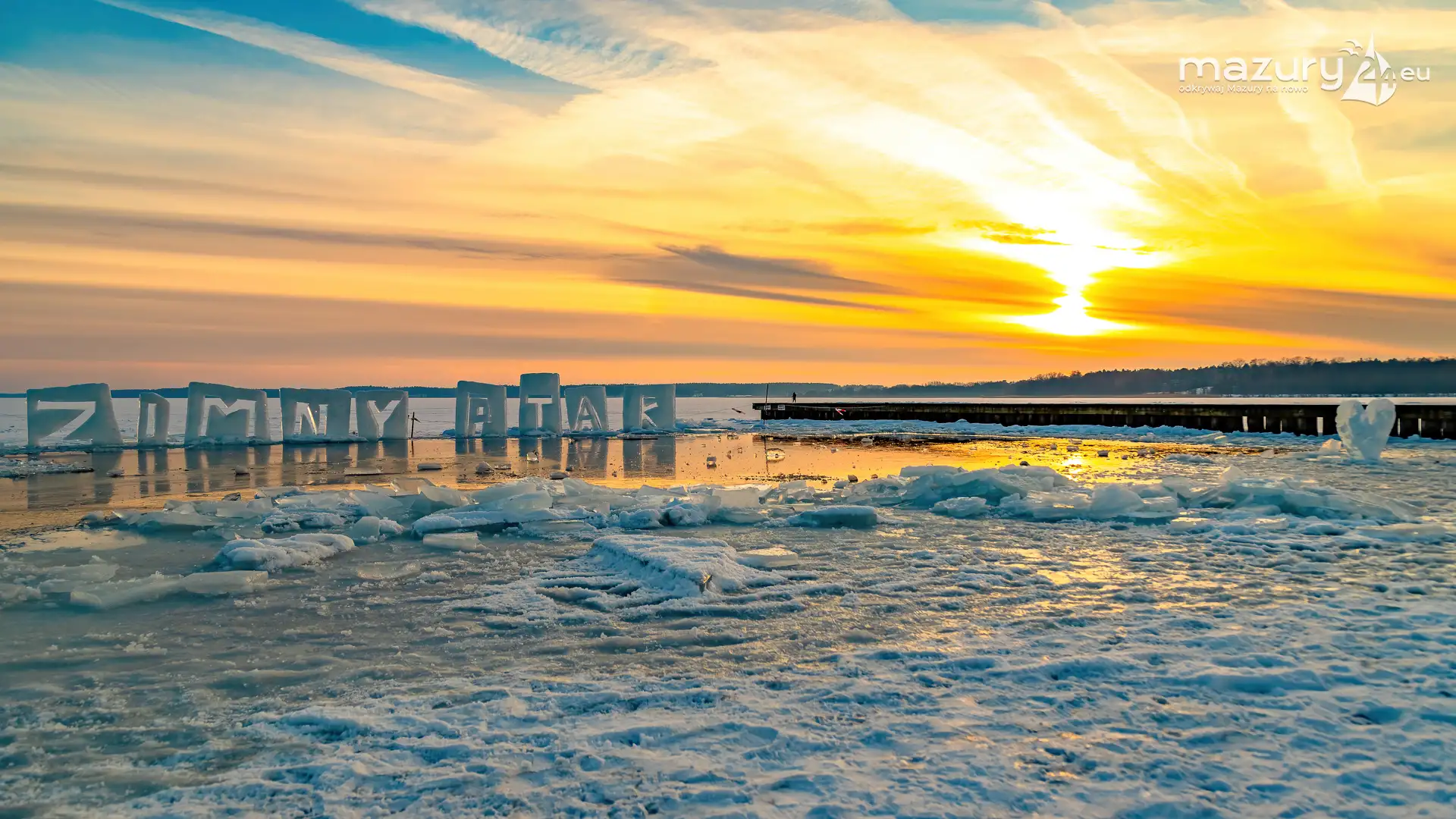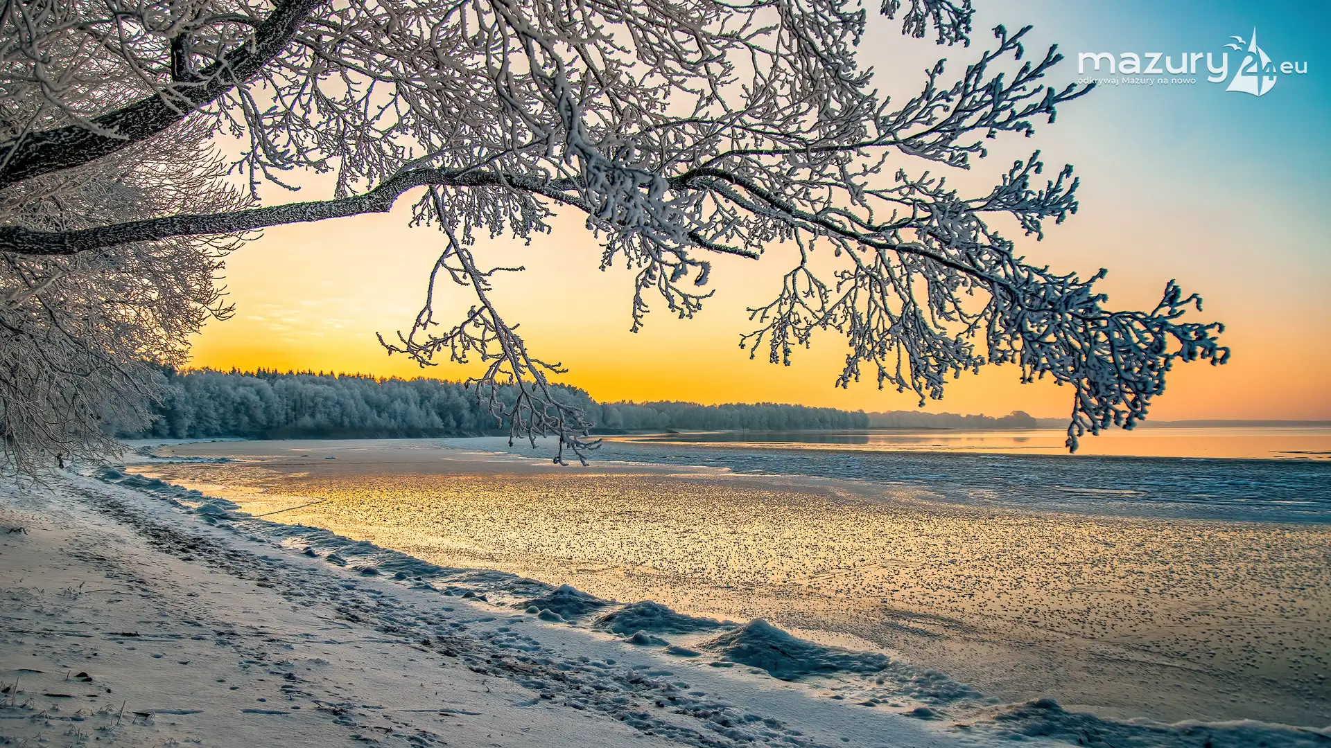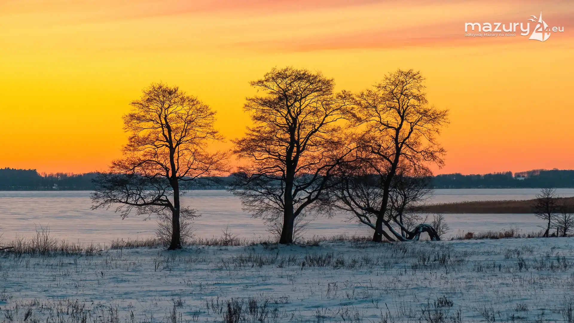 Zimowy zachód słońca nad jeziorem Kisajno, styczeń 2025 r.